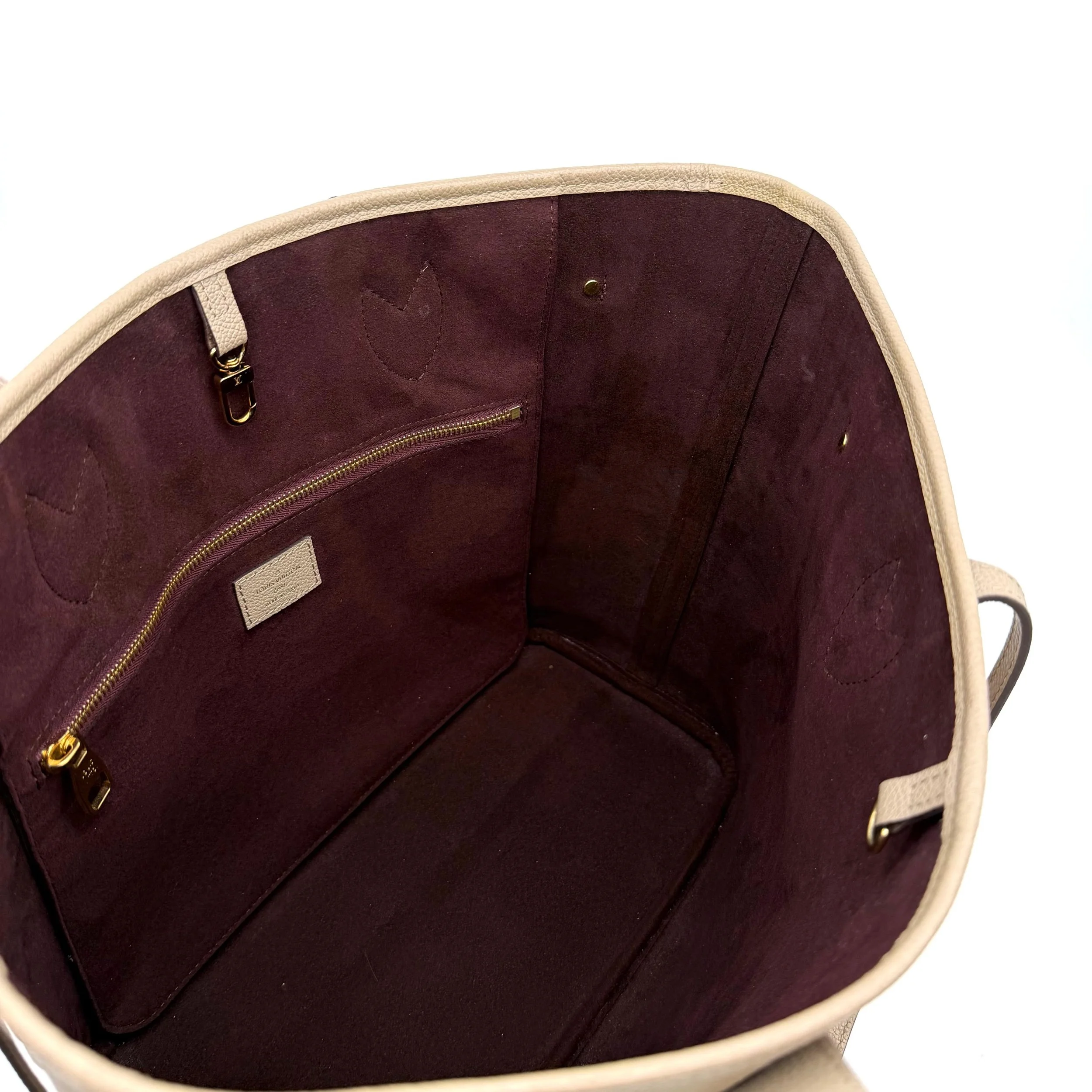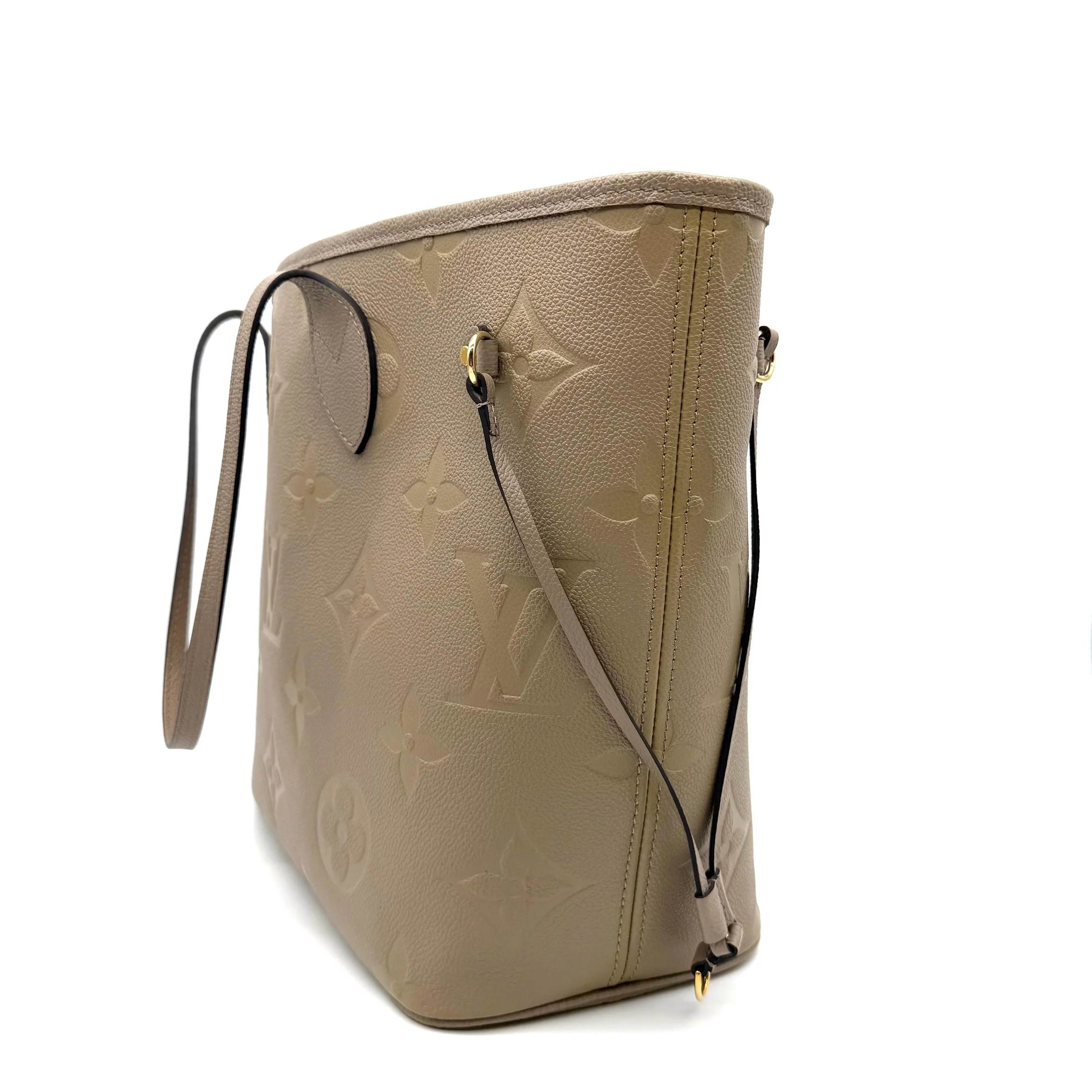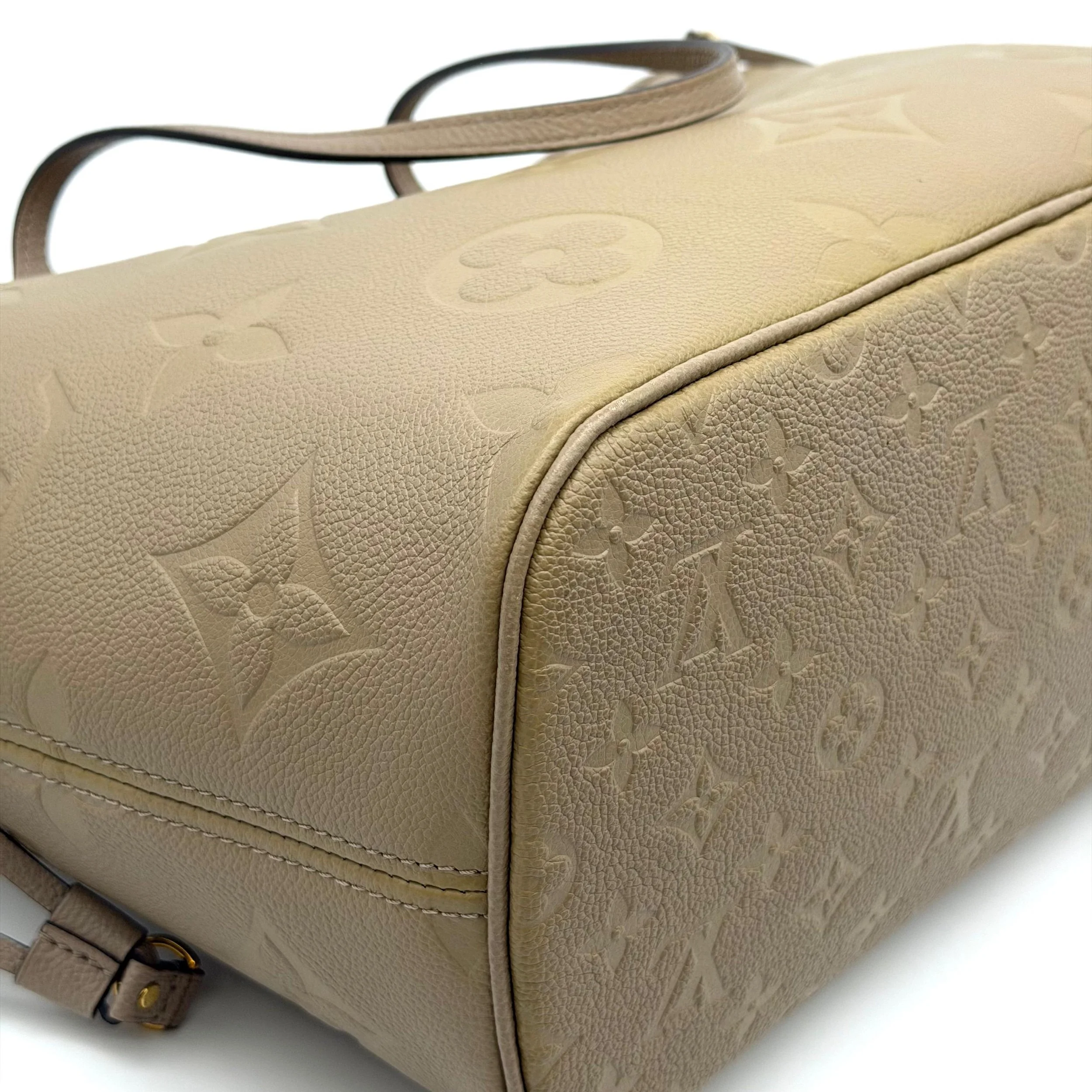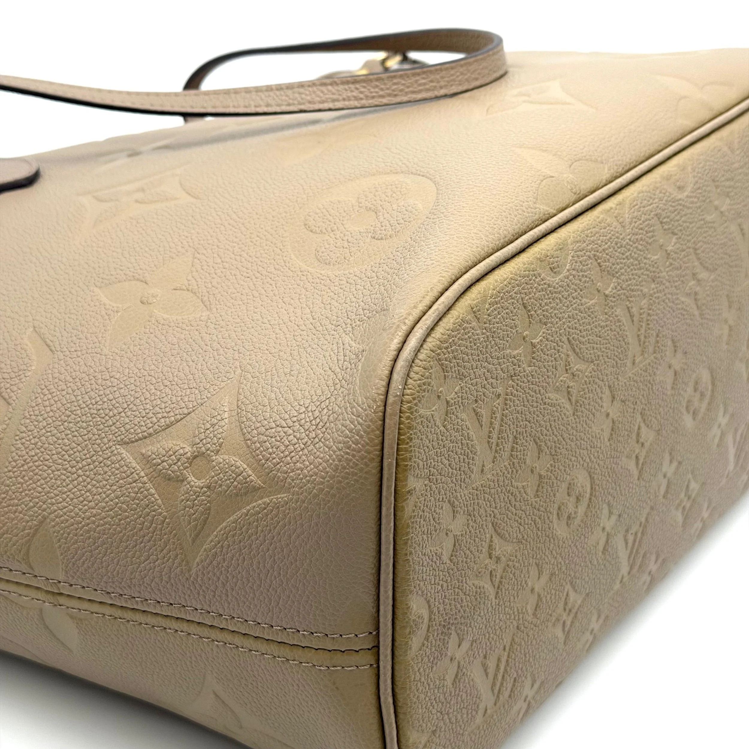 Item Description/Model: Louis Vuitton Neverfull MM Tote Bag in Beige Monogram Empreinte Leather Gold Hardware