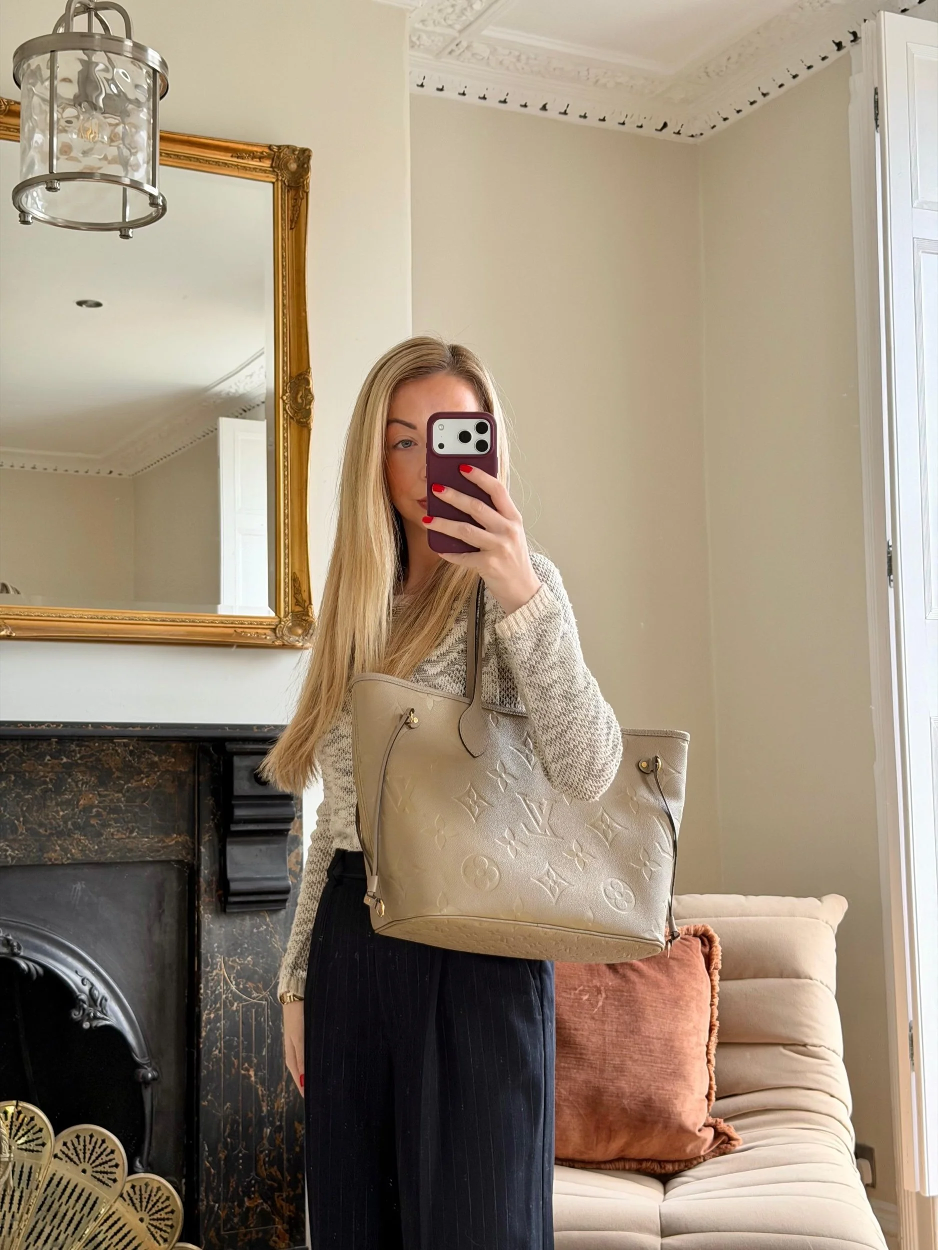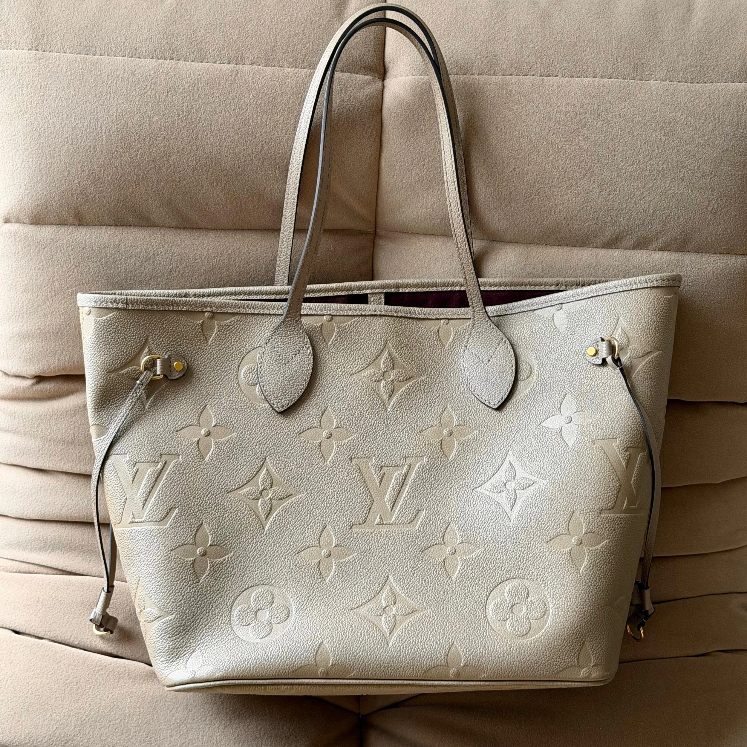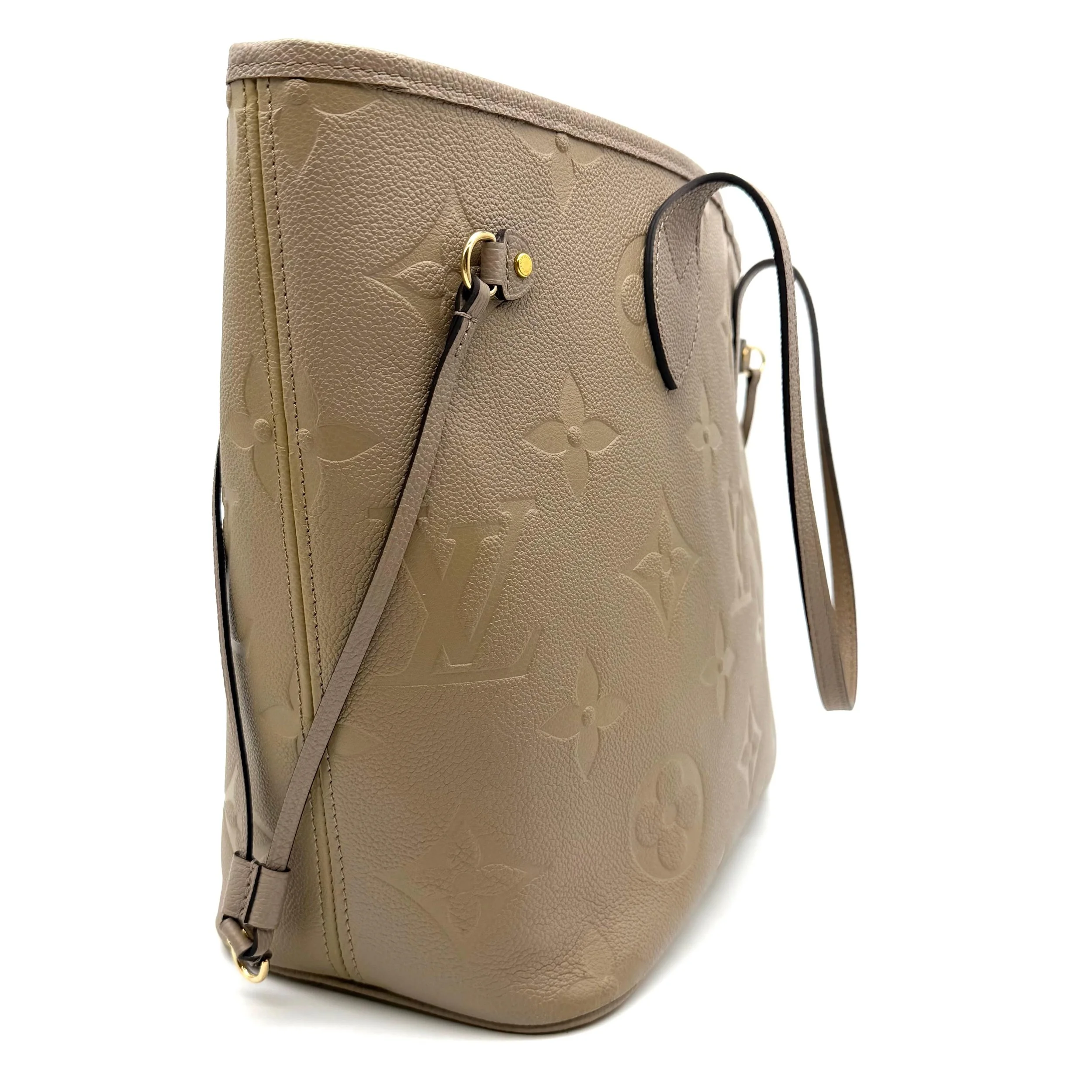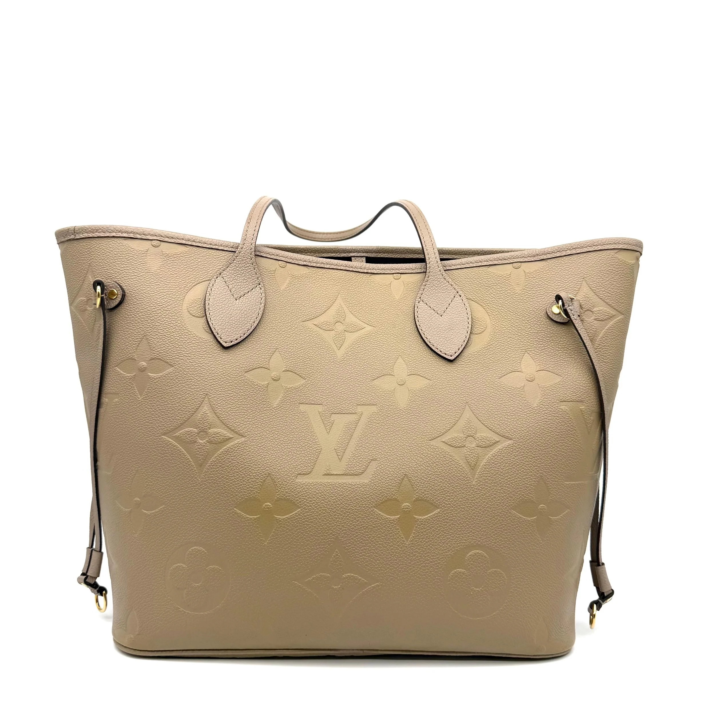 Item Description/Model: Louis Vuitton Neverfull MM Tote Bag in Beige Monogram Empreinte Leather Gold Hardware