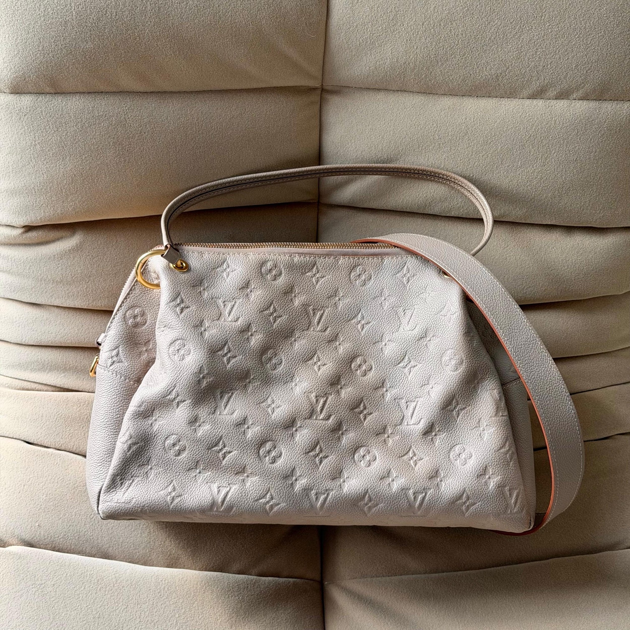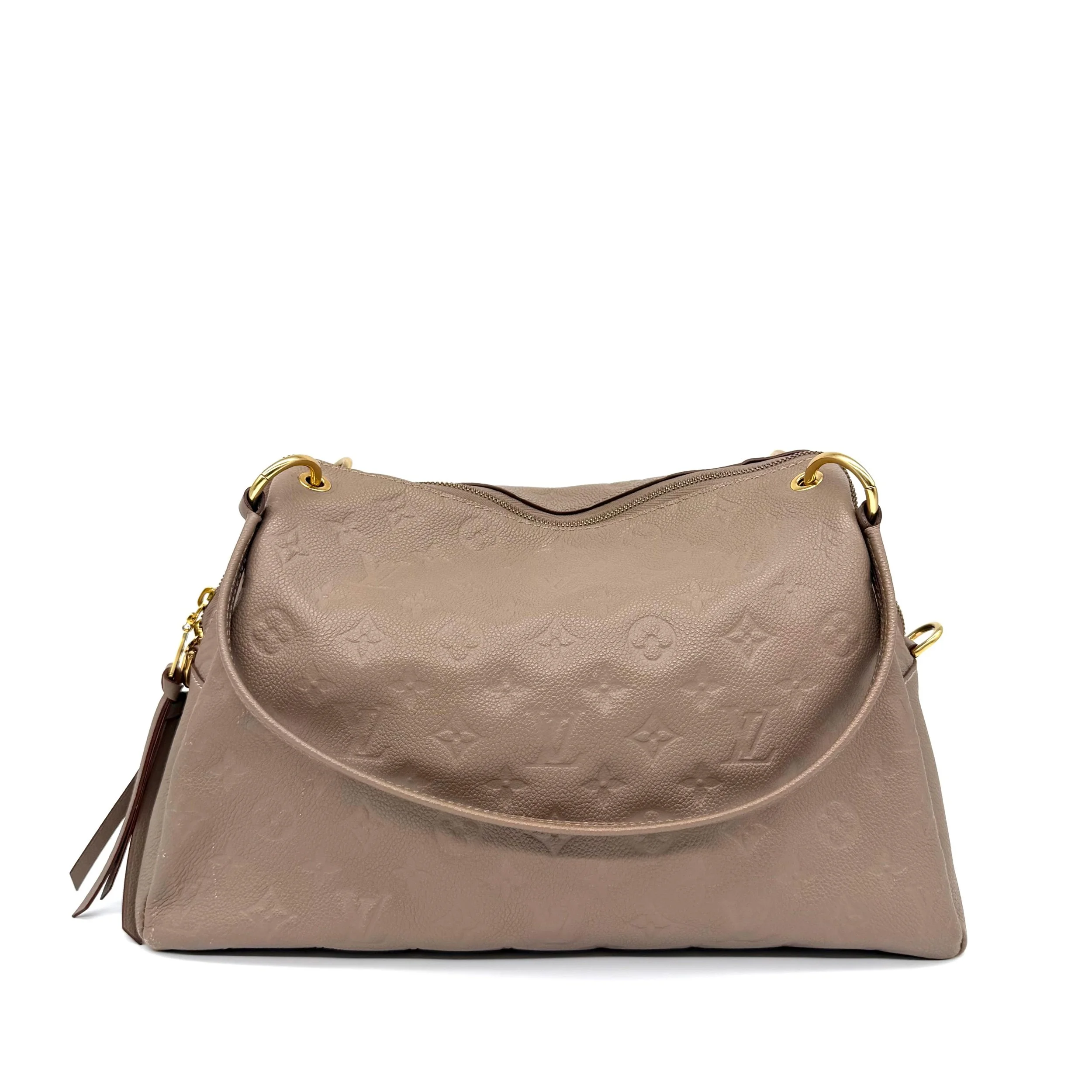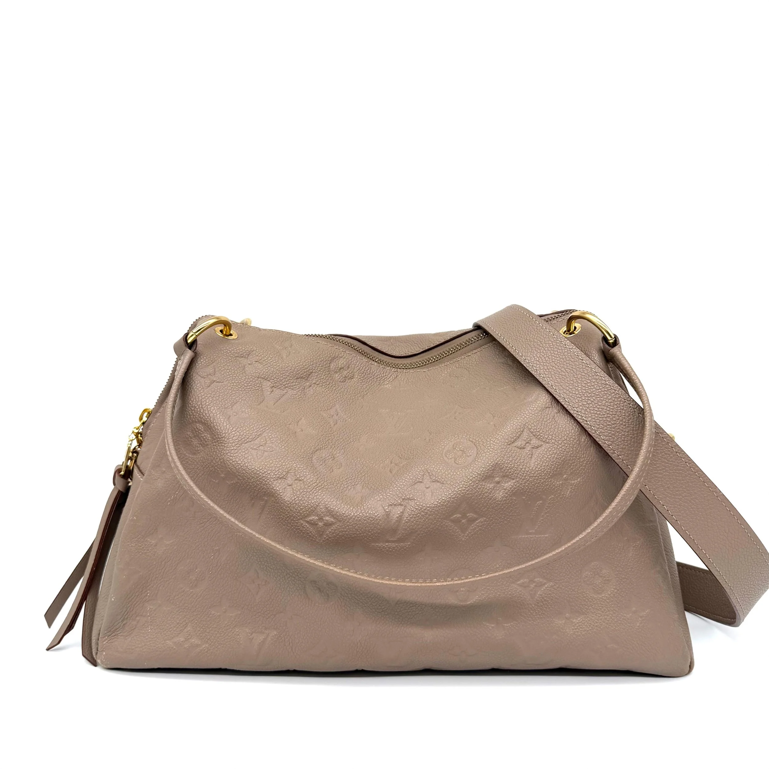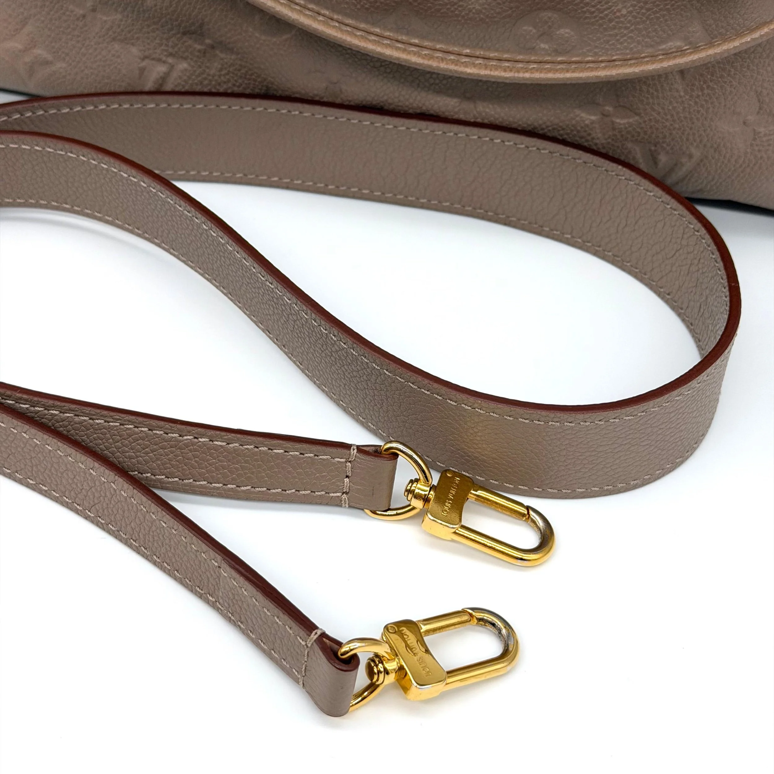 Item Description/Model: Louis Vuitton Ponthieu Monogram Bag in Empreinte Taupe Glace Leather Gold Hardware