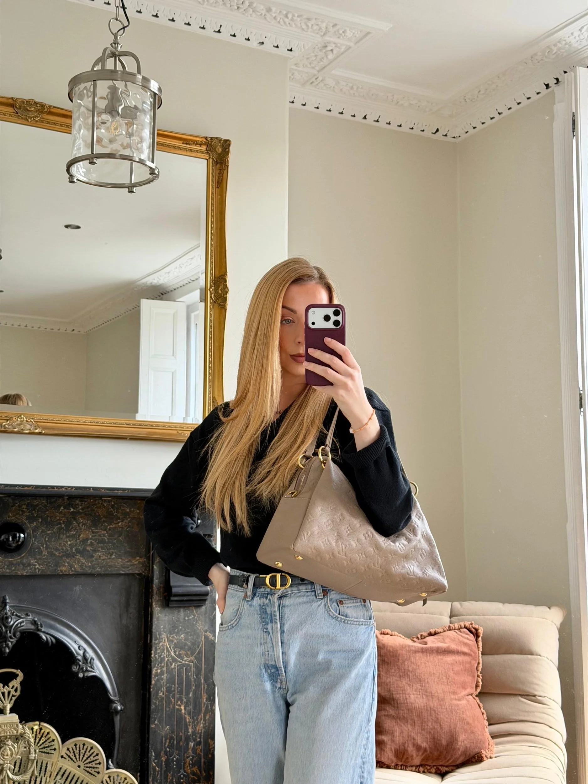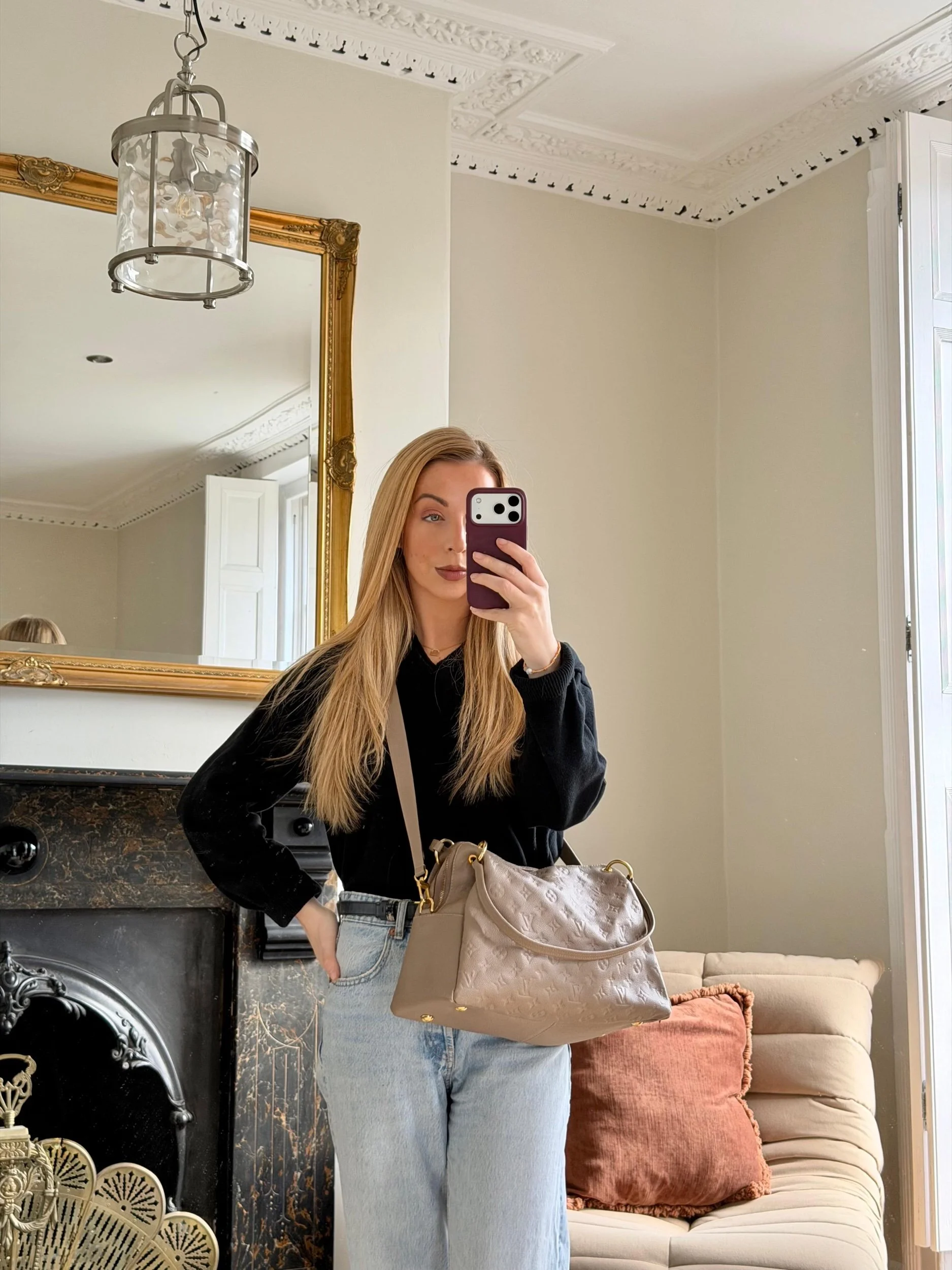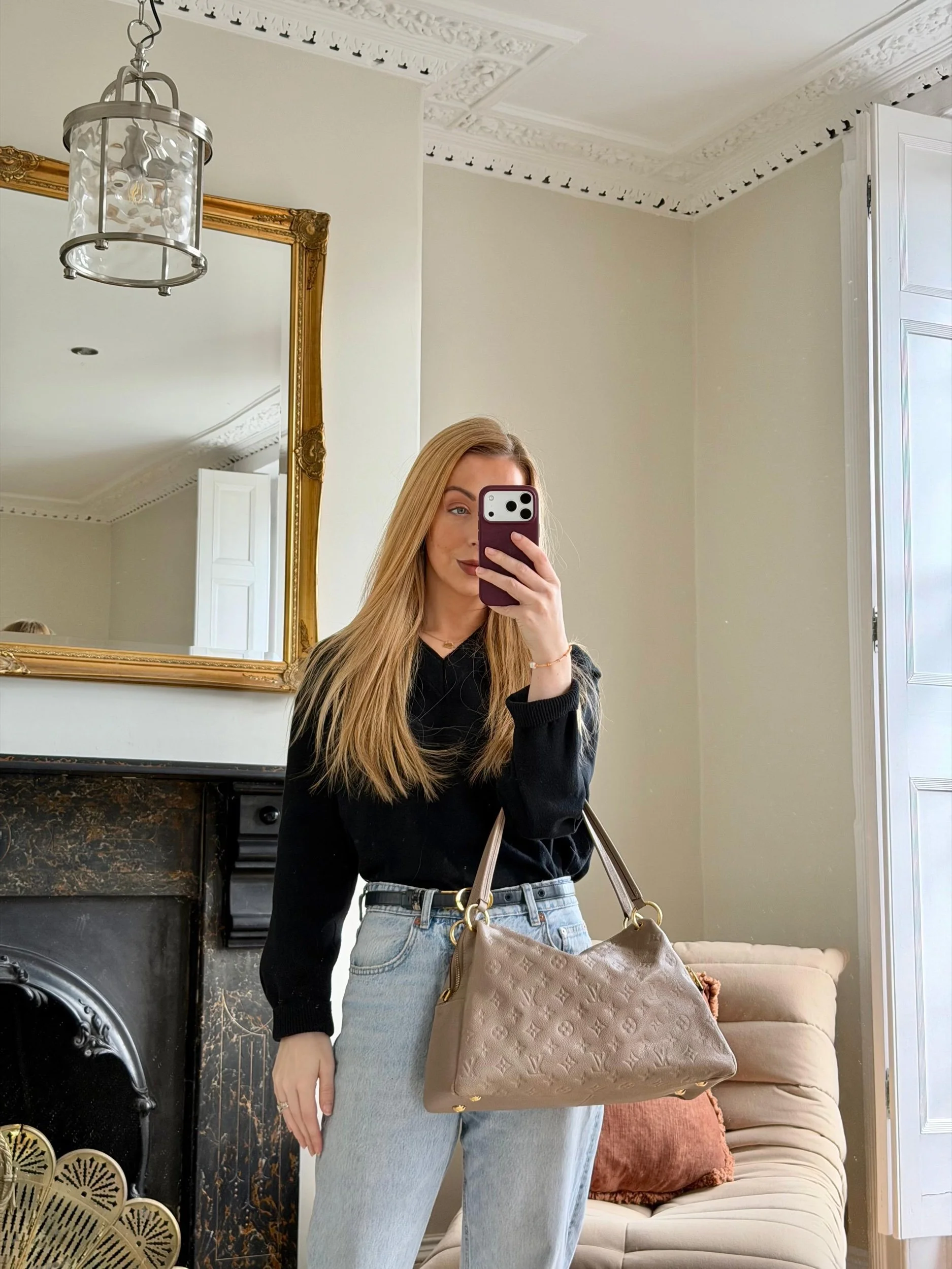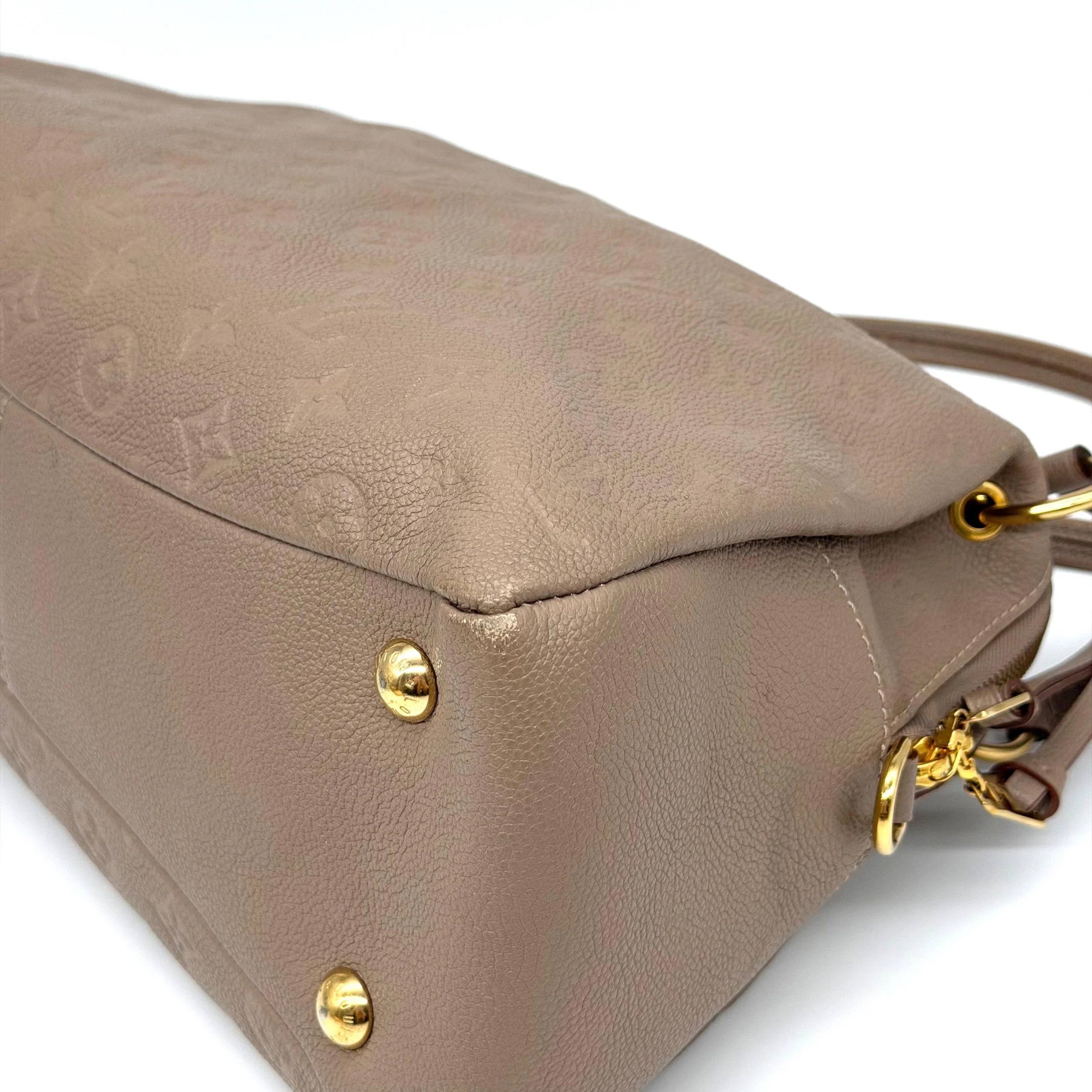 Item Description/Model: Louis Vuitton Ponthieu Monogram Bag in Empreinte Taupe Glace Leather Gold Hardware