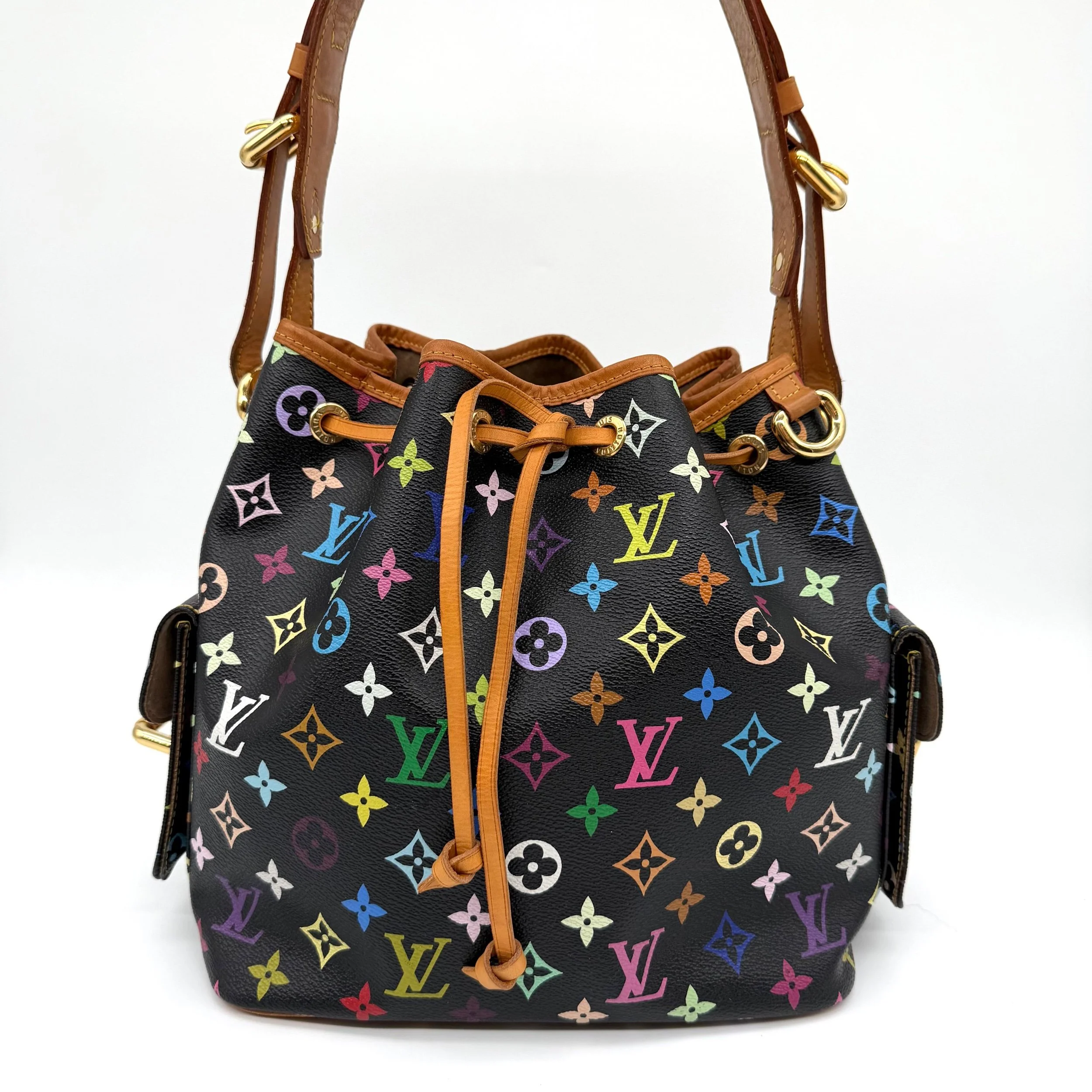 Item Description/Model: Louis Vuitton X Takashi Murakami Petit Noe Bucket Bag in Mulitcolour Black Monogram