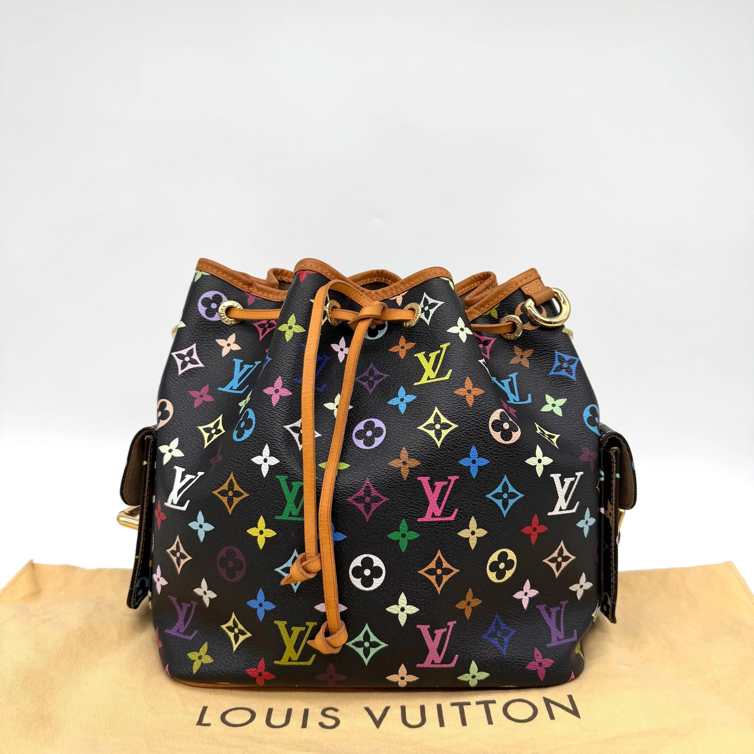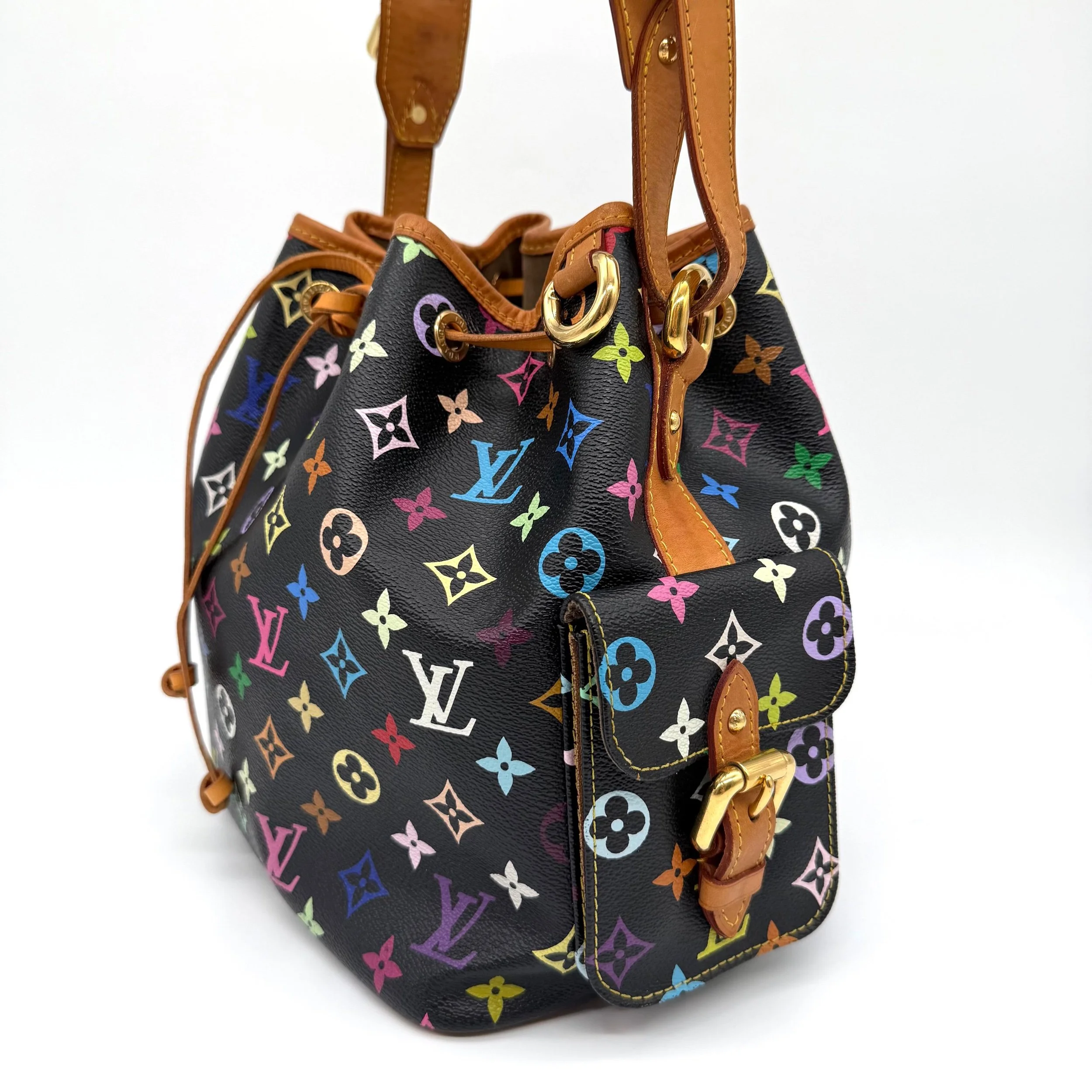 Louis Vuitton X Takashi Murakami Petit Noe Bucket Bag in Mulitcolour Black Monogram
