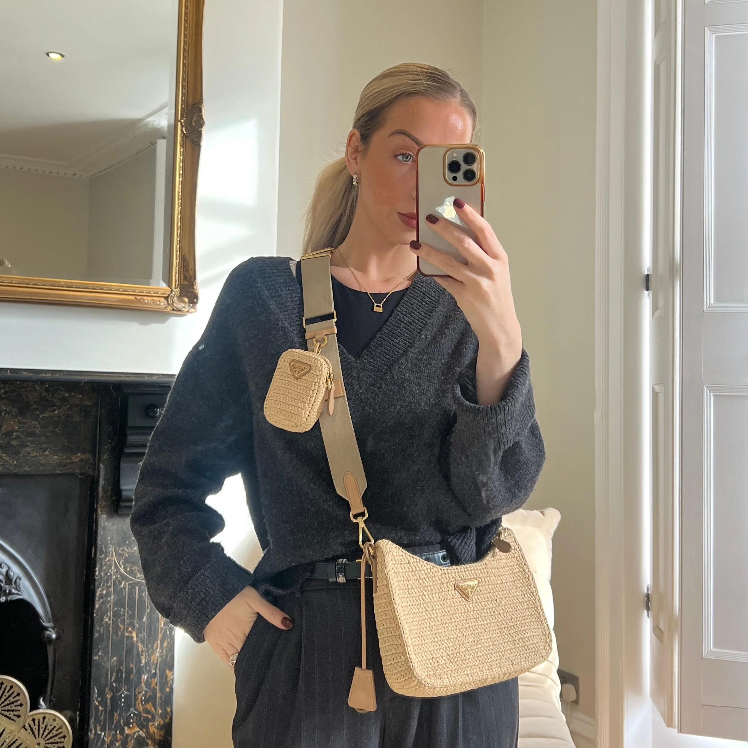 Item Description/Model: Prada Re-edition 2005 Bag in Natural Raffia Crochet