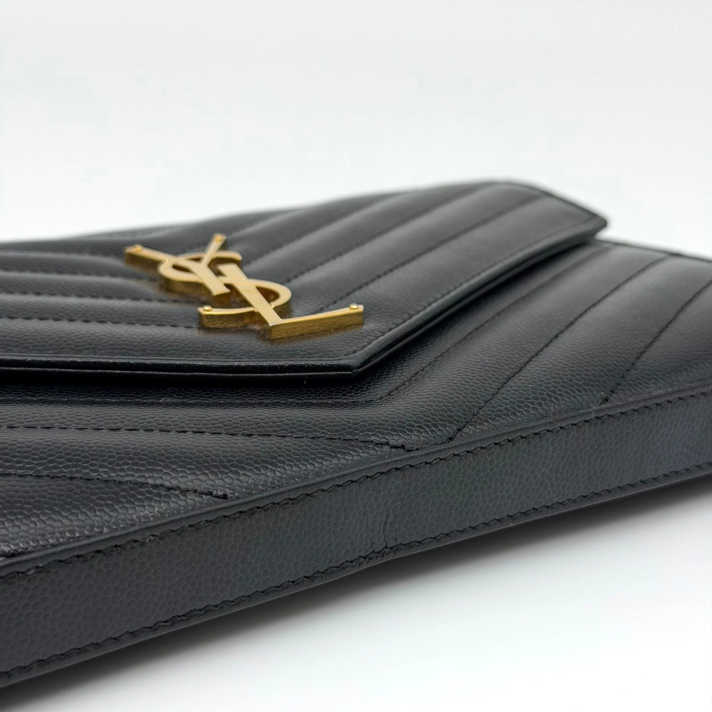 Saint Laurent YSL Large Envelope Wallet on Chain Bag Black Gold Hardware