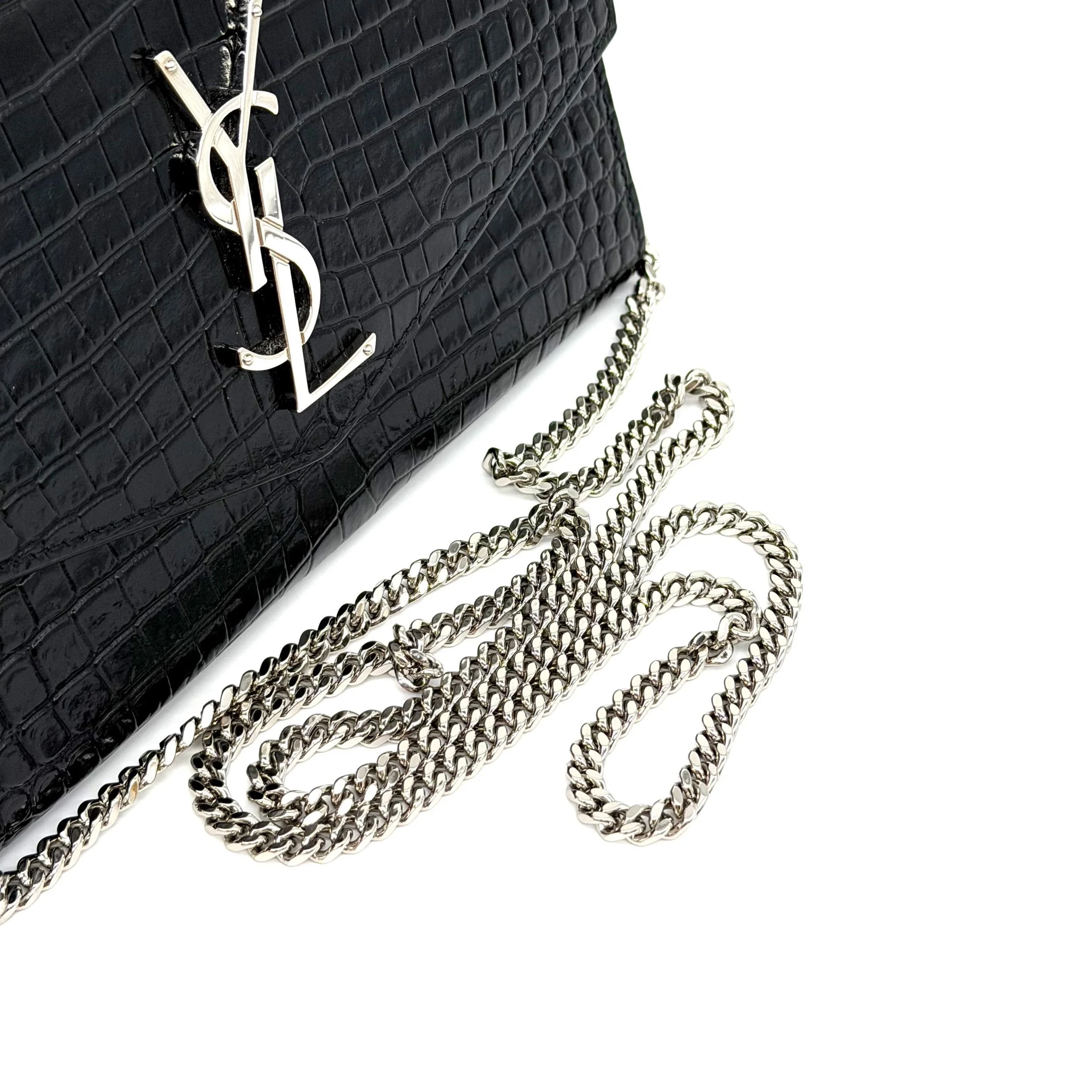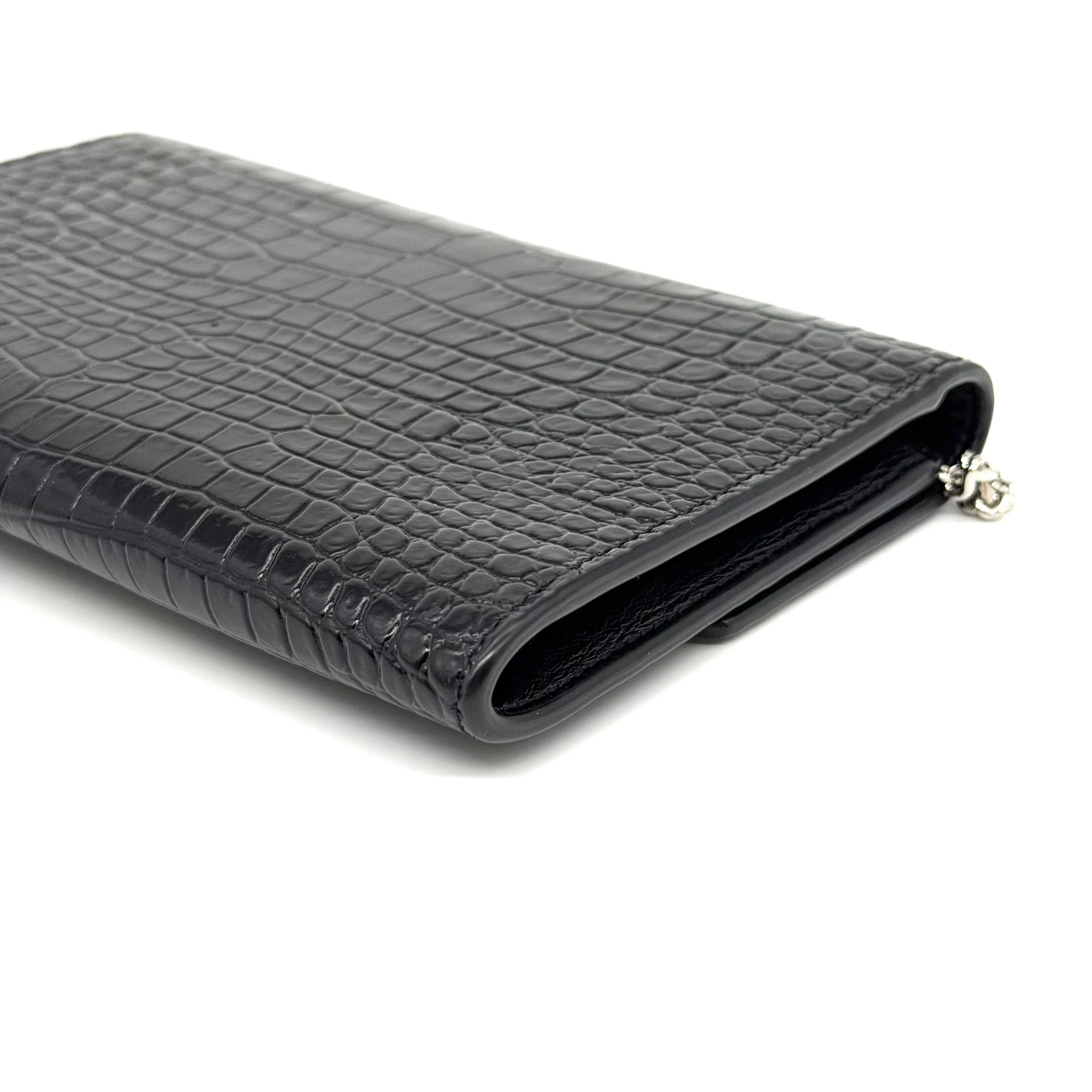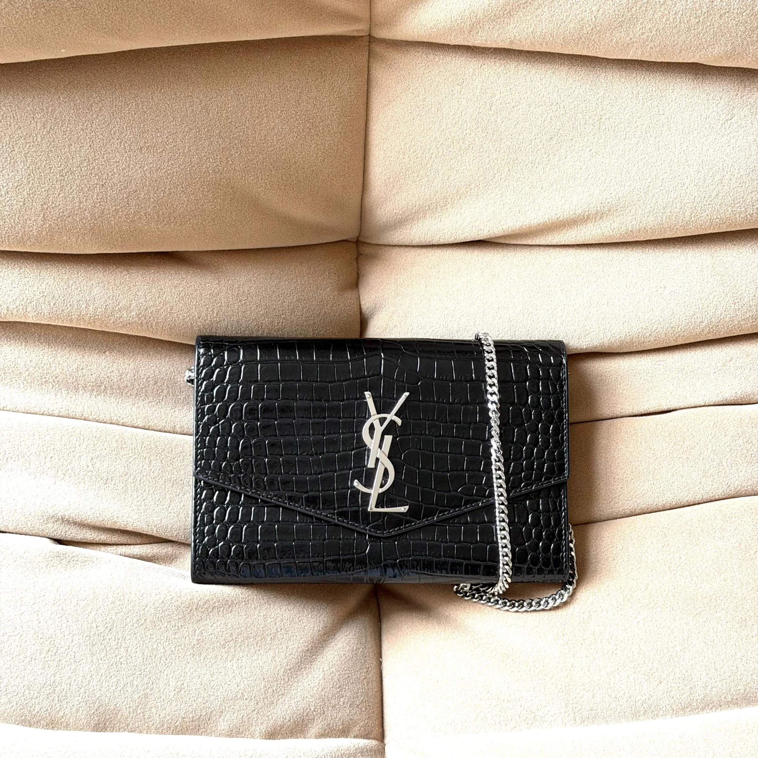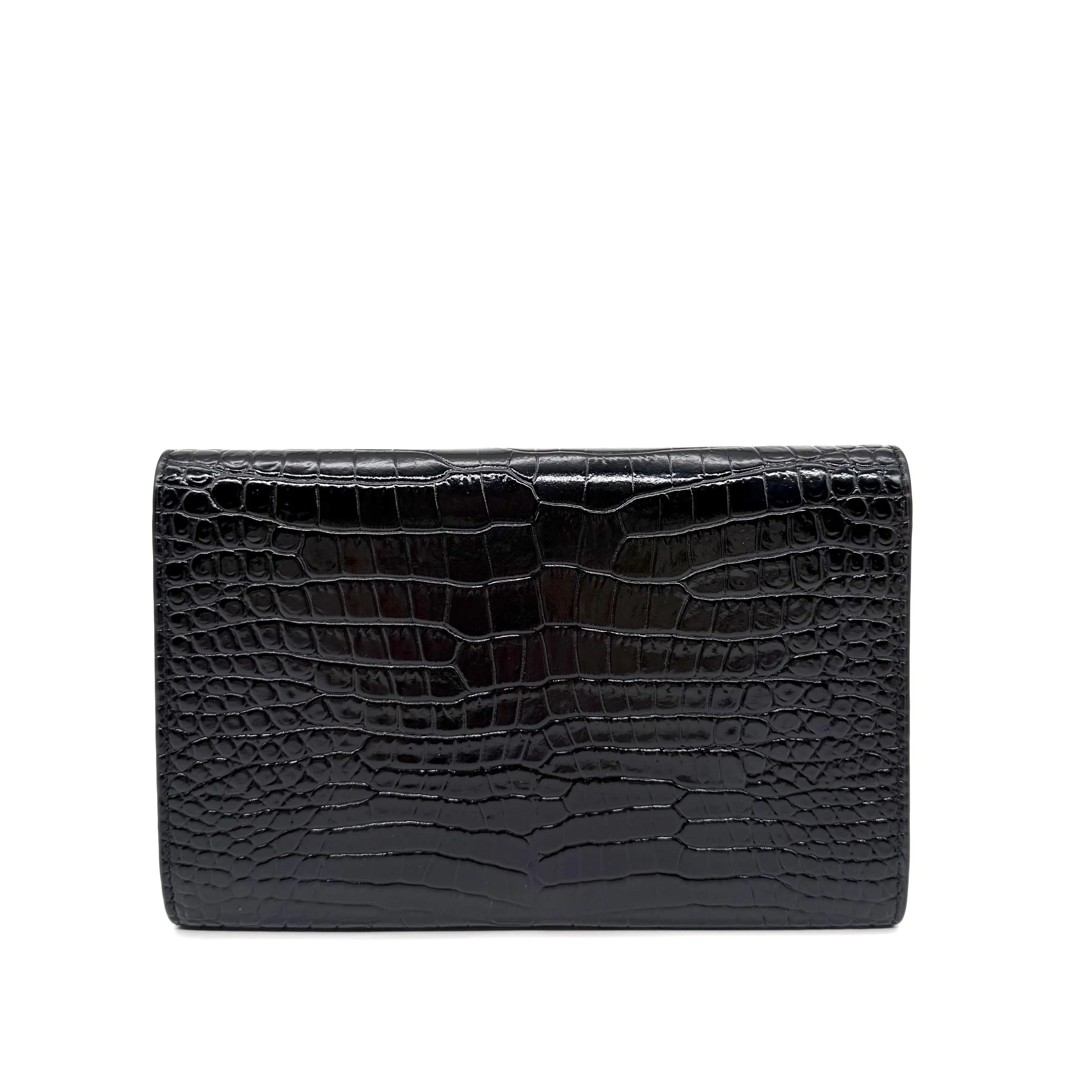 Item Description/Model: Saint Laurent YSL Uptown Wallet on Chain Bag and Card Holder in Black Croc Embossed Leather Silver Hardware