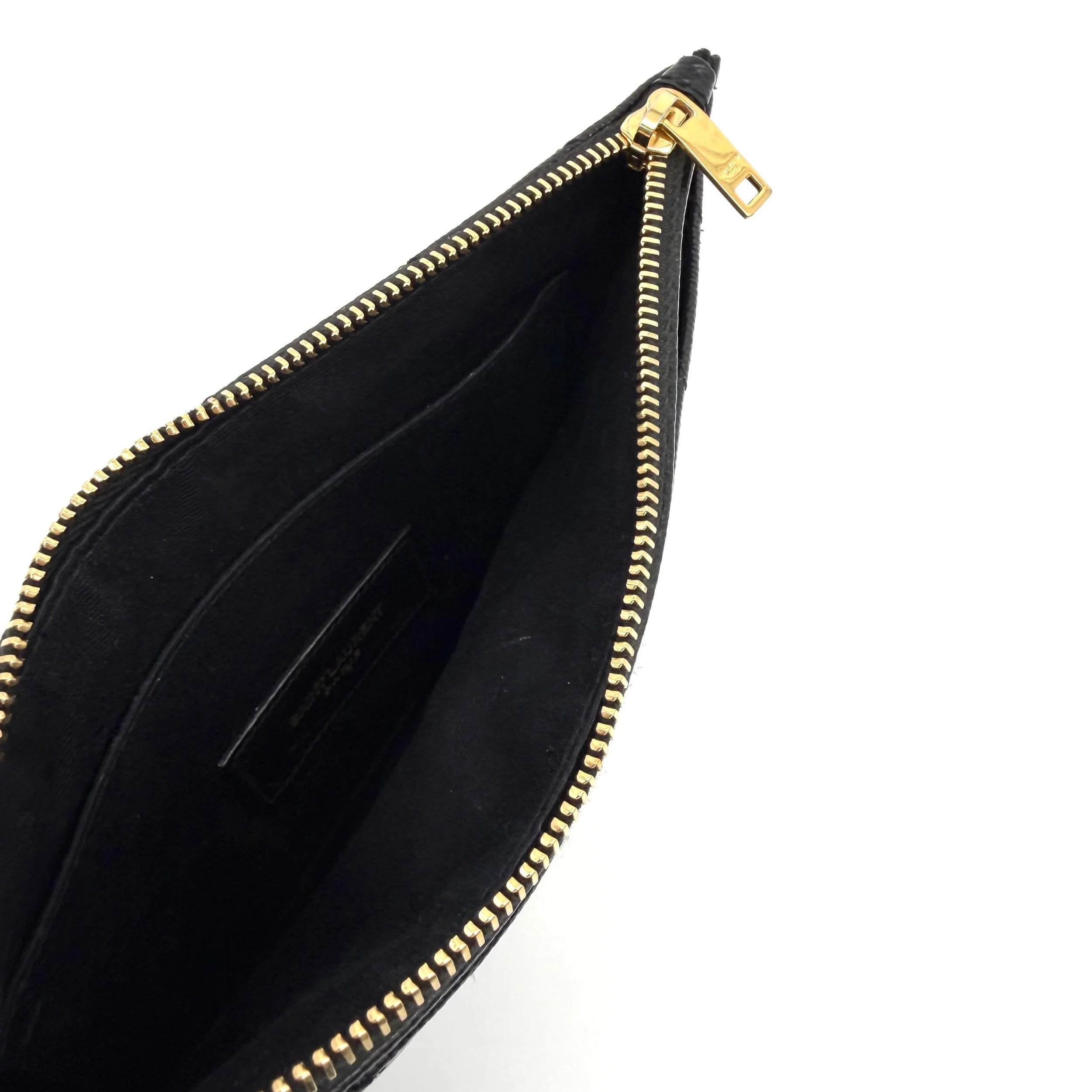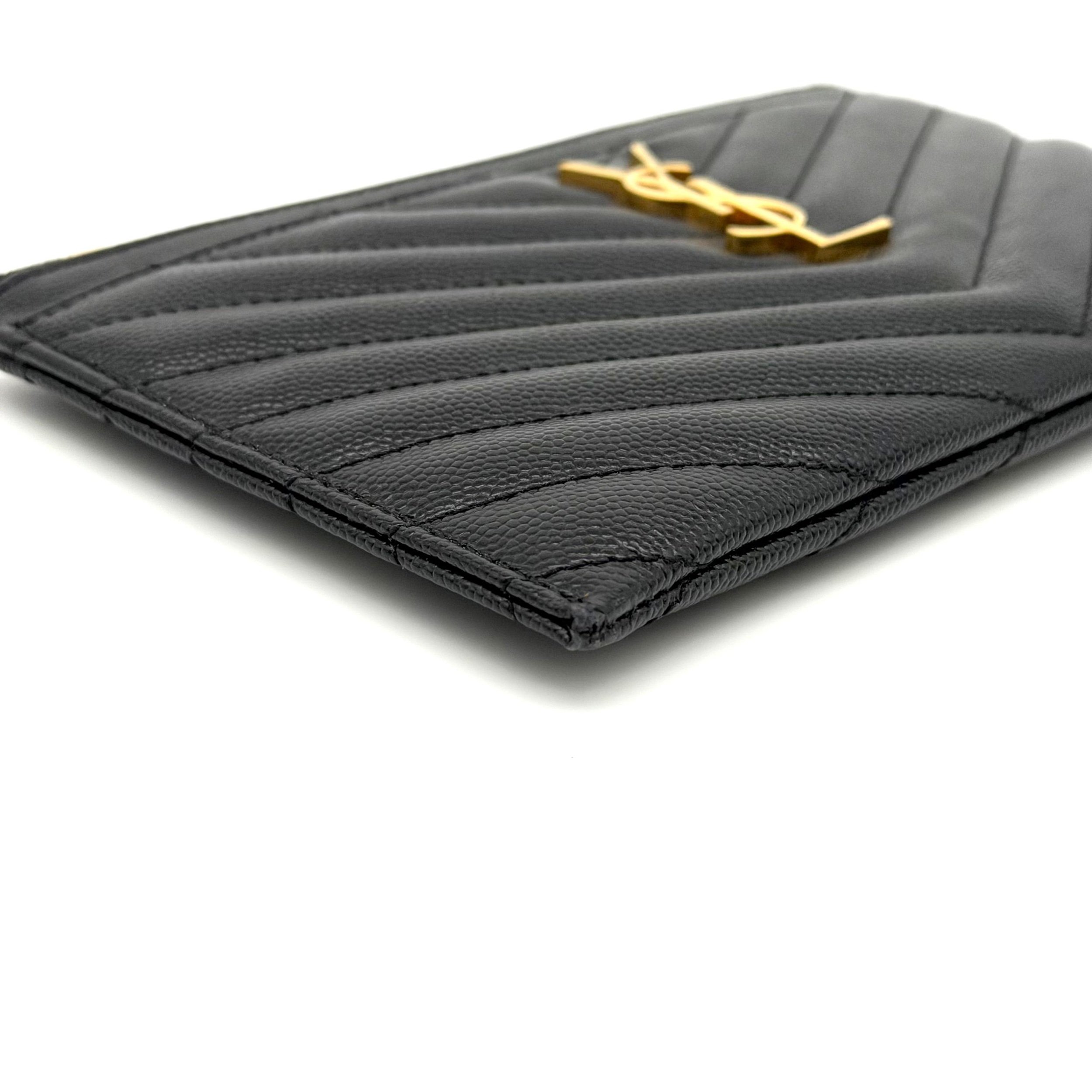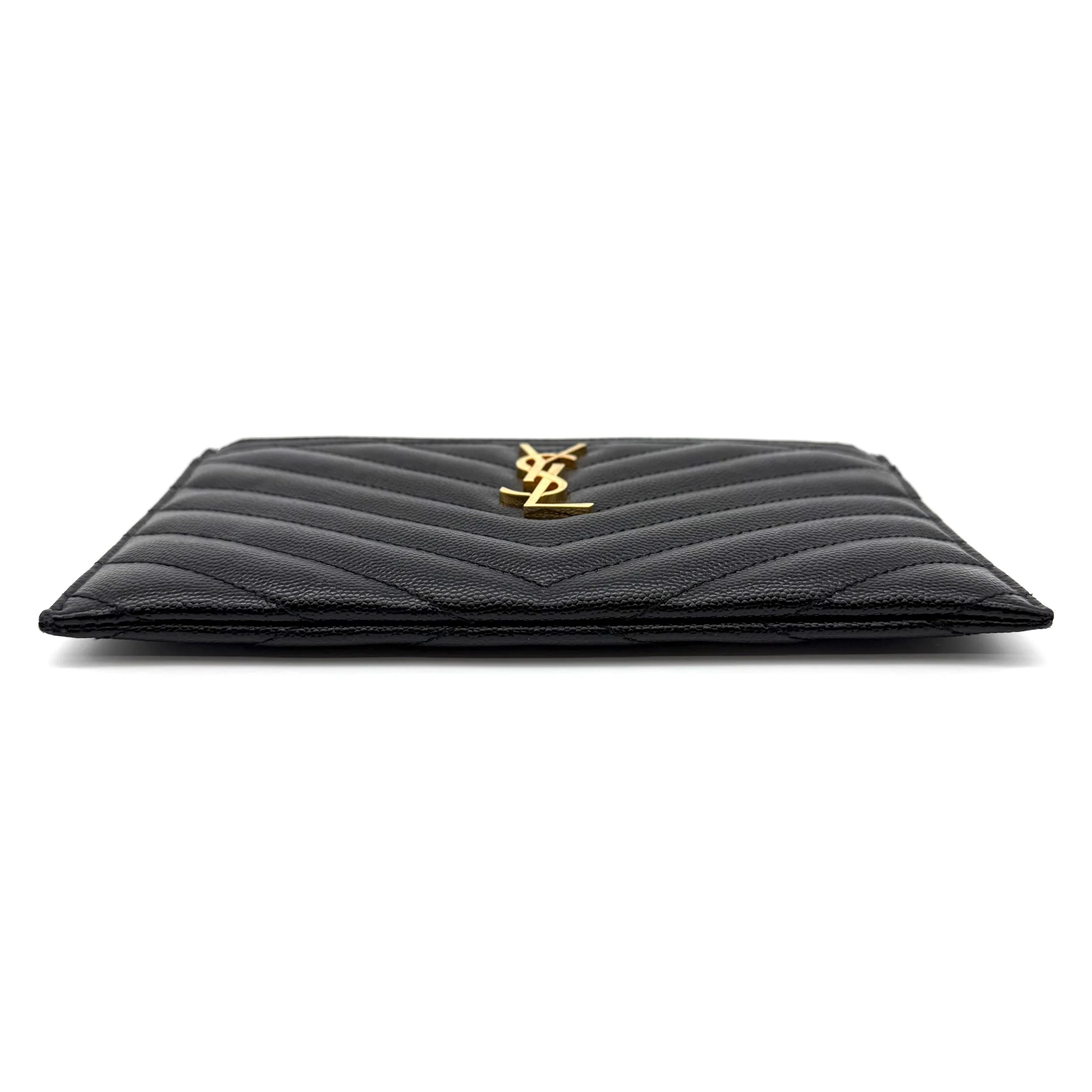 Item Description/Model: Saint Laurent YSL Cassandre Monogram Zip Bill Pouch Clutch Bag in Black Grained Leather Gold Hardware