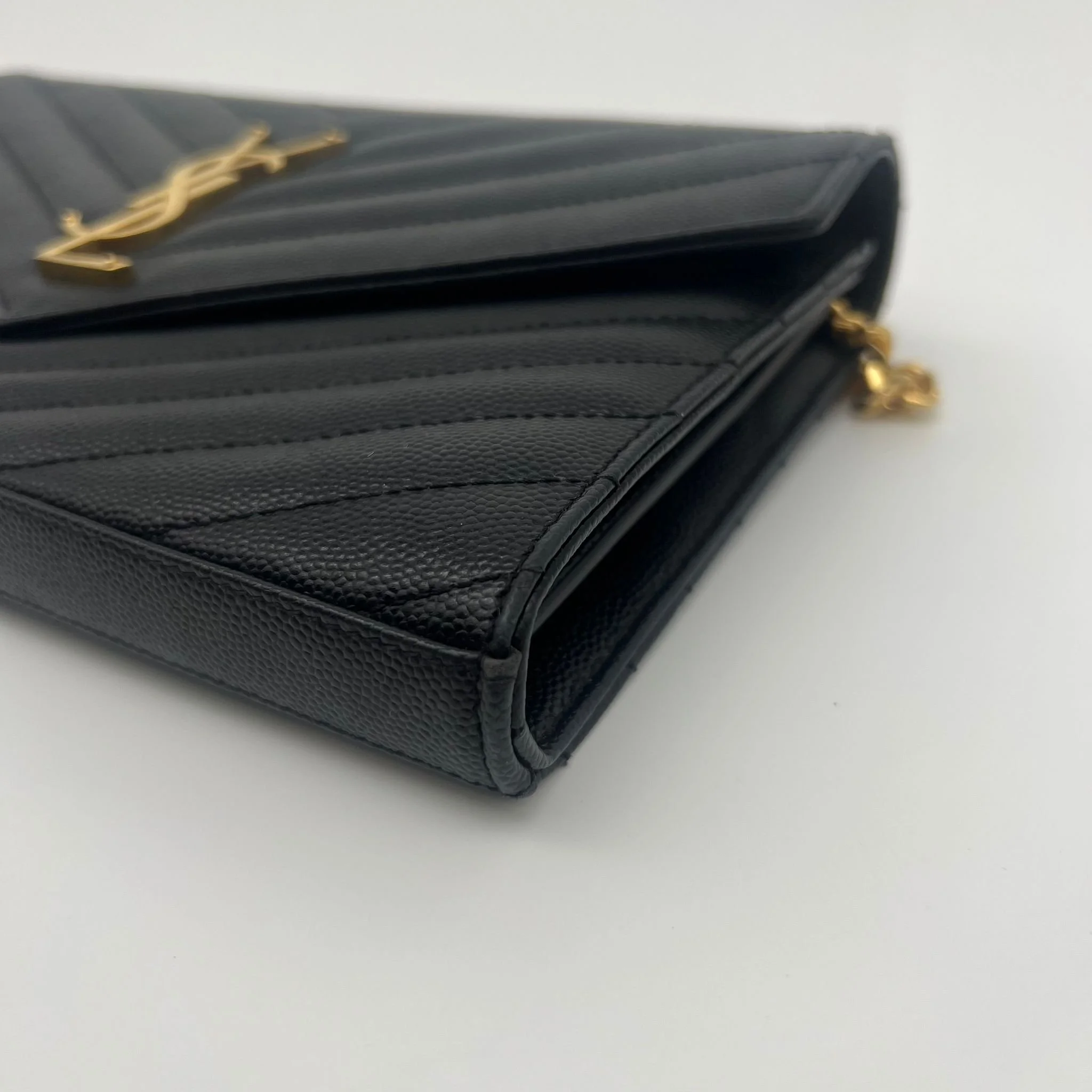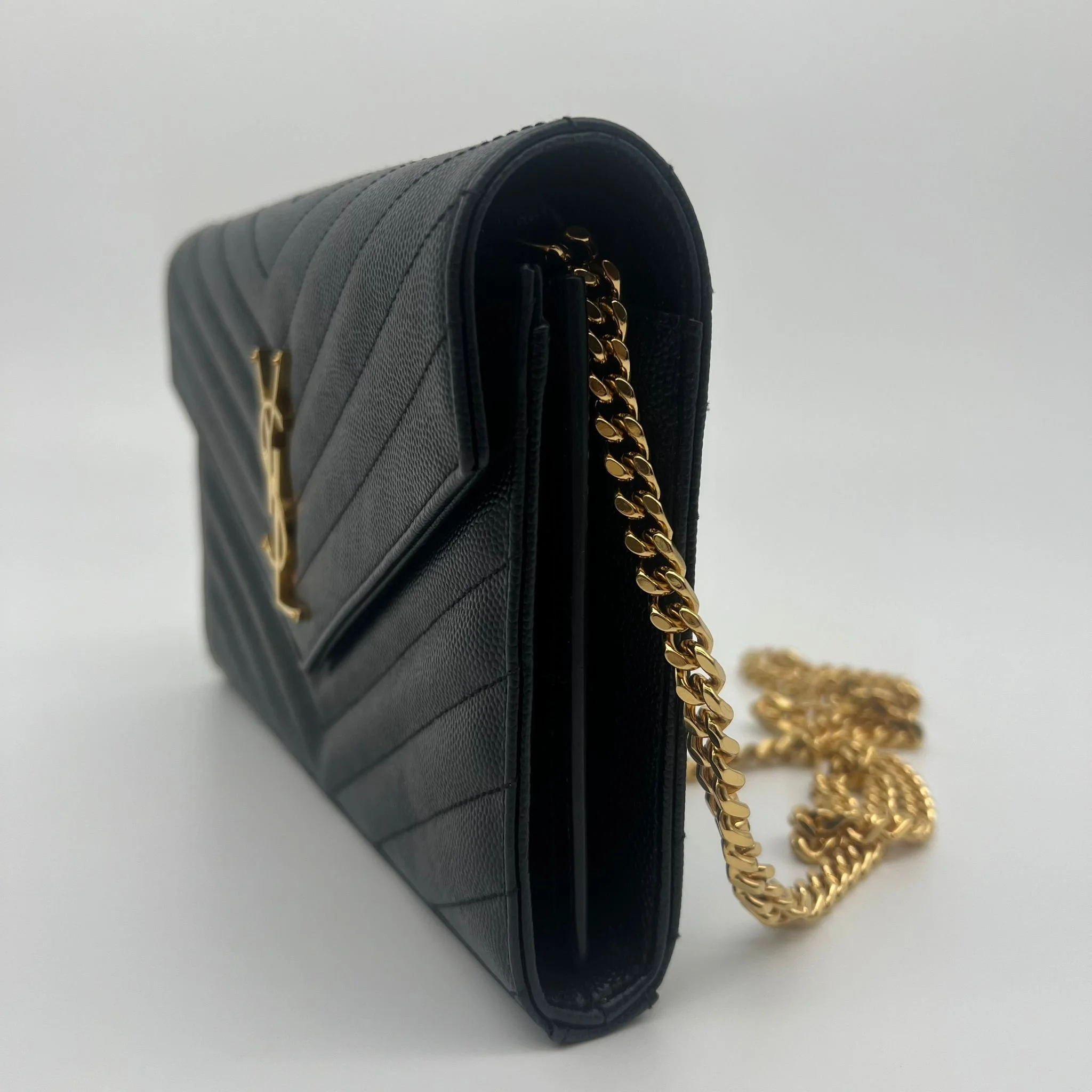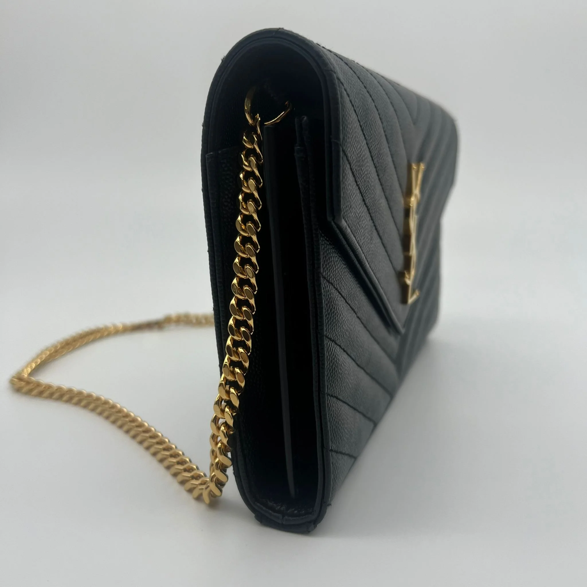 Saint Laurent YSL Envelope Wallet on Chain Bag in Black with Gold Hardware