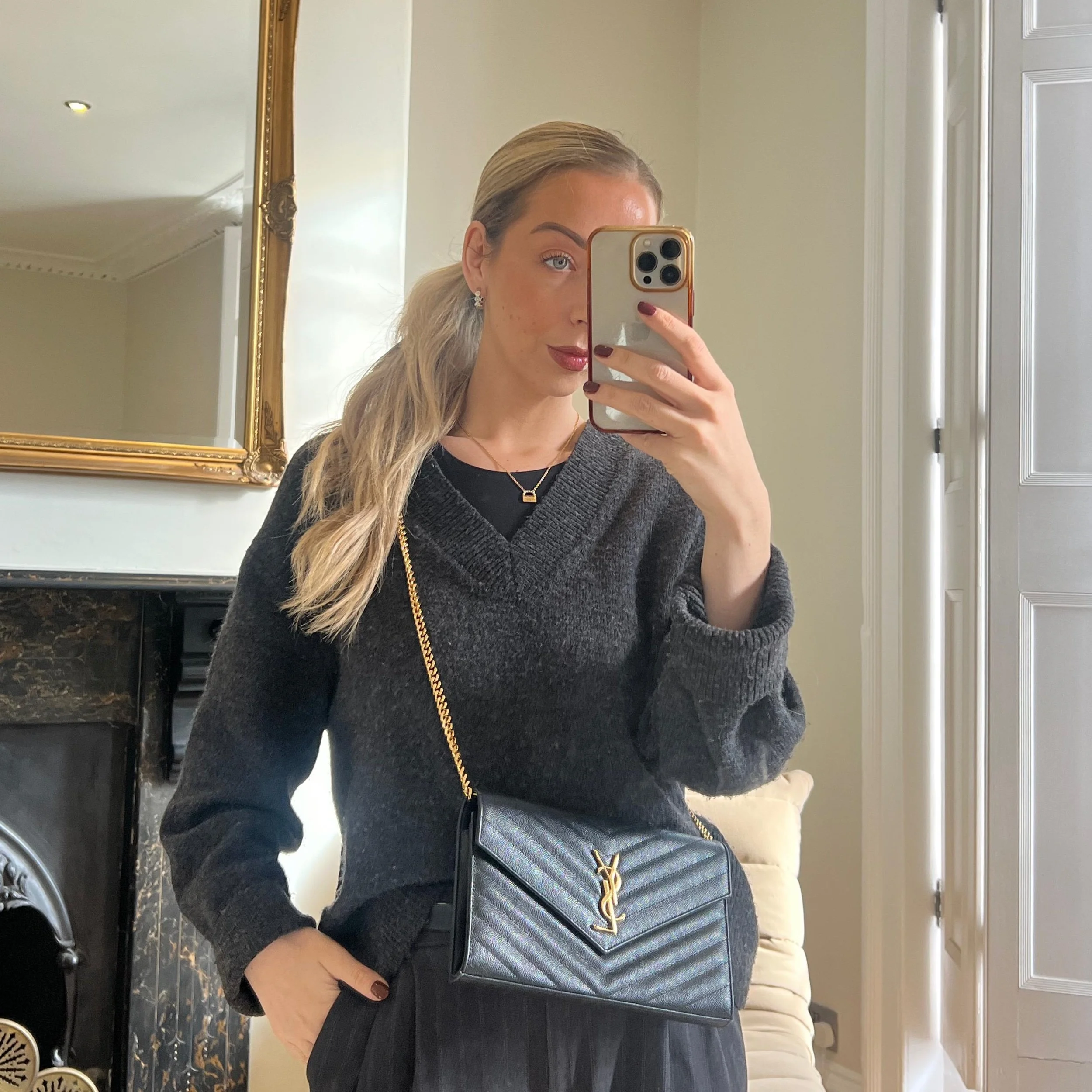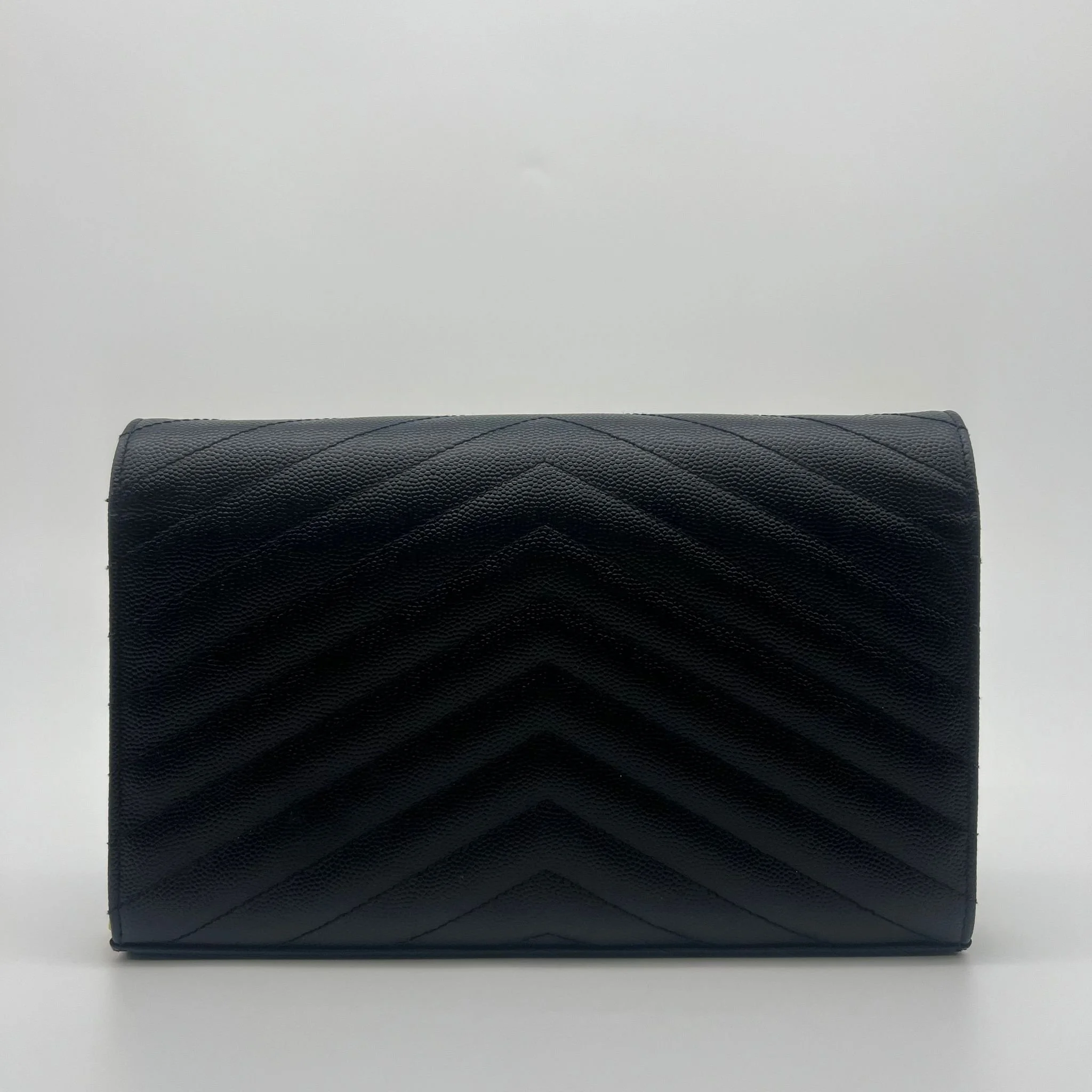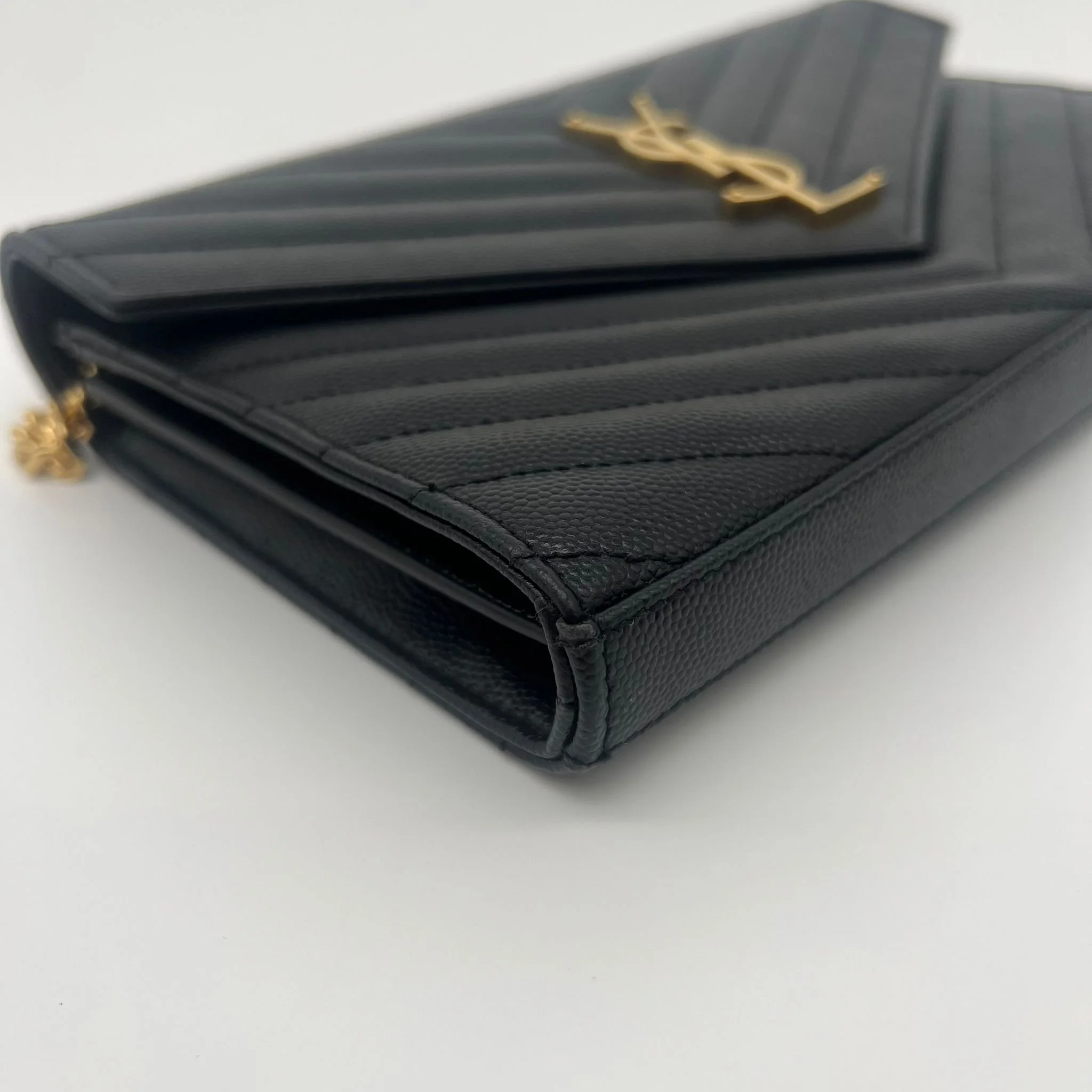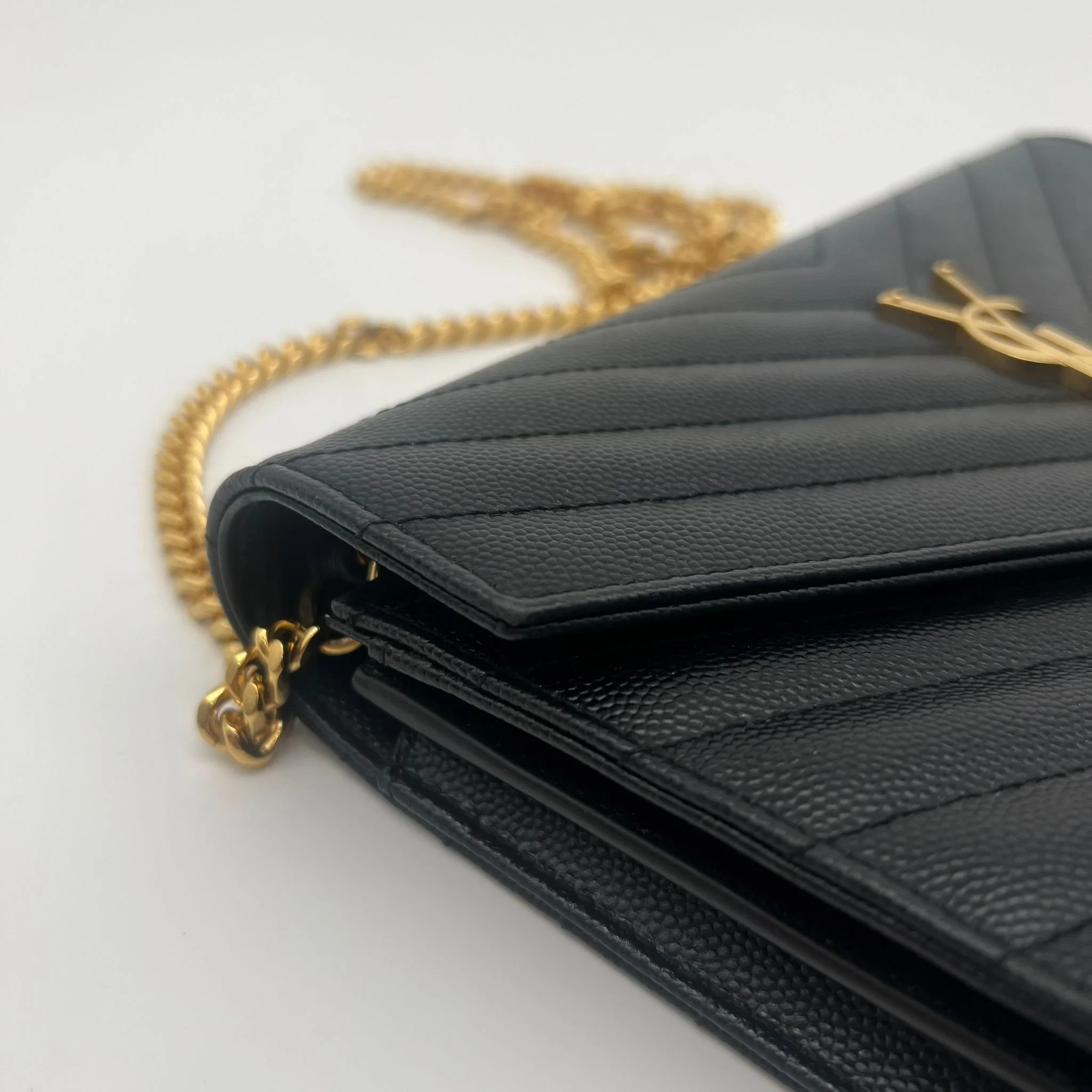Saint Laurent YSL Envelope Wallet on Chain Bag in Black with Gold Hardware