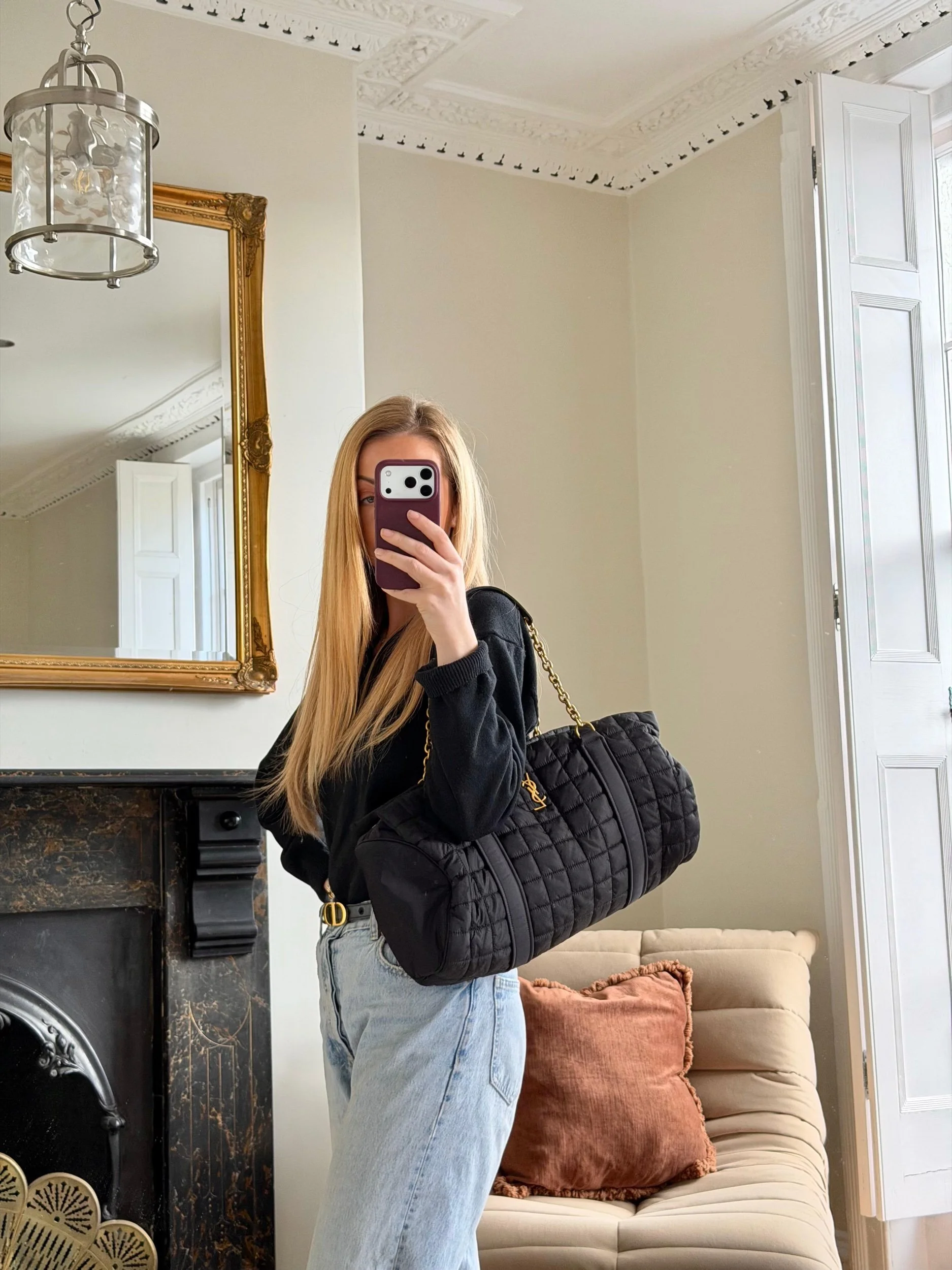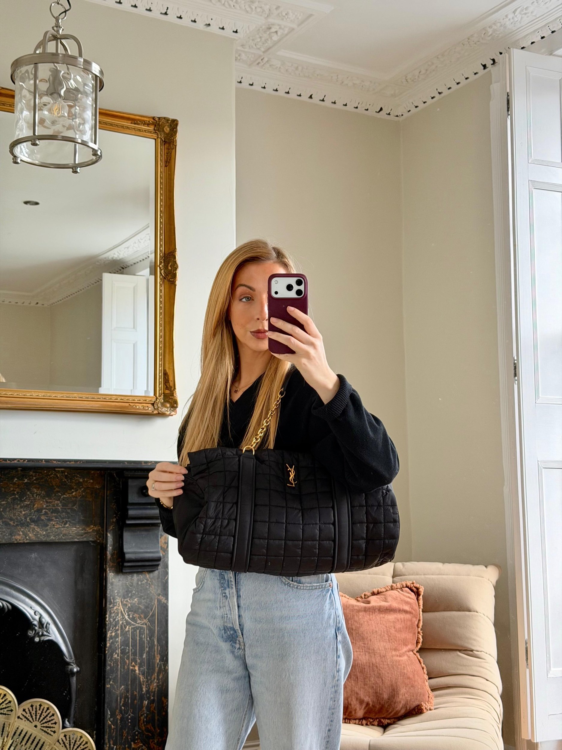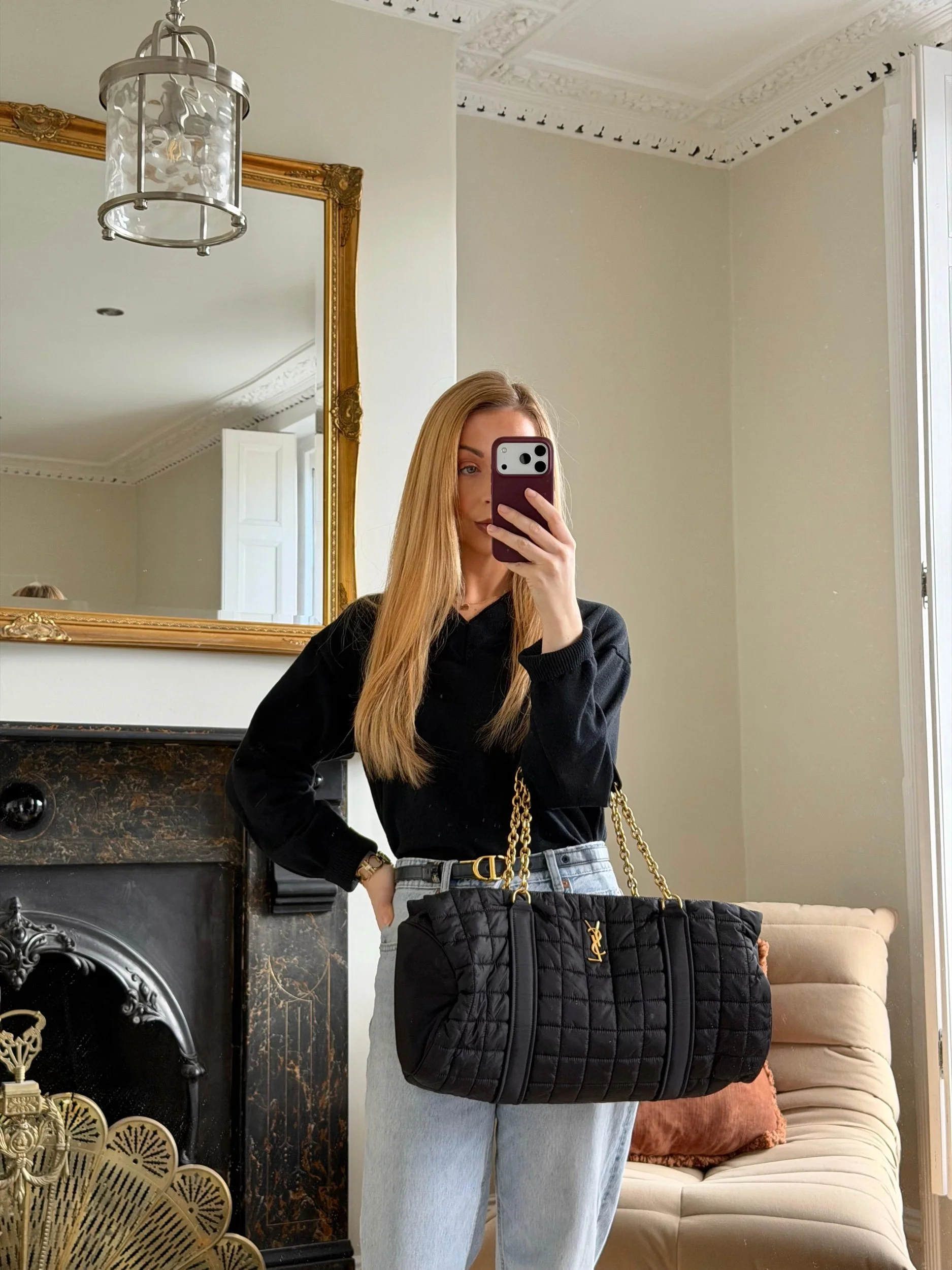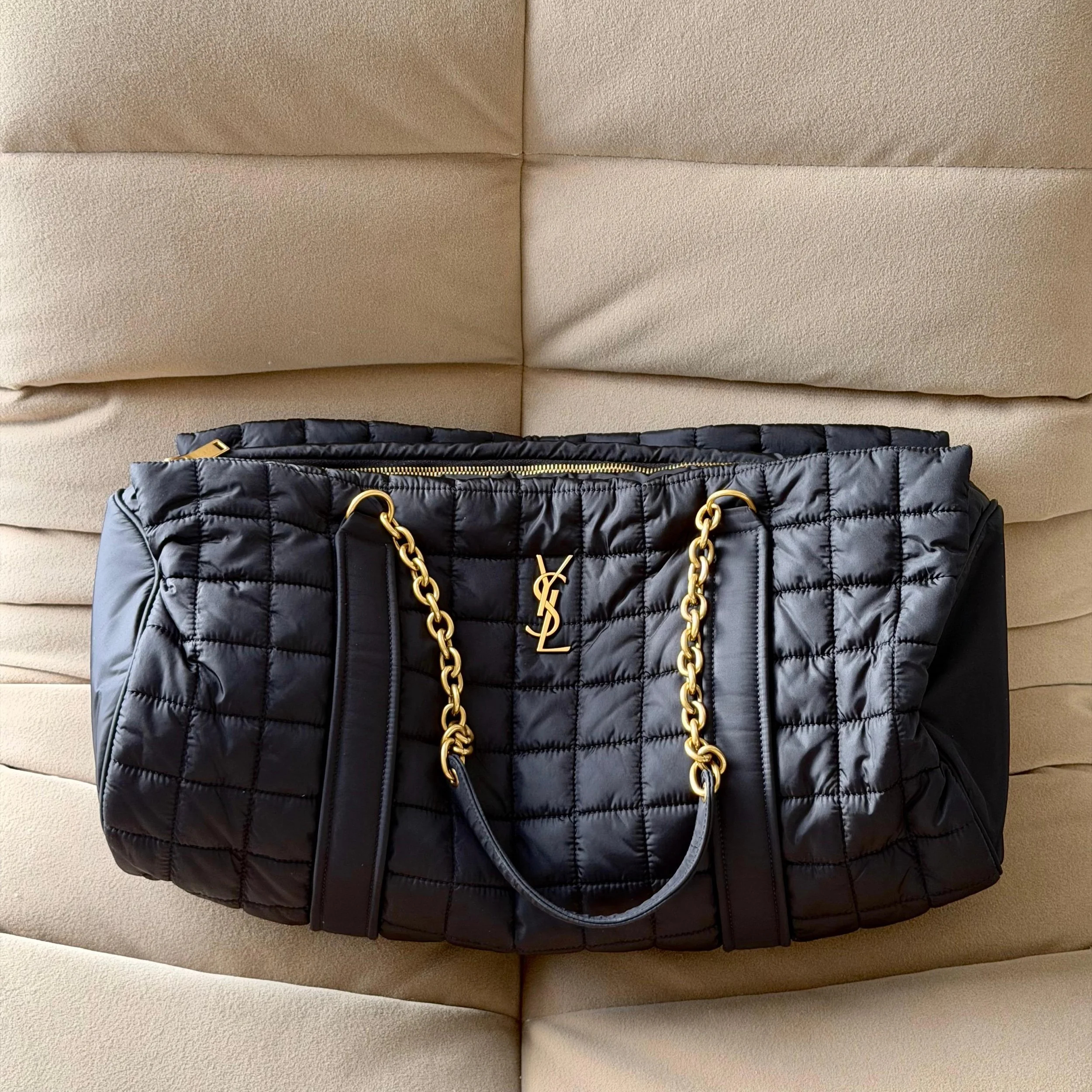 Item Description/Model: Saint Laurent YSL Gloria Quilted Nylon Holdall Bag Black with Gold Hardware