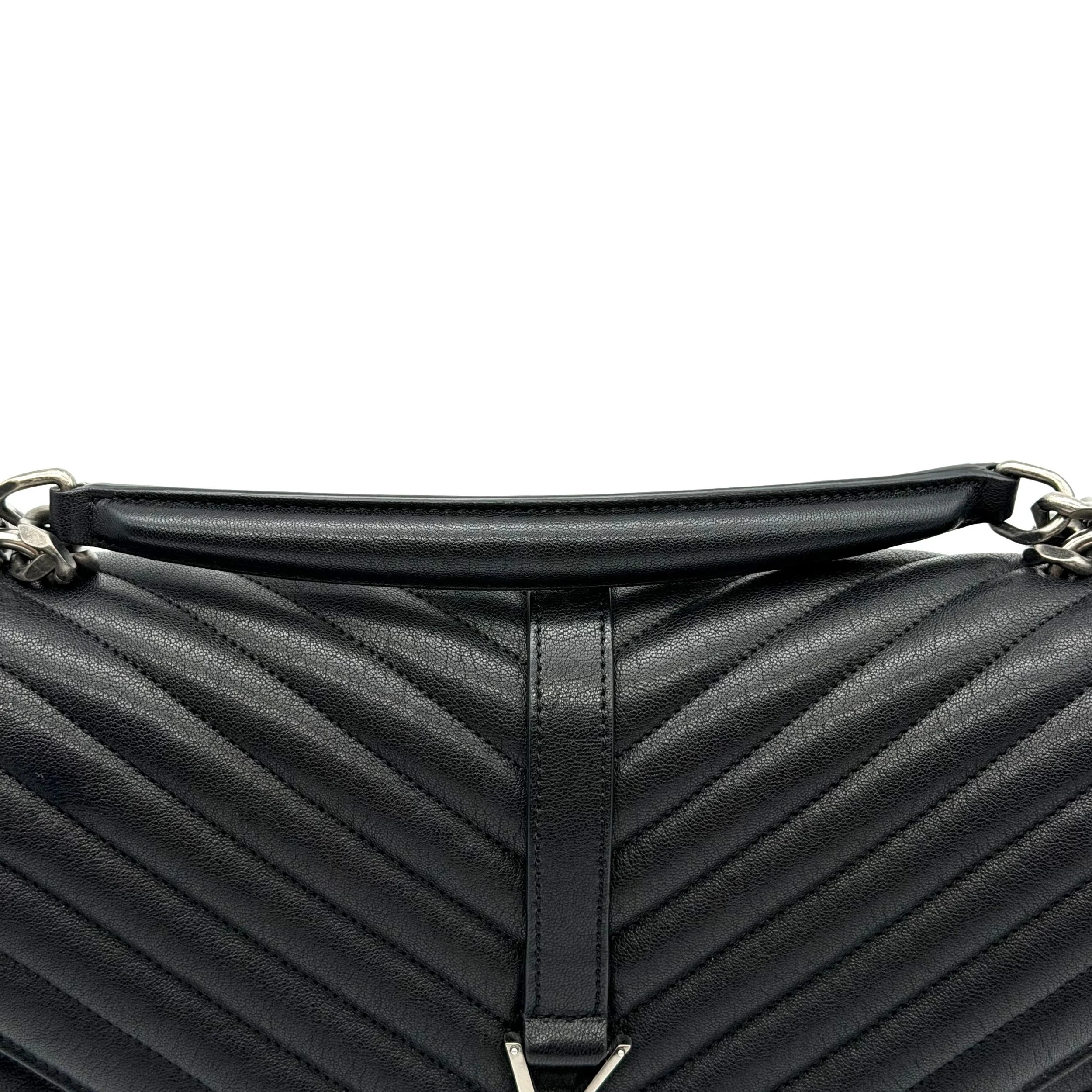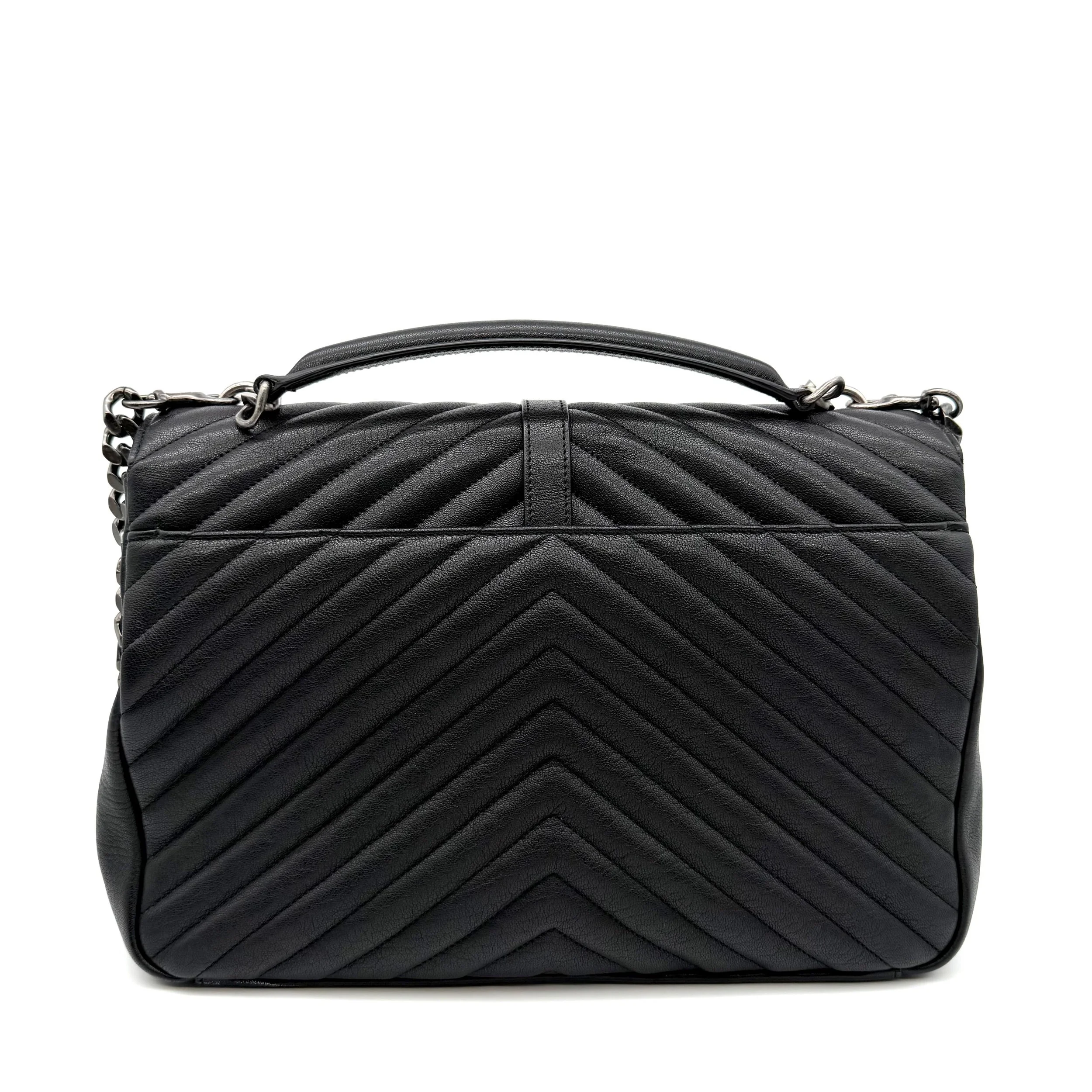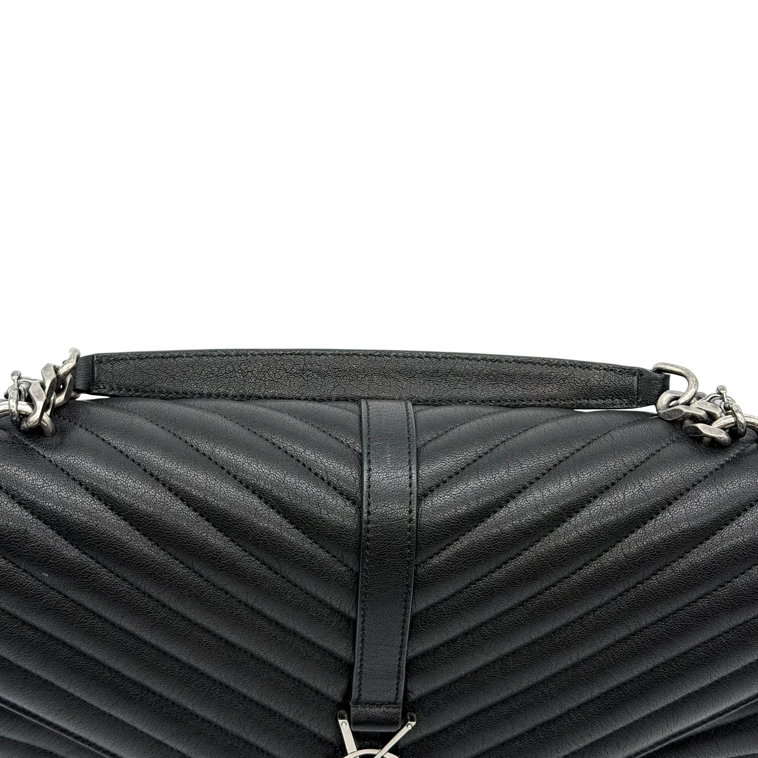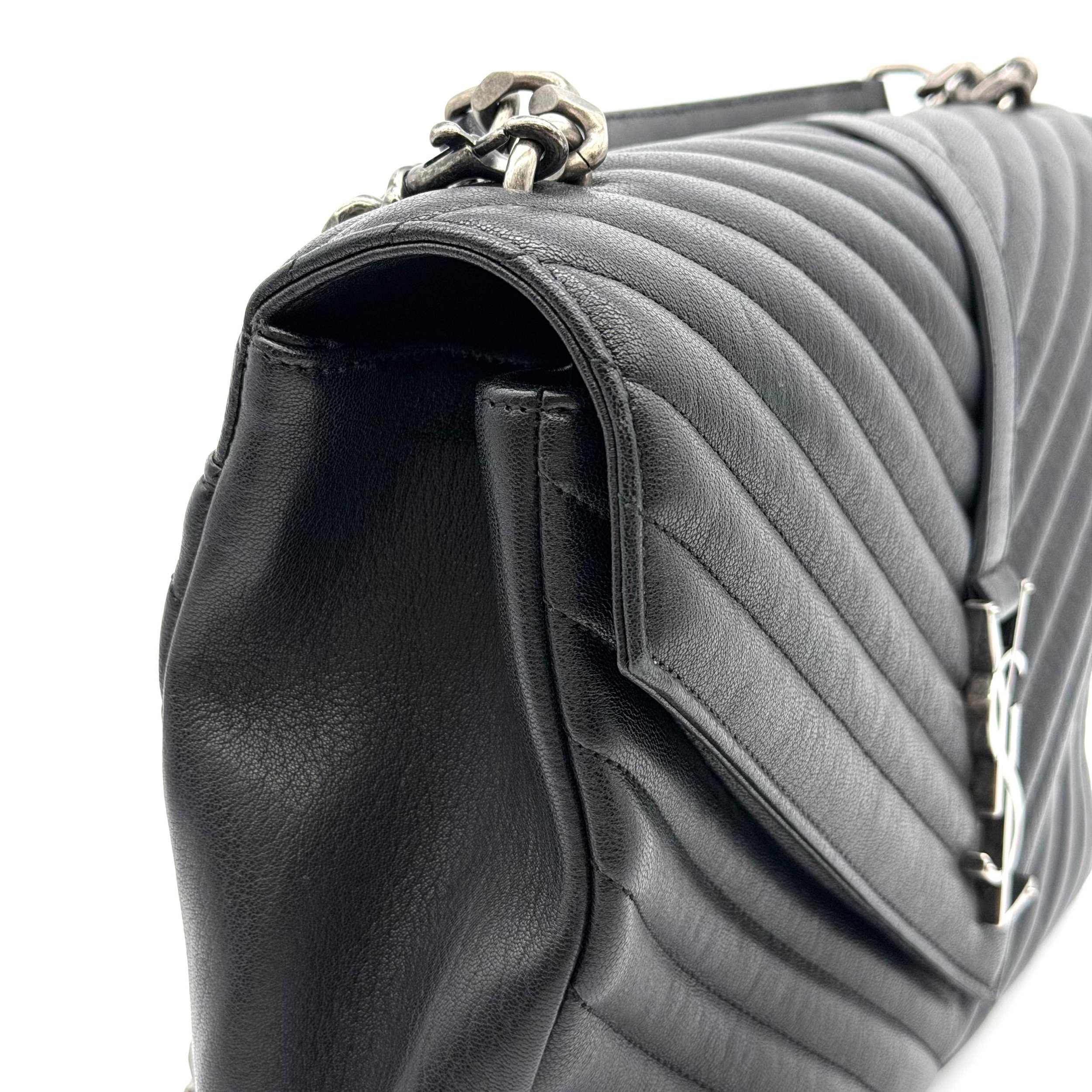 Item Description/Model: Saint Laurent YSL Large College Bag in Chevron Quilted Black Leather Aged Silver Hardware