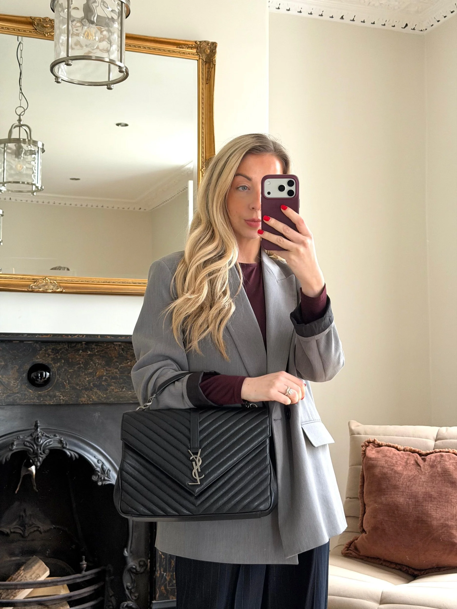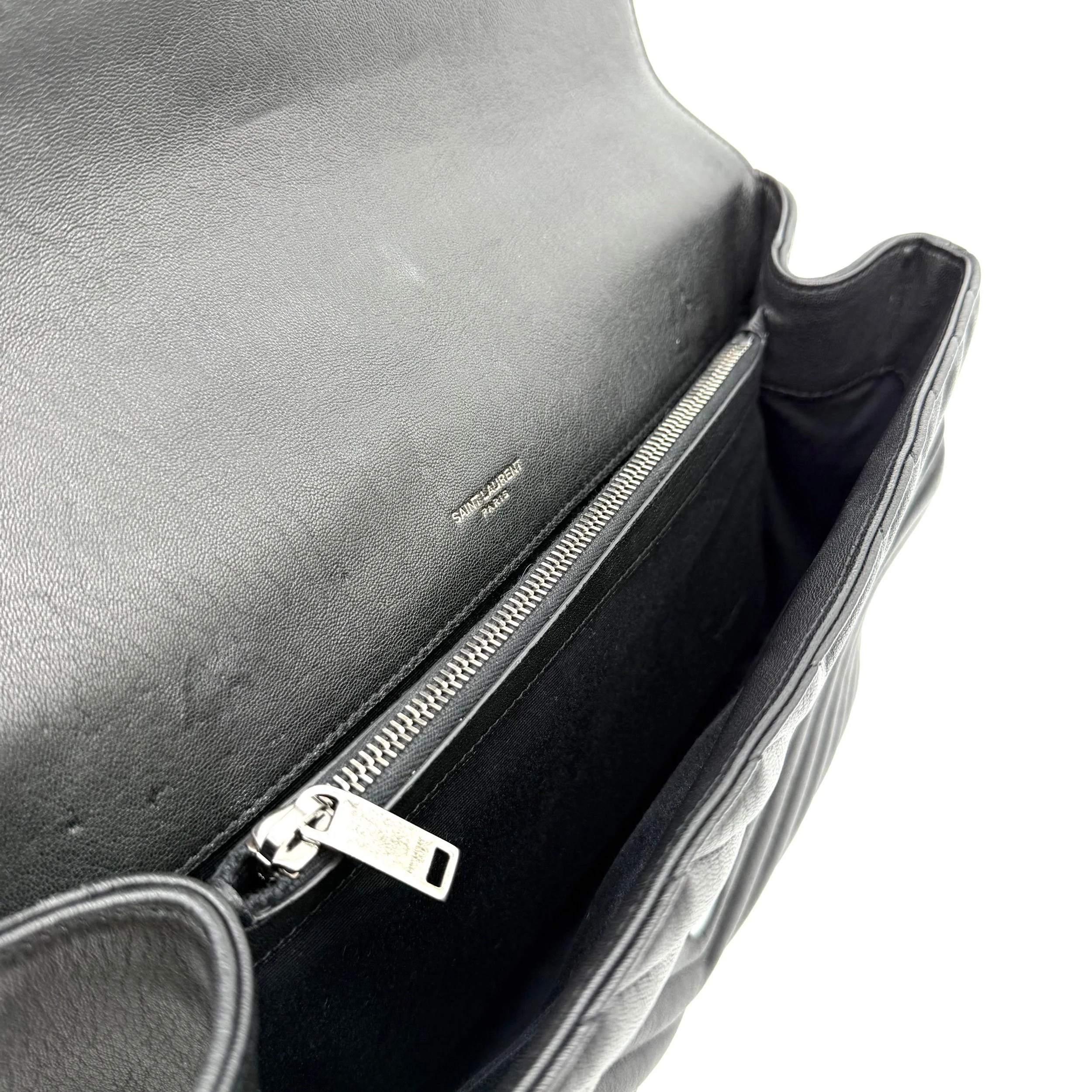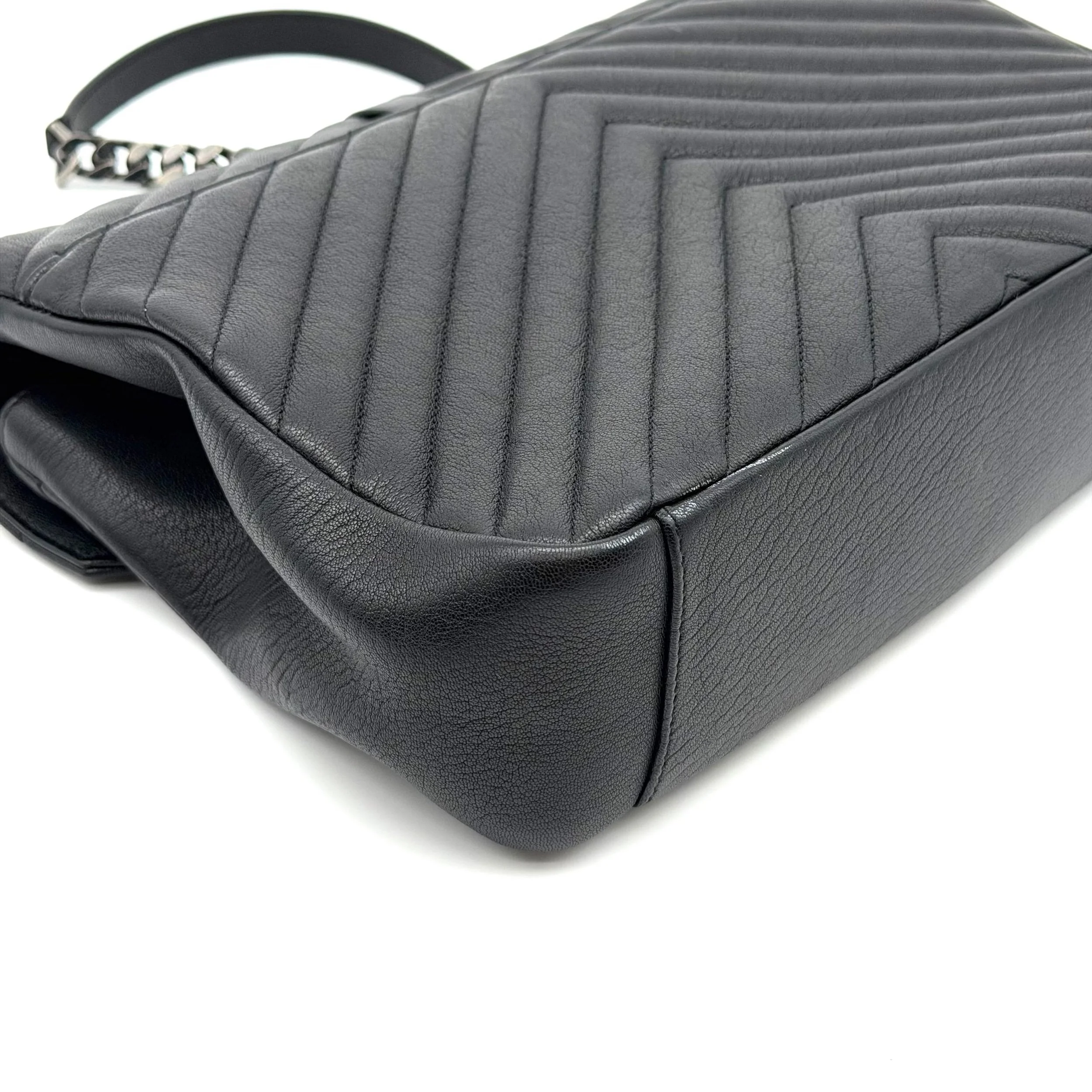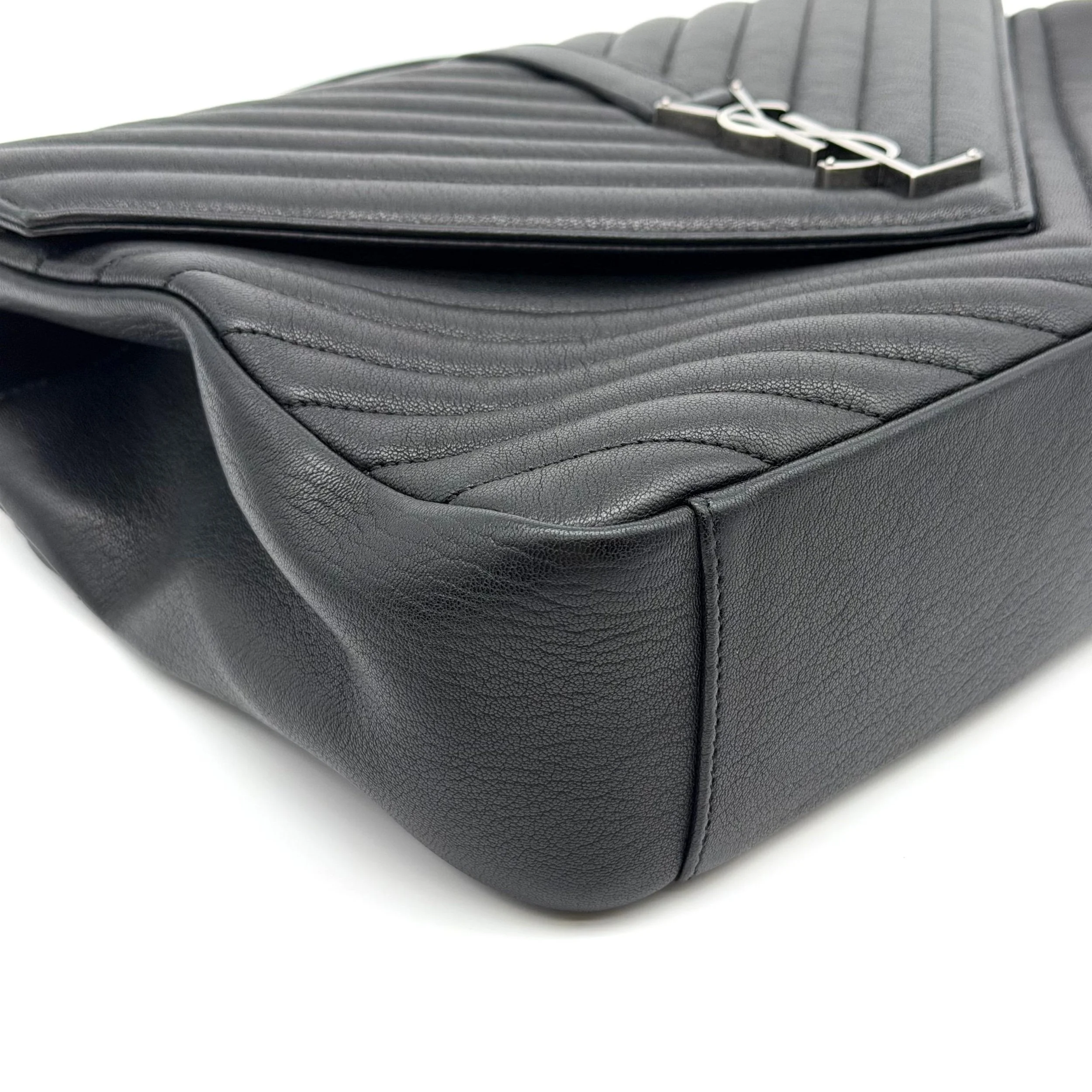 Item Description/Model: Saint Laurent YSL Large College Bag in Chevron Quilted Black Leather Aged Silver Hardware