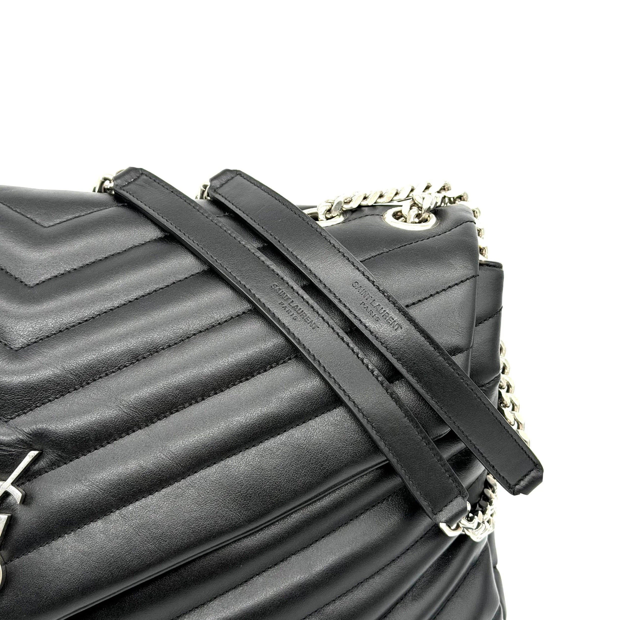 Saint Laurent YSL Large Loulou Bag in Black Quilted Leather and Silver Hardware