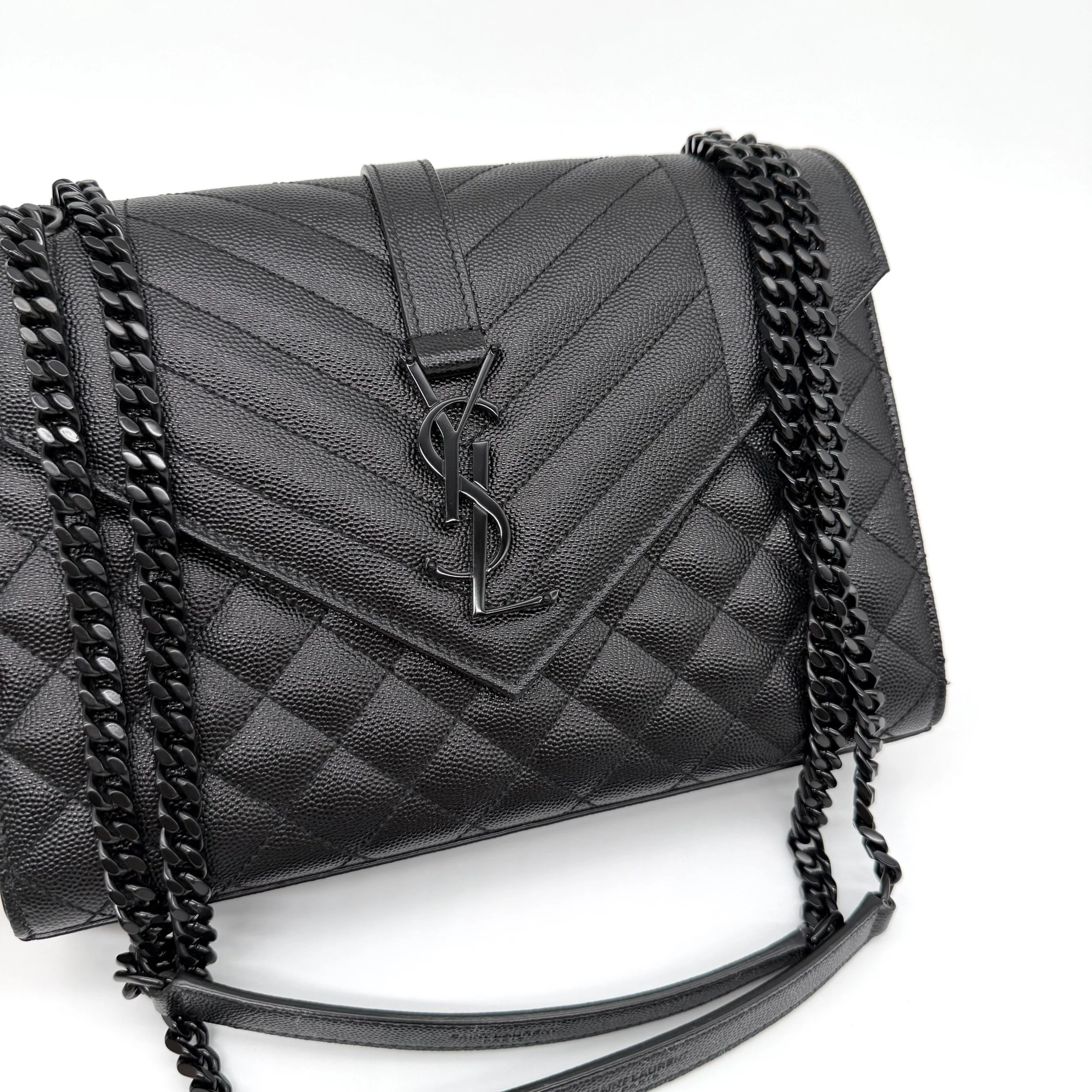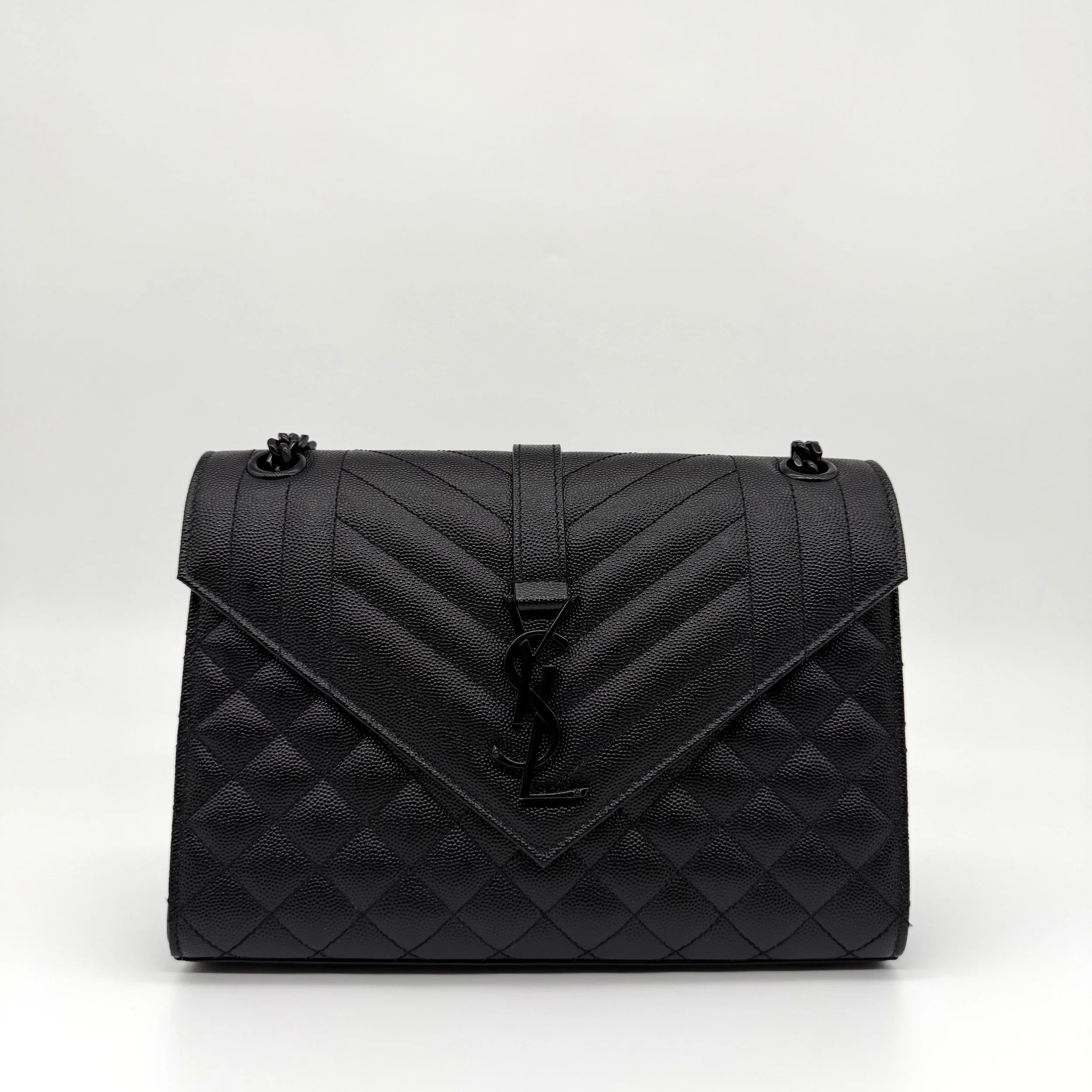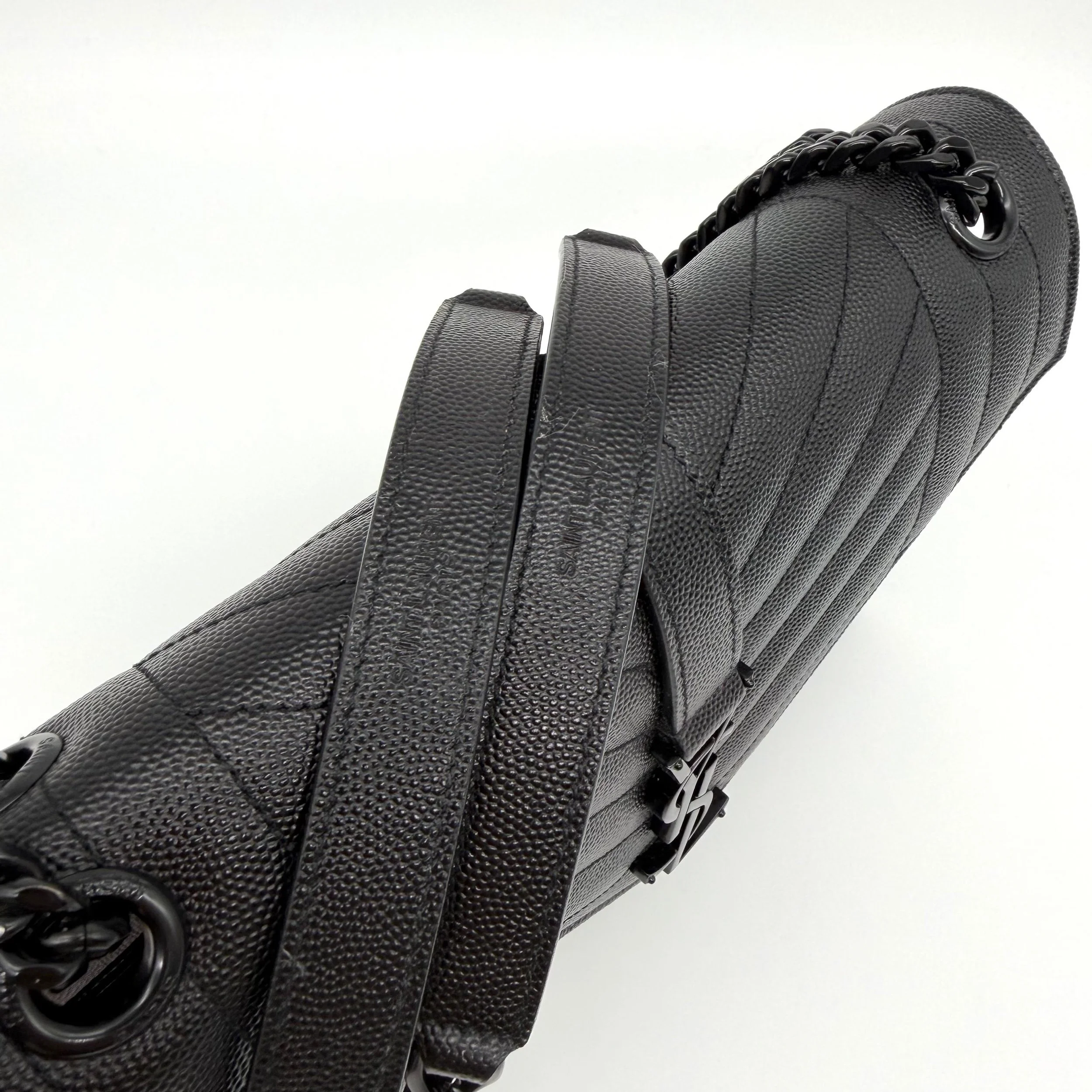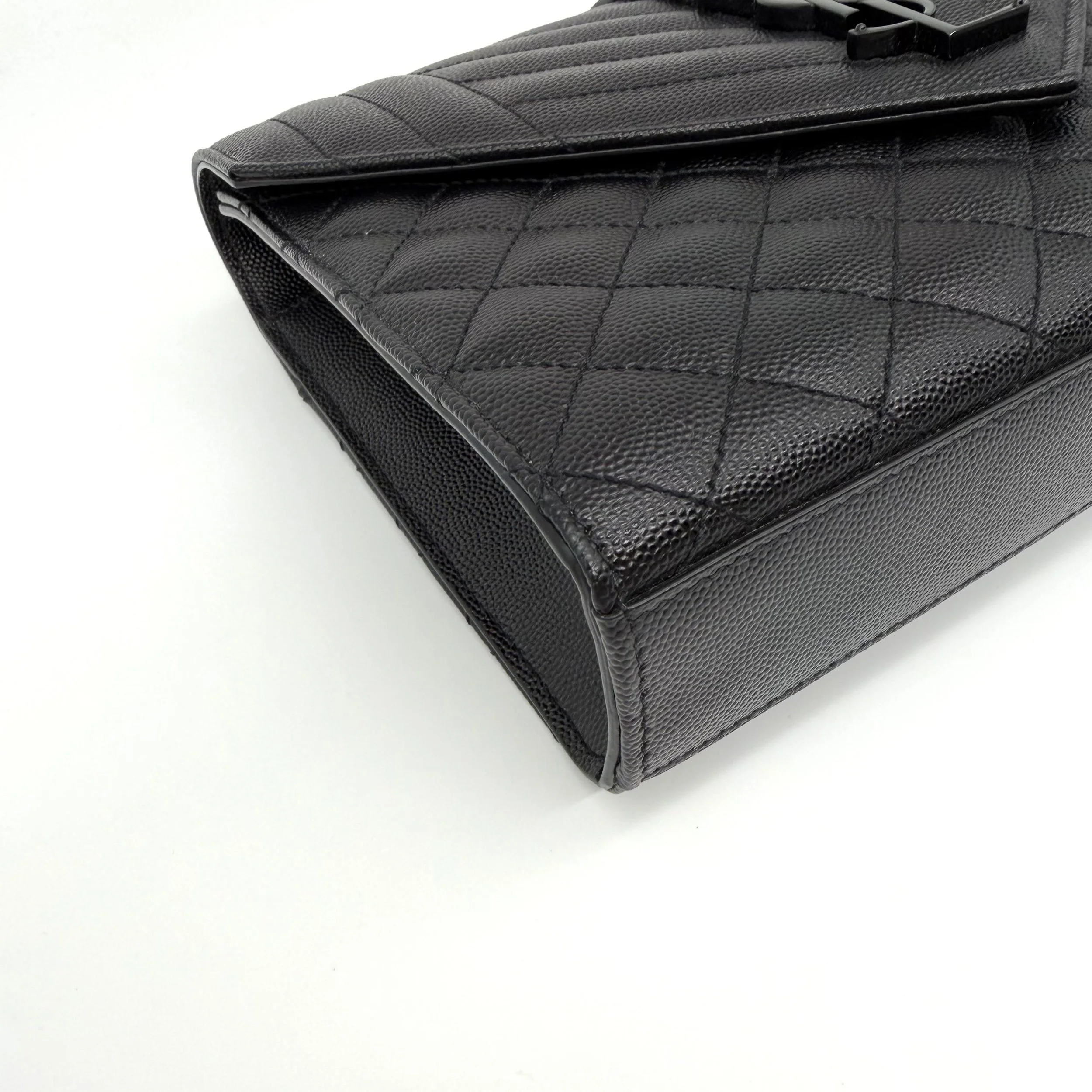 Item Description/Model: Saint Laurent YSL Medium Envelope Bag in Black Quilted Grained Leather and Black Hardware
