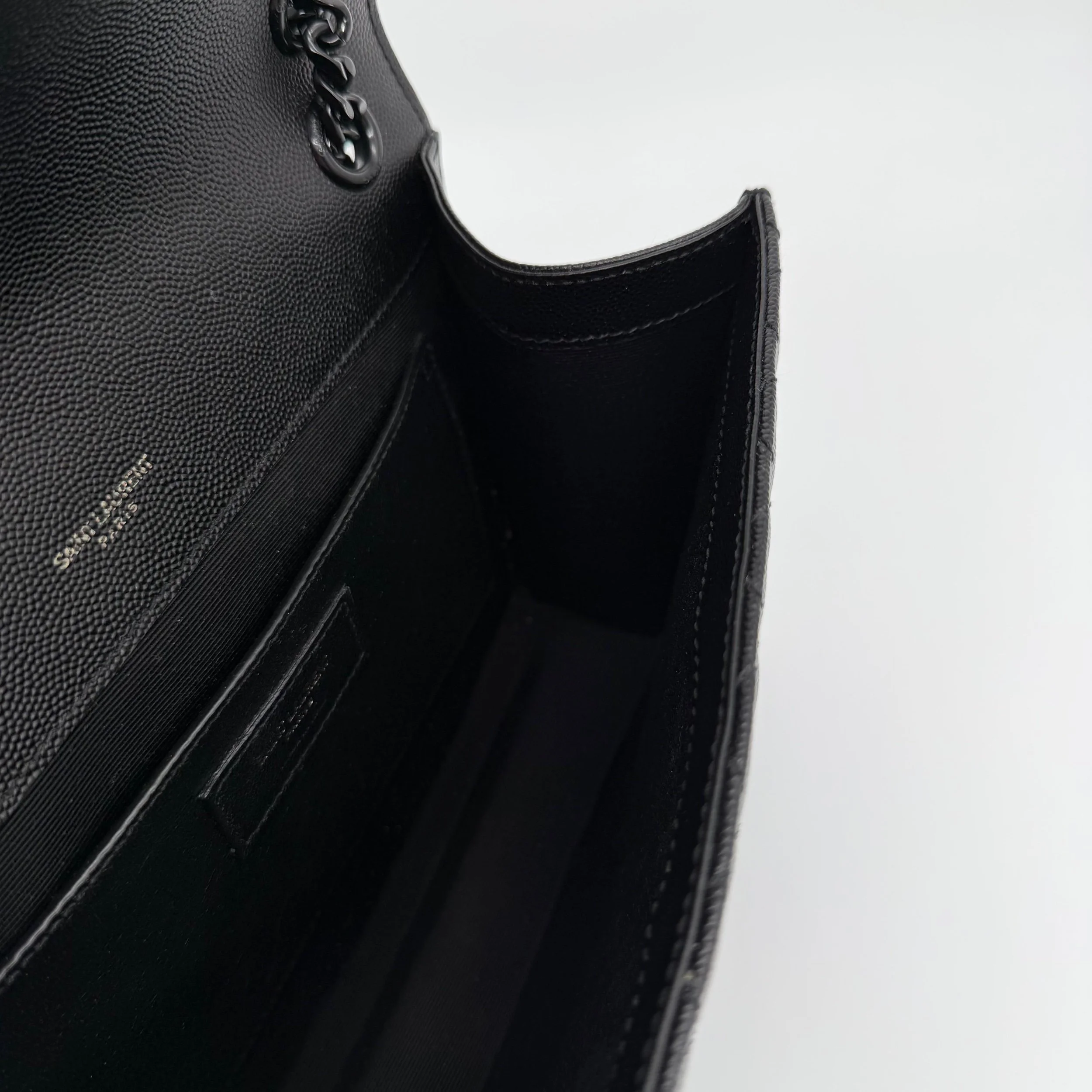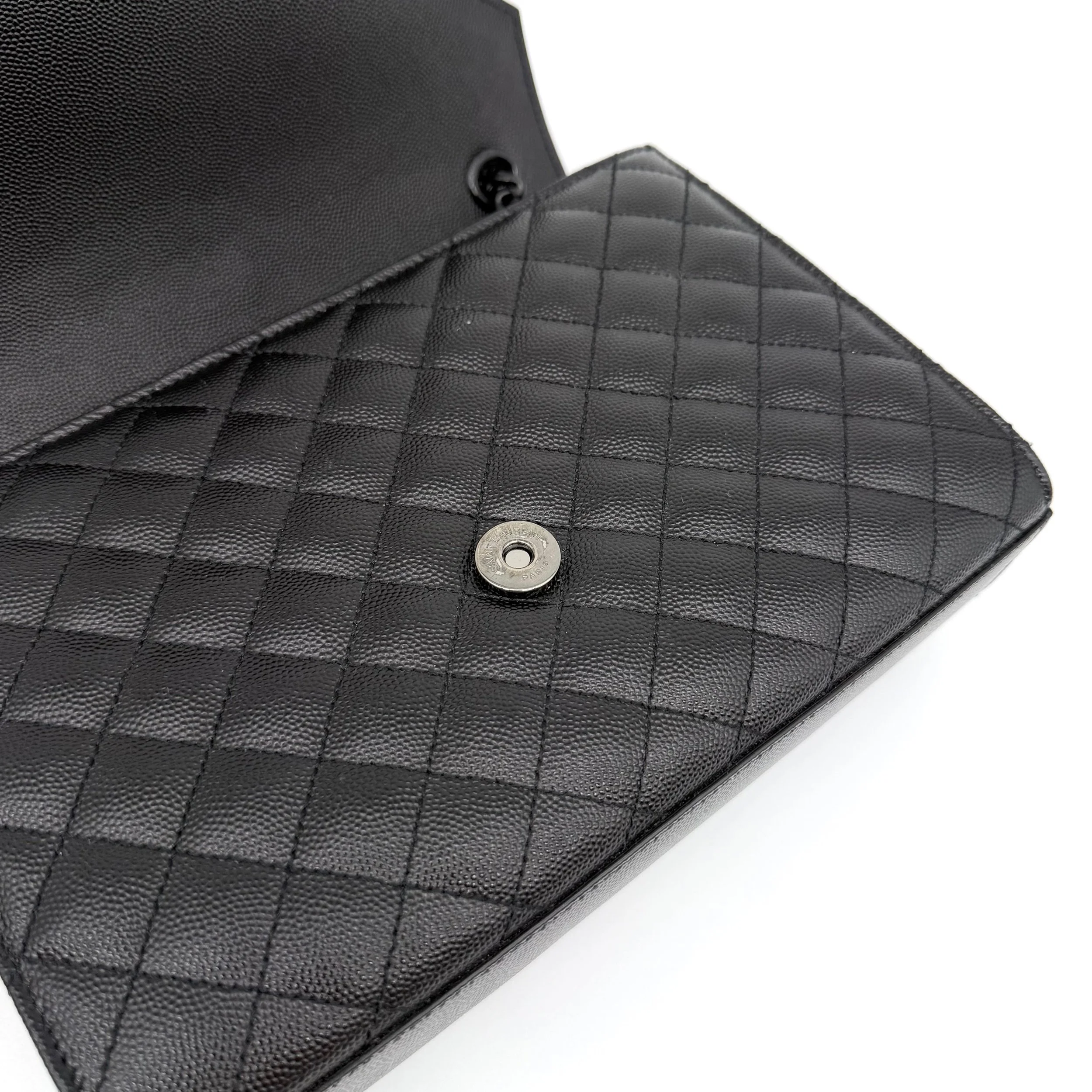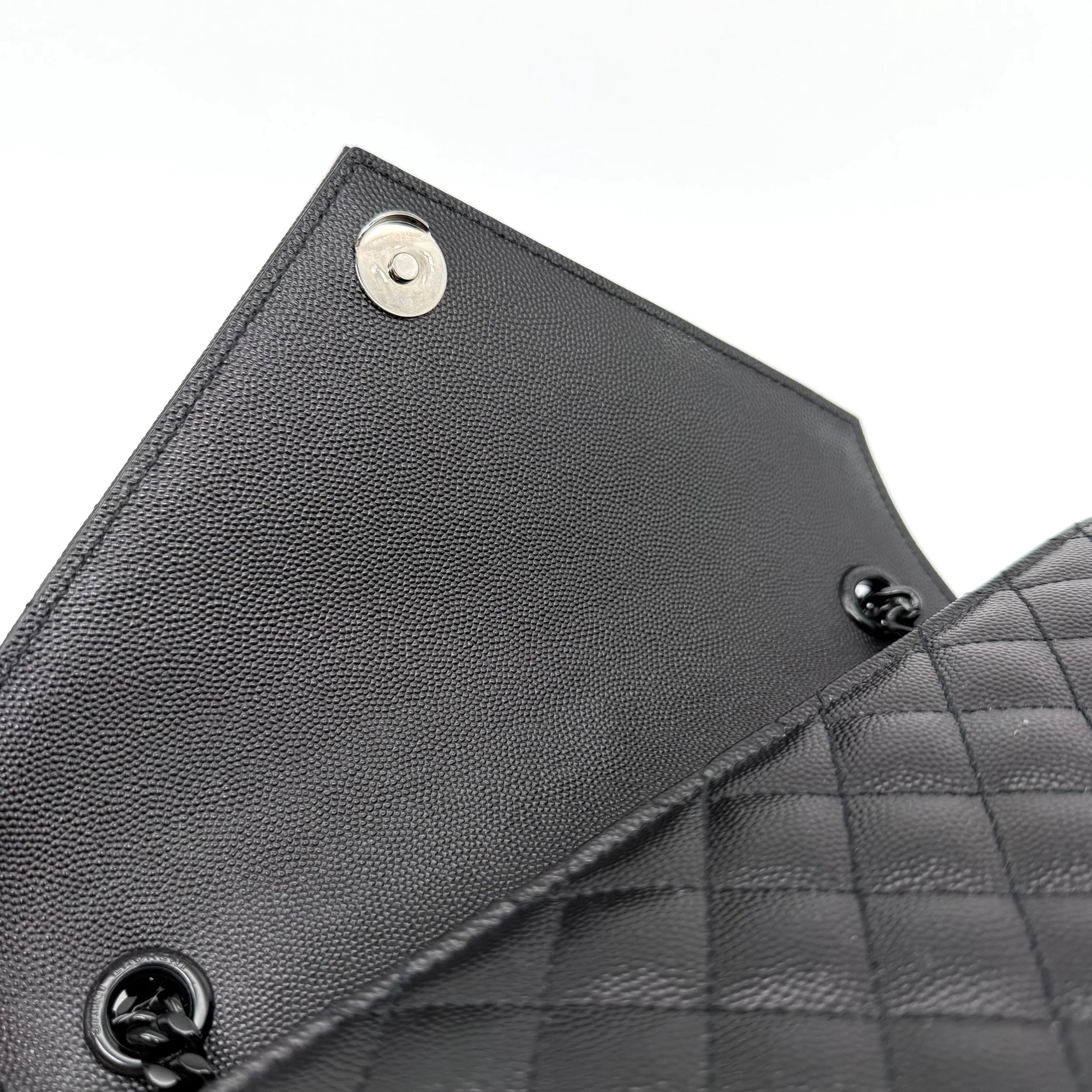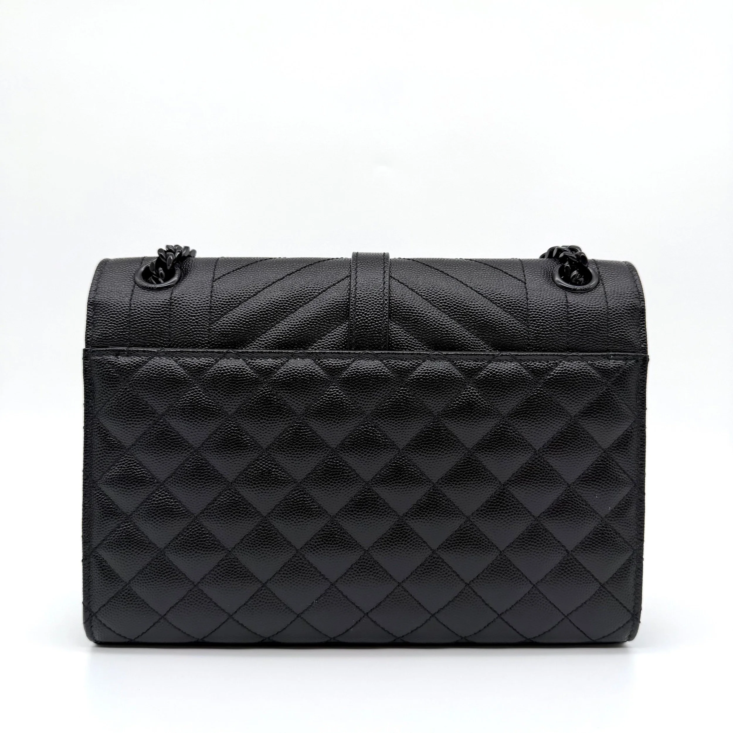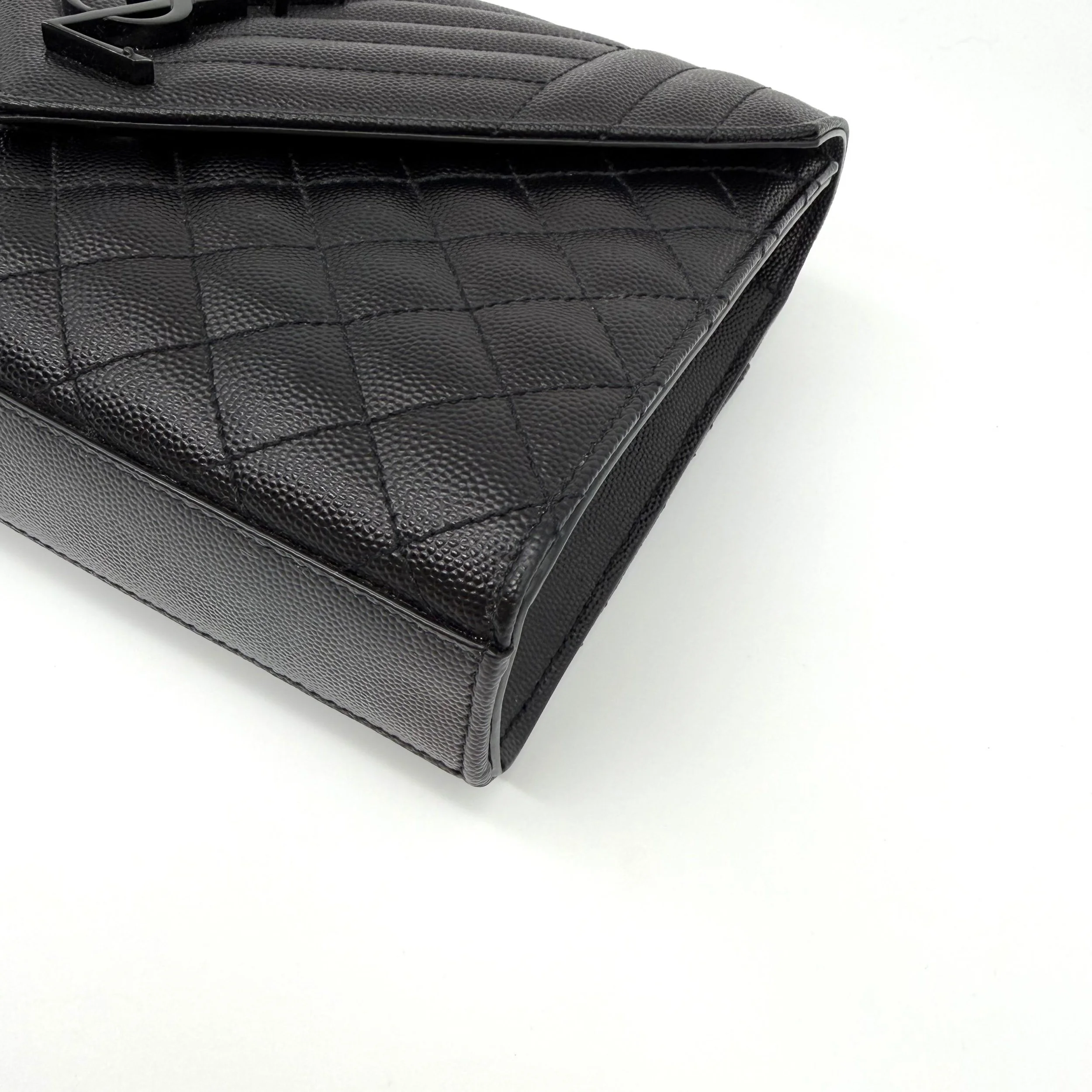 Item Description/Model: Saint Laurent YSL Medium Envelope Bag in Black Quilted Grained Leather and Black Hardware