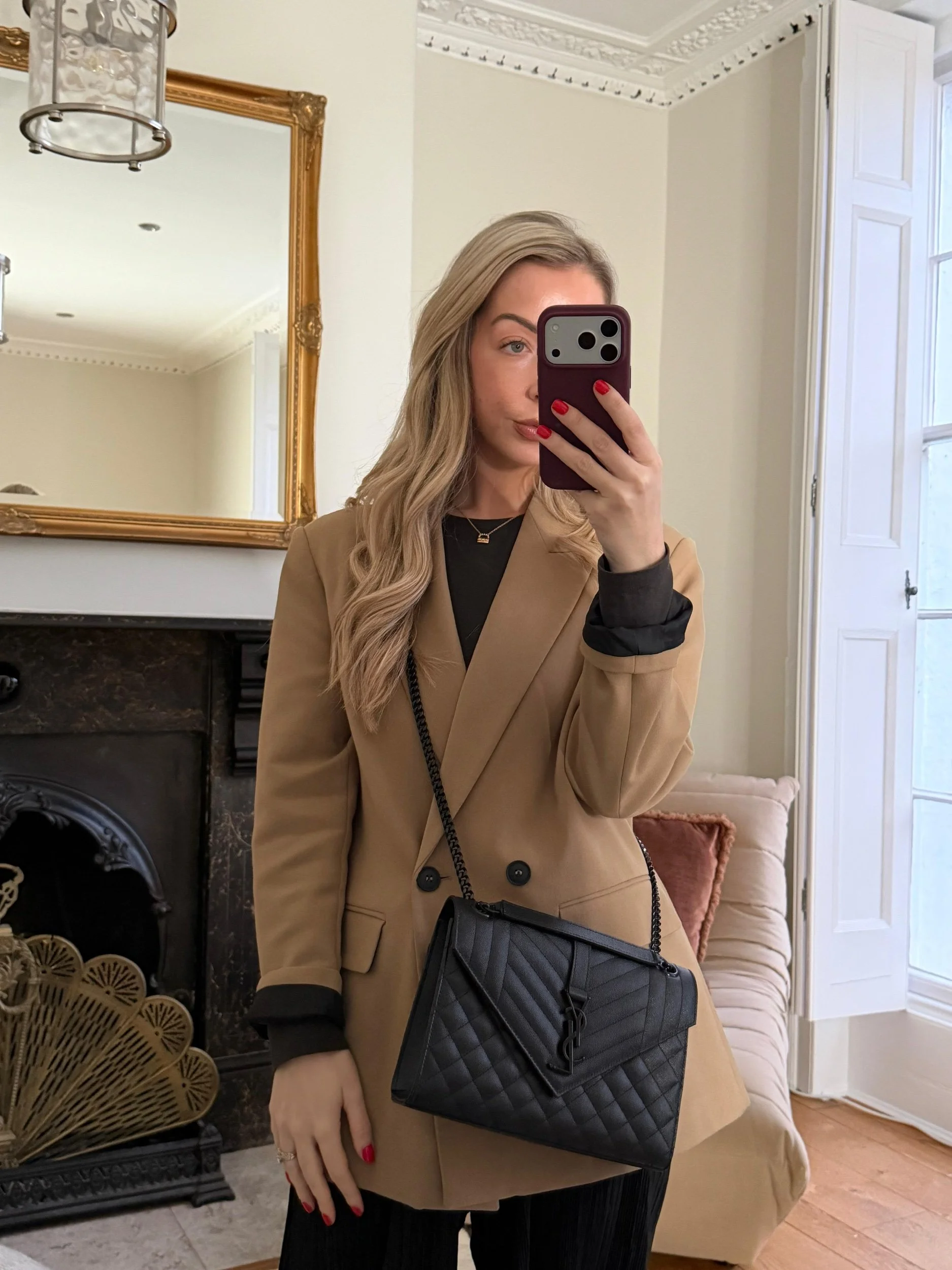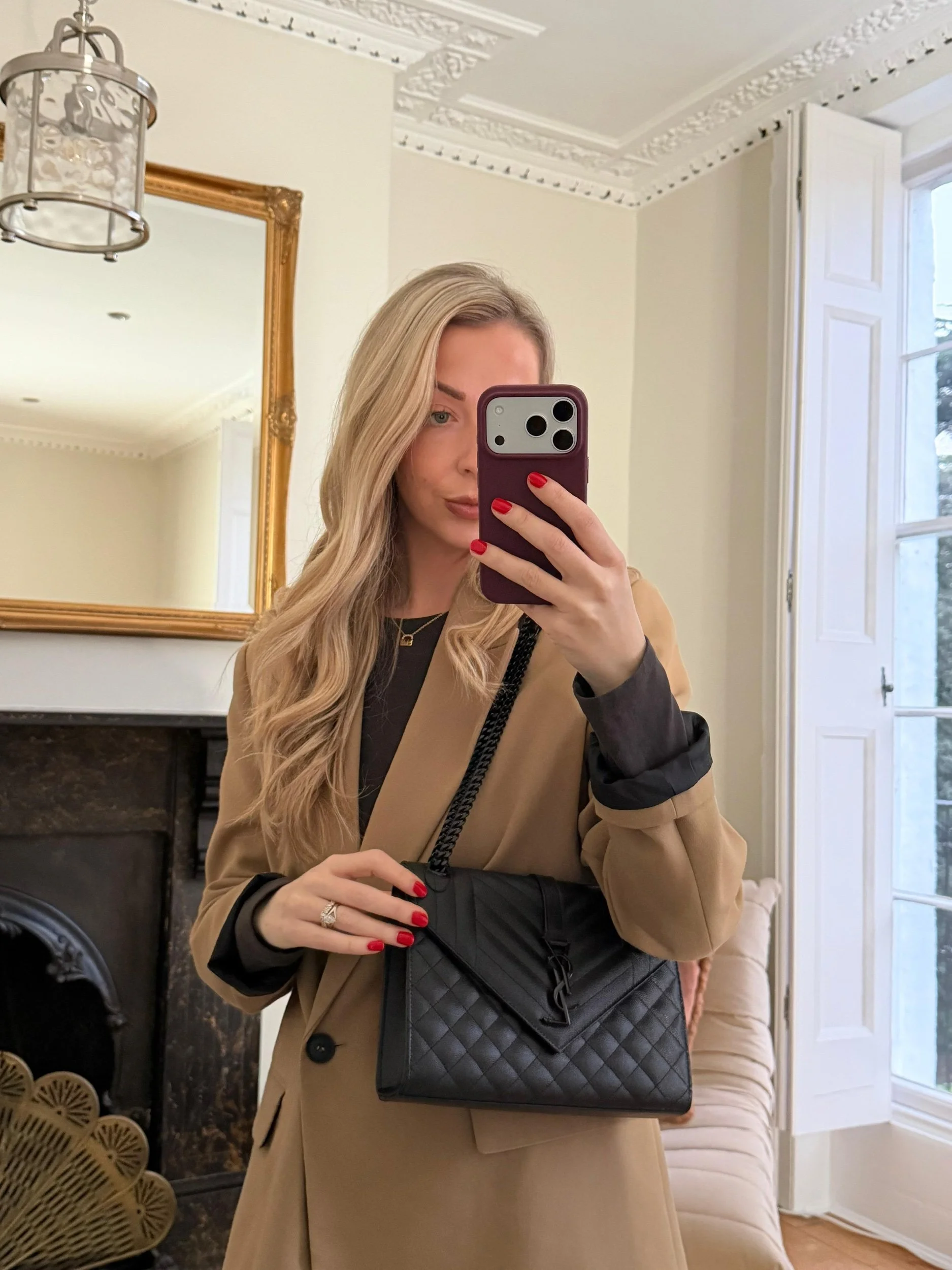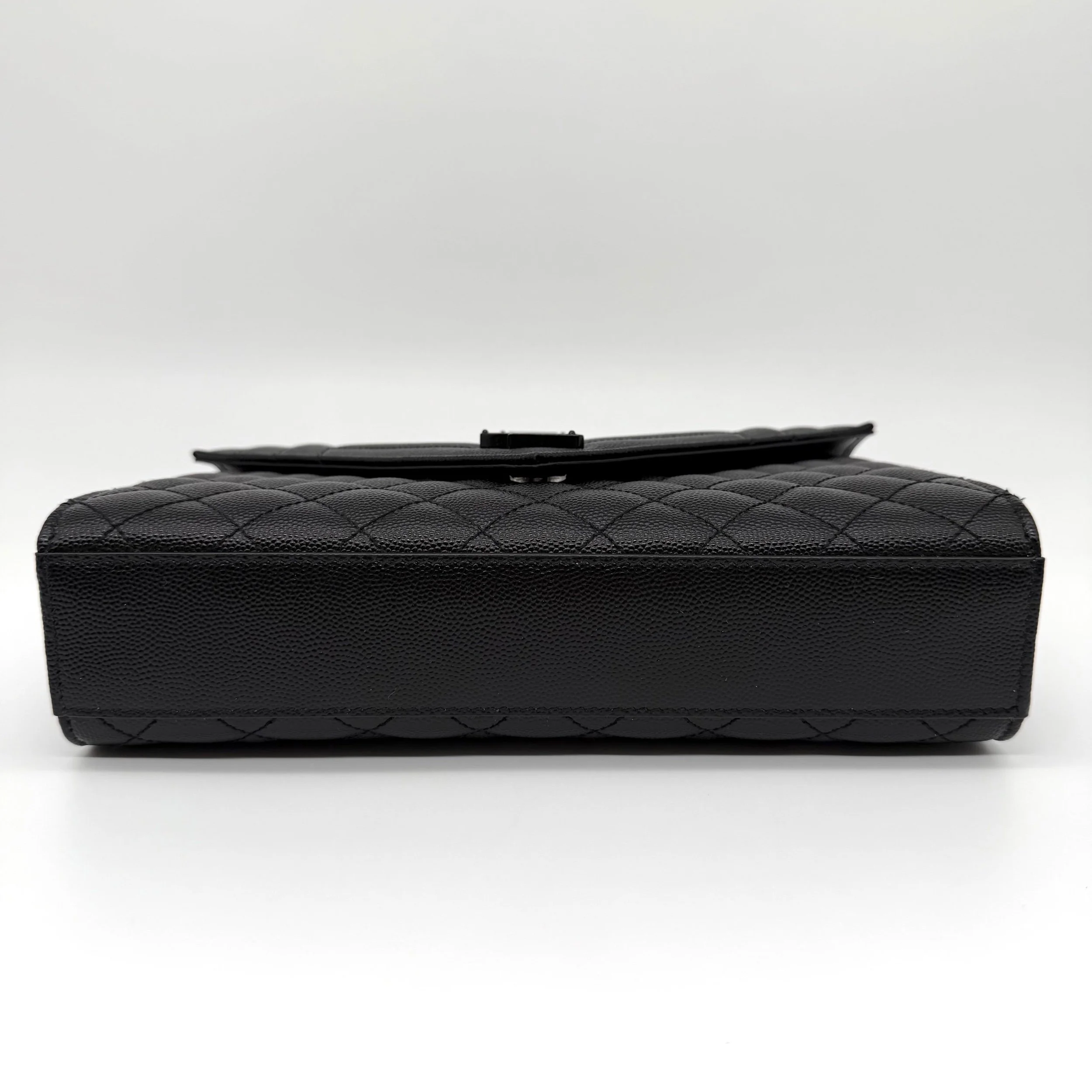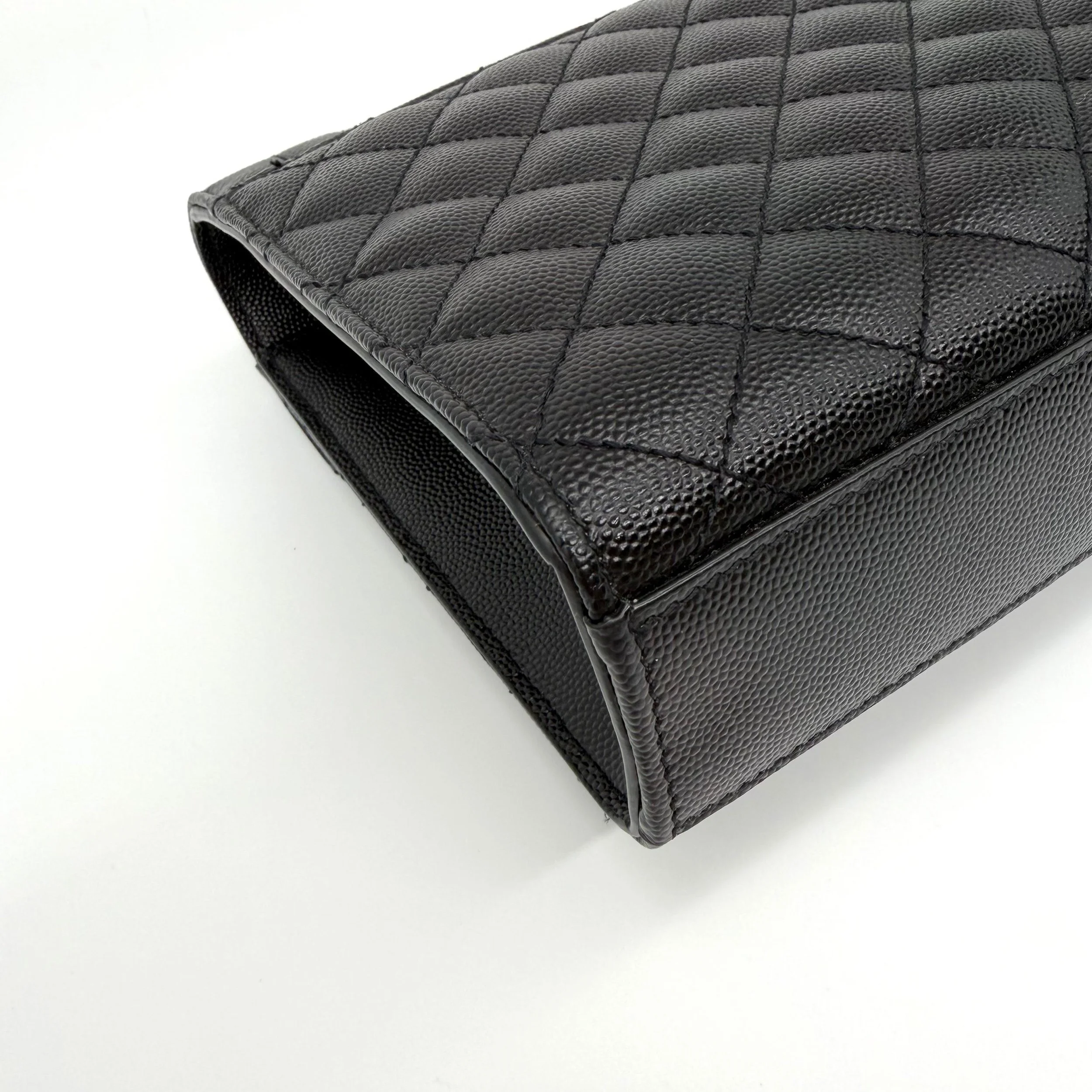 Item Description/Model: Saint Laurent YSL Medium Envelope Bag in Black Quilted Grained Leather and Black Hardware
