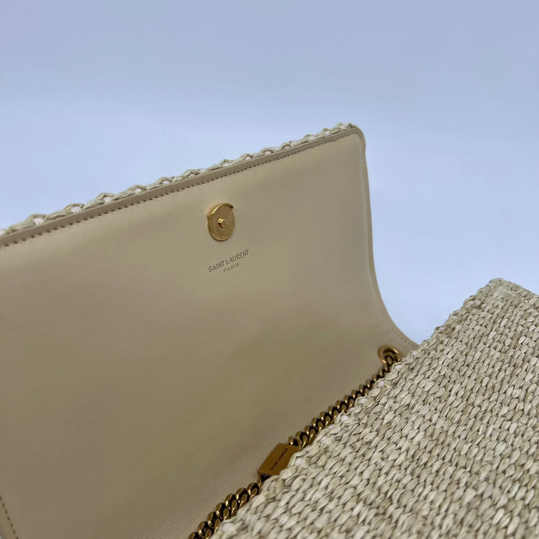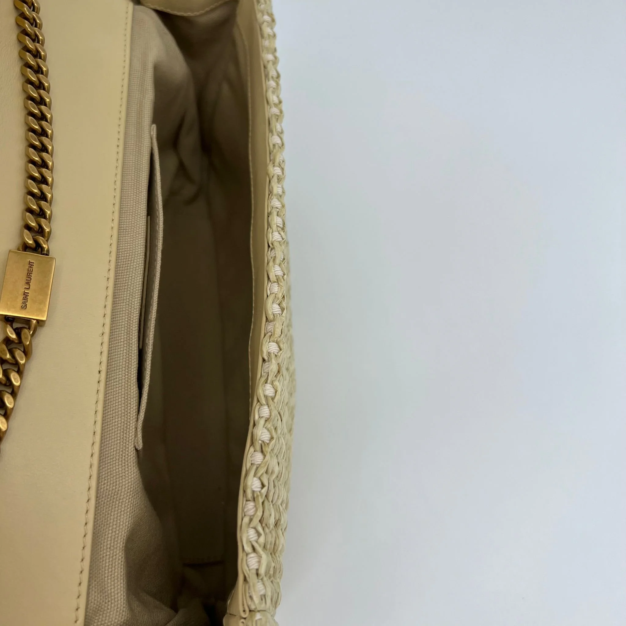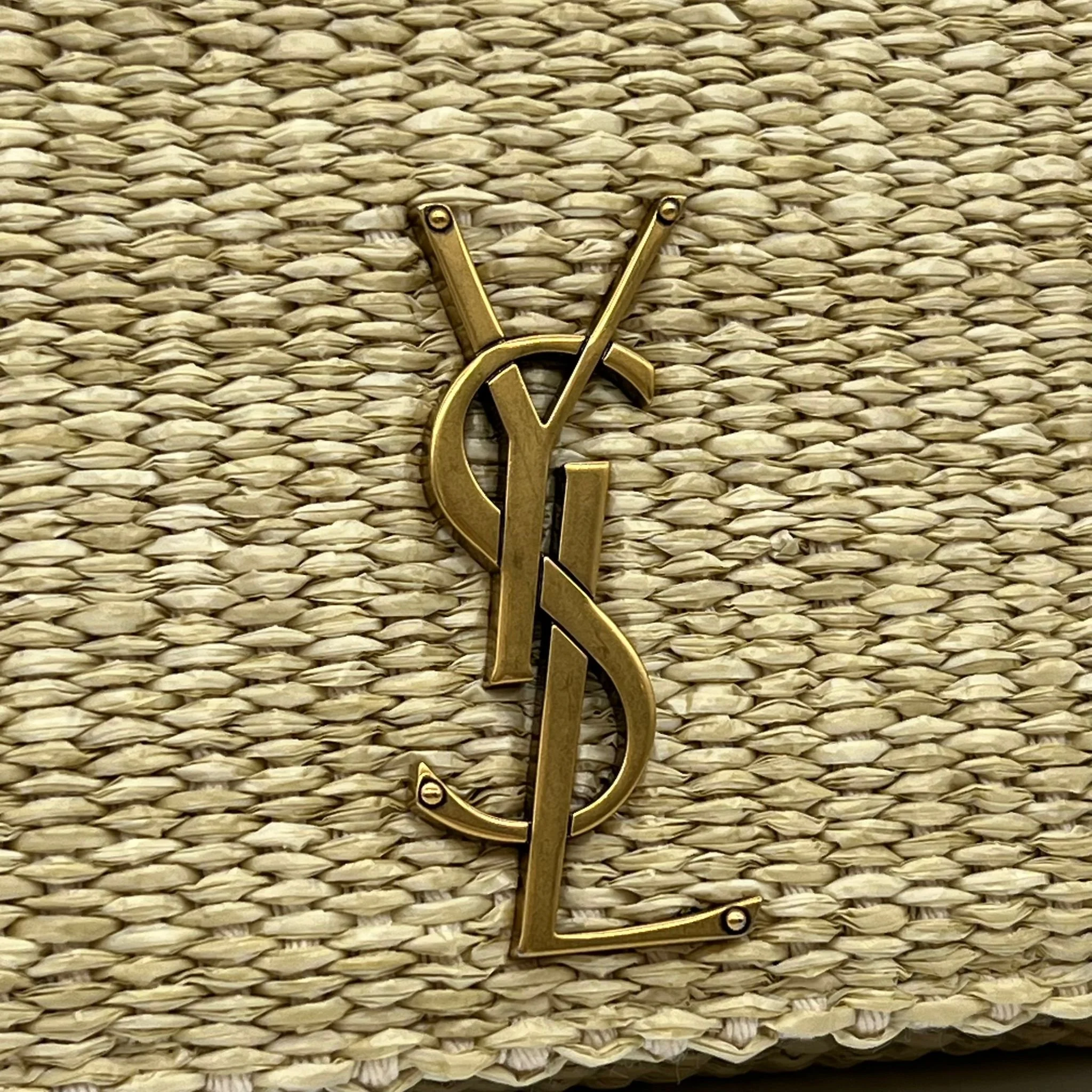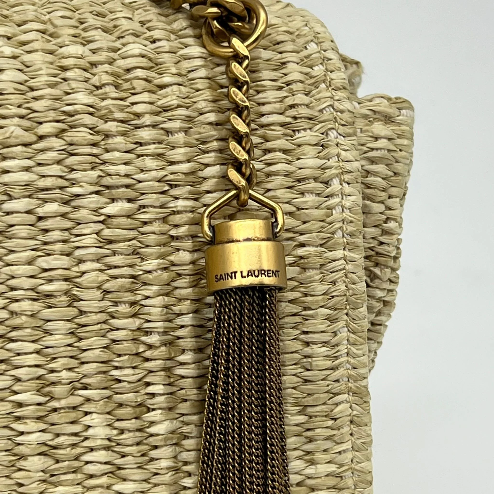 Item Description/Model: Saint Laurent YSL Medium Monogram Kate Tassel Bag in Raffia with Gold Hardware
