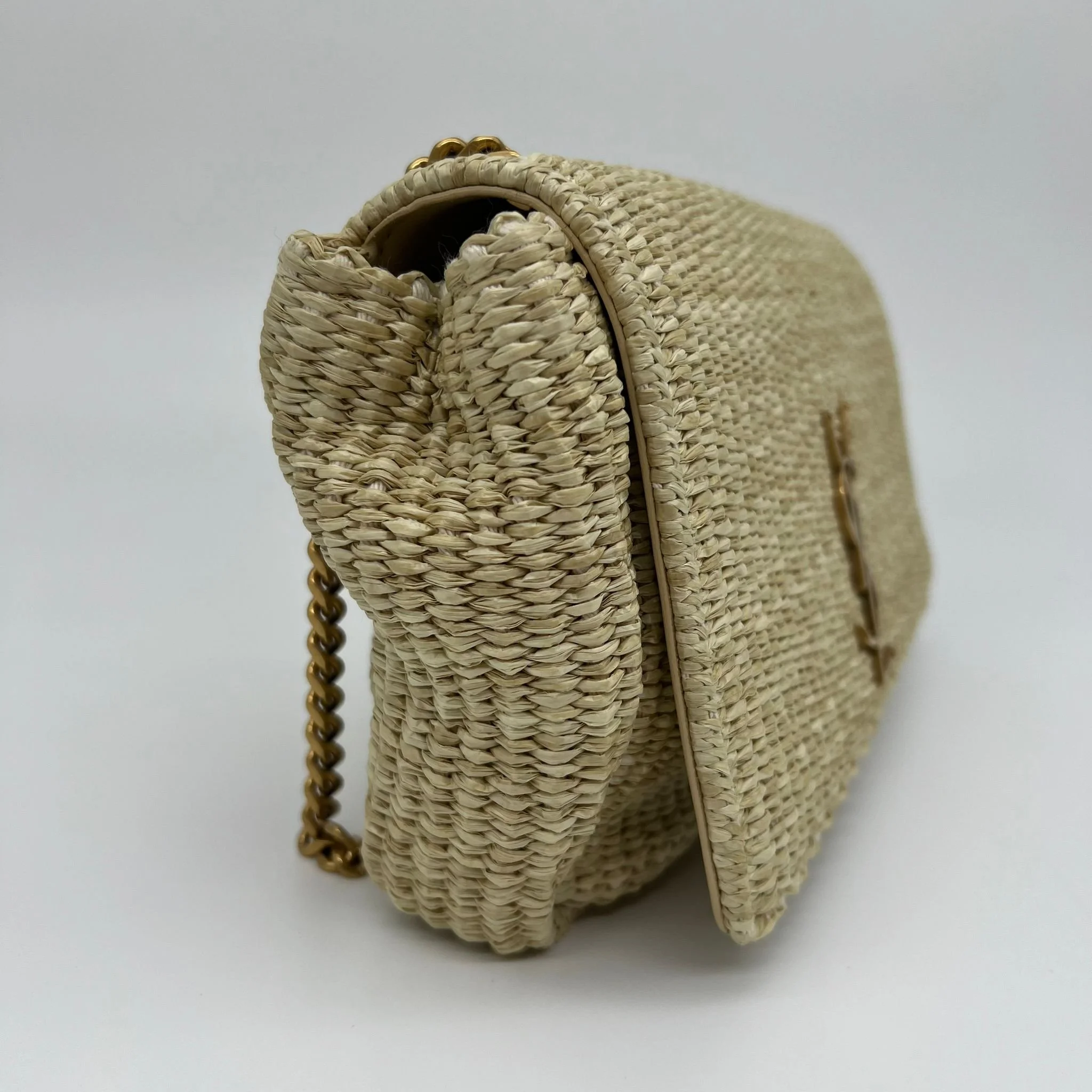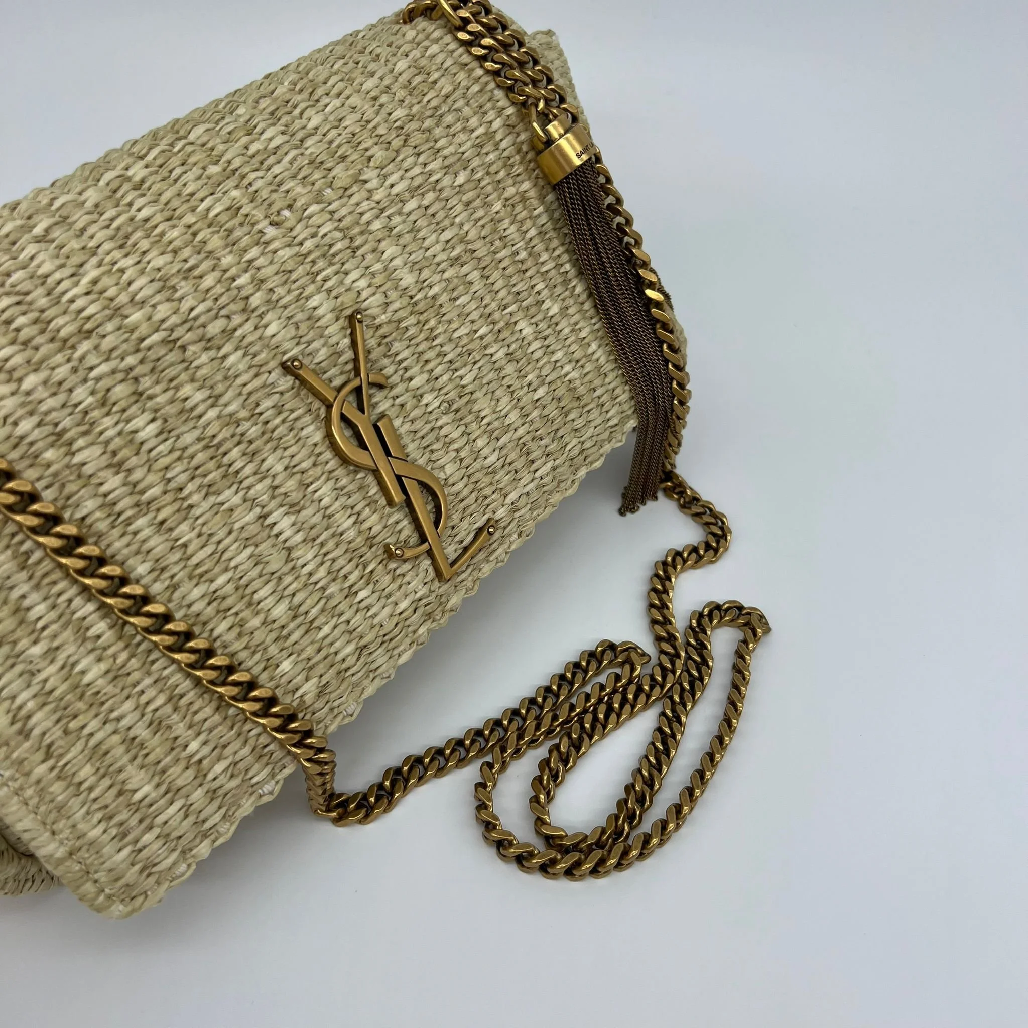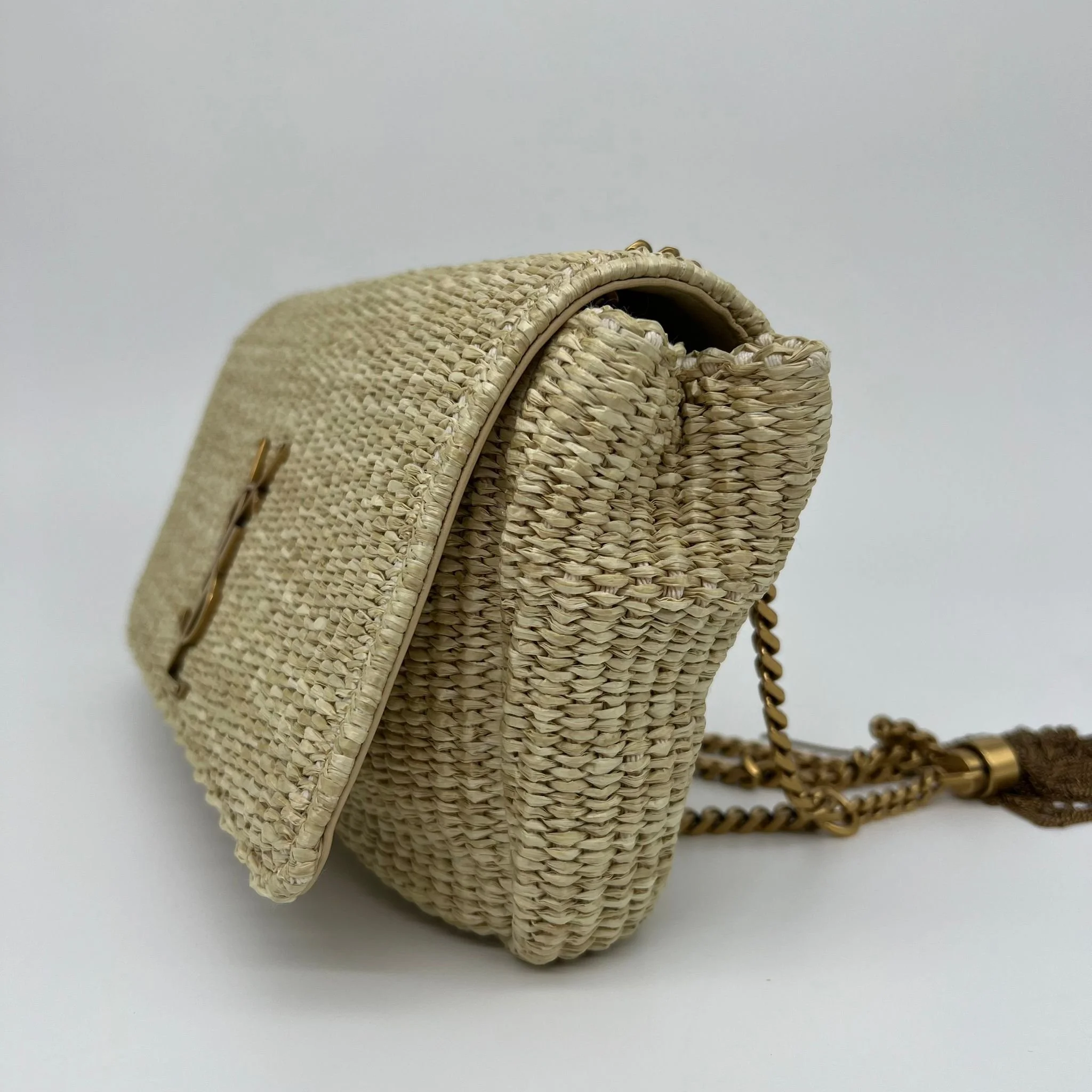 Saint Laurent YSL Medium Kate Tassel Monogram Raffia Bag Gold Hardware