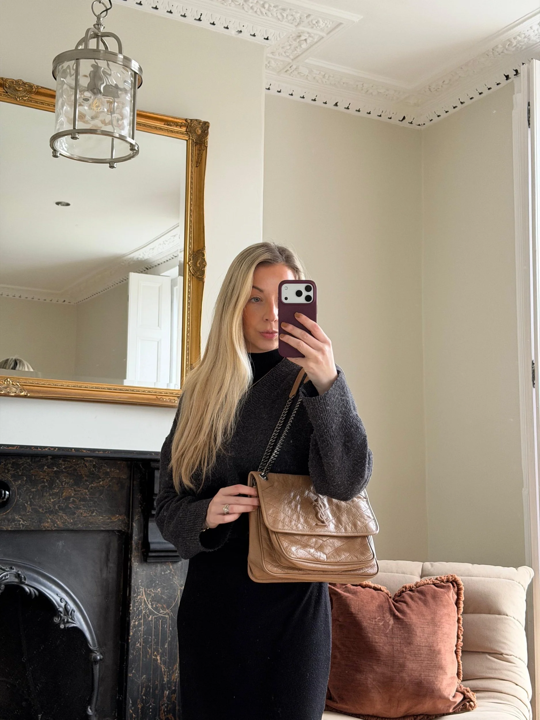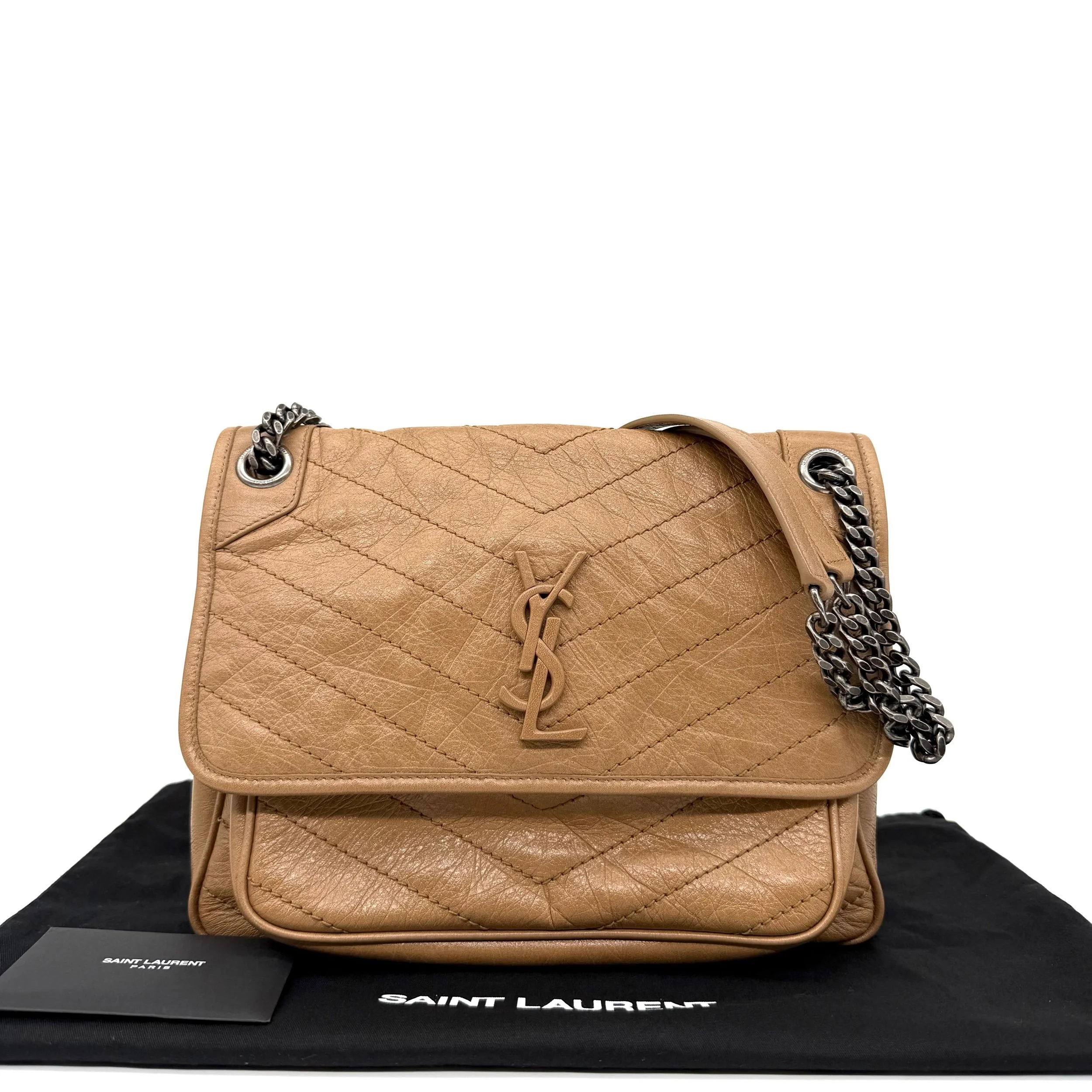 Saint Laurent YSL Medium Niki Bag in Taupe / Caramel Leather