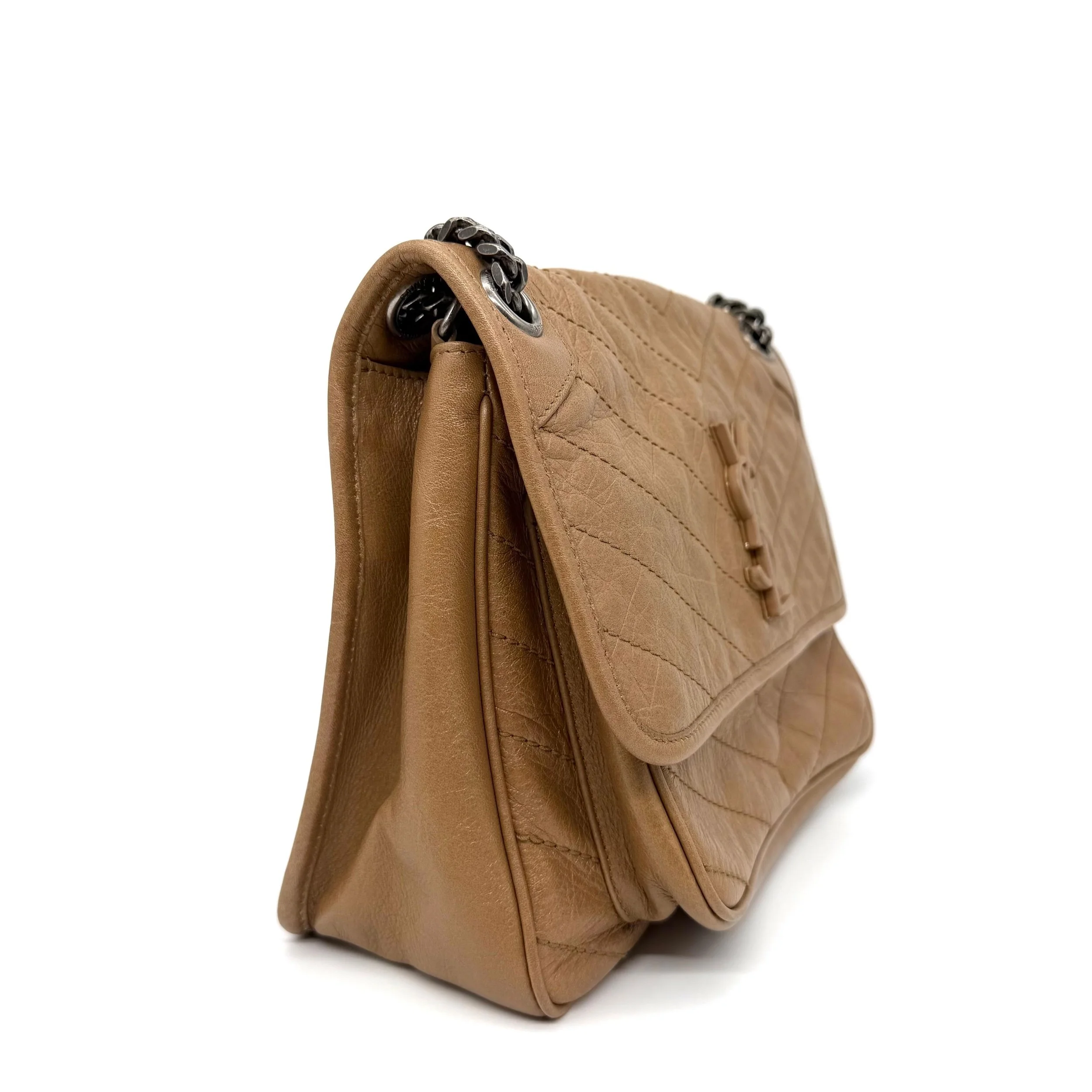Item Description/Model: Saint Laurent YSL Niki Medium Bag in Taupe Caramel Chevron leather Gunmetal Hardware