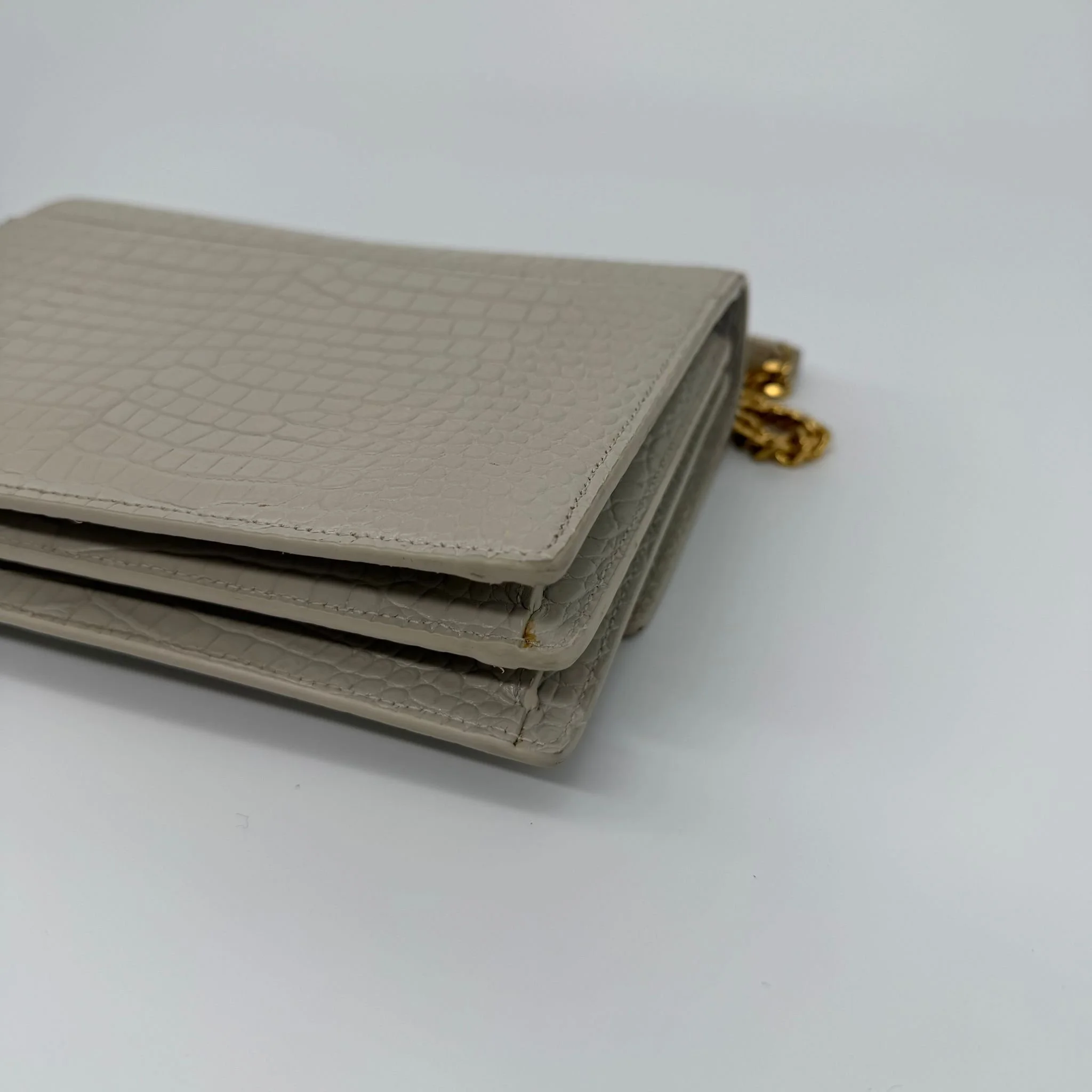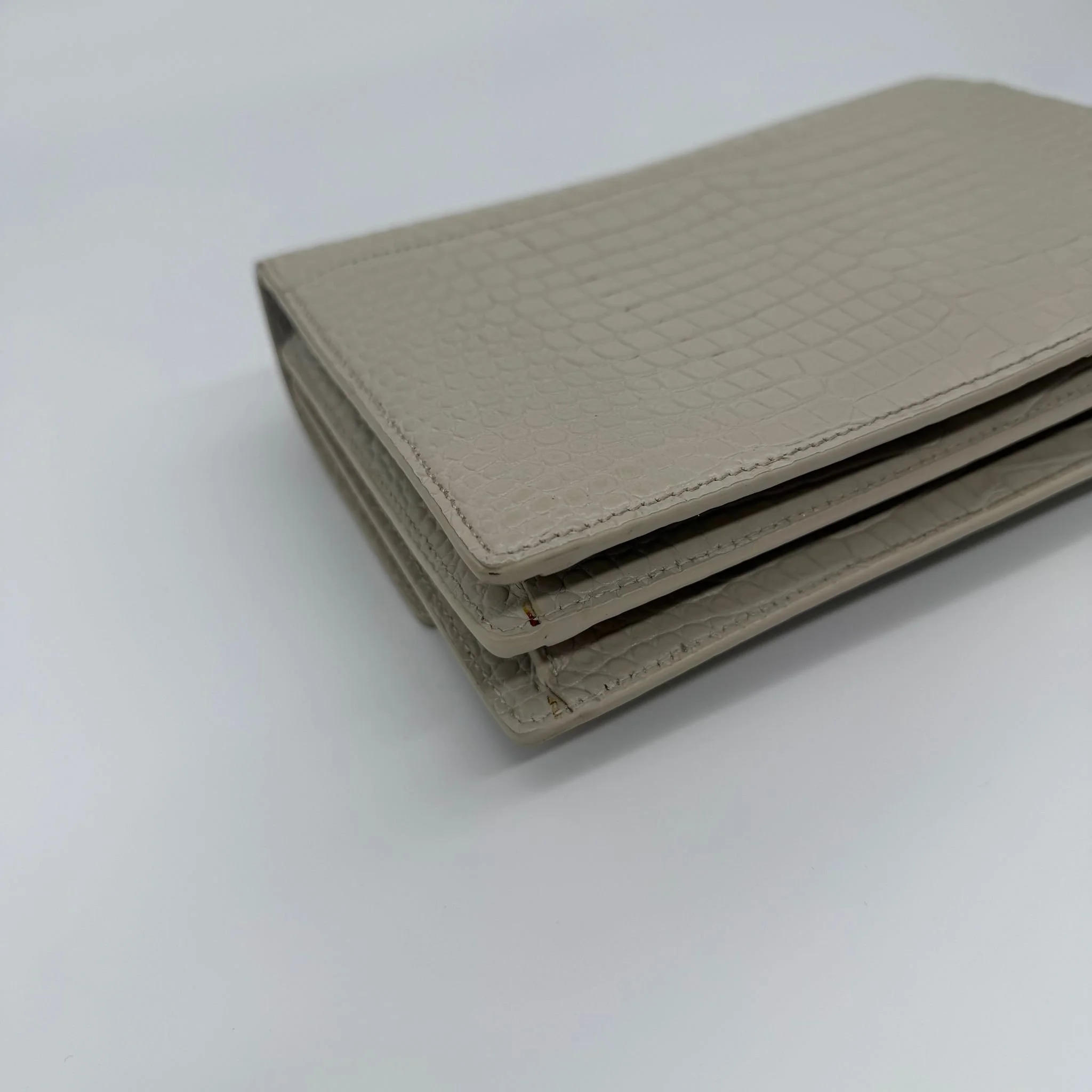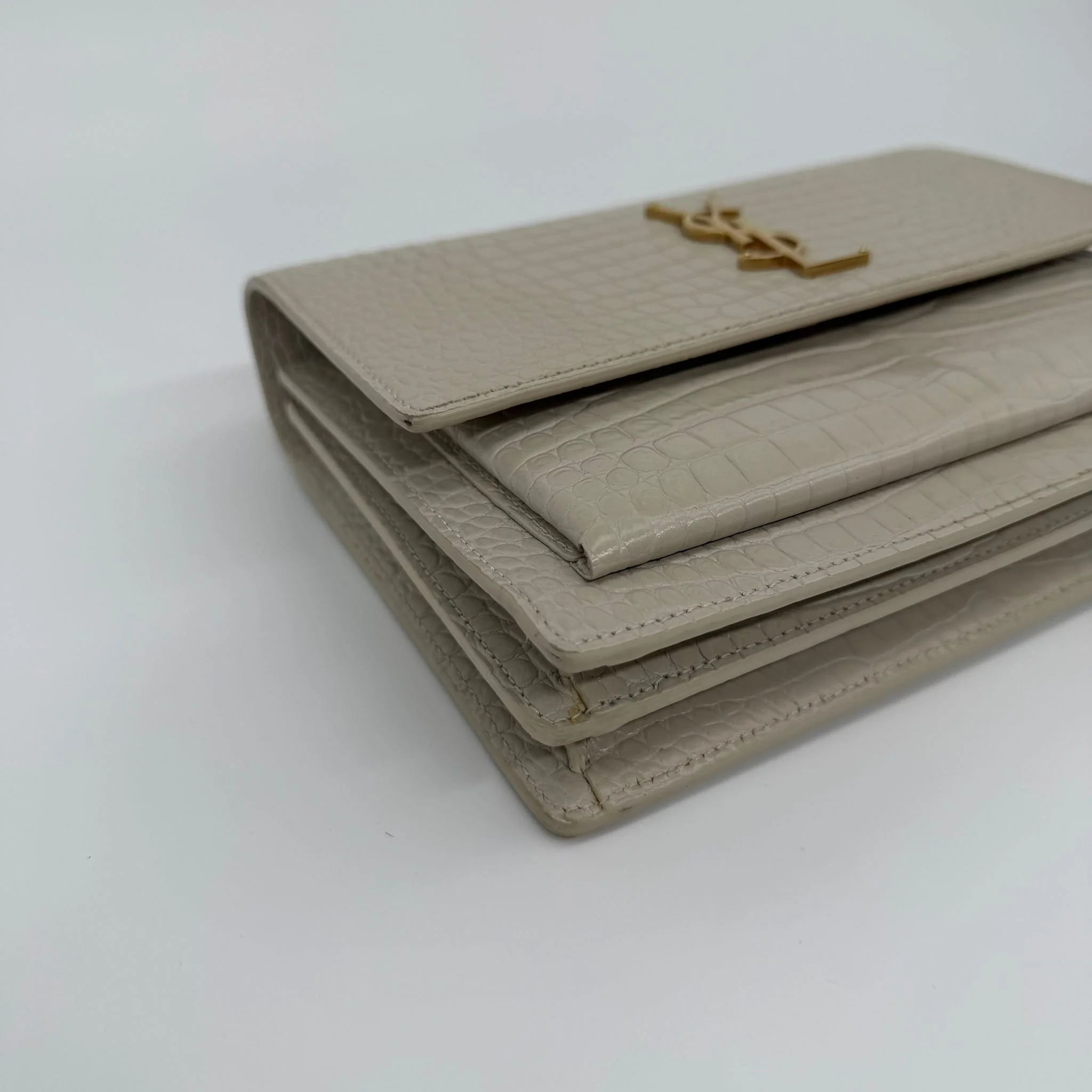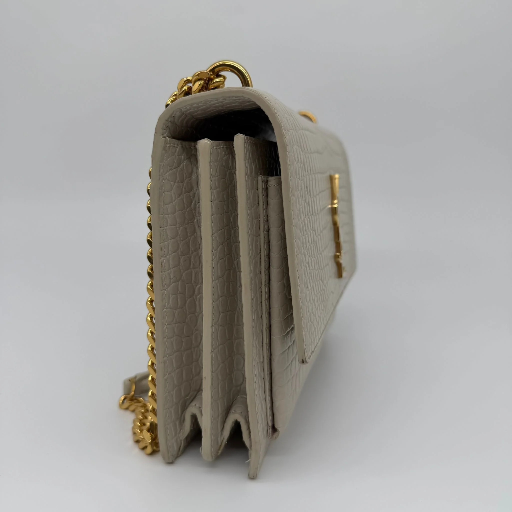 Item Description/Model: Saint Laurent YSL Medium Sunset Bag in Blanc Vintage (off white) Croc Embossed Leather Gold Hardware
