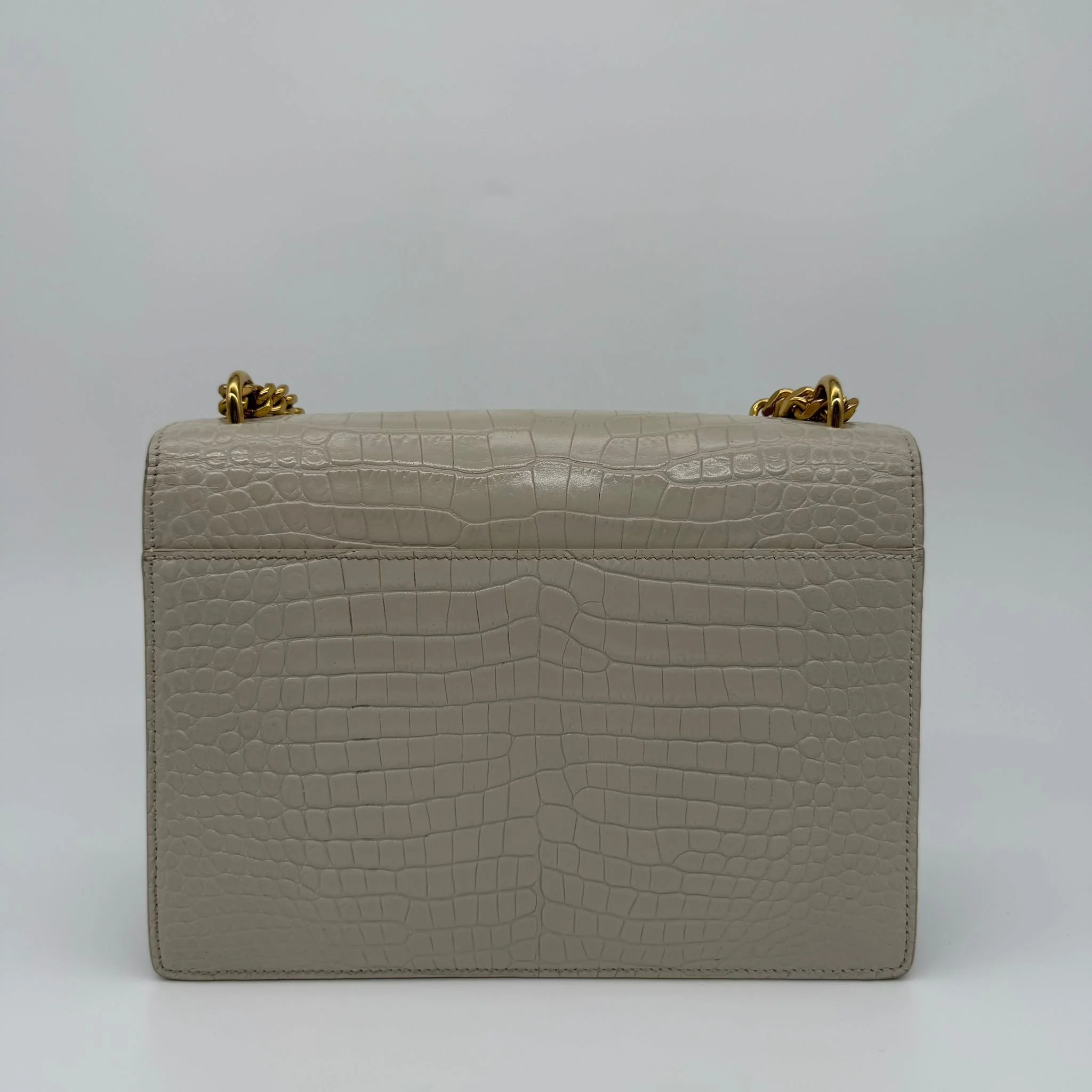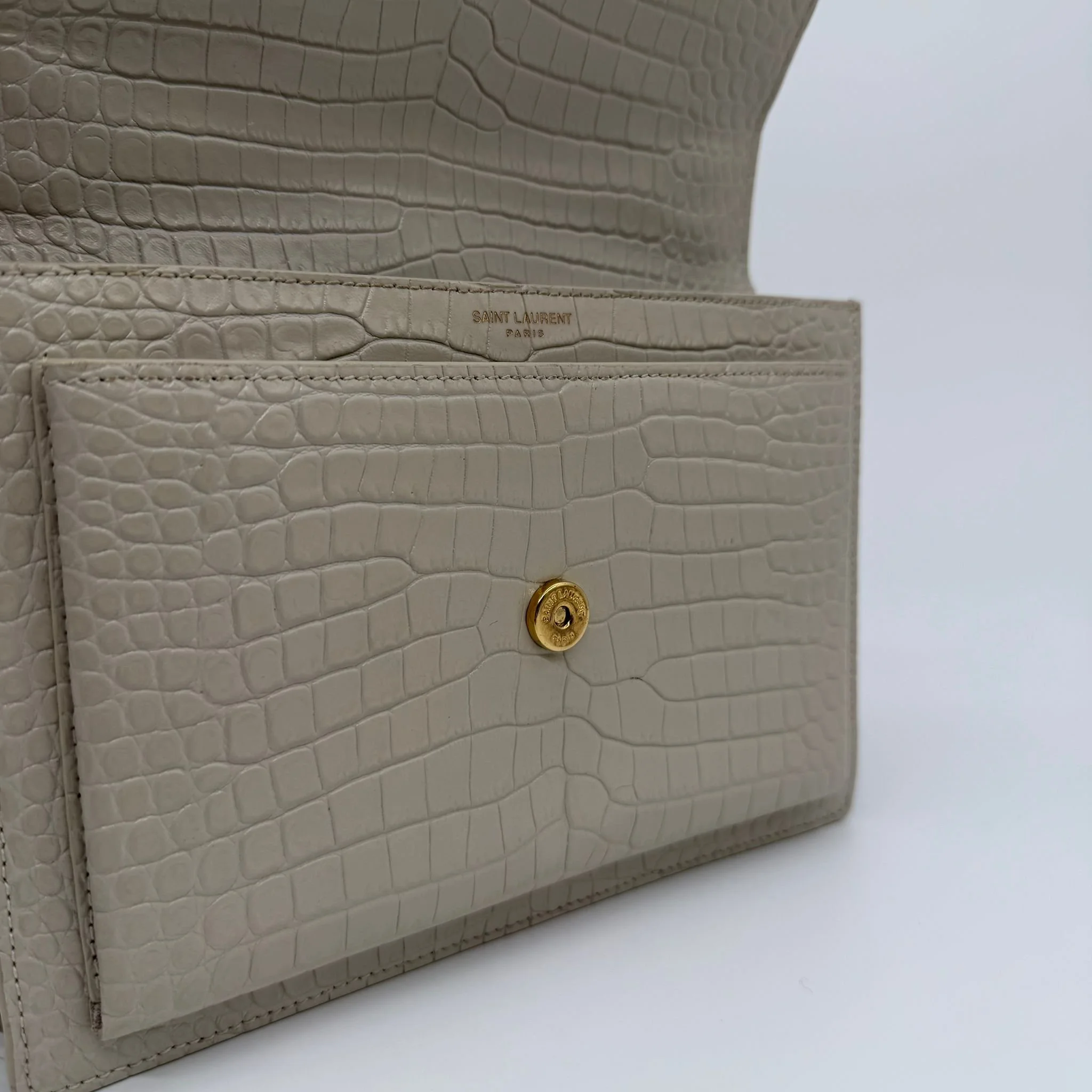 Saint Laurent YSL Medium Sunset Bag Blanc Vintage Croc Embossed Gold Hardware