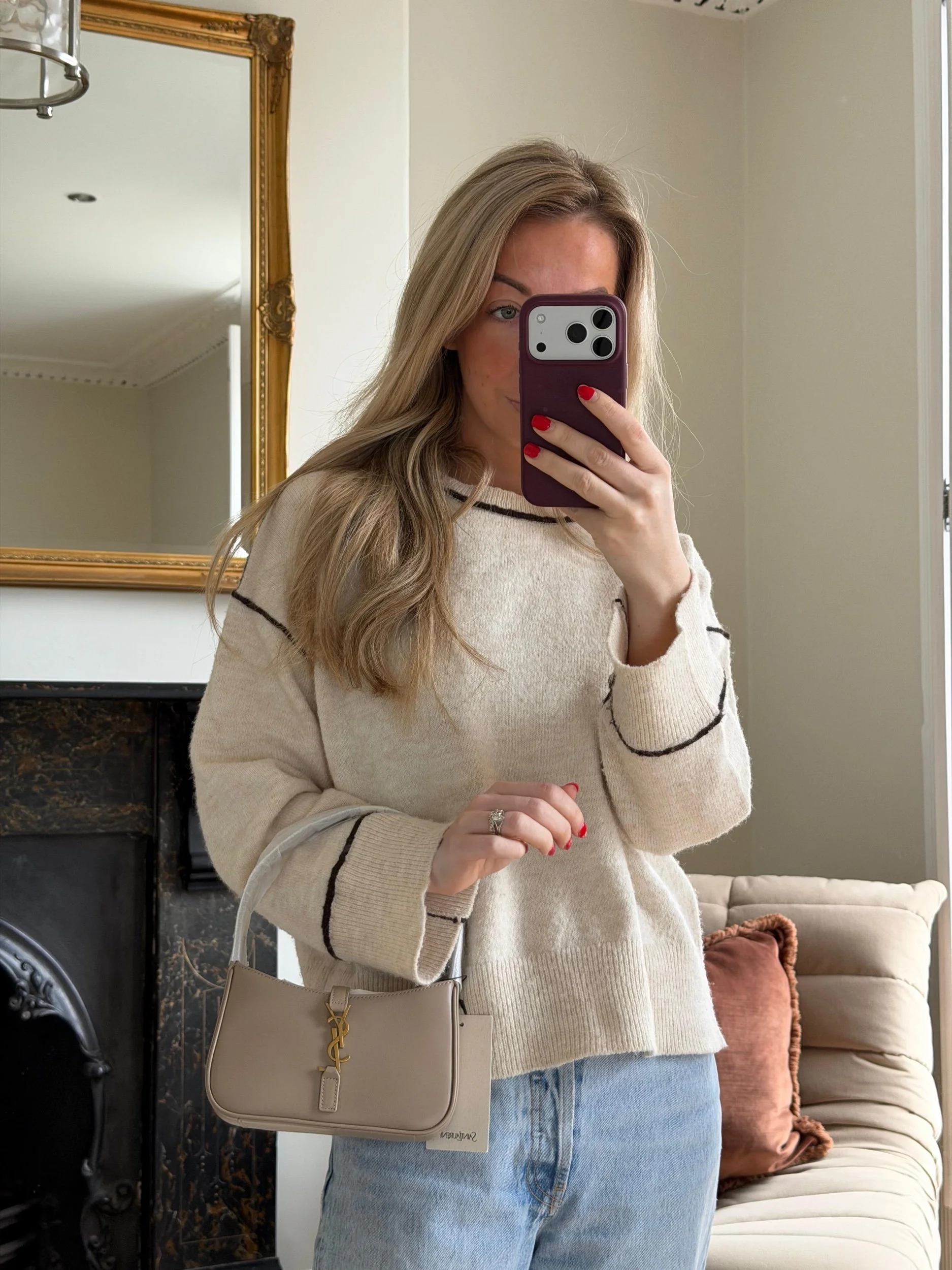 Item Description/Model: Saint Laurent YSL Mini Le 5 A 7 Bag in Beige Smooth Leather Gold Hardware