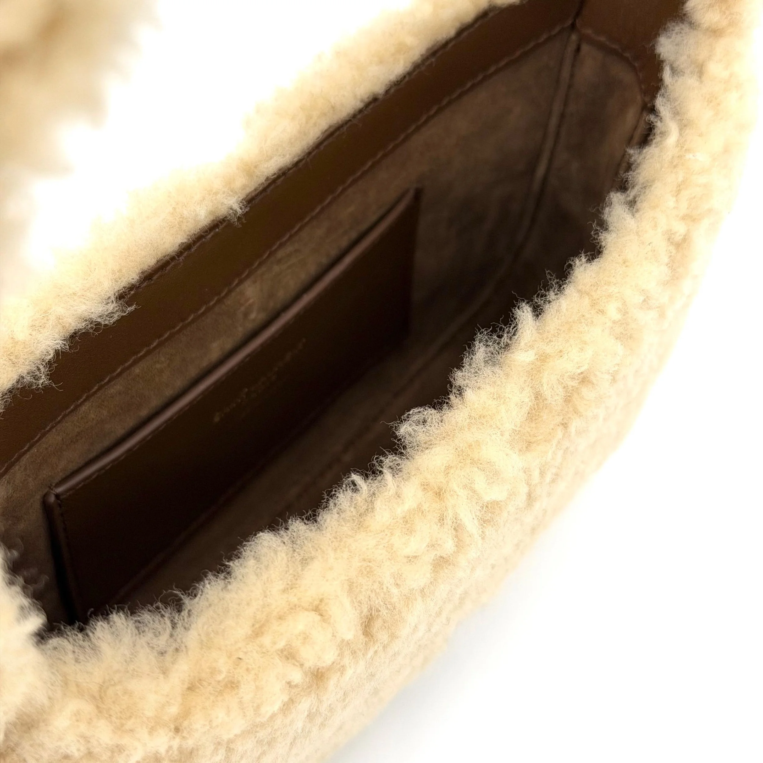 Item Description/Model: Saint Laurent YSL Mini Le 5 A 7 Bag in Beige Shearling with Gold Hardware