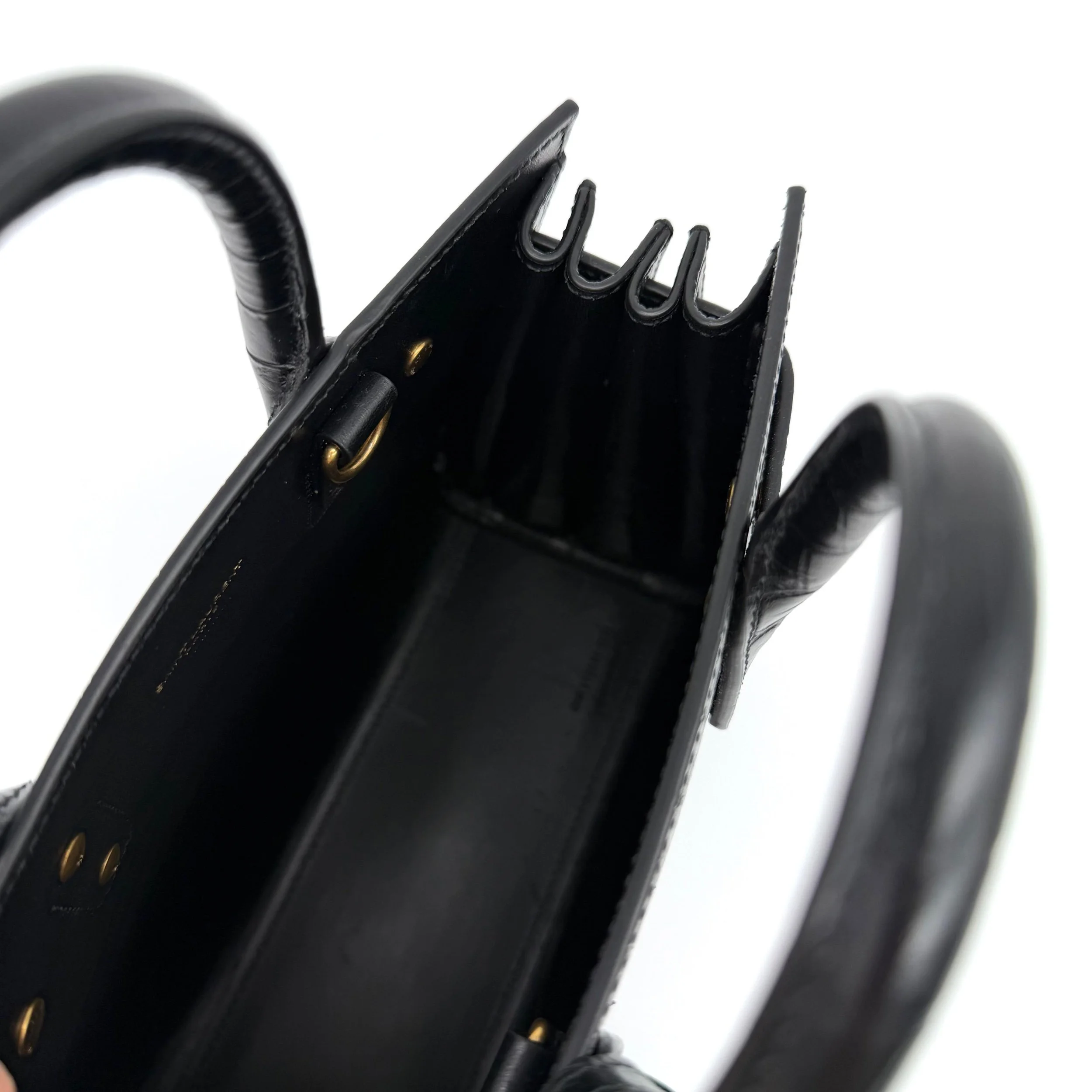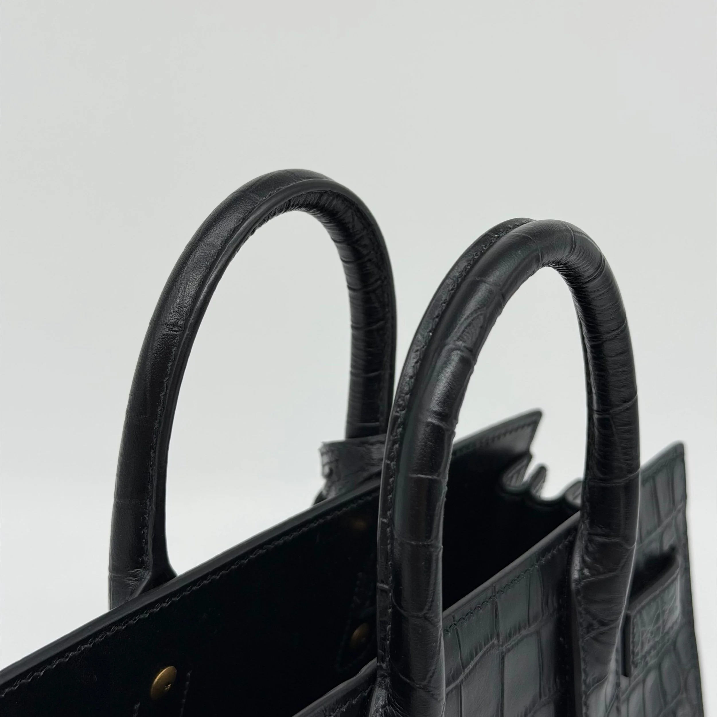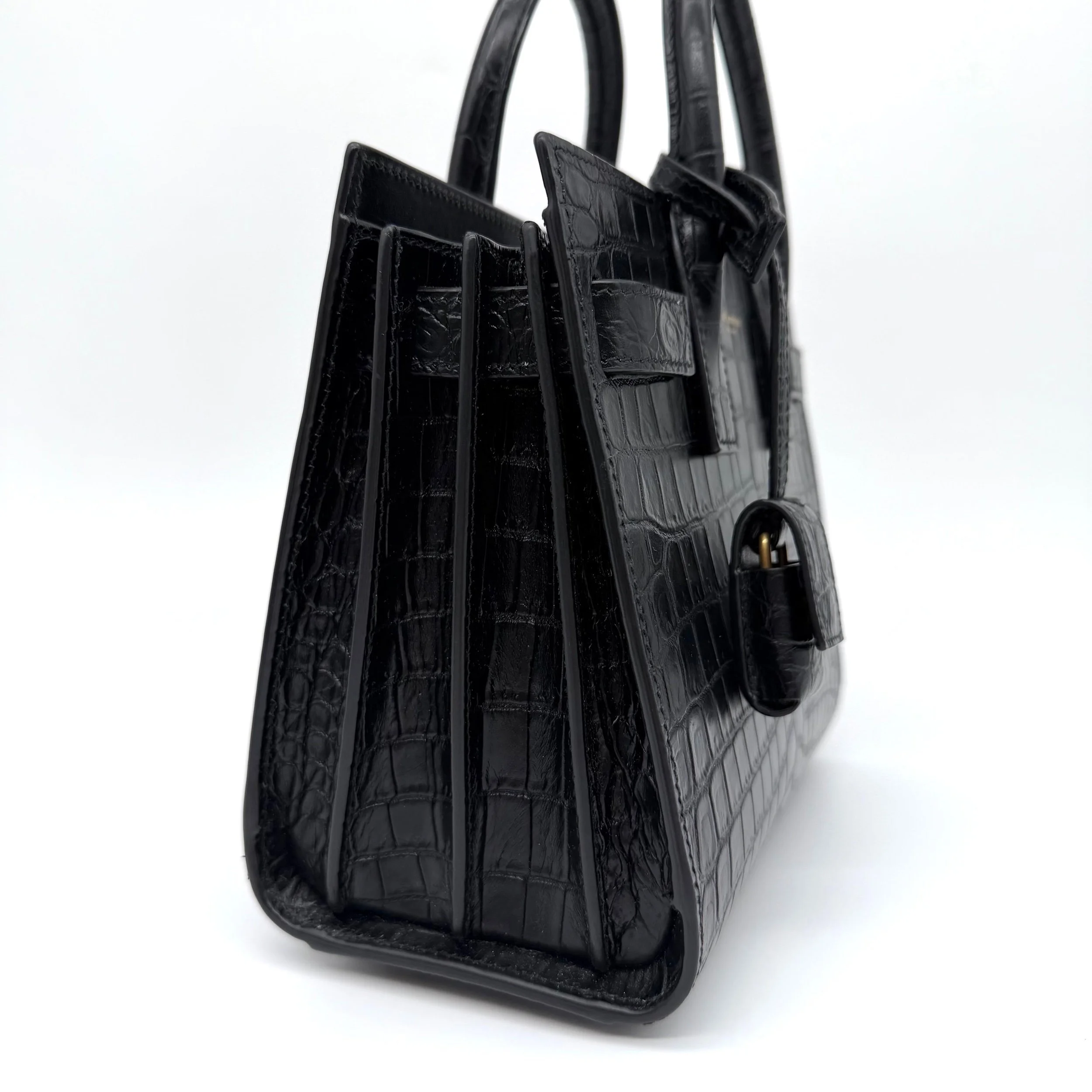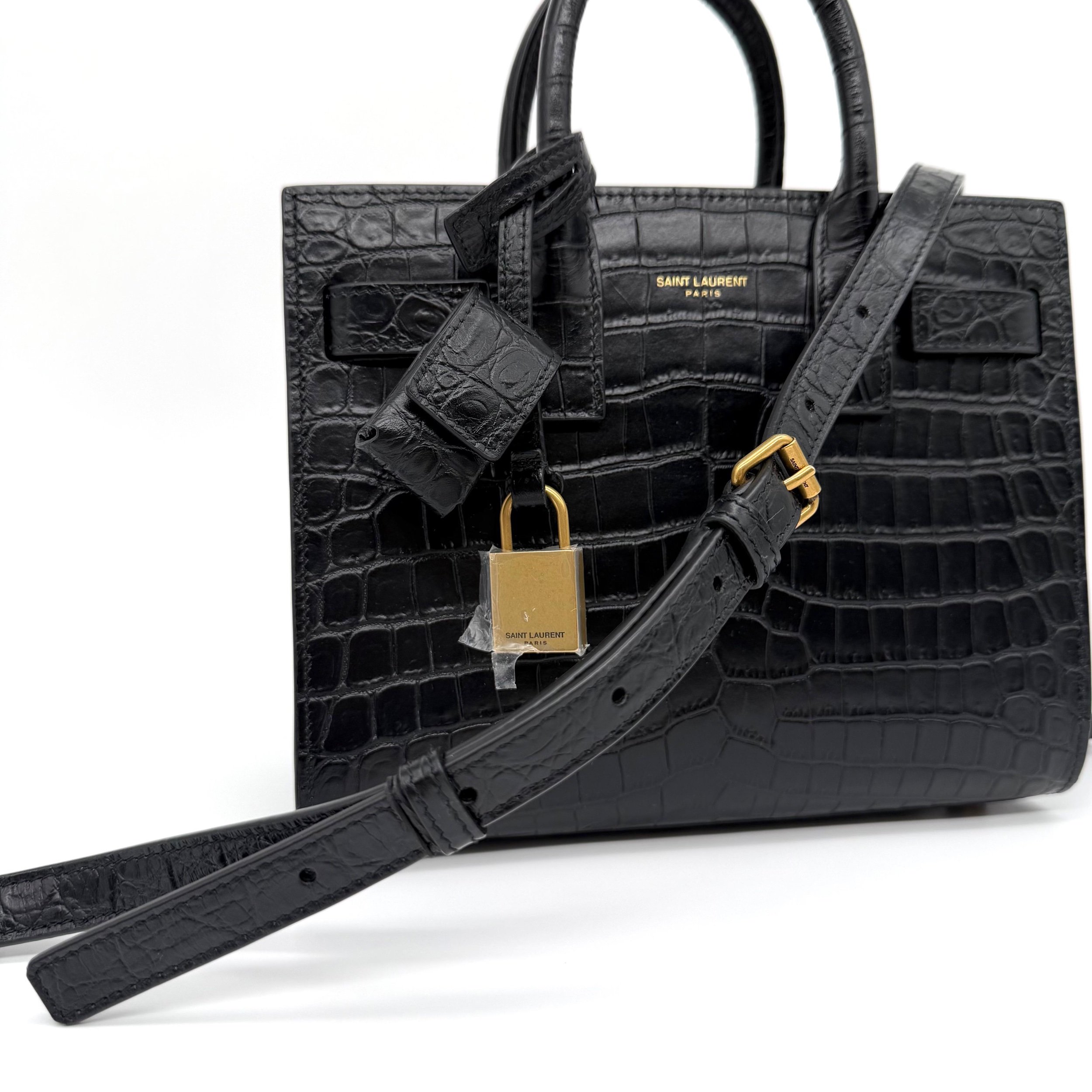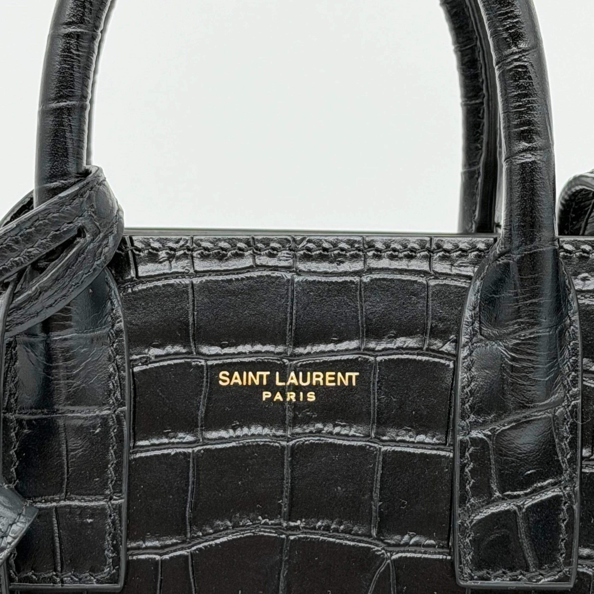 Item Description/Model: Saint Laurent YSL Nano Sac De Jour Bag in Black Croc Embossed Leather and Gold Hardware