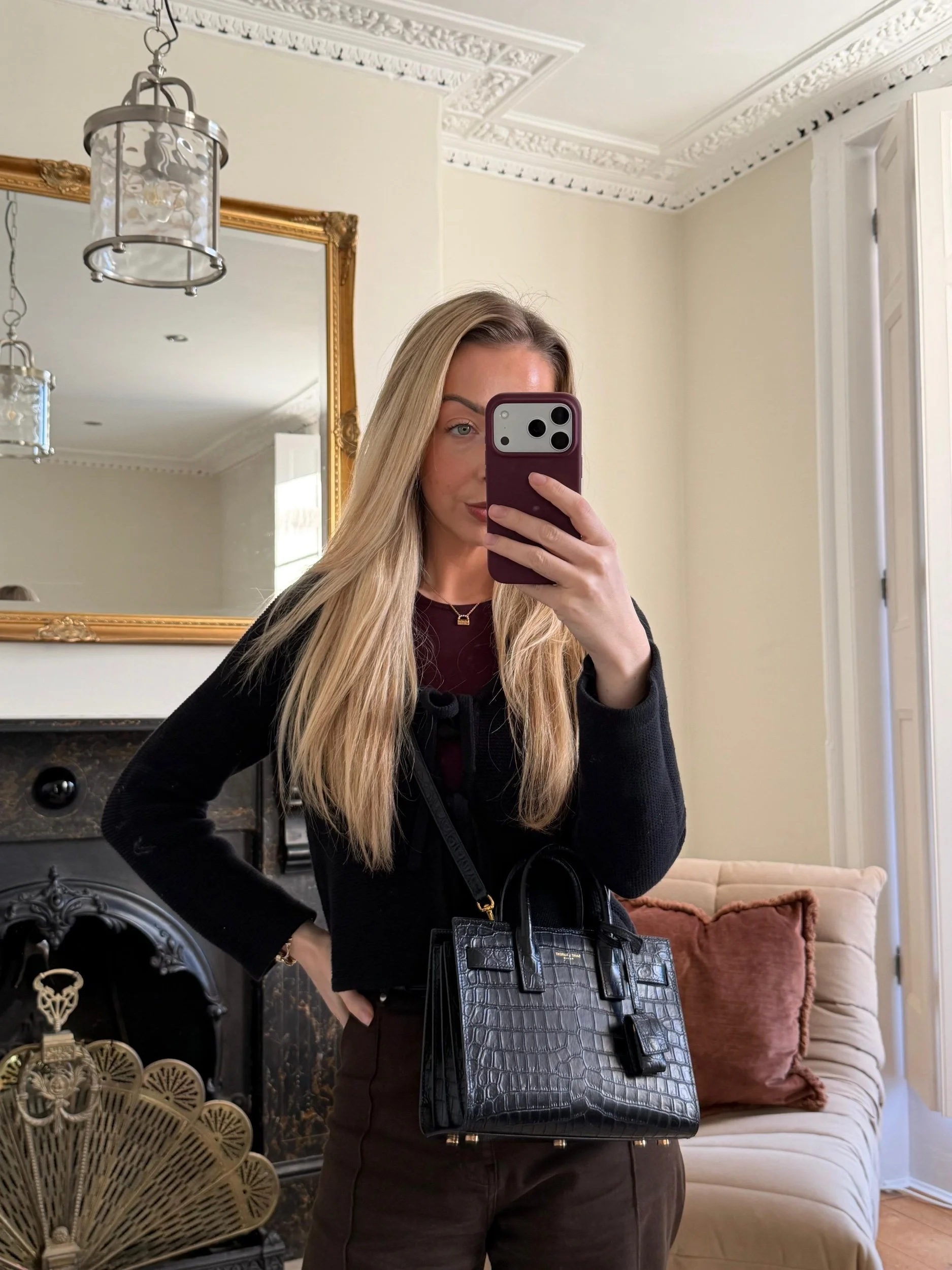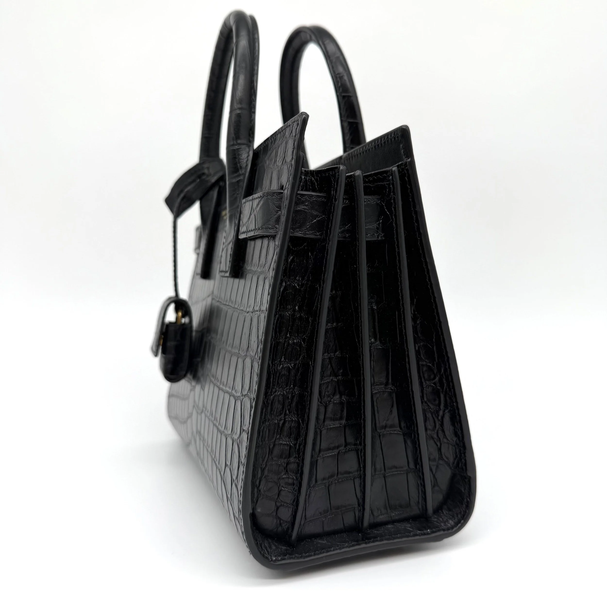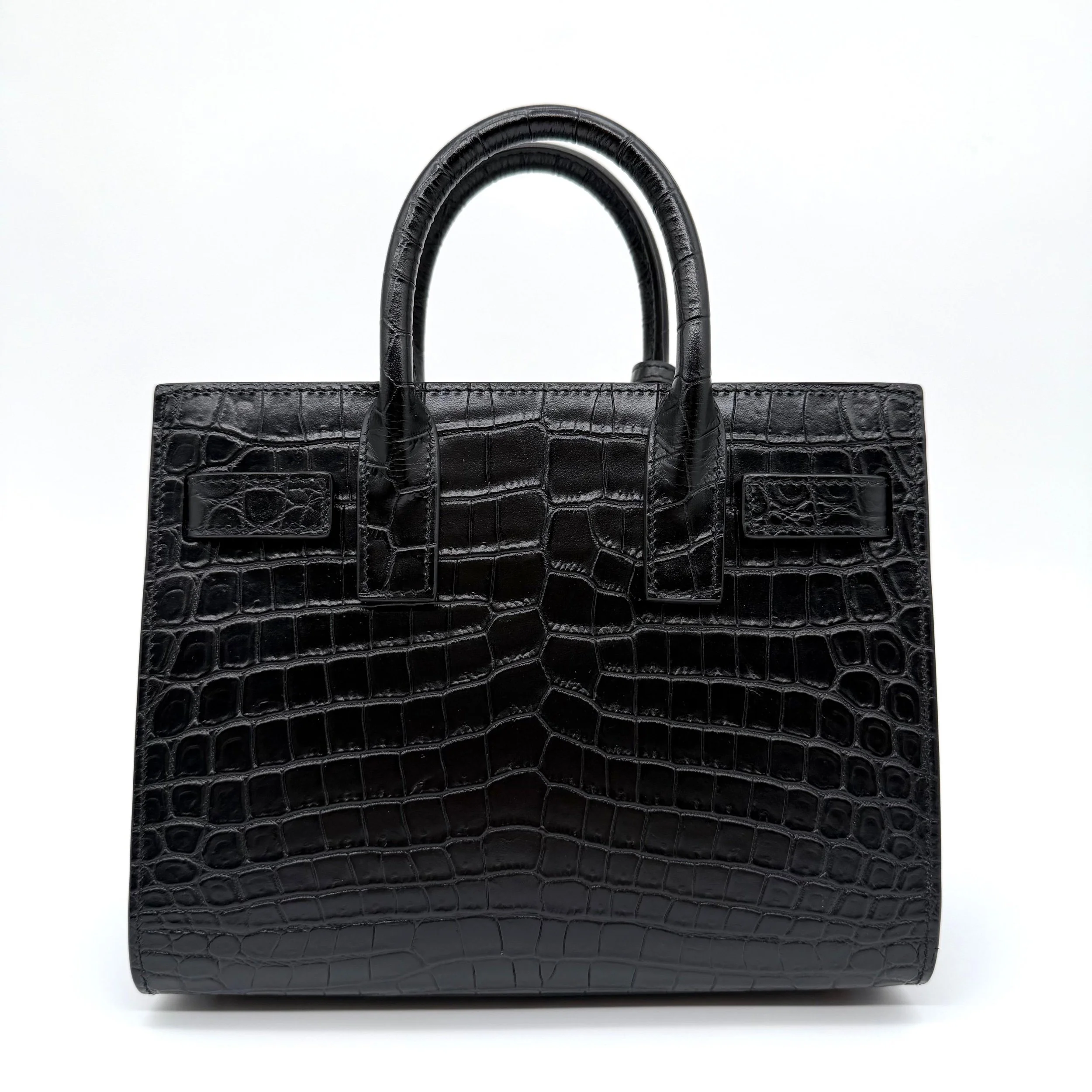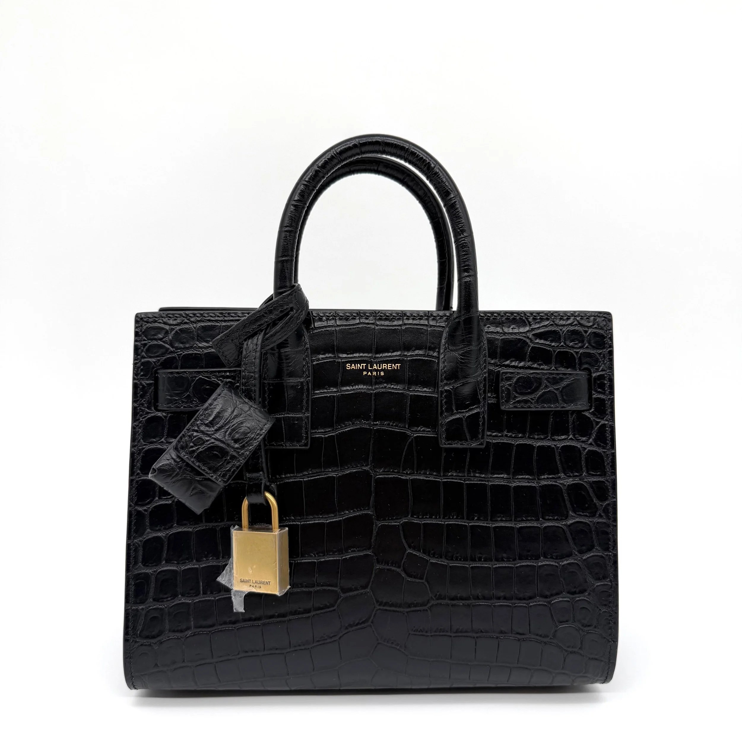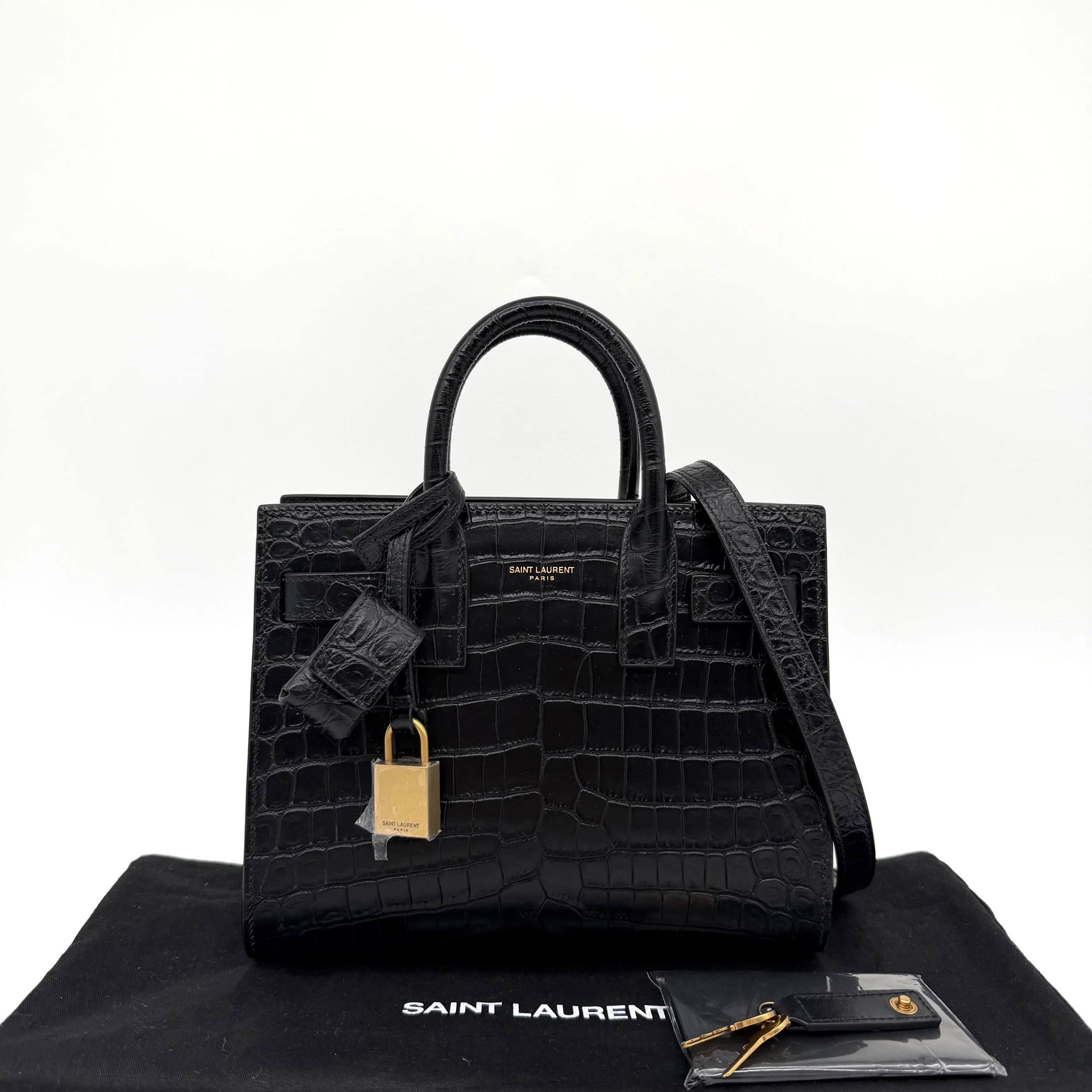 Item Description/Model: Saint Laurent YSL Nano Sac De Jour Bag in Black Croc Embossed Leather and Gold Hardware