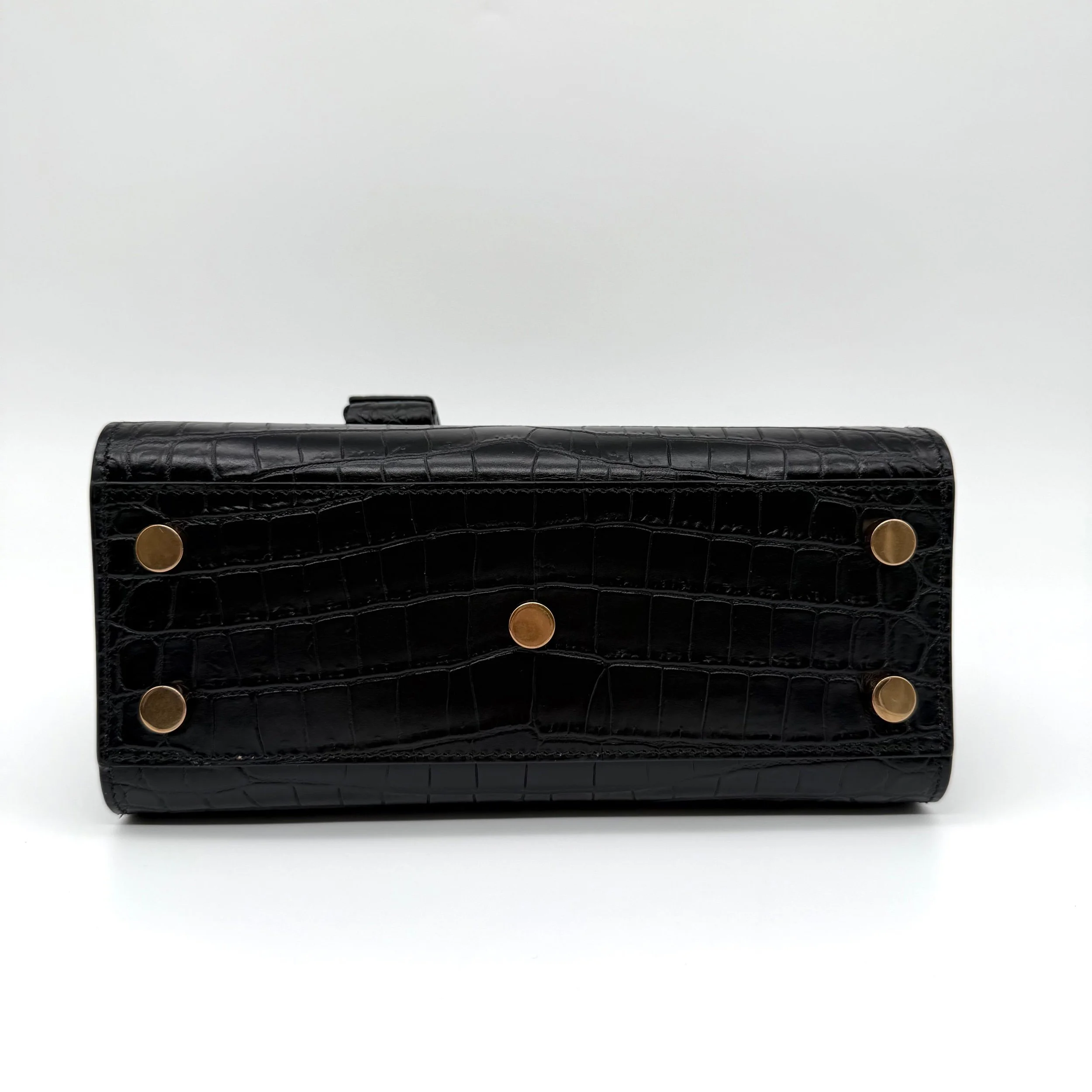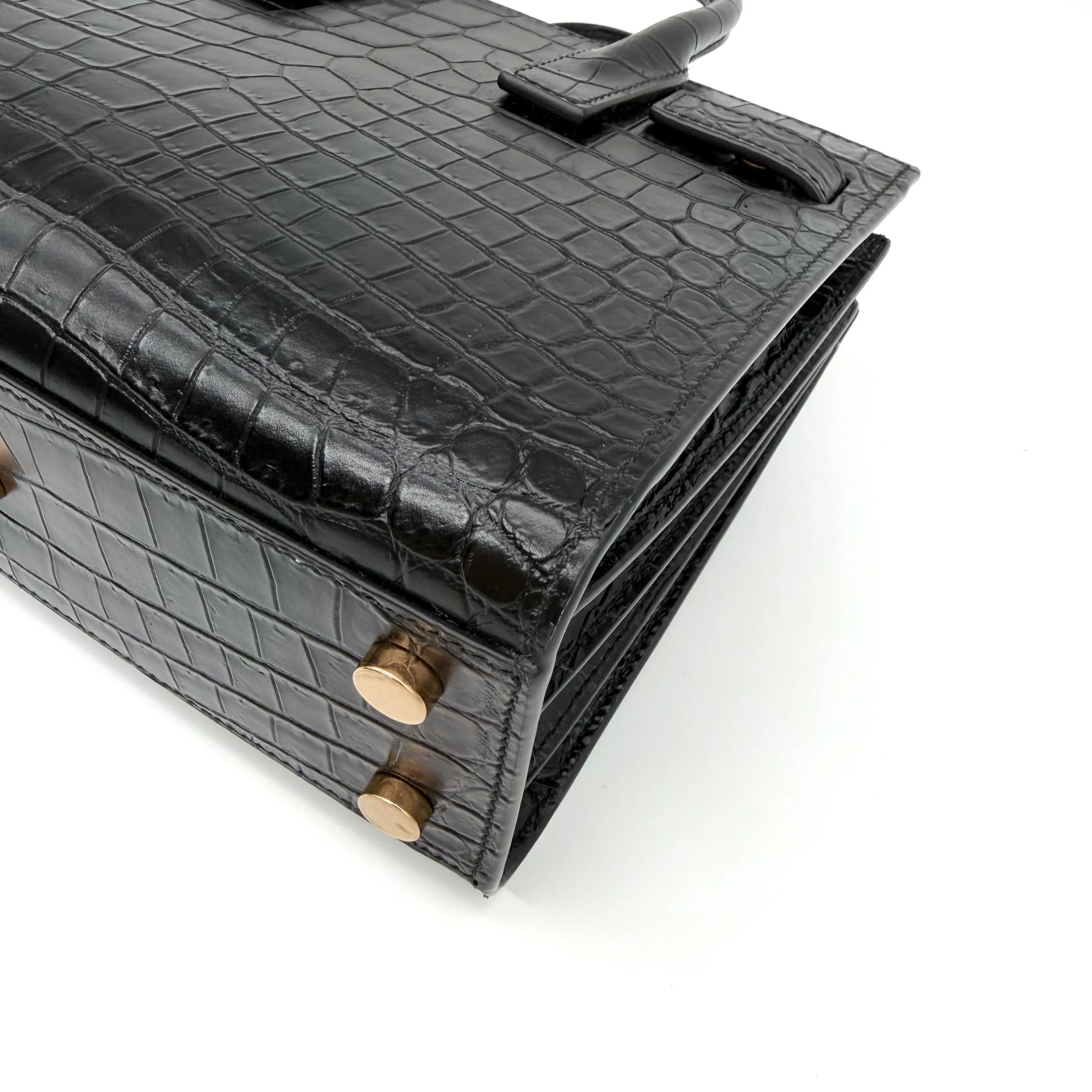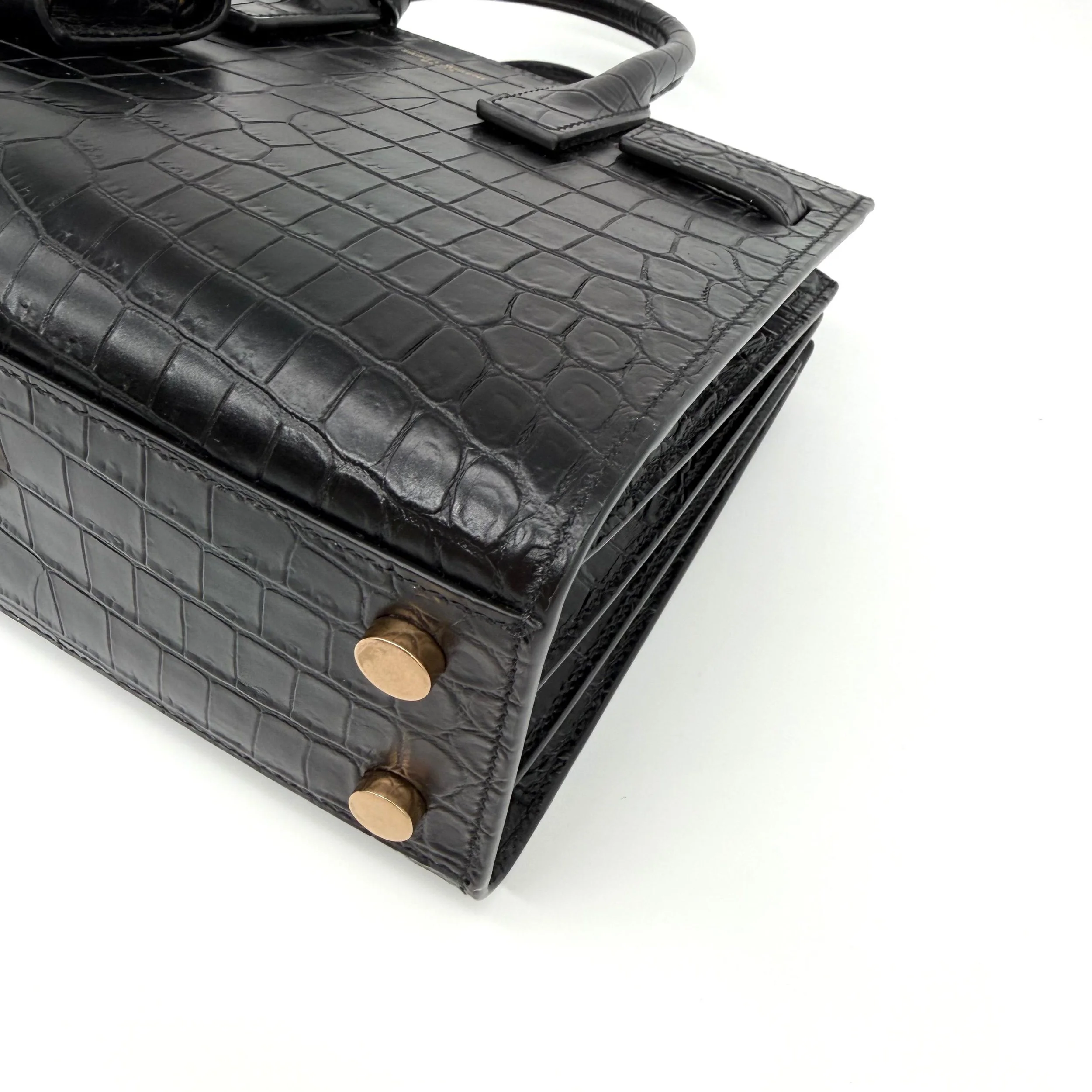 Saint Laurent YSL Nano Sac De Jour Bag in Black Croc Embossed Leather and Gold Hardware