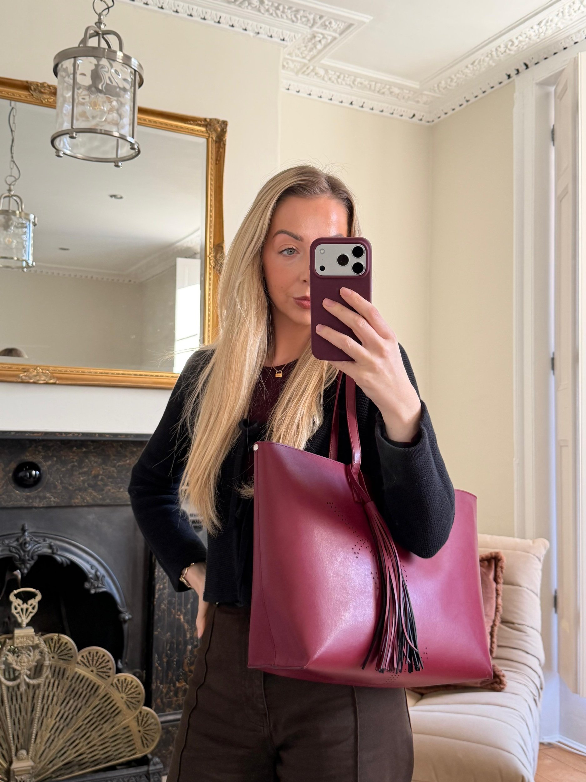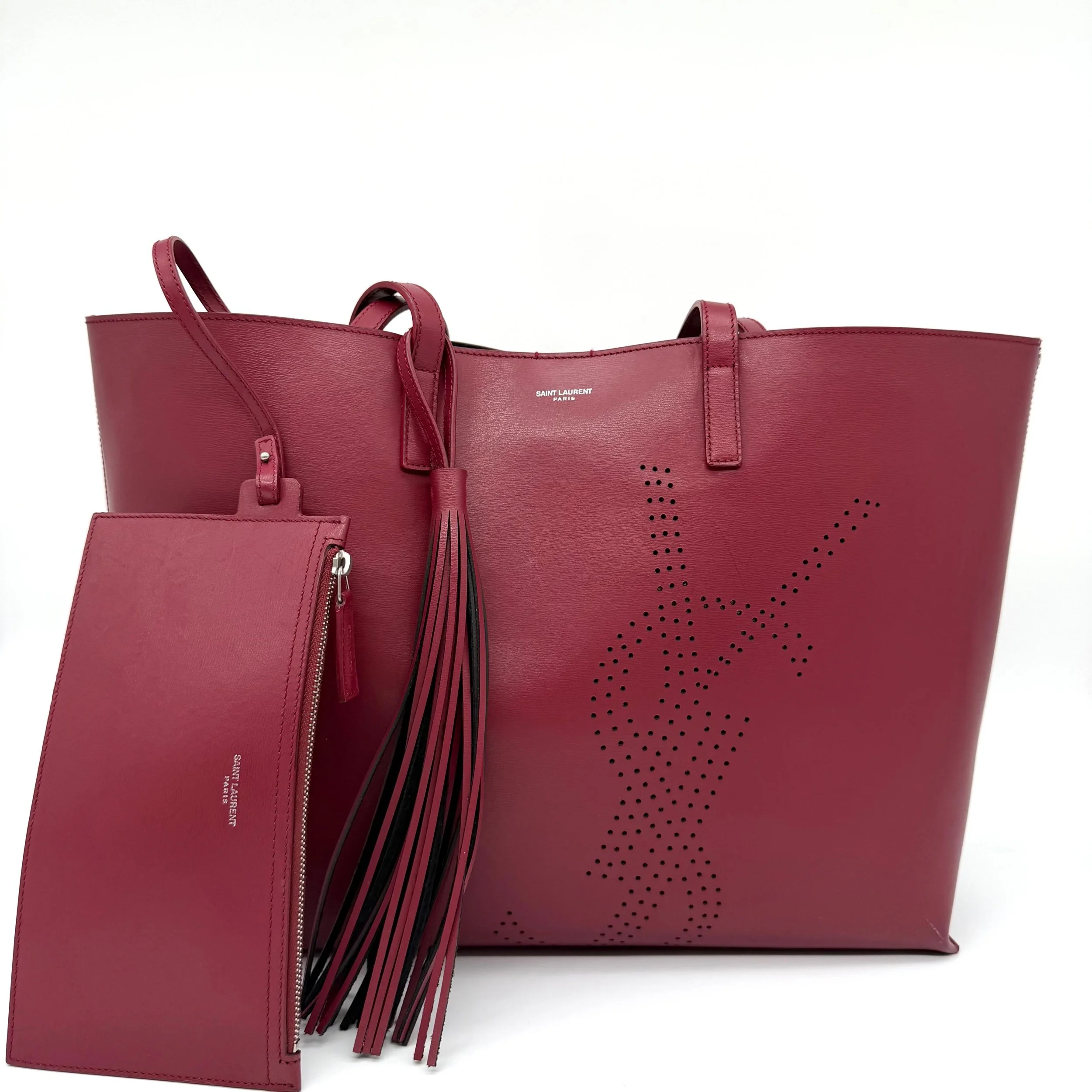 Item Description/Model: Saint Laurent YSL Perforated Tassel Shopping Tote Bag Burgundy