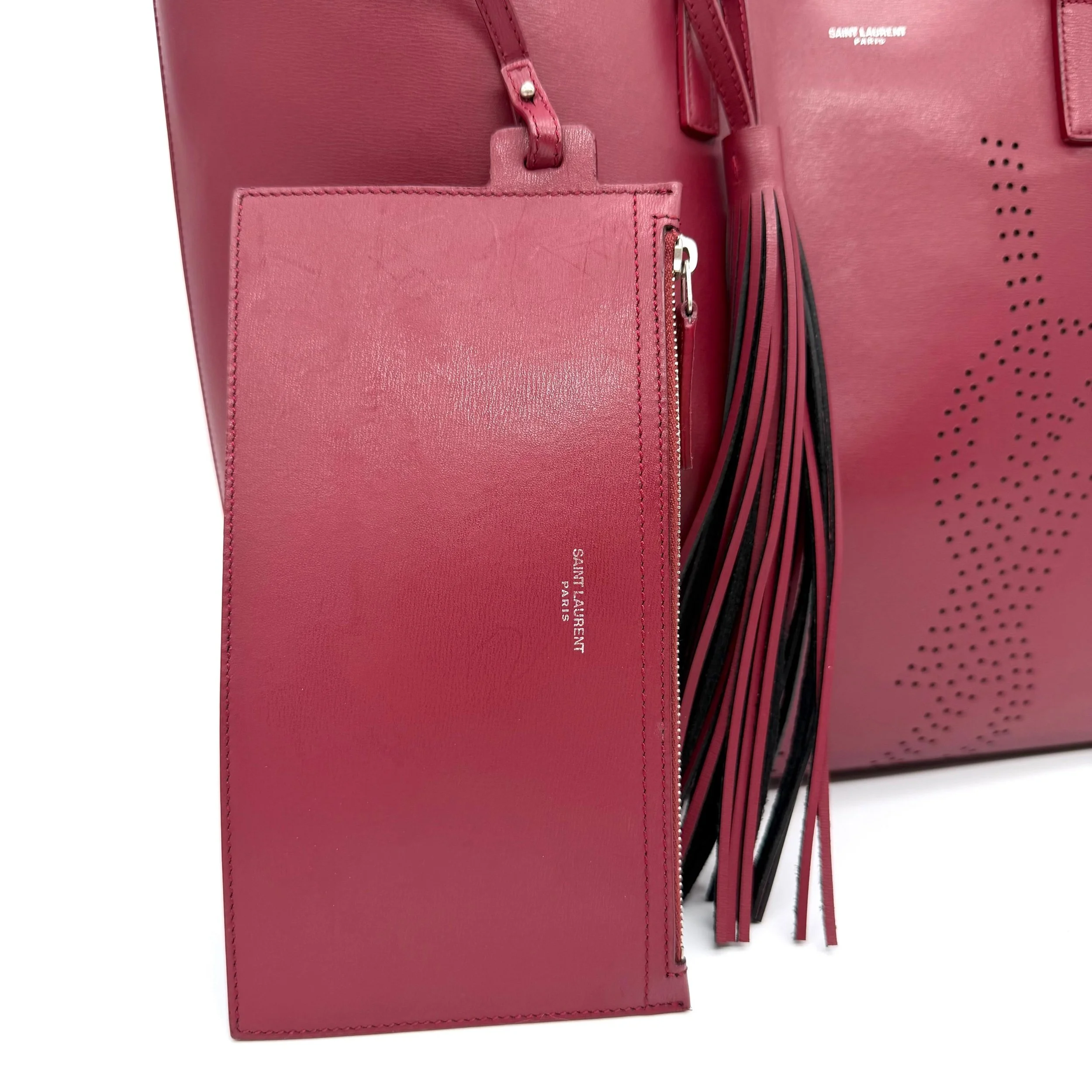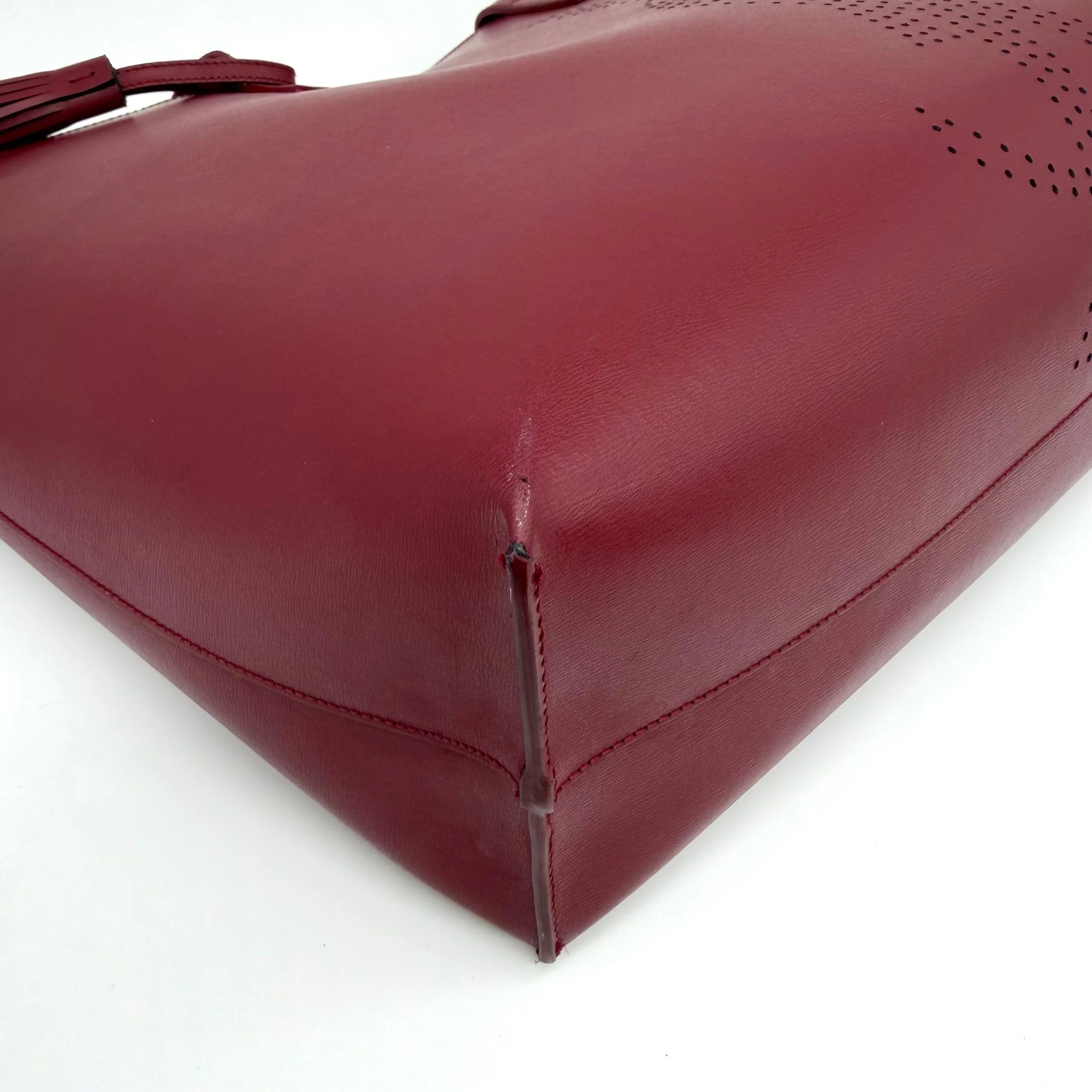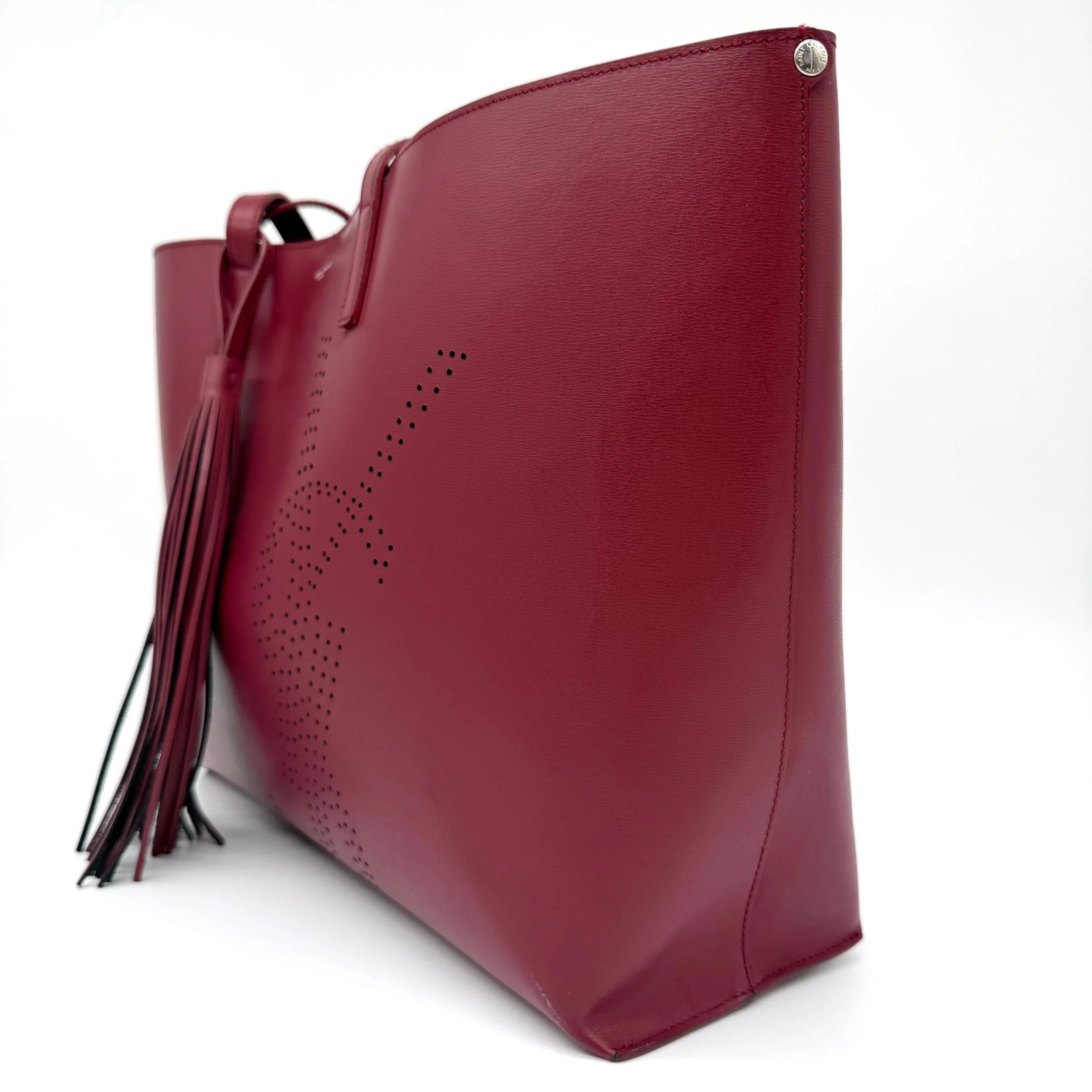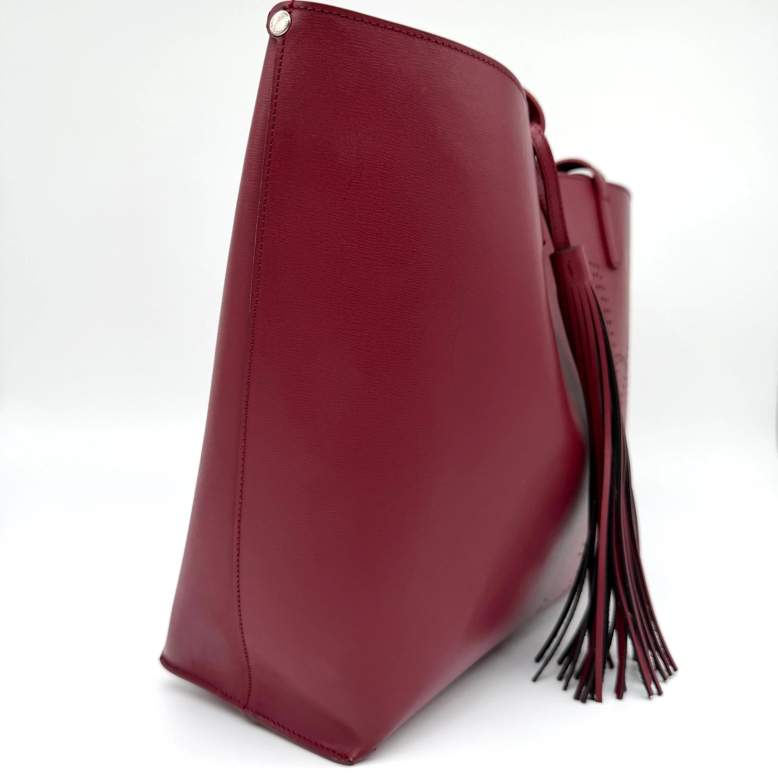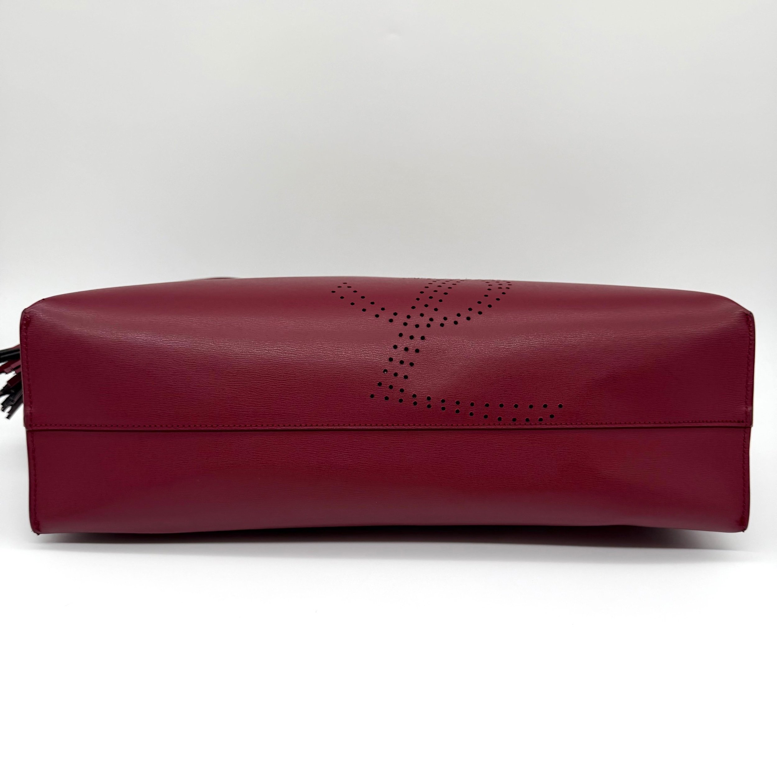 Saint Laurent YSL Perforated Tassel Shopping Tote Bag Burgundy