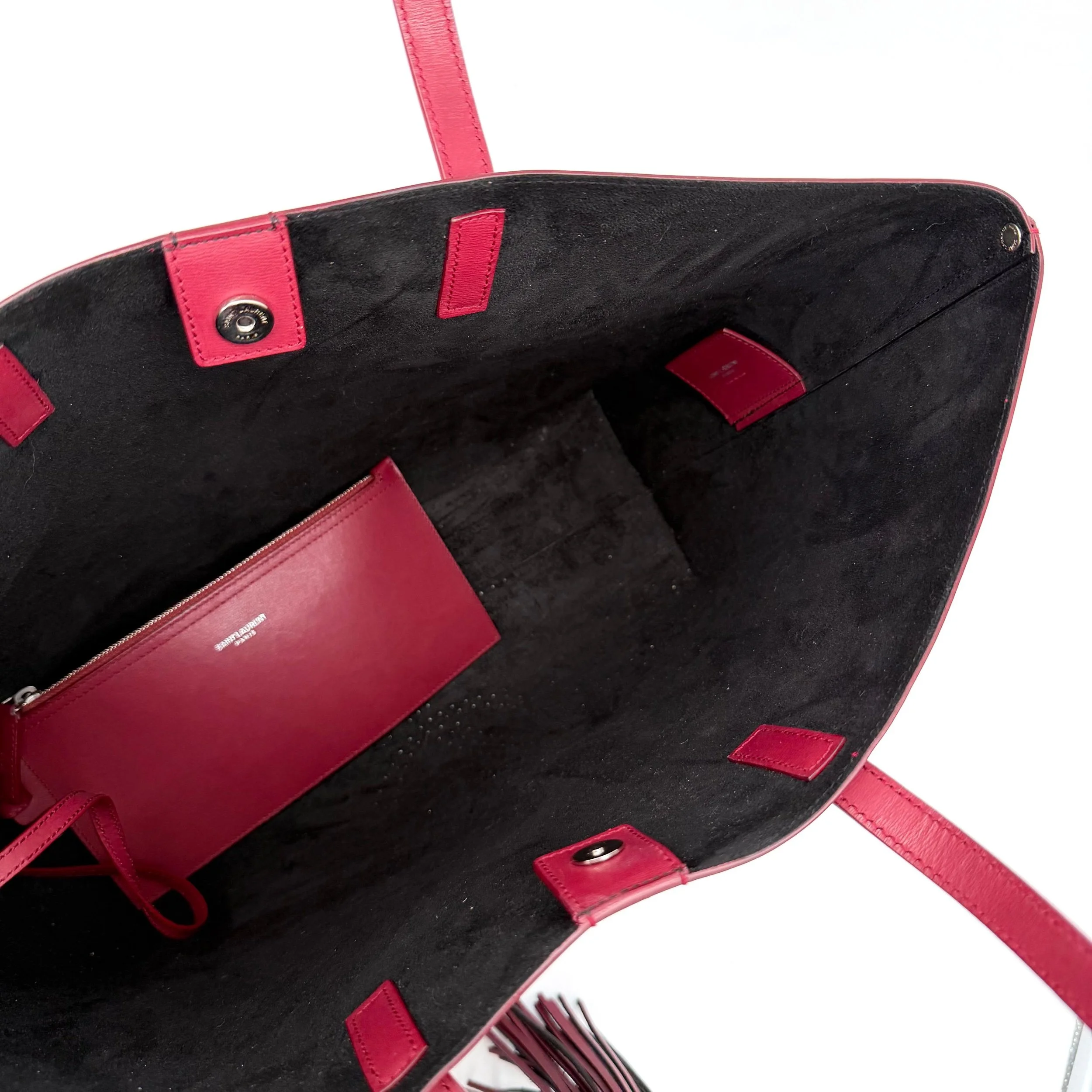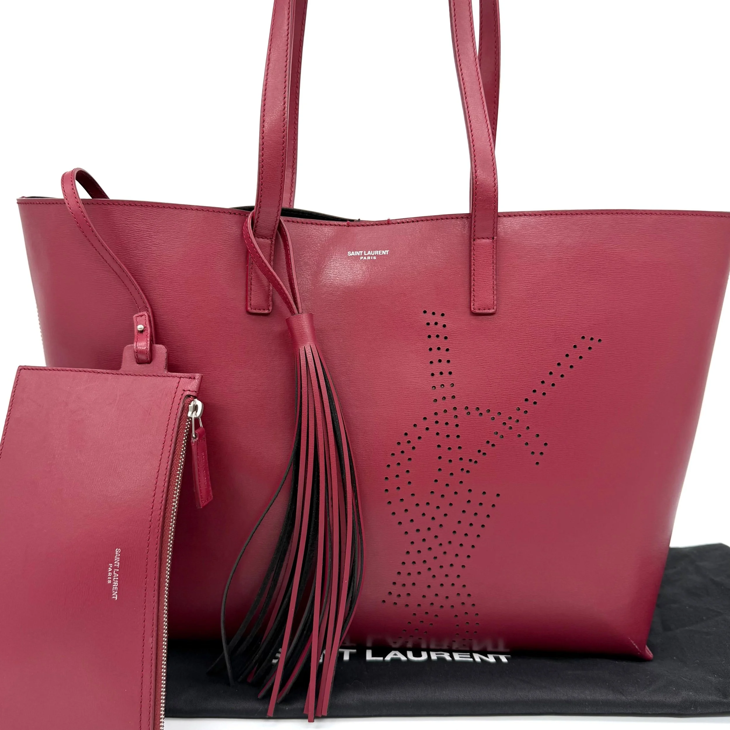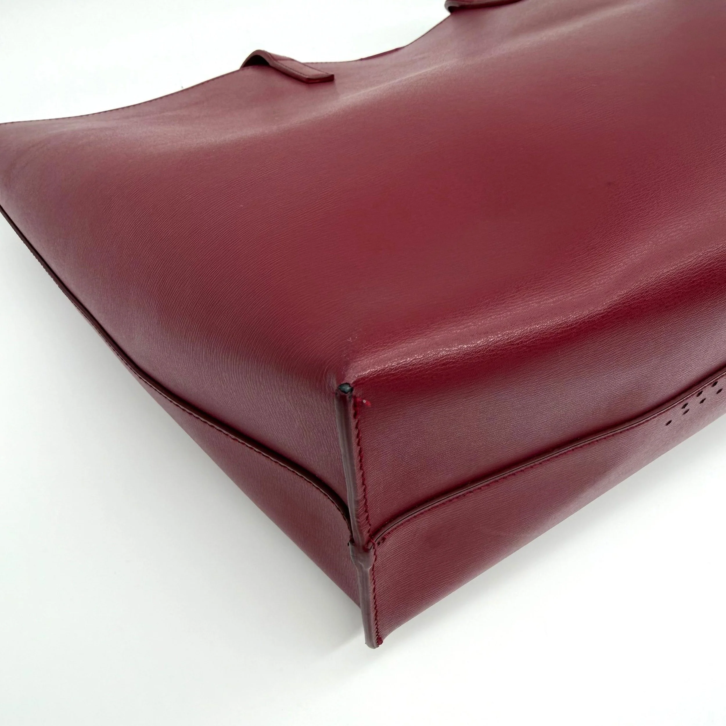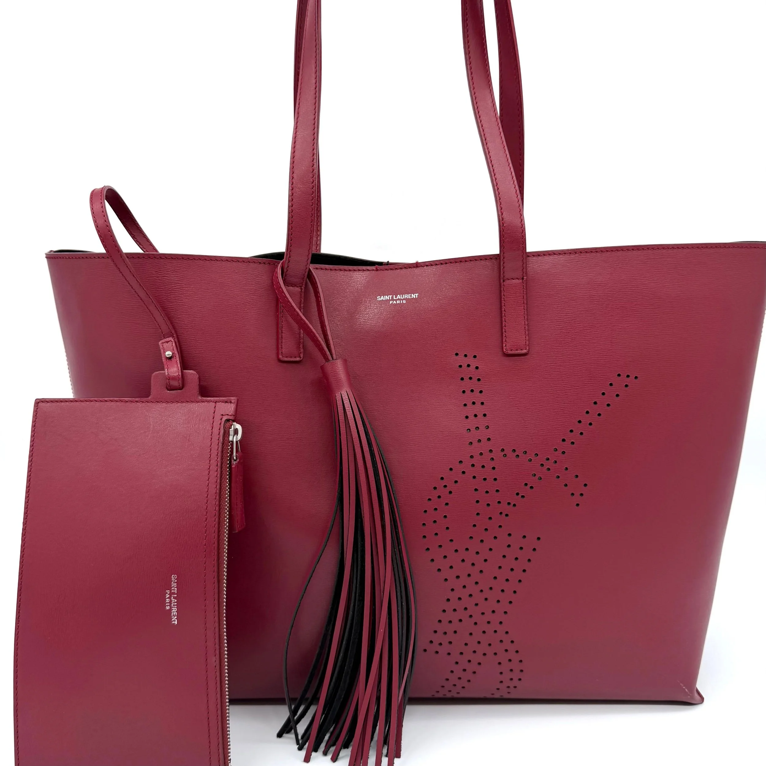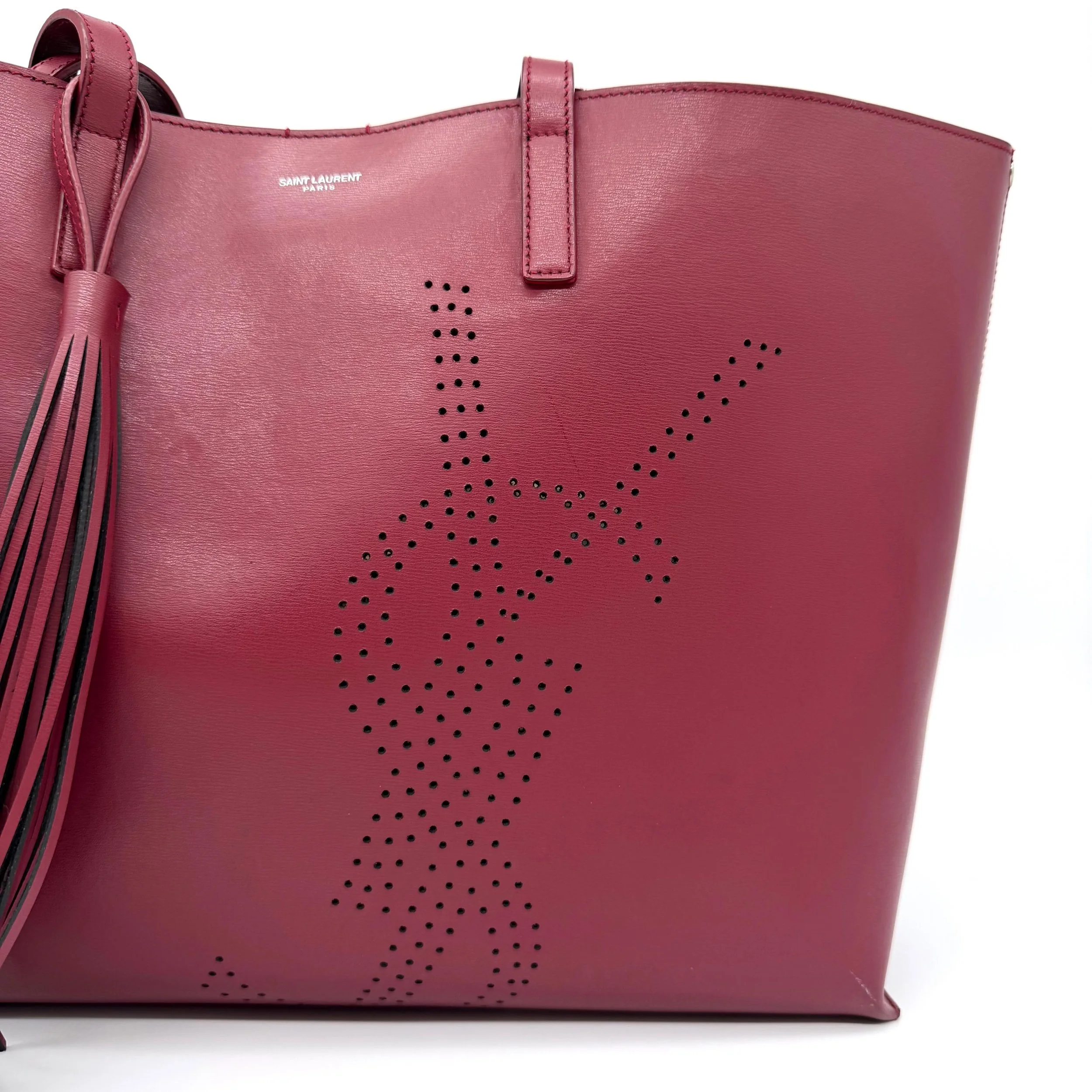 Saint Laurent YSL Perforated Tassel Shopping Tote Bag Burgundy