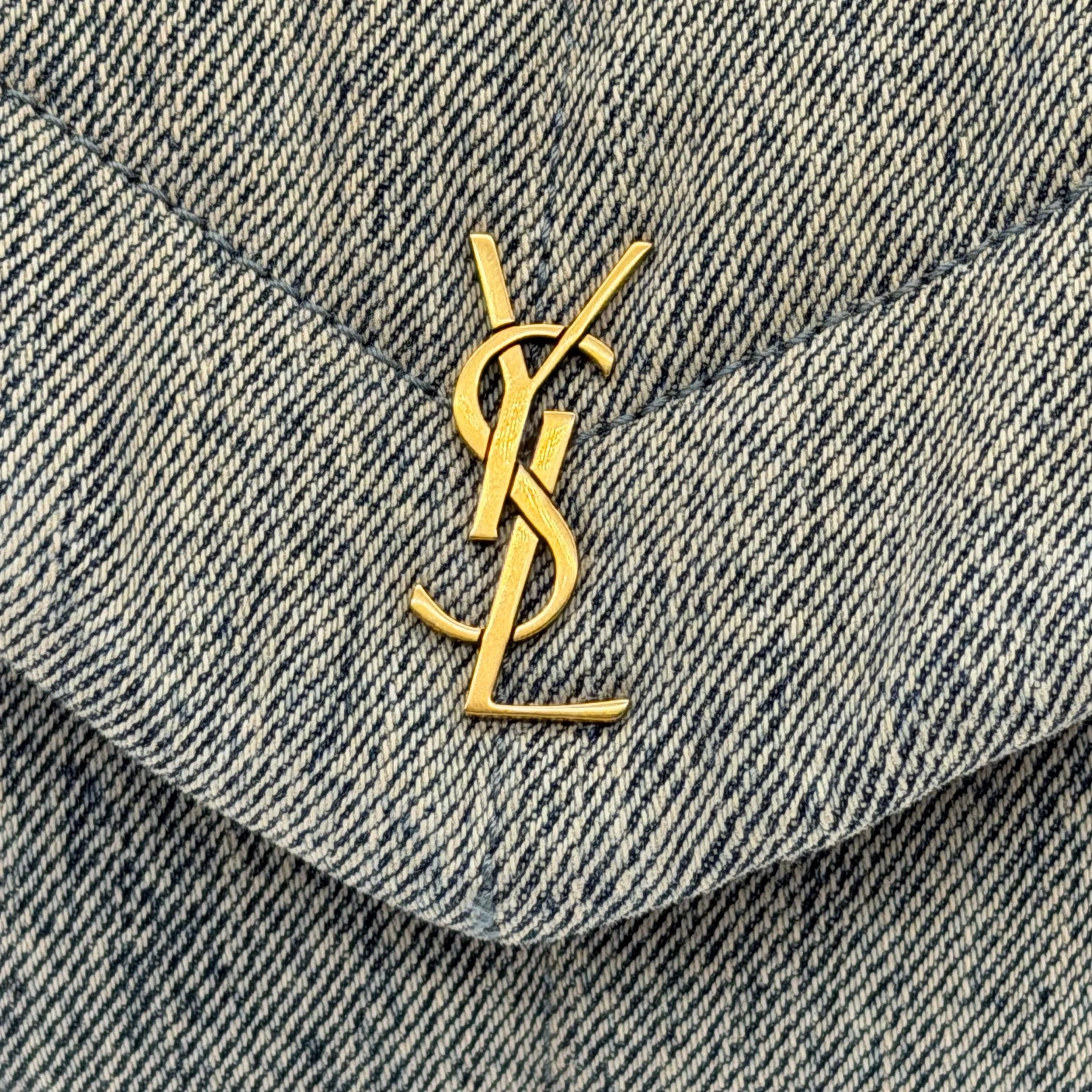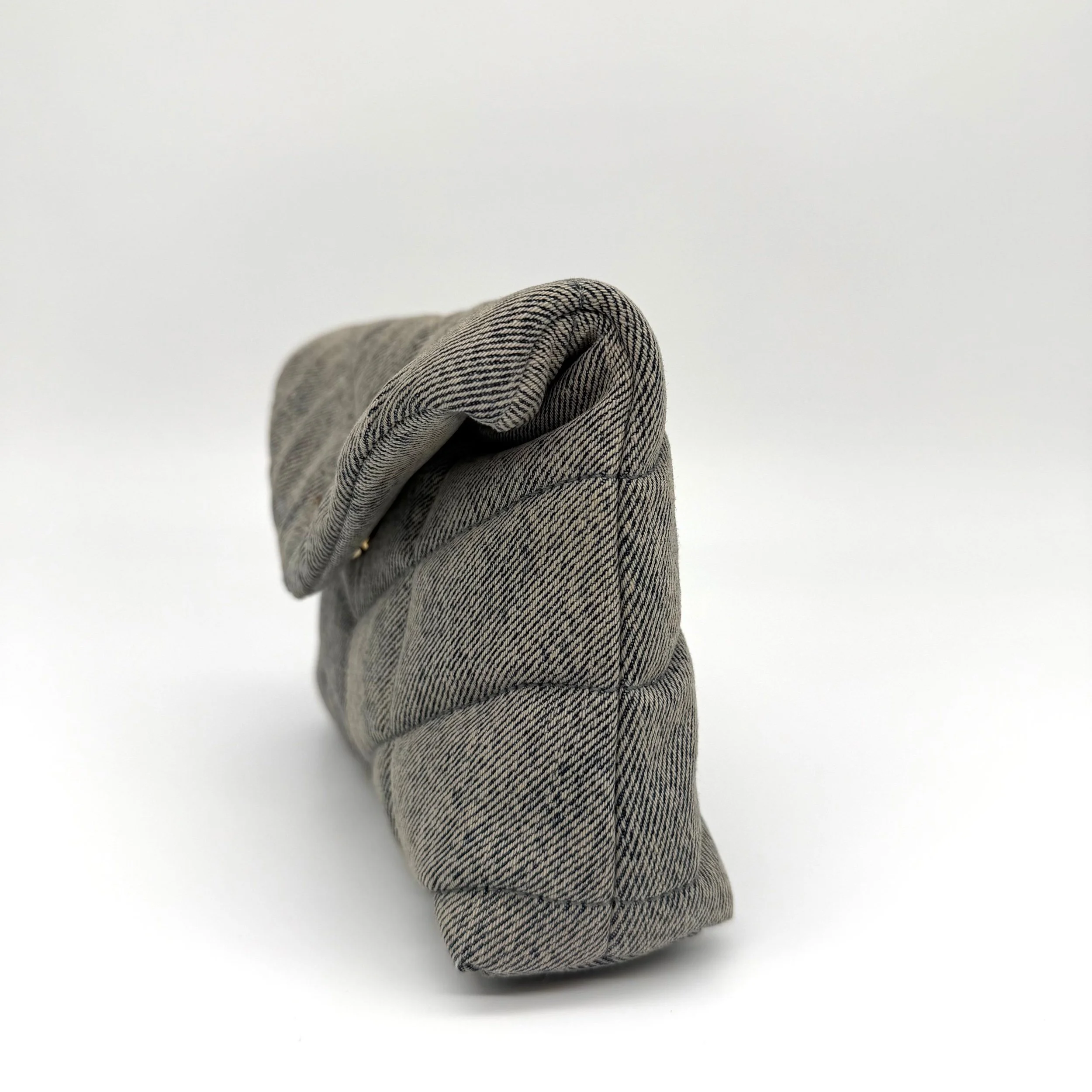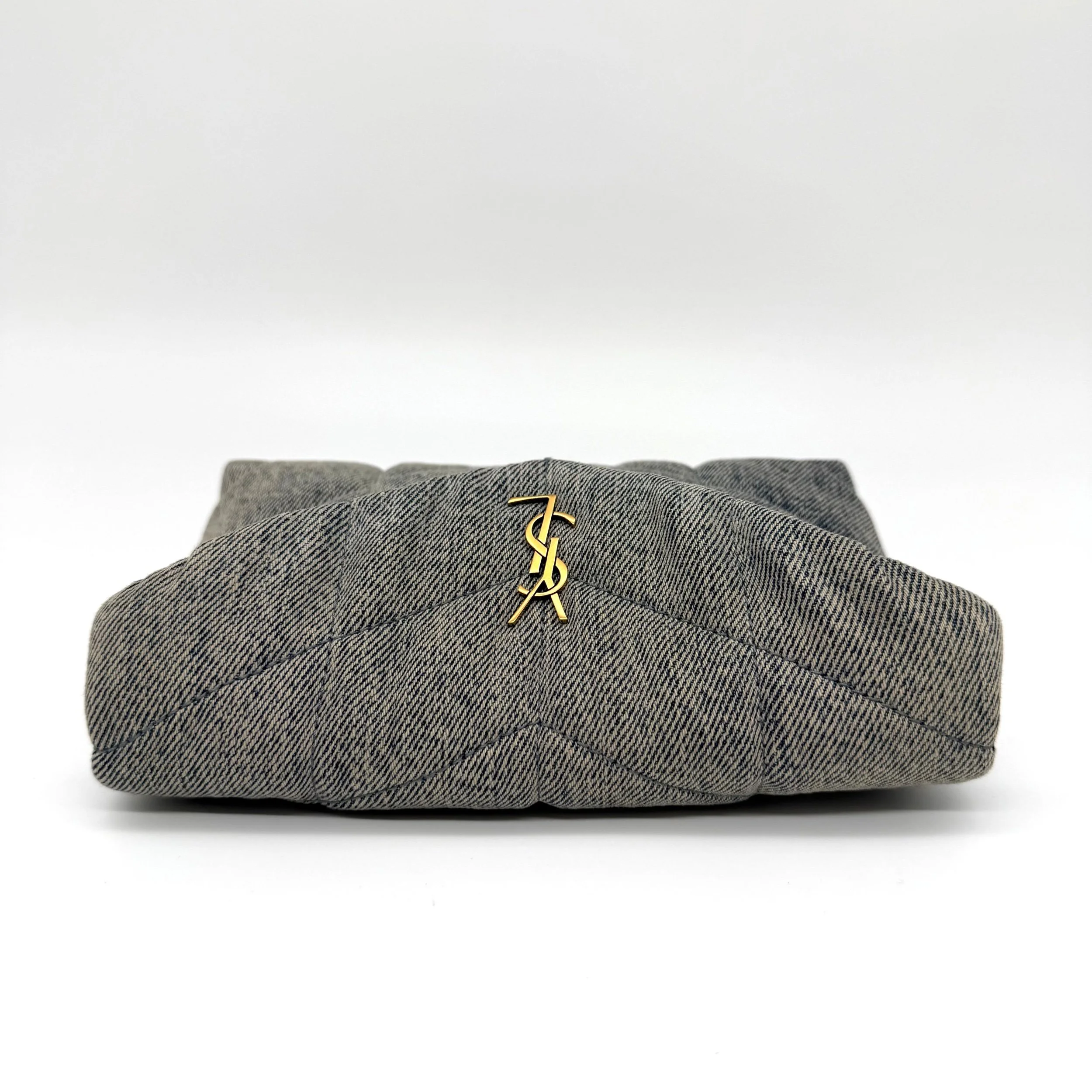 Saint Laurent YSL Puffer Lou Denim Pouch Clutch Bag