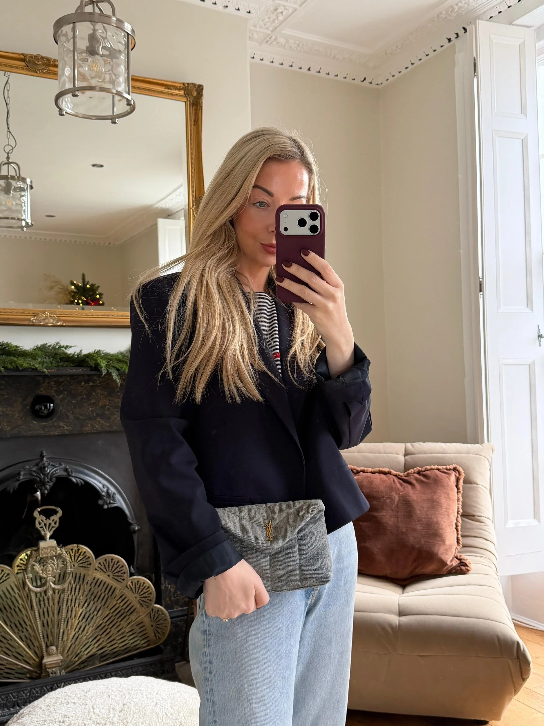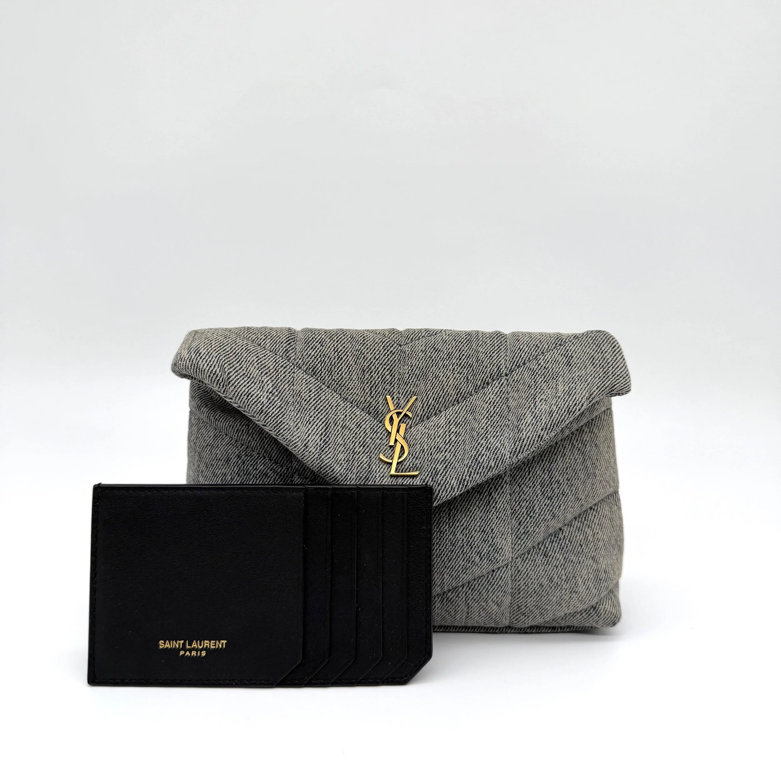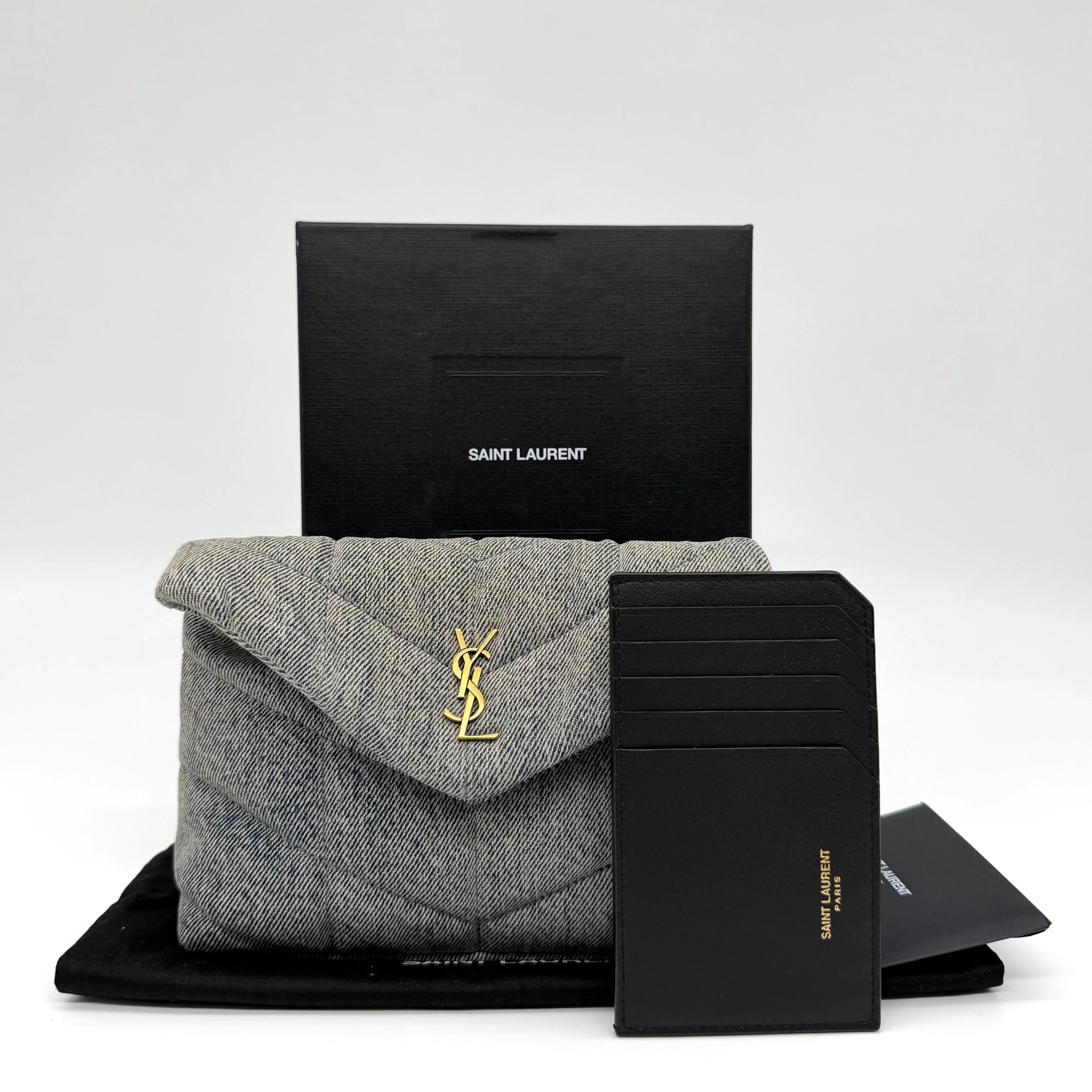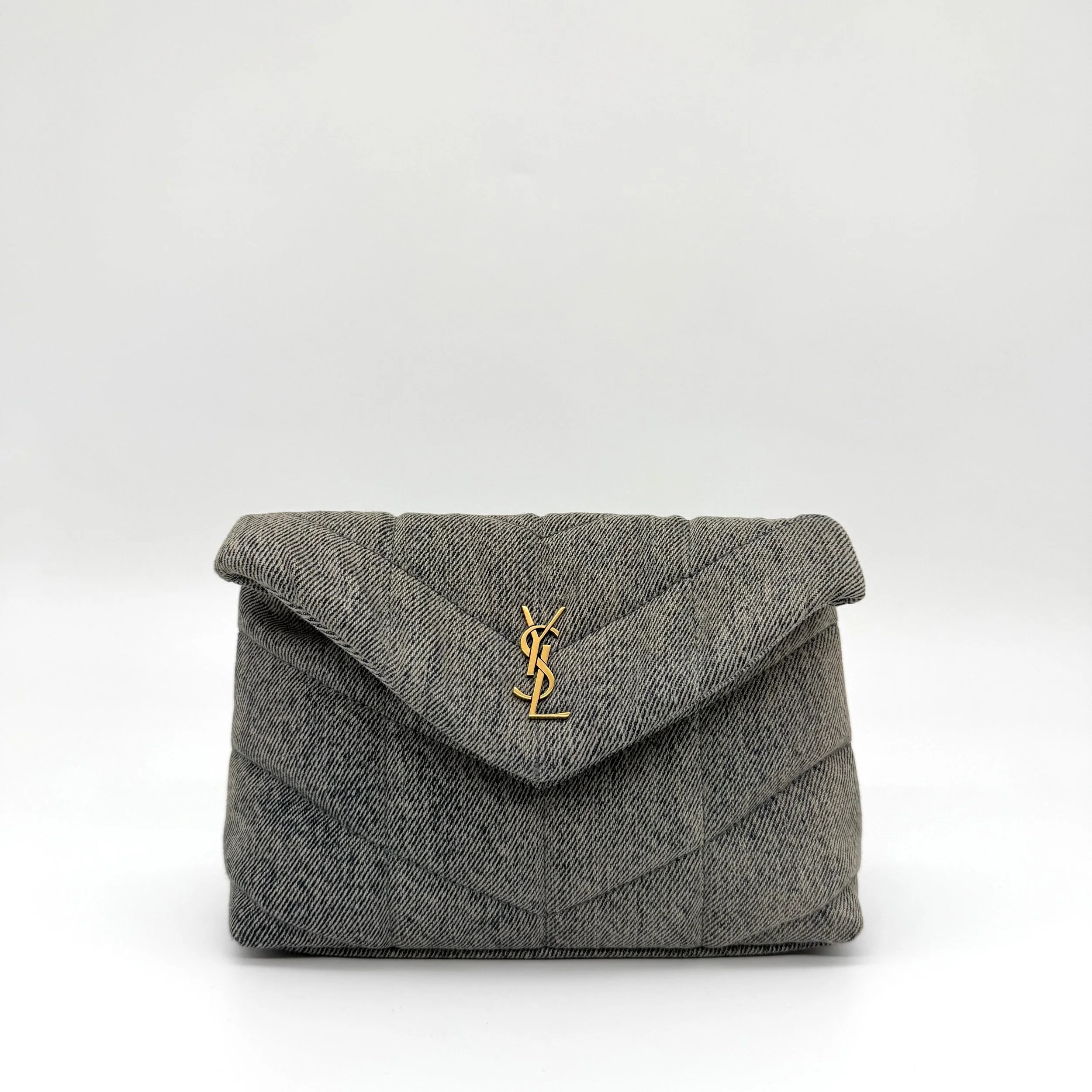 Saint Laurent YSL Puffer Lou Denim Pouch Clutch Bag