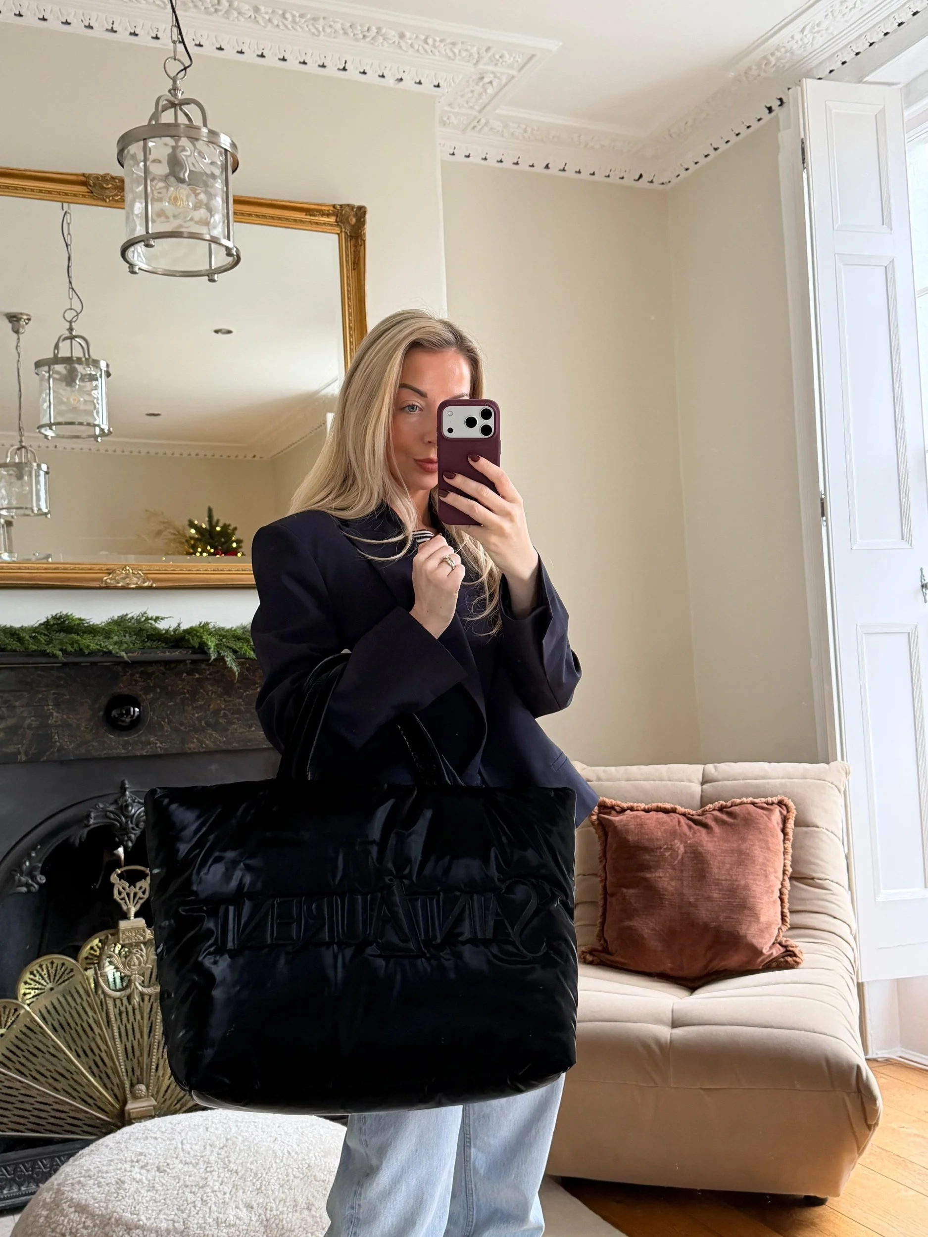 Item Description/Model: Saint Laurent YSL Silk Tech Puffer Nylon Embossed Logo Large Tote Bag