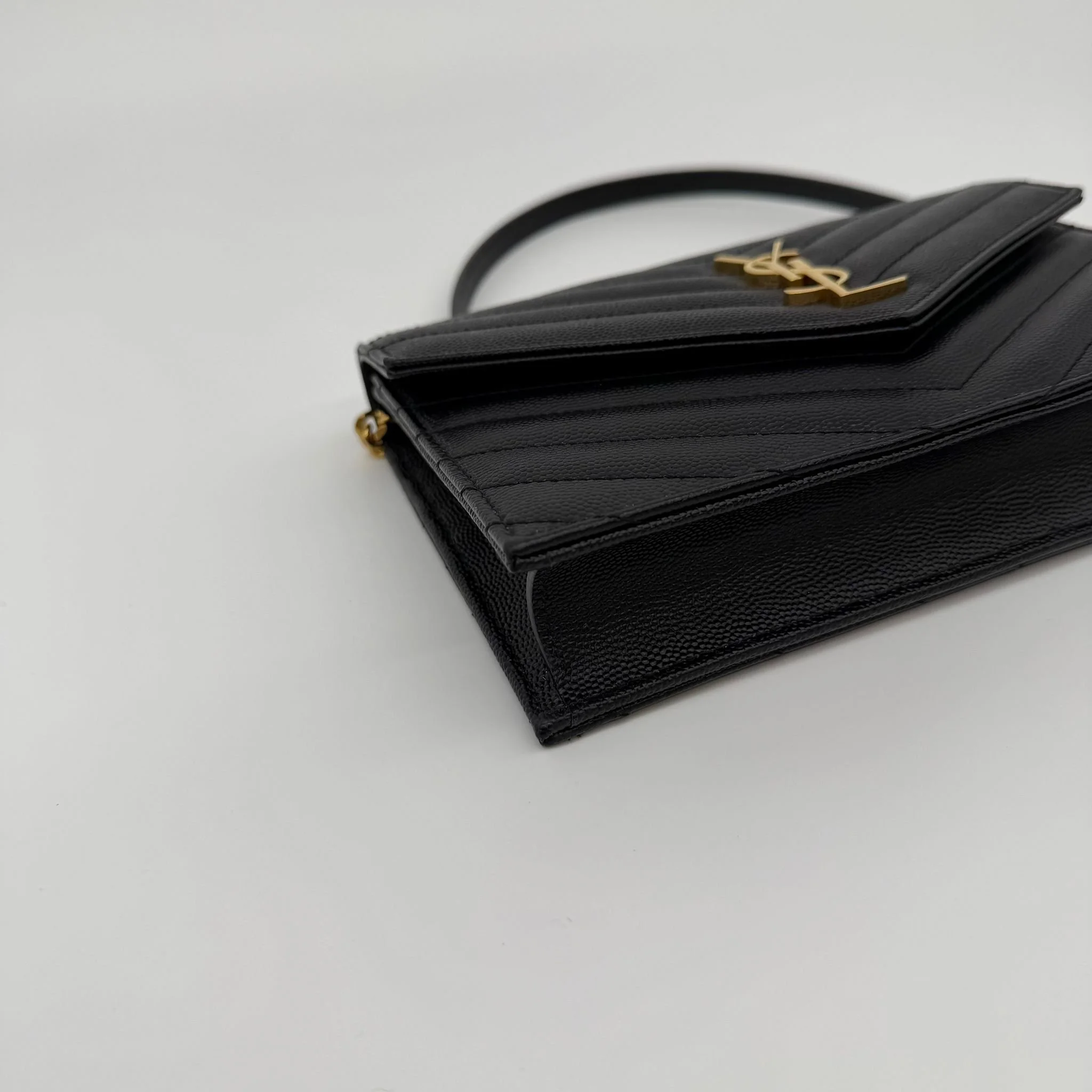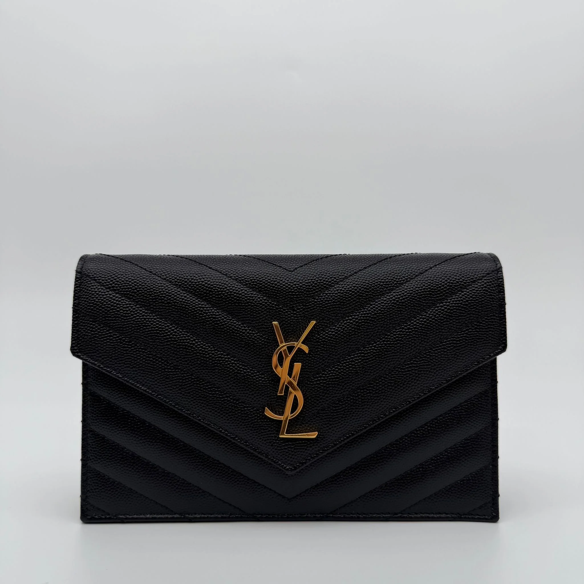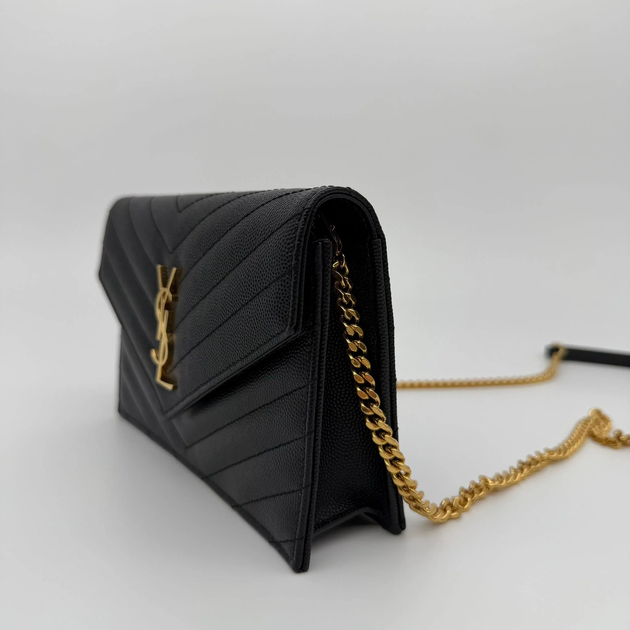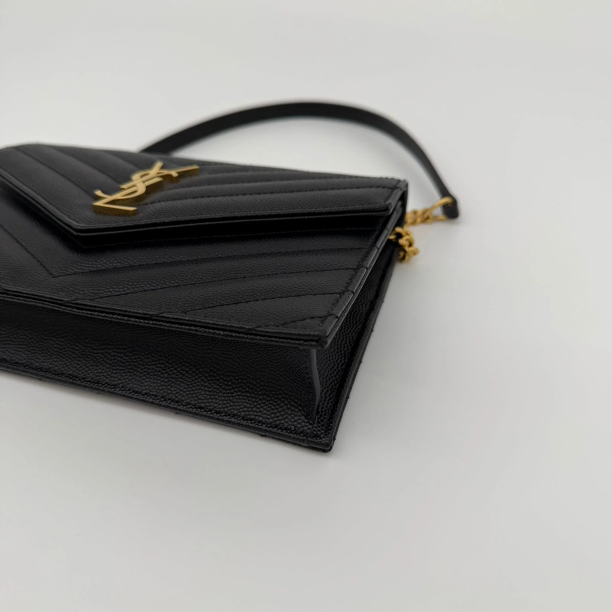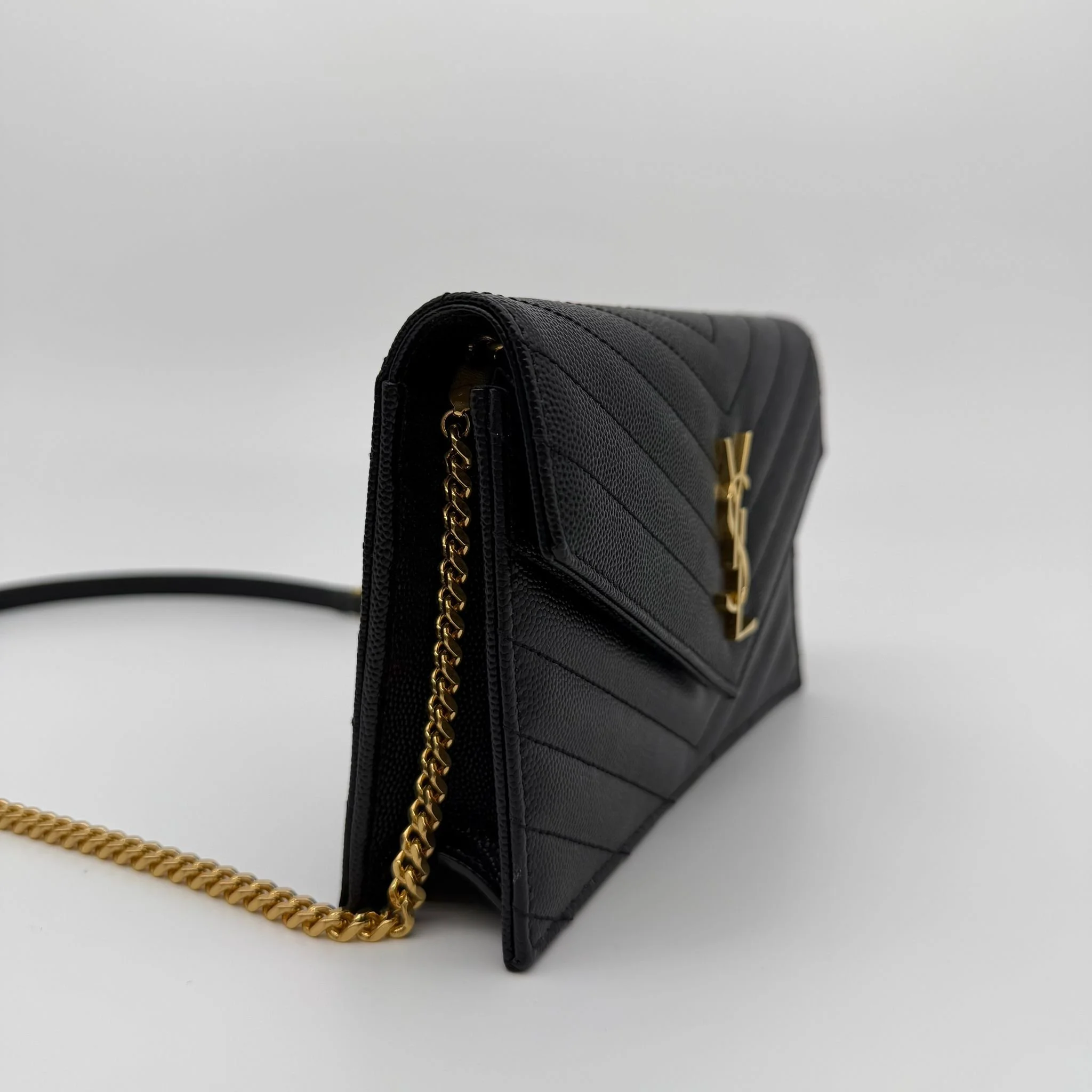 Saint Laurent YSL Small Envelope Wallet on Chain Bag in Black with Gold Hardware
