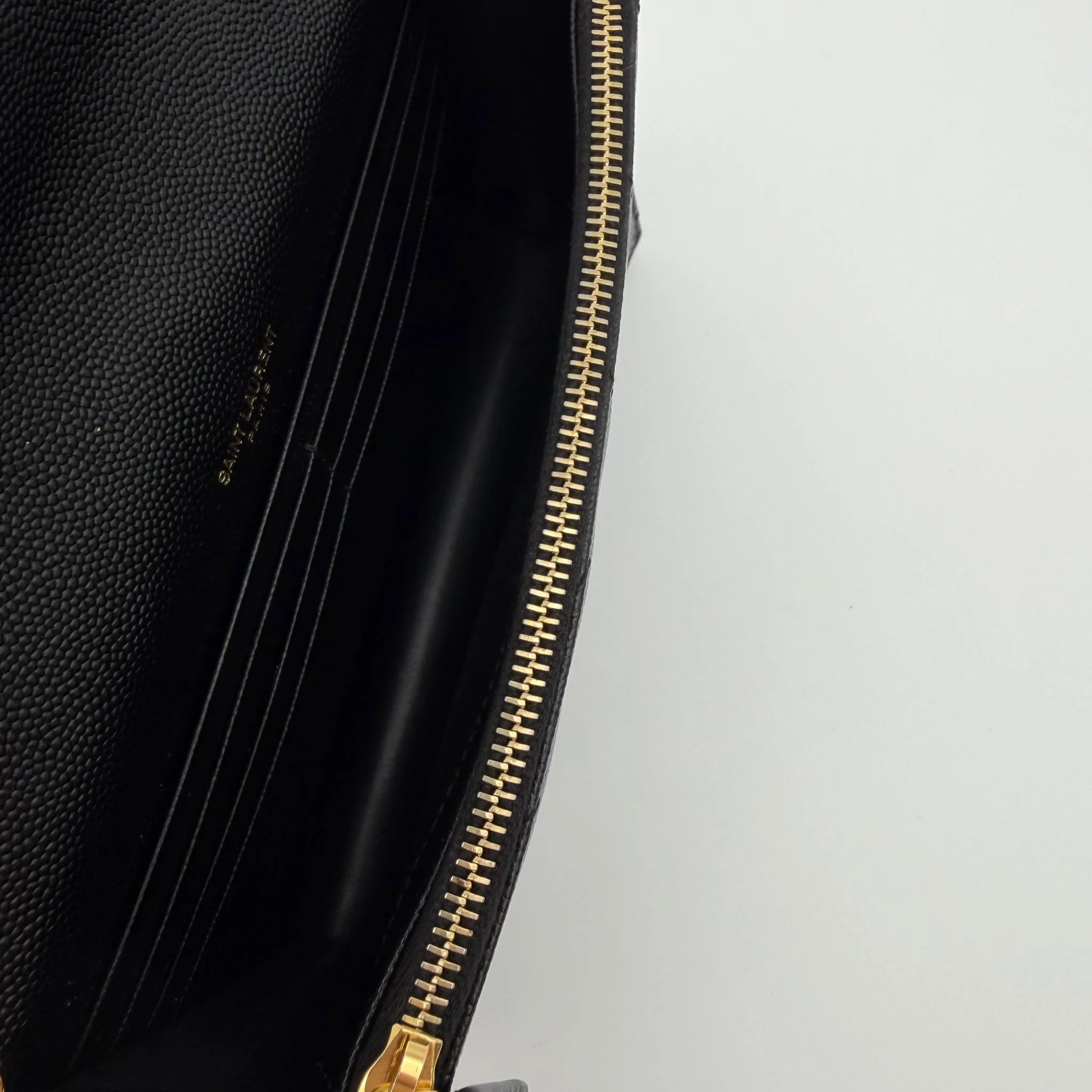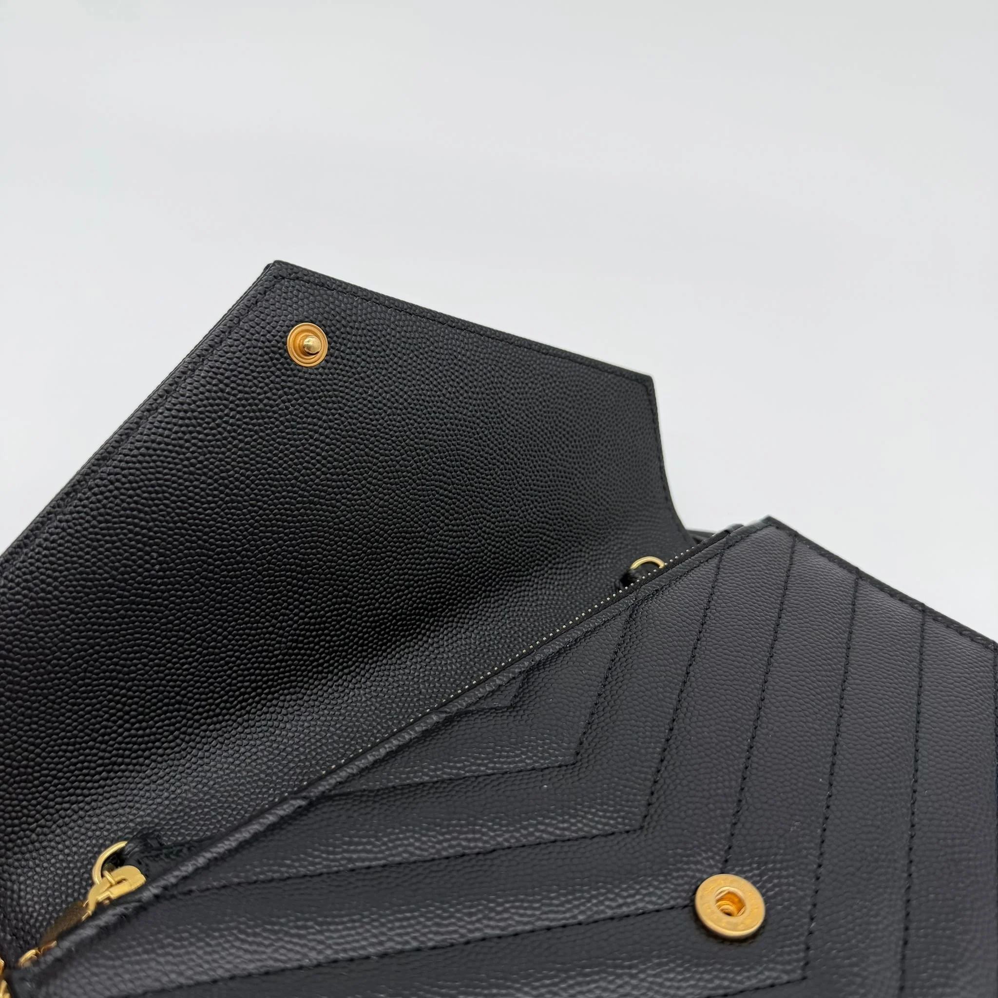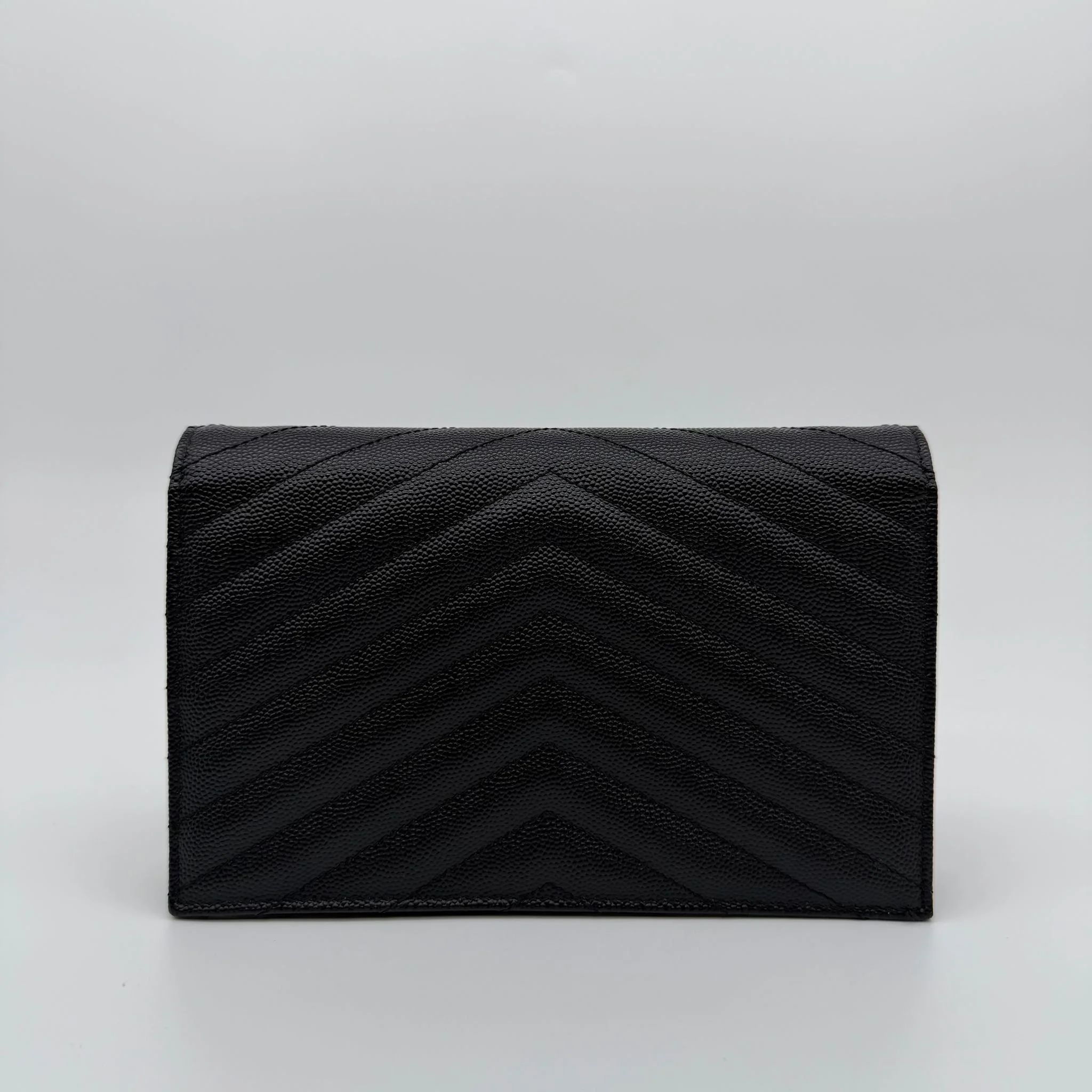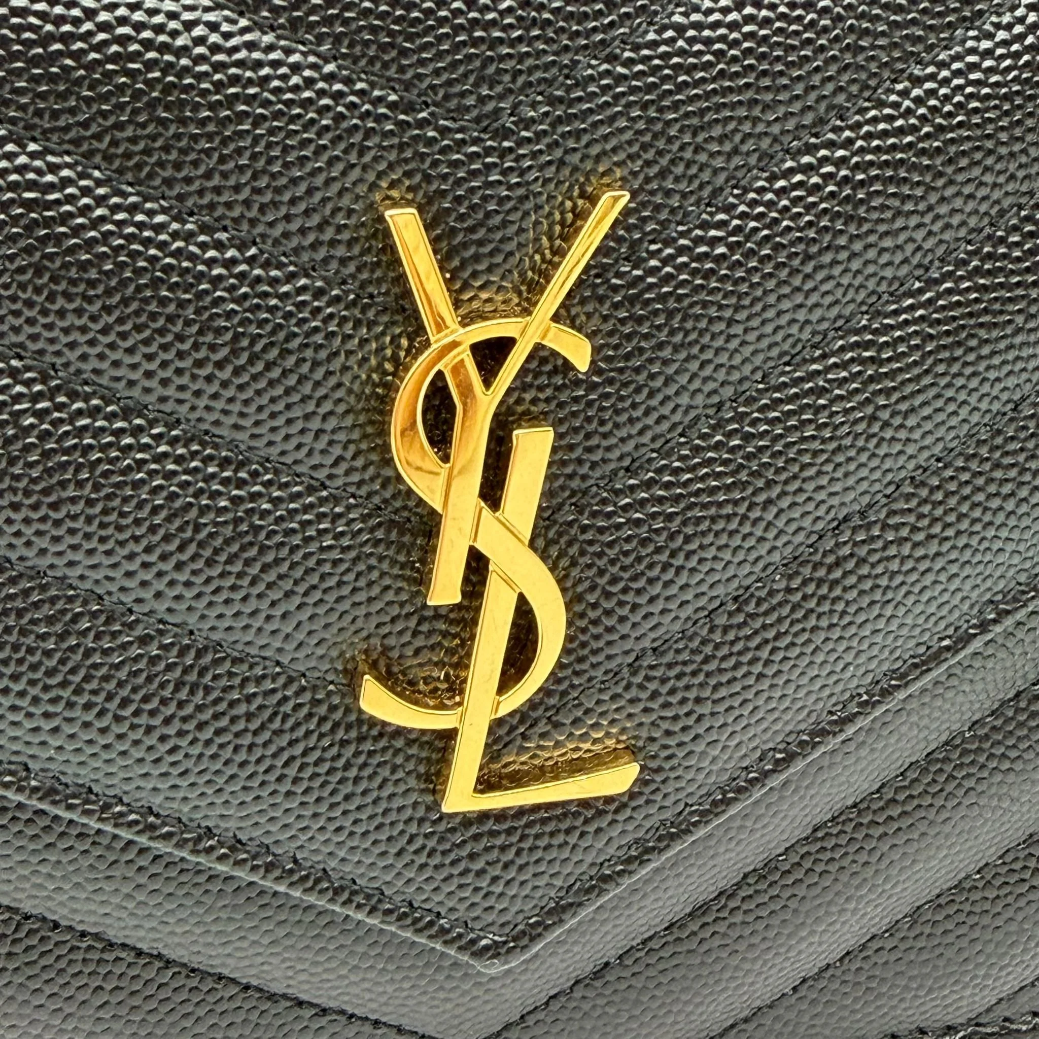 Item Description/Model: Saint Laurent YSL Small Envelope Cassandre Wallet on Chain Bag in Black Quilted Grained Leather and Gold Hardware.