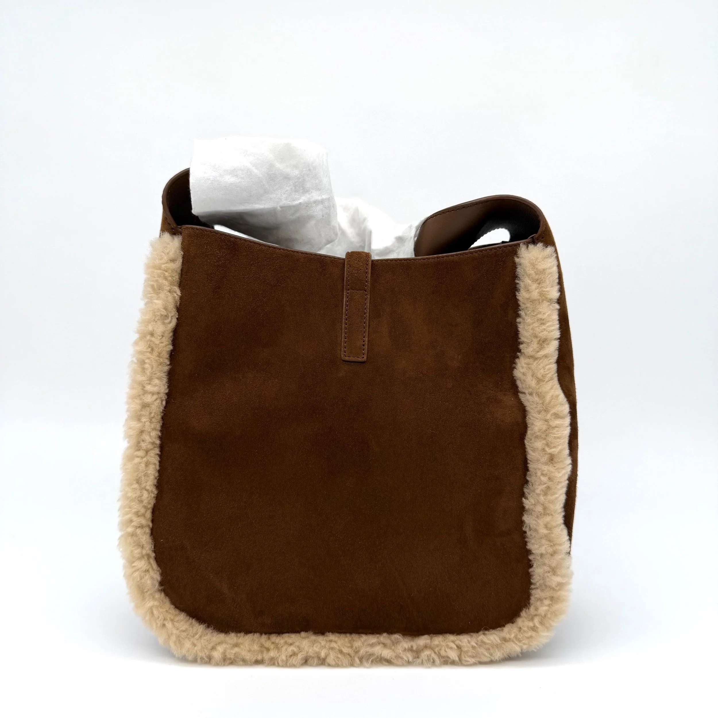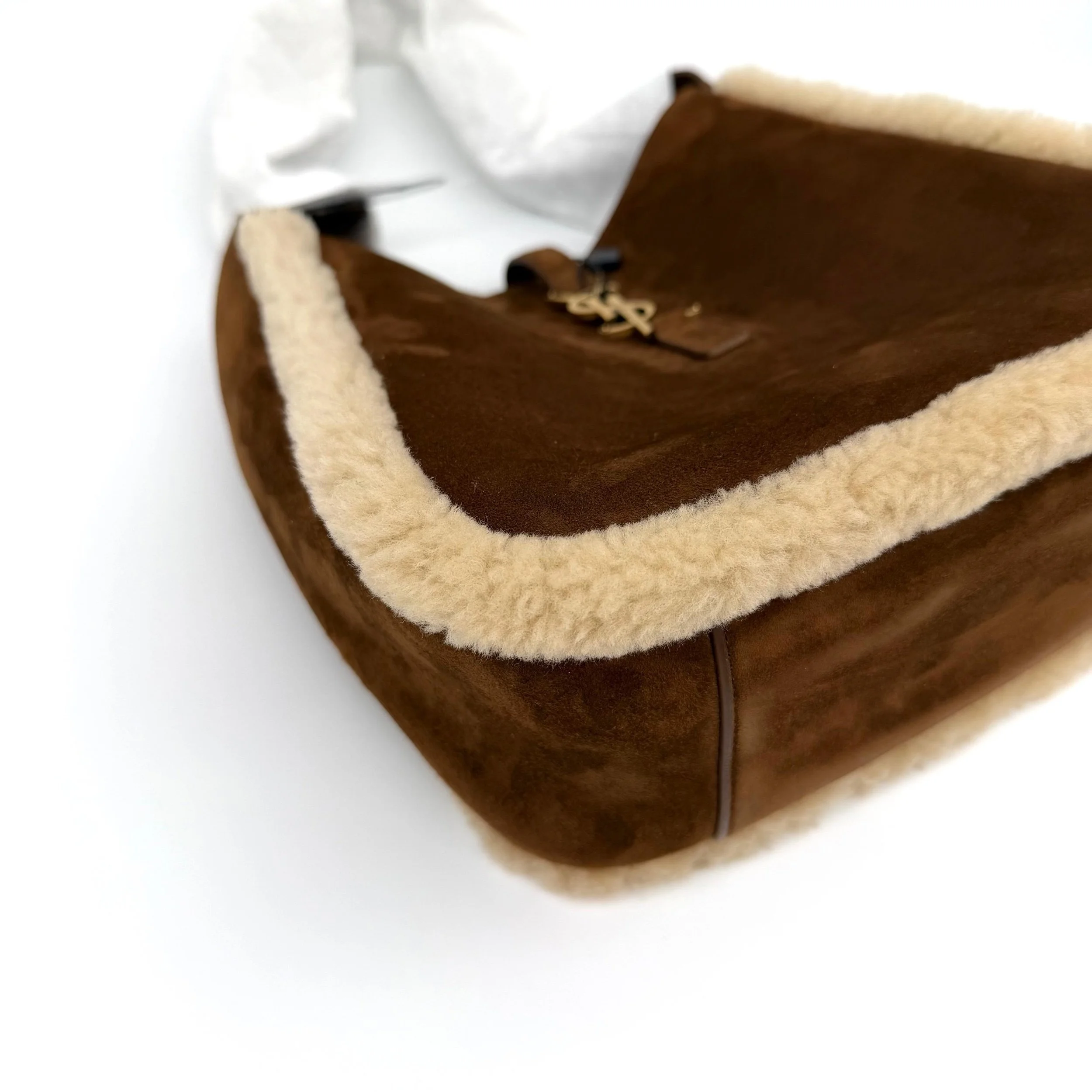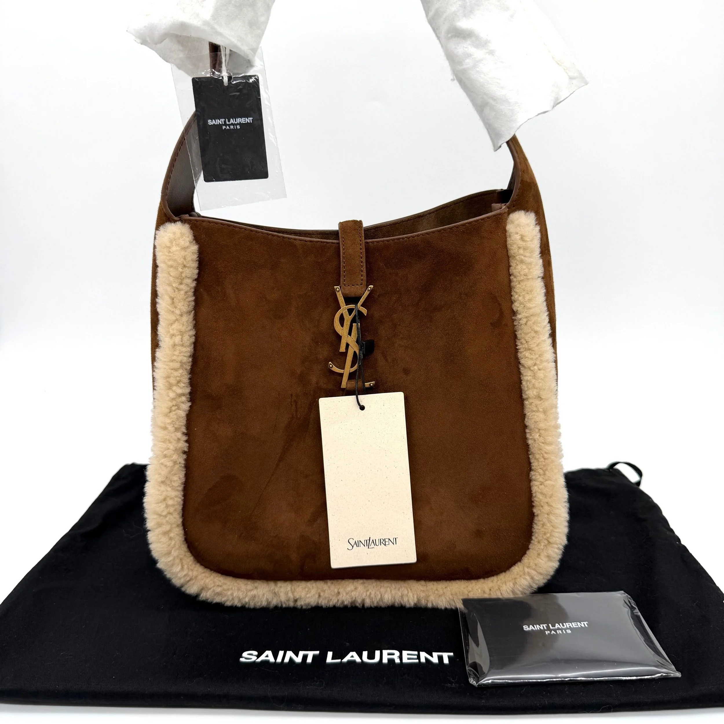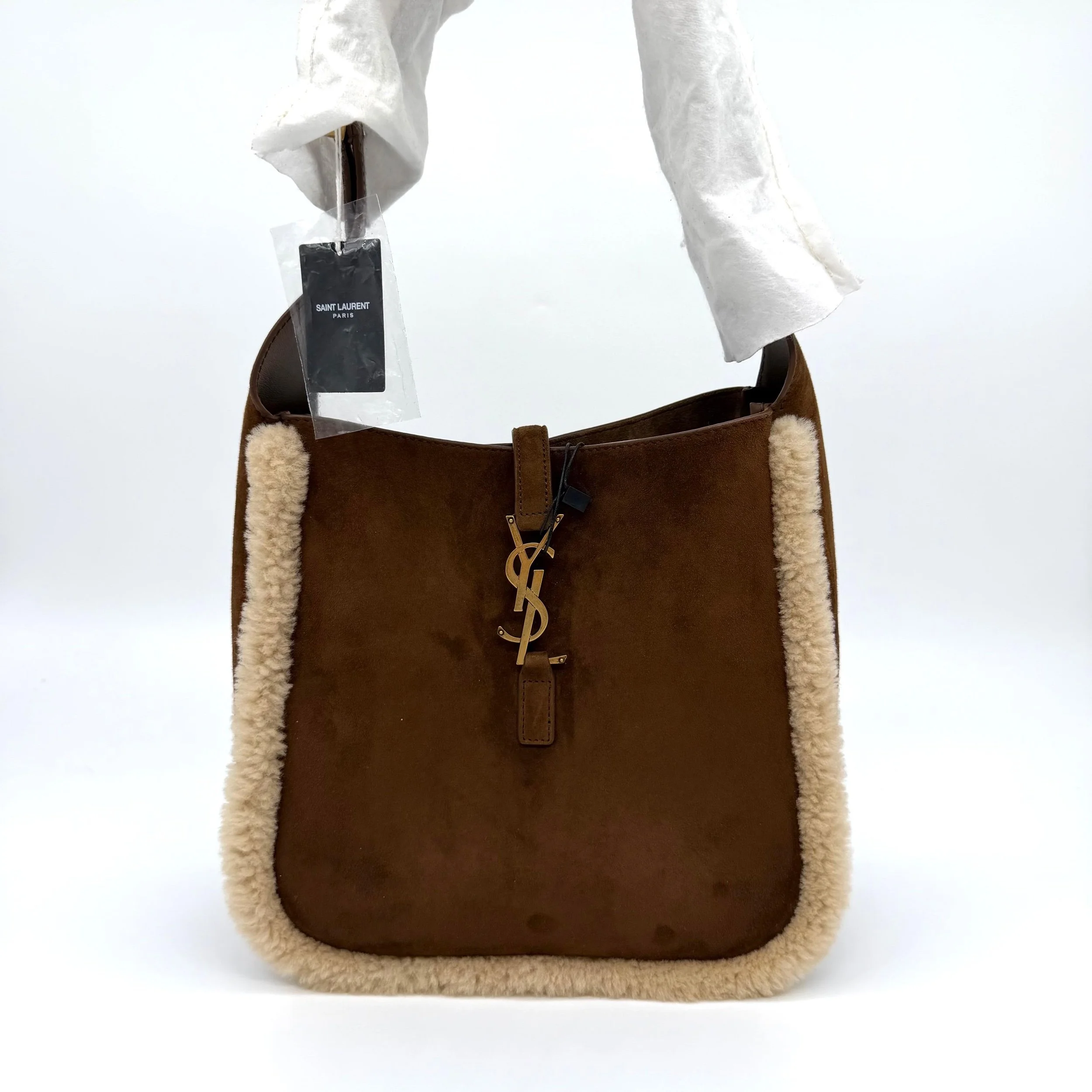 Item Description/Model: Saint Laurent YSL Small Le 5 a 7 Shoulder Bag Brown Suede with Shearling Natural Trim Gold Hardware