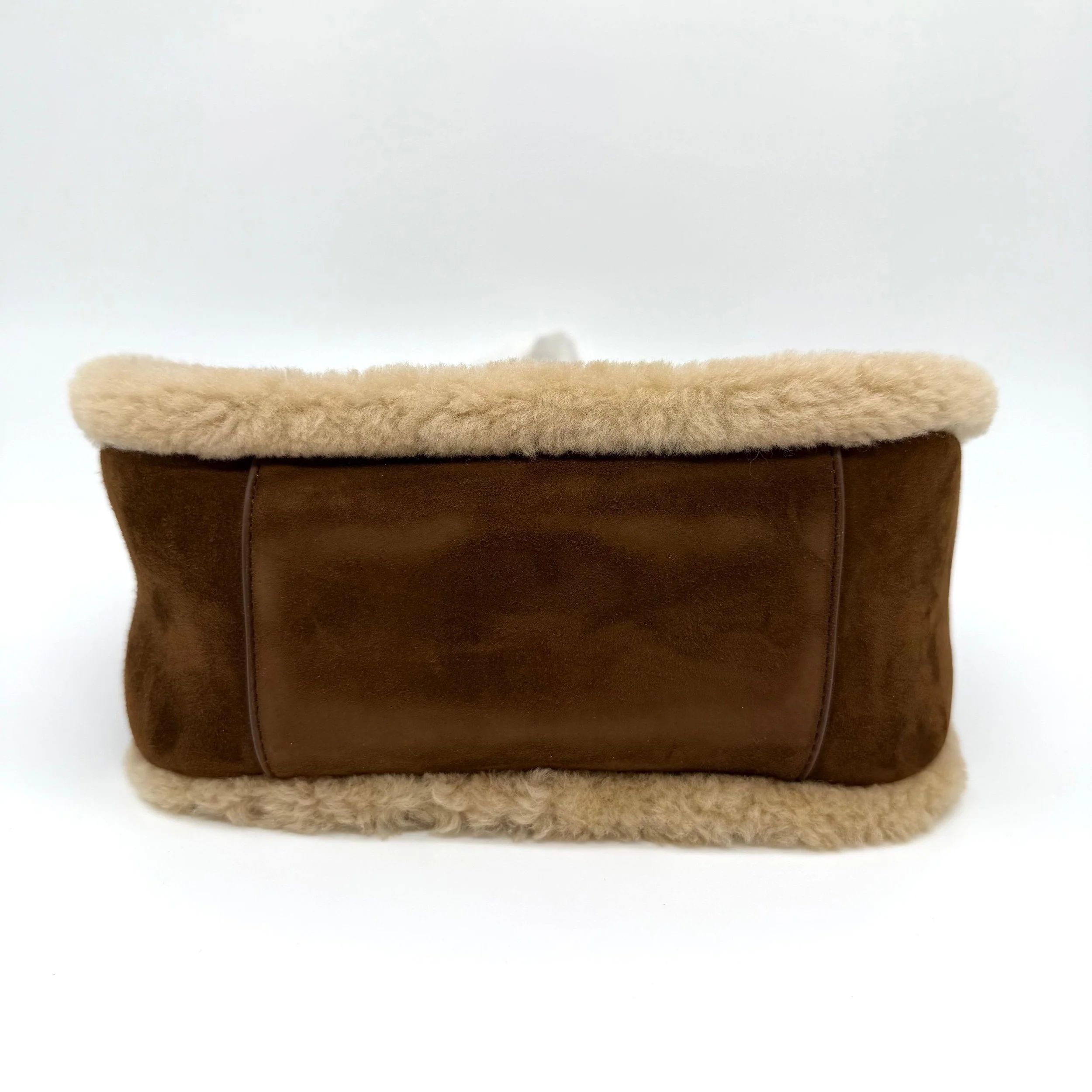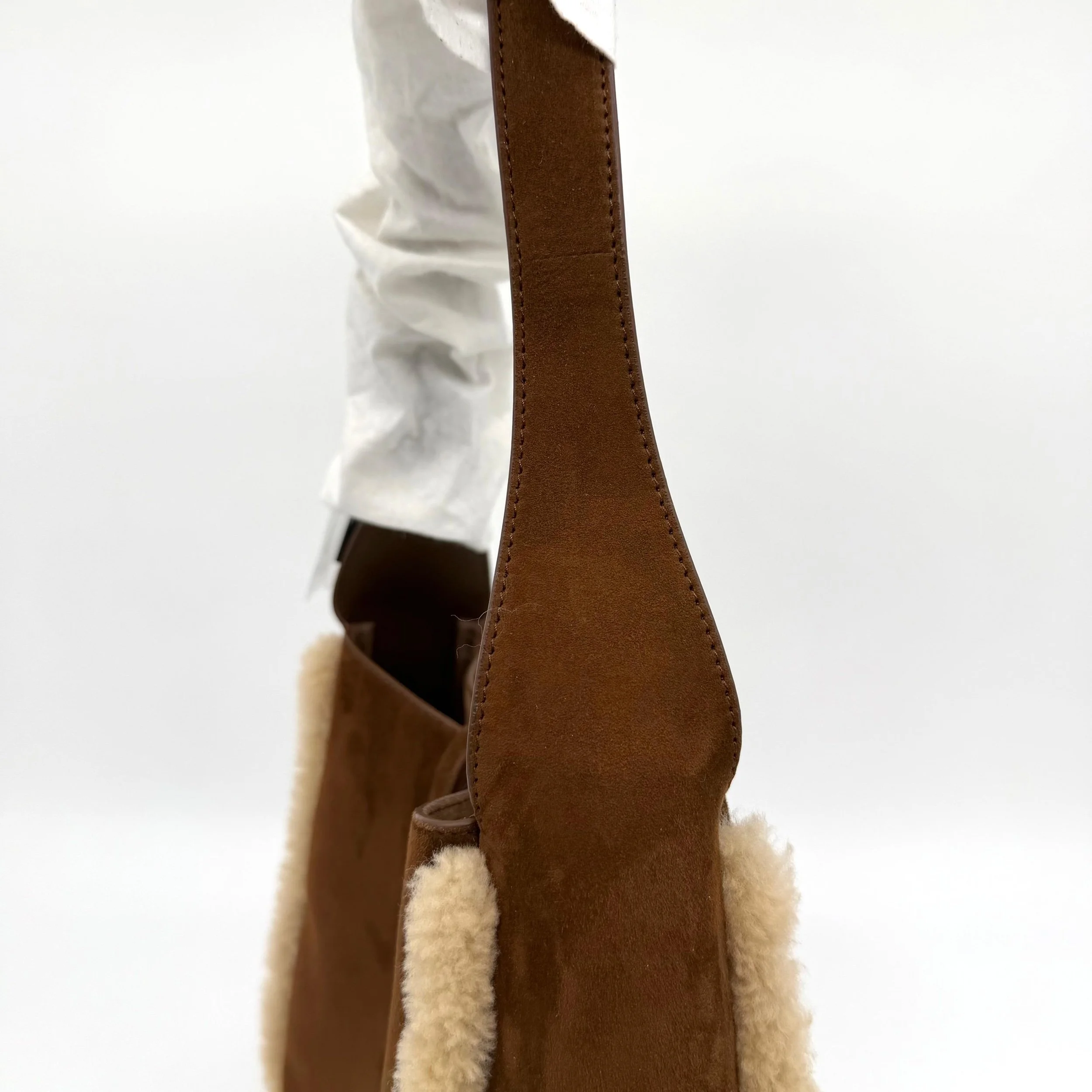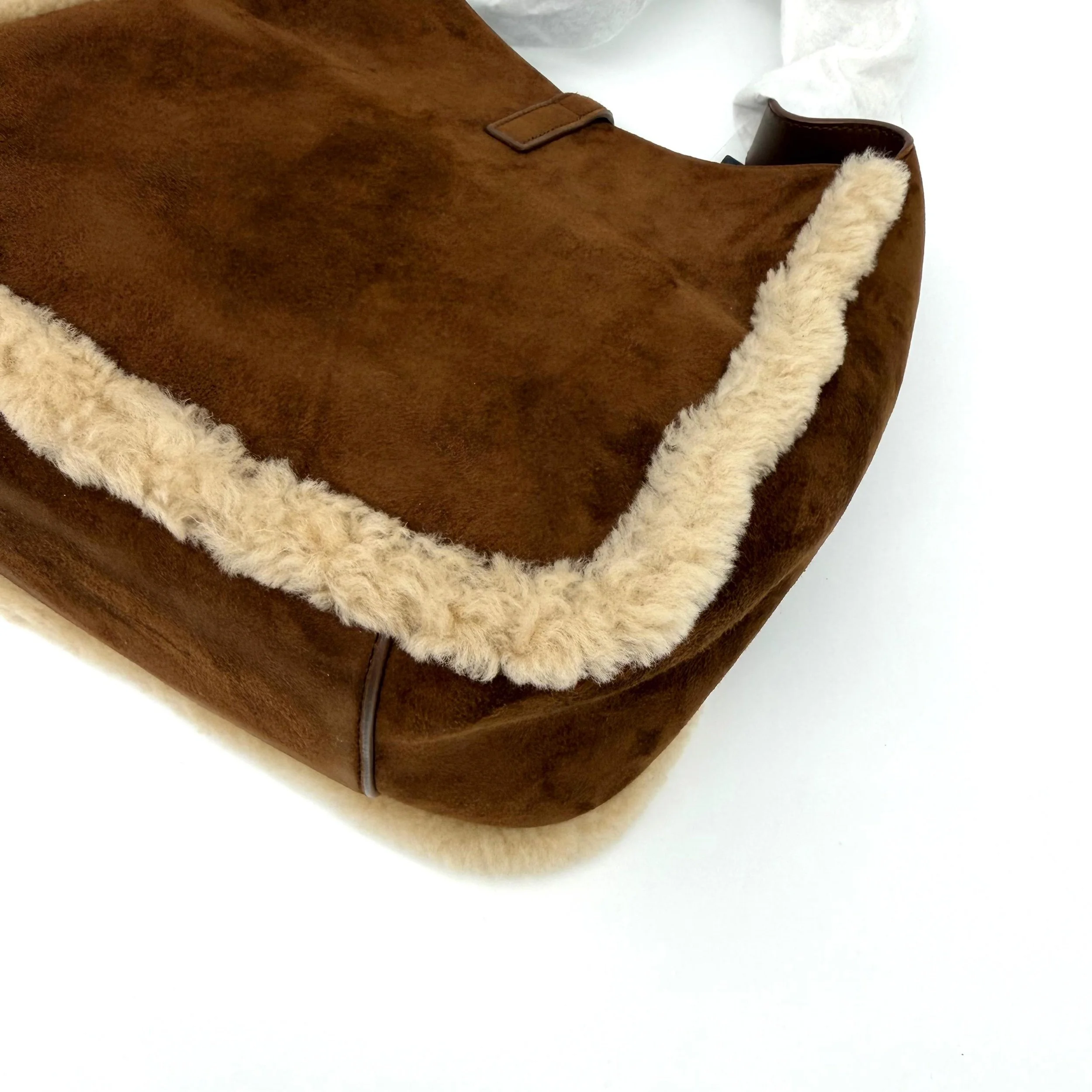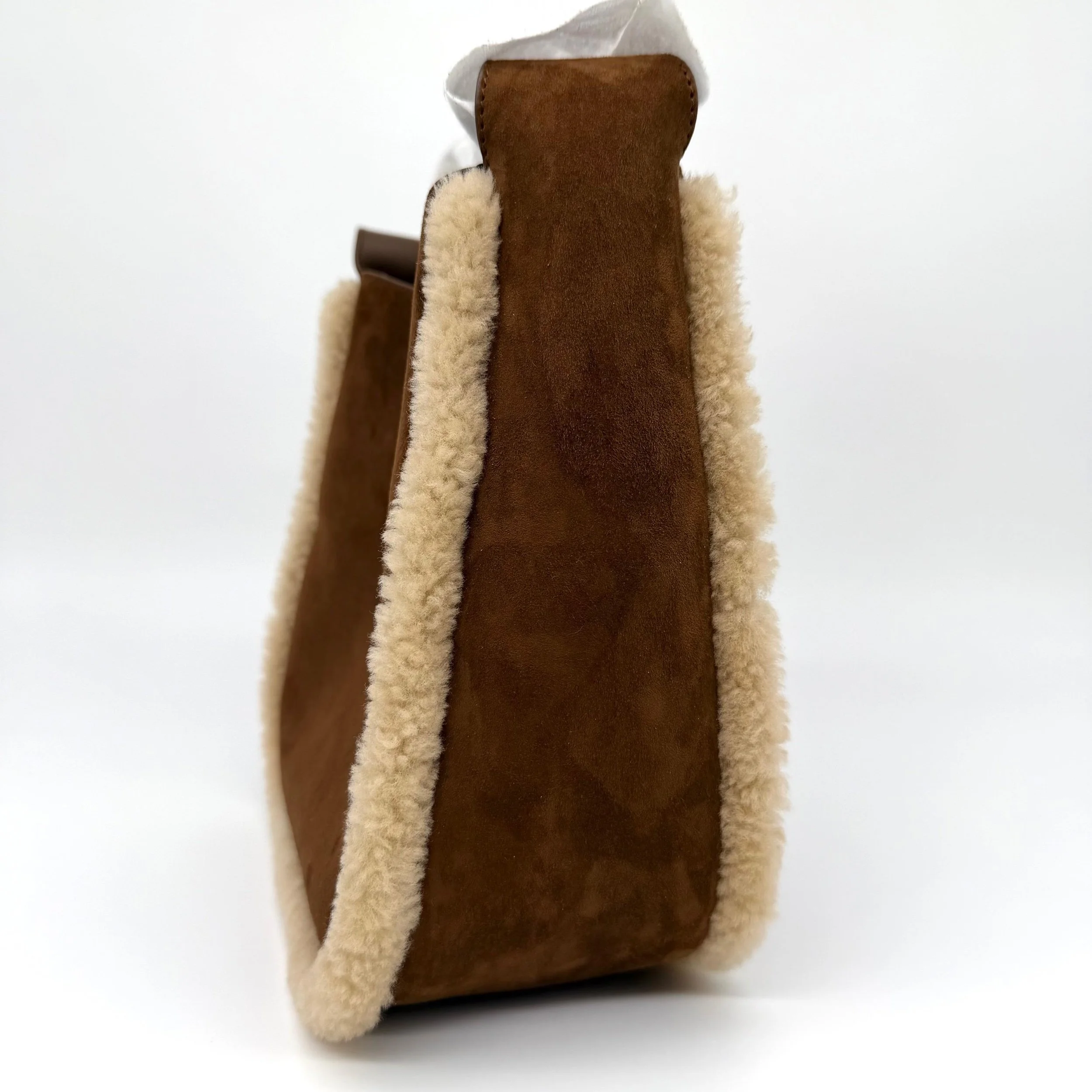 Item Description/Model: Saint Laurent YSL Small Le 5 a 7 Shoulder Bag Brown Suede with Shearling Natural Trim Gold Hardware