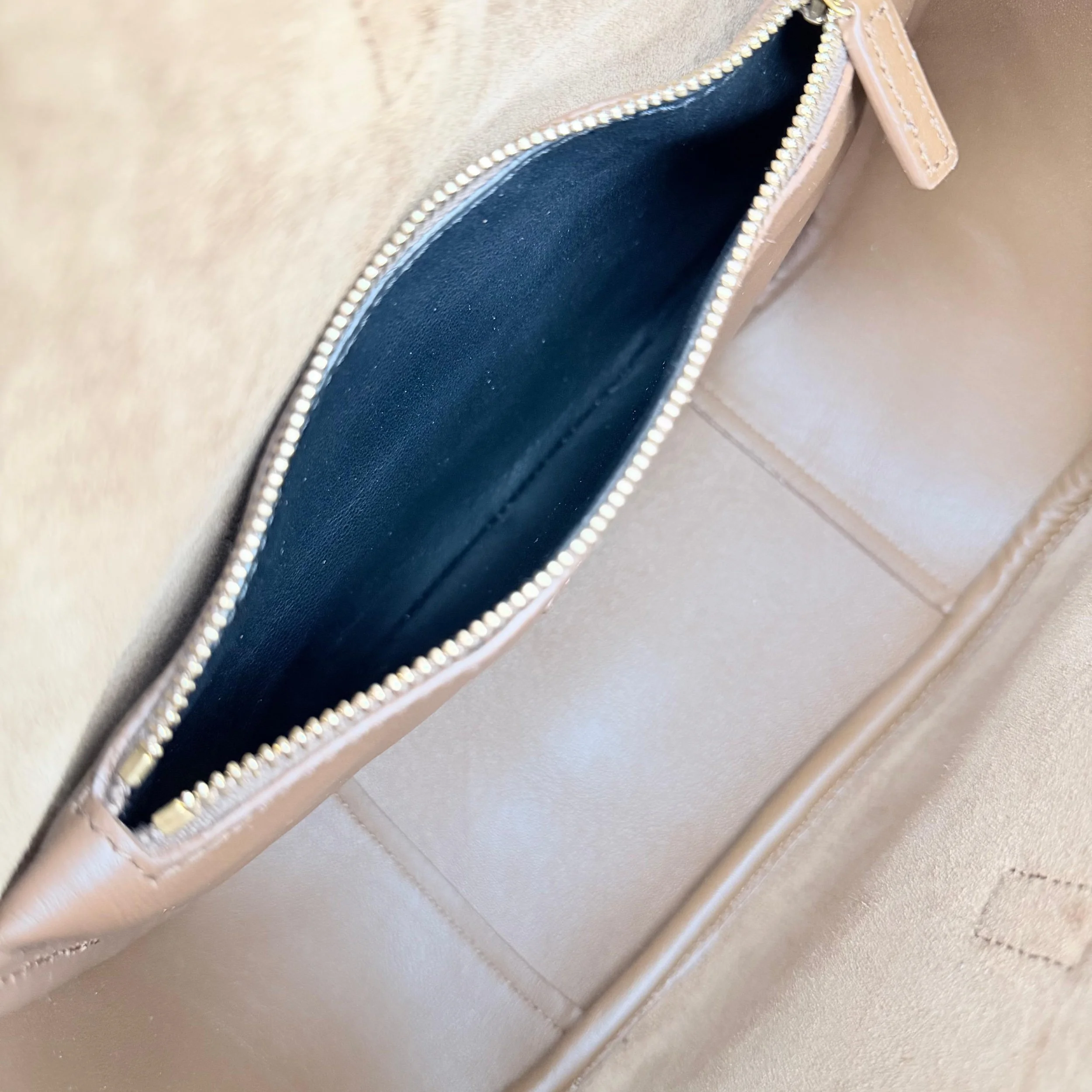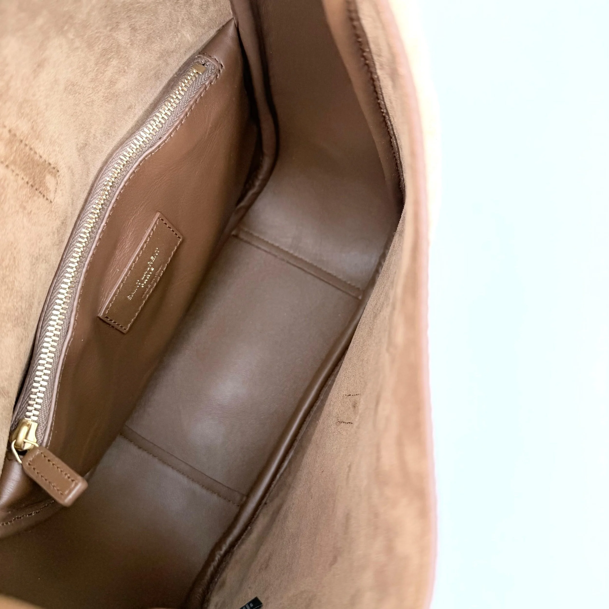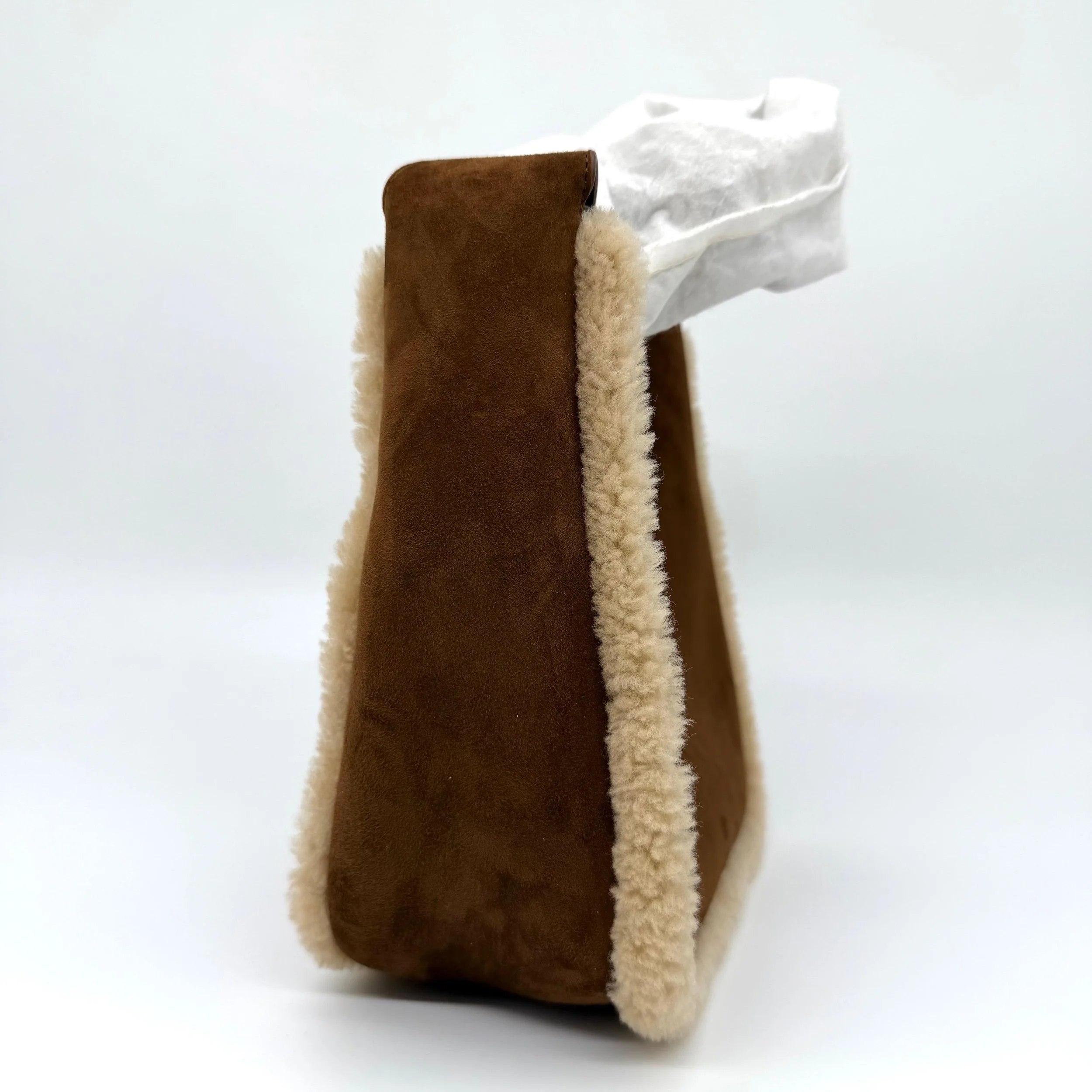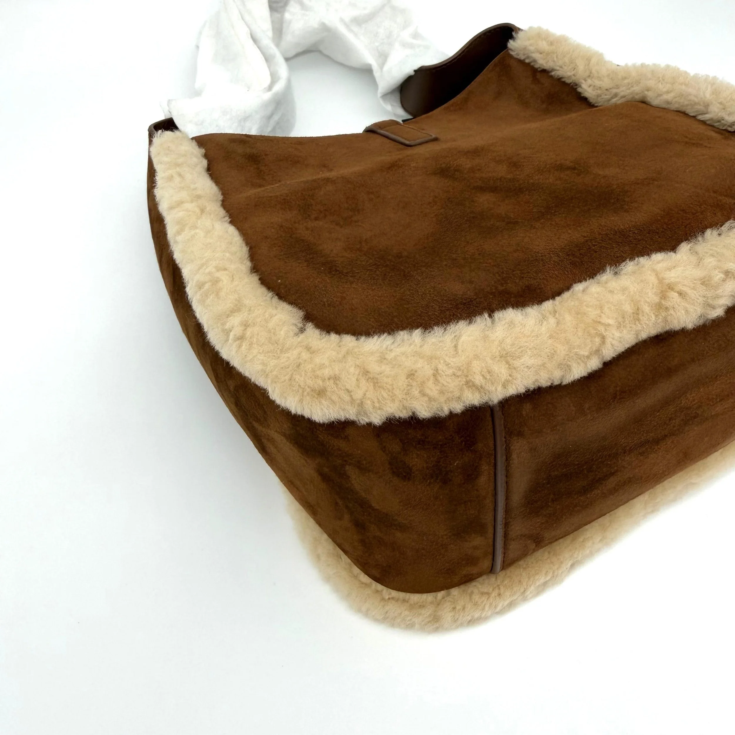 Item Description/Model: Saint Laurent YSL Small Le 5 a 7 Shoulder Bag Brown Suede with Shearling Natural Trim Gold Hardware