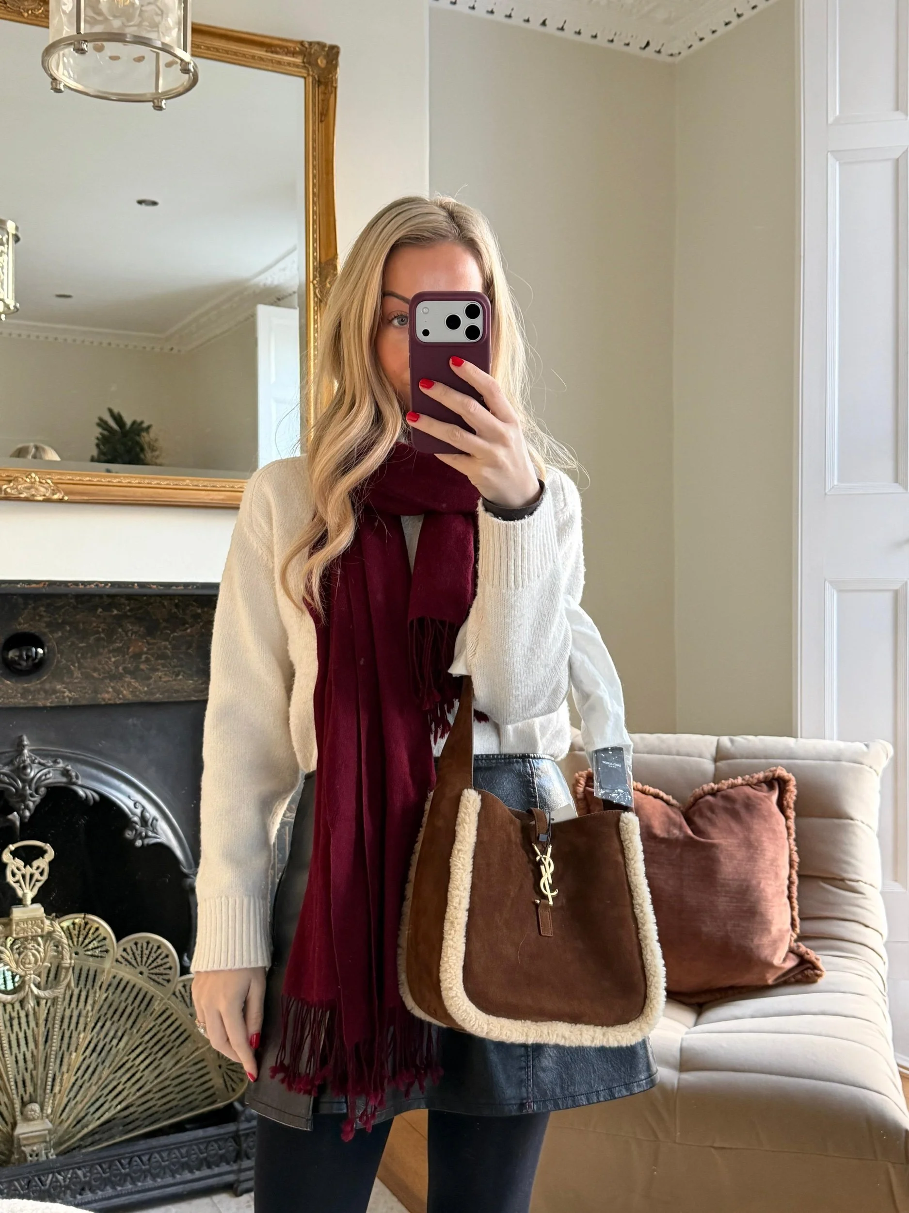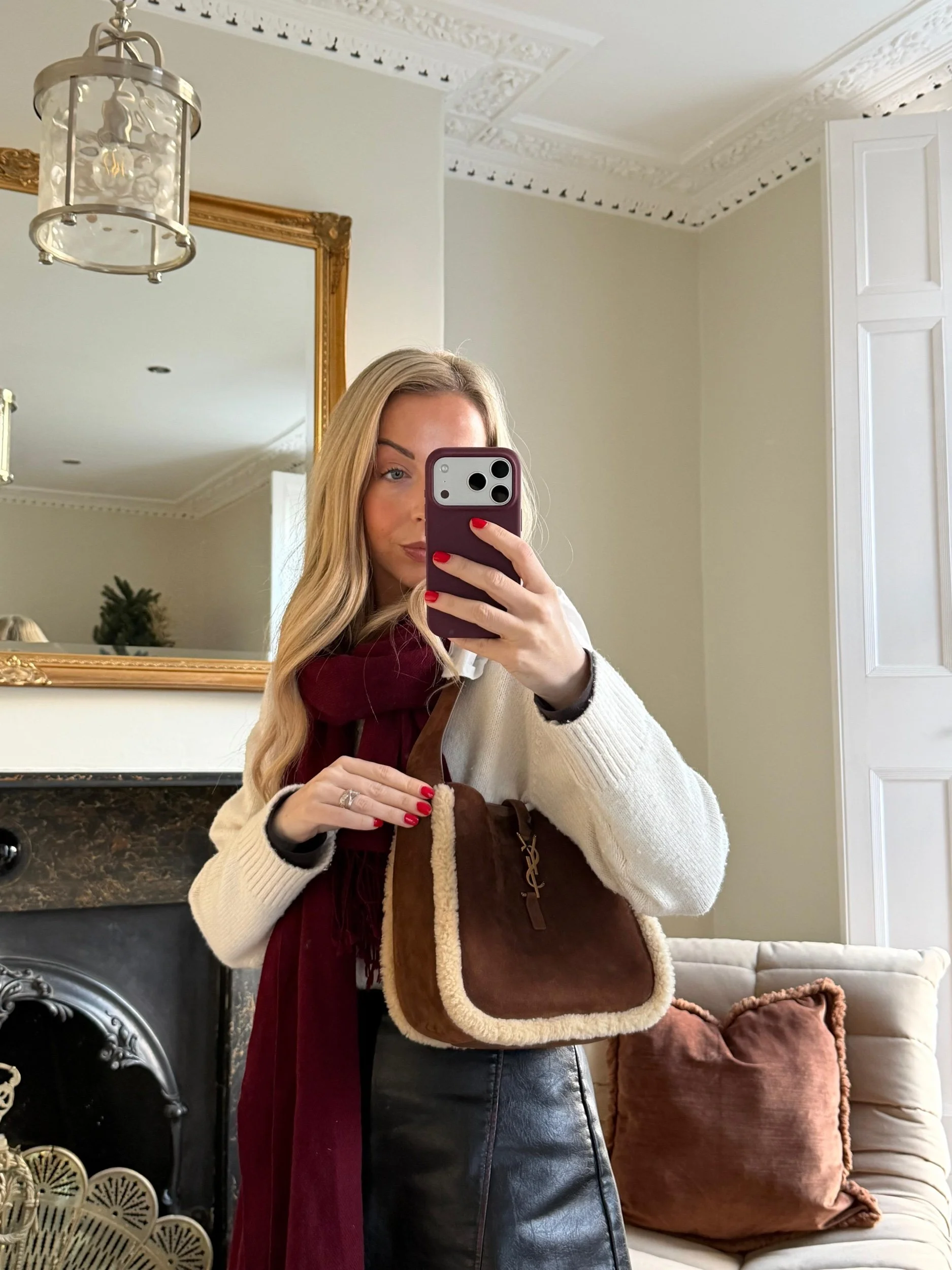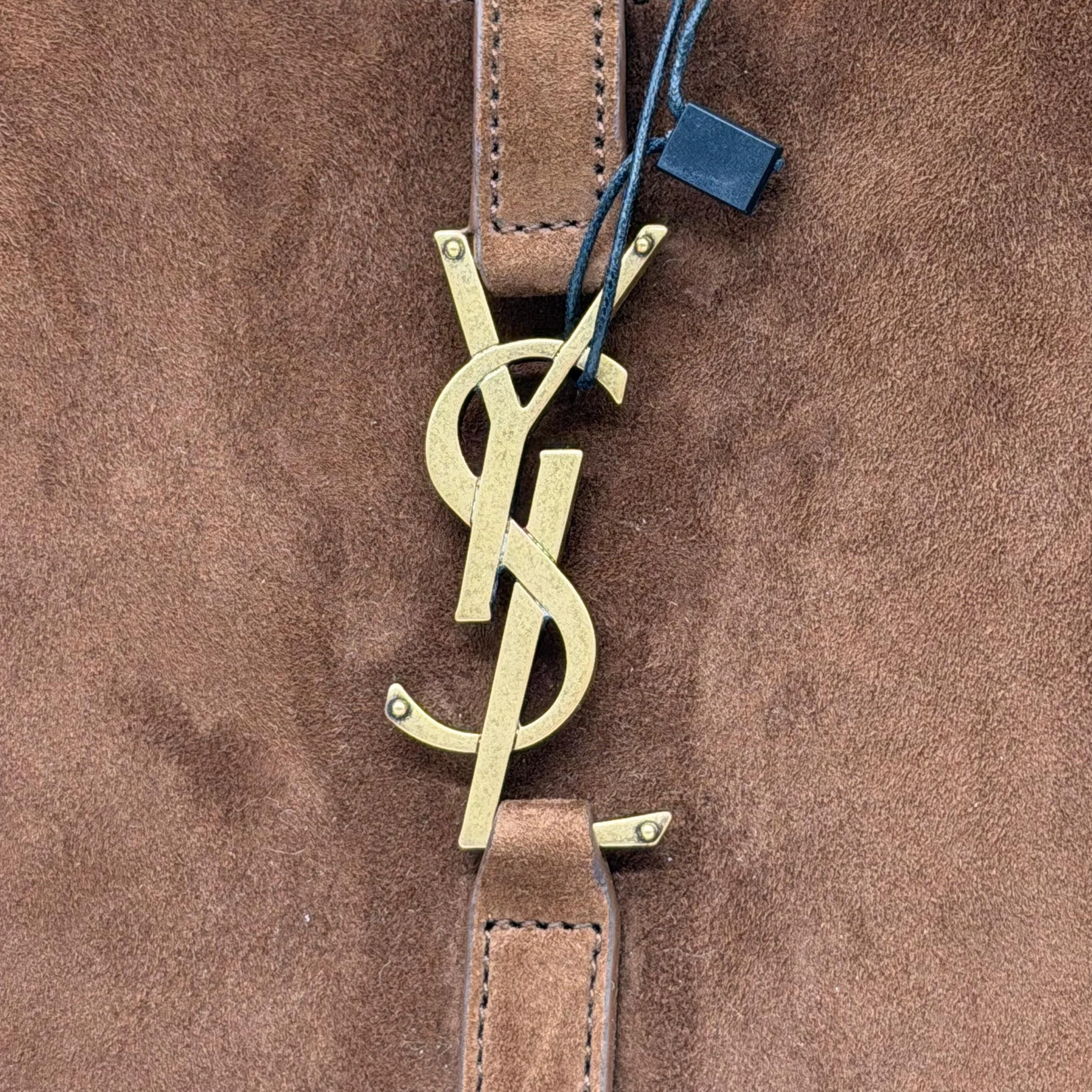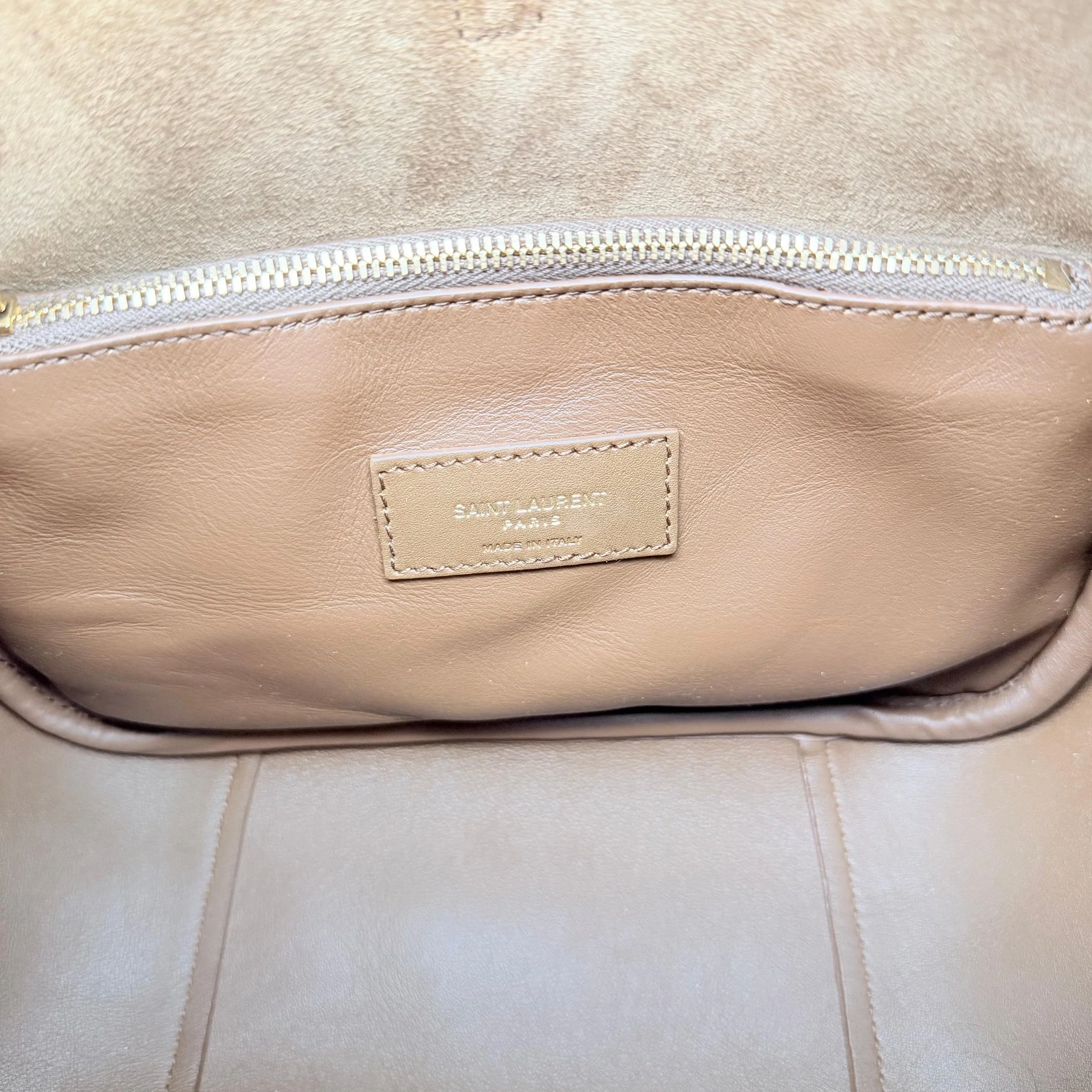 Item Description/Model: Saint Laurent YSL Small Le 5 a 7 Shoulder Bag Brown Suede with Shearling Natural Trim Gold Hardware