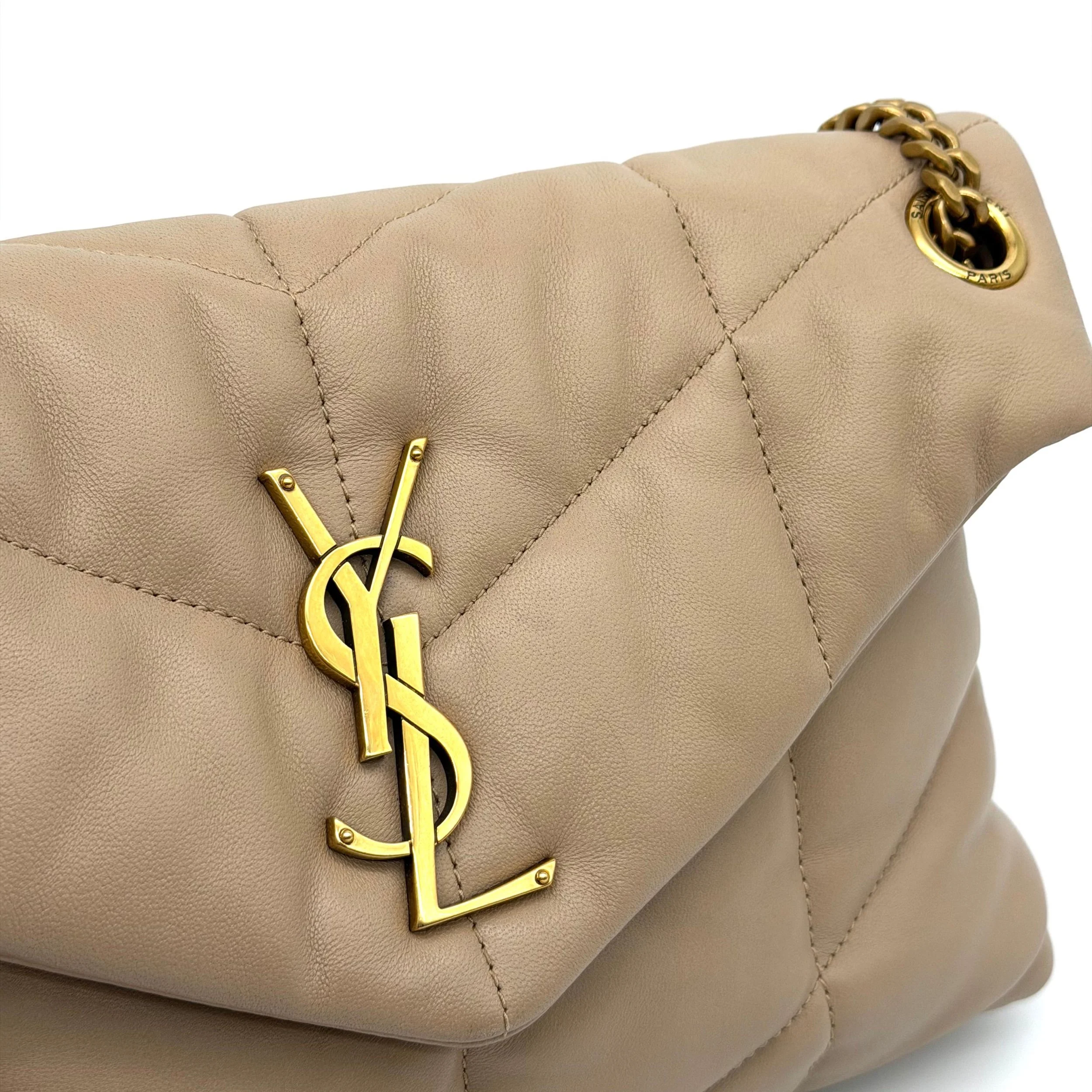 Item Description/Model: Saint Laurent YSL Small Lou Puffer Bag in Dark Beige Lambskin Leather with Gold Hardware
