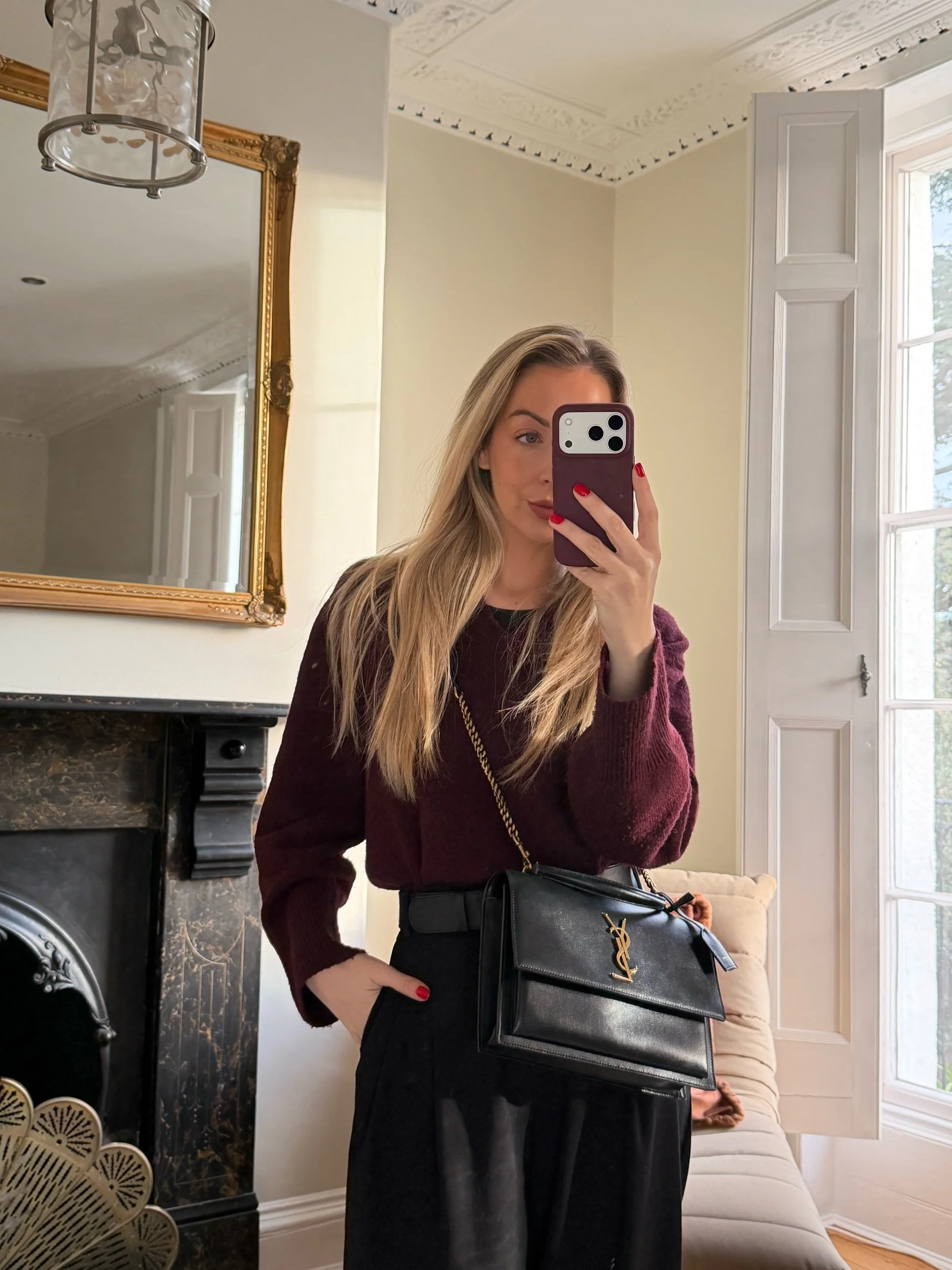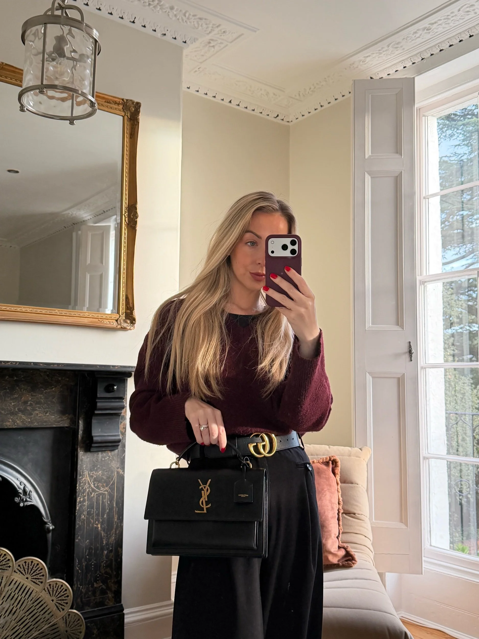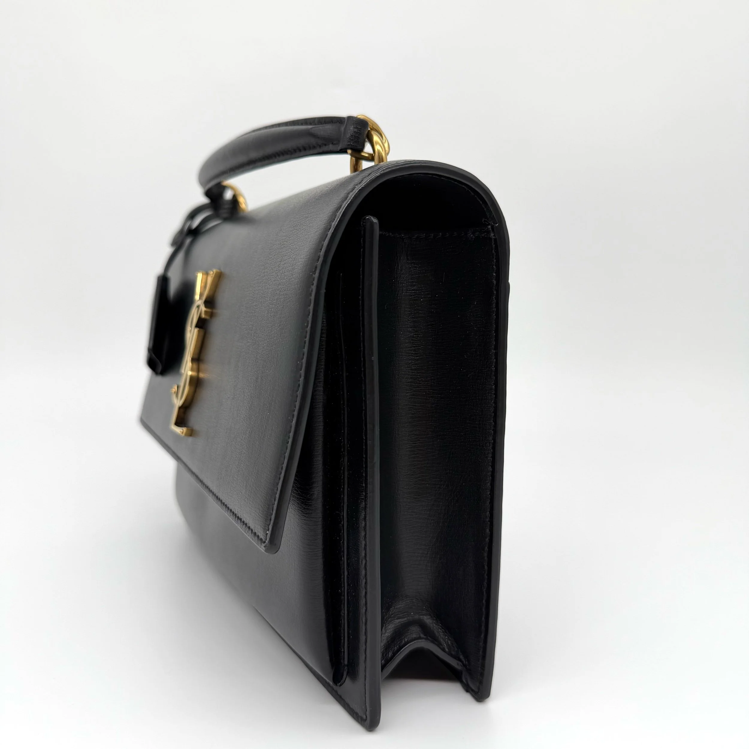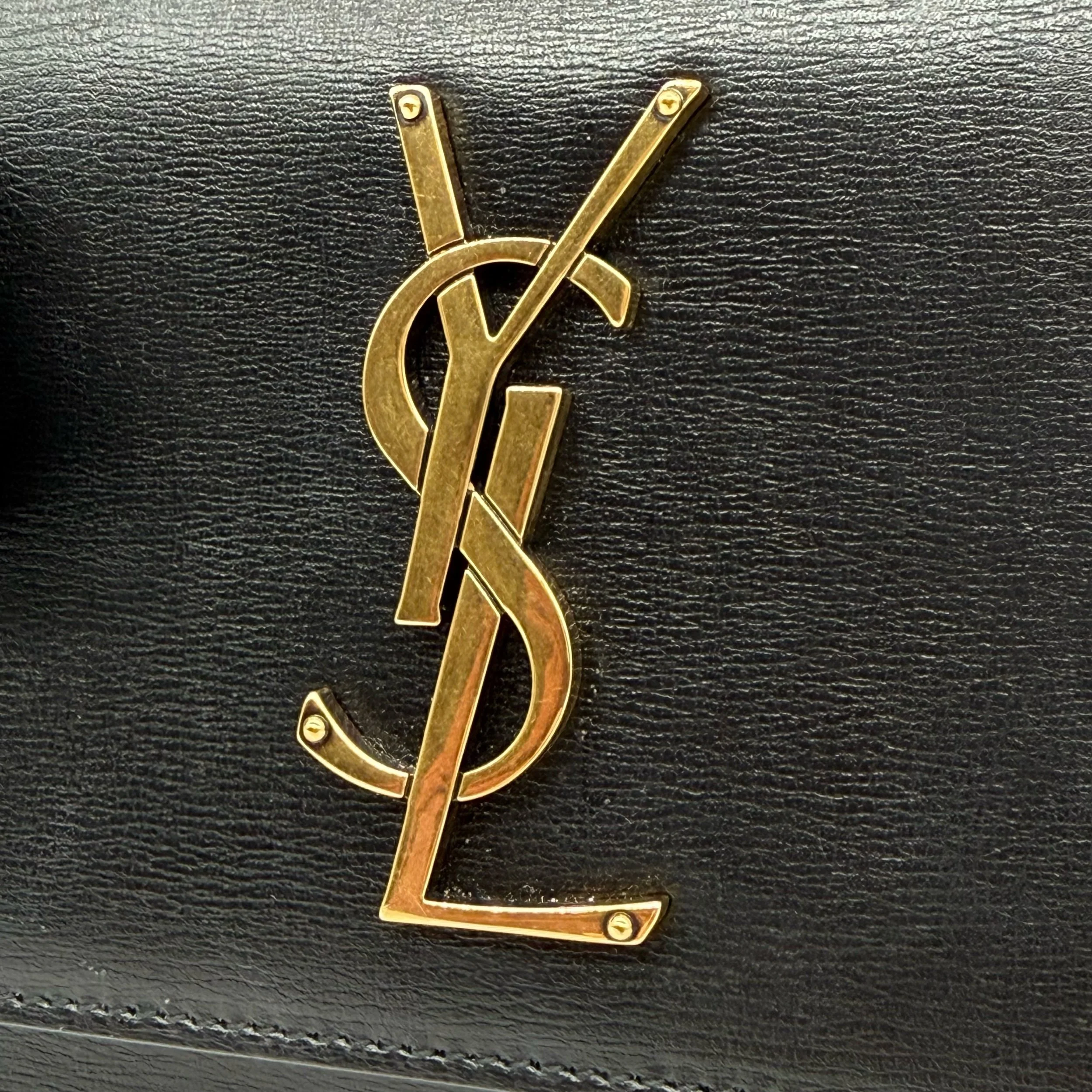 Saint Laurent YSL Sunset Top Handle Satchel Bag in Black with Gold Hardware