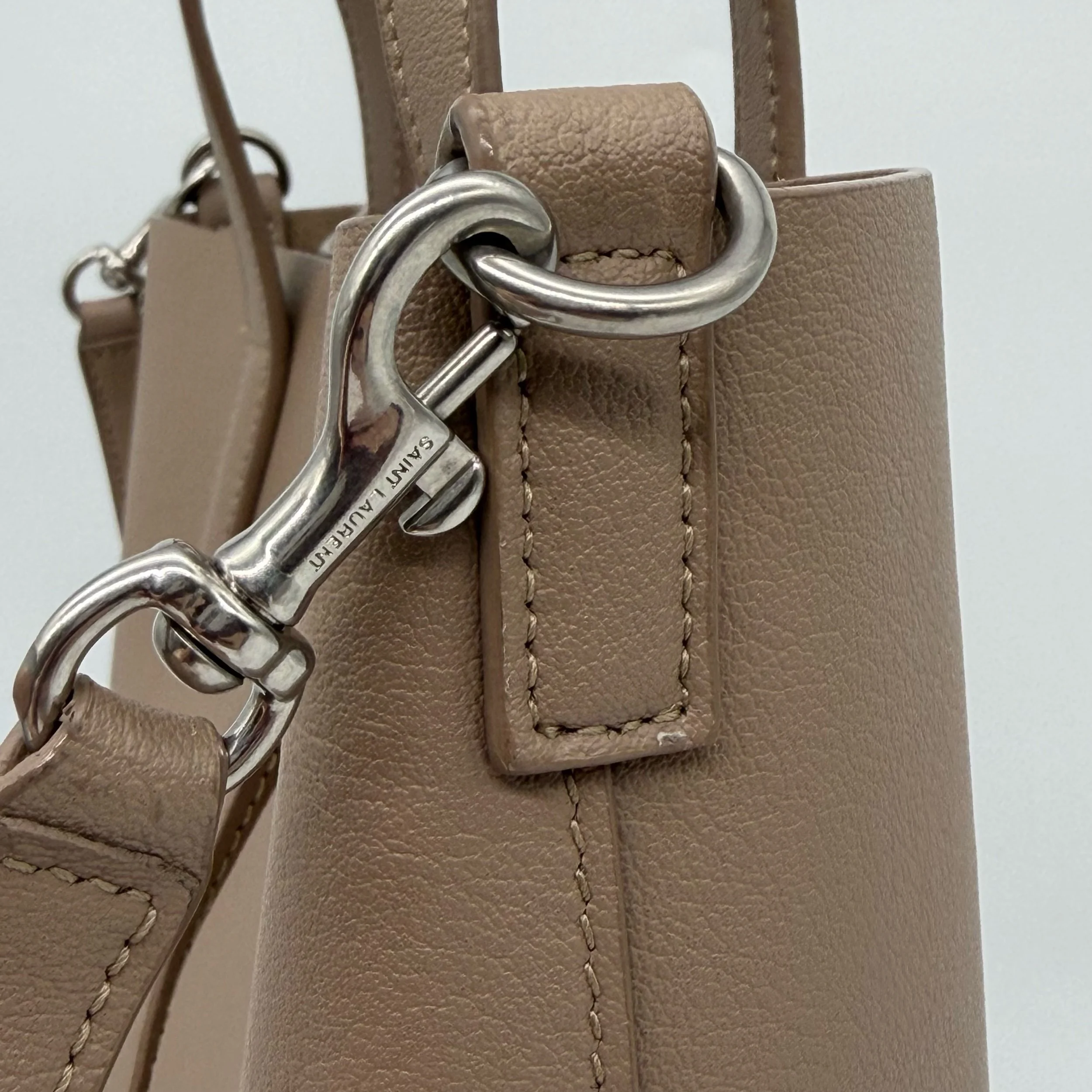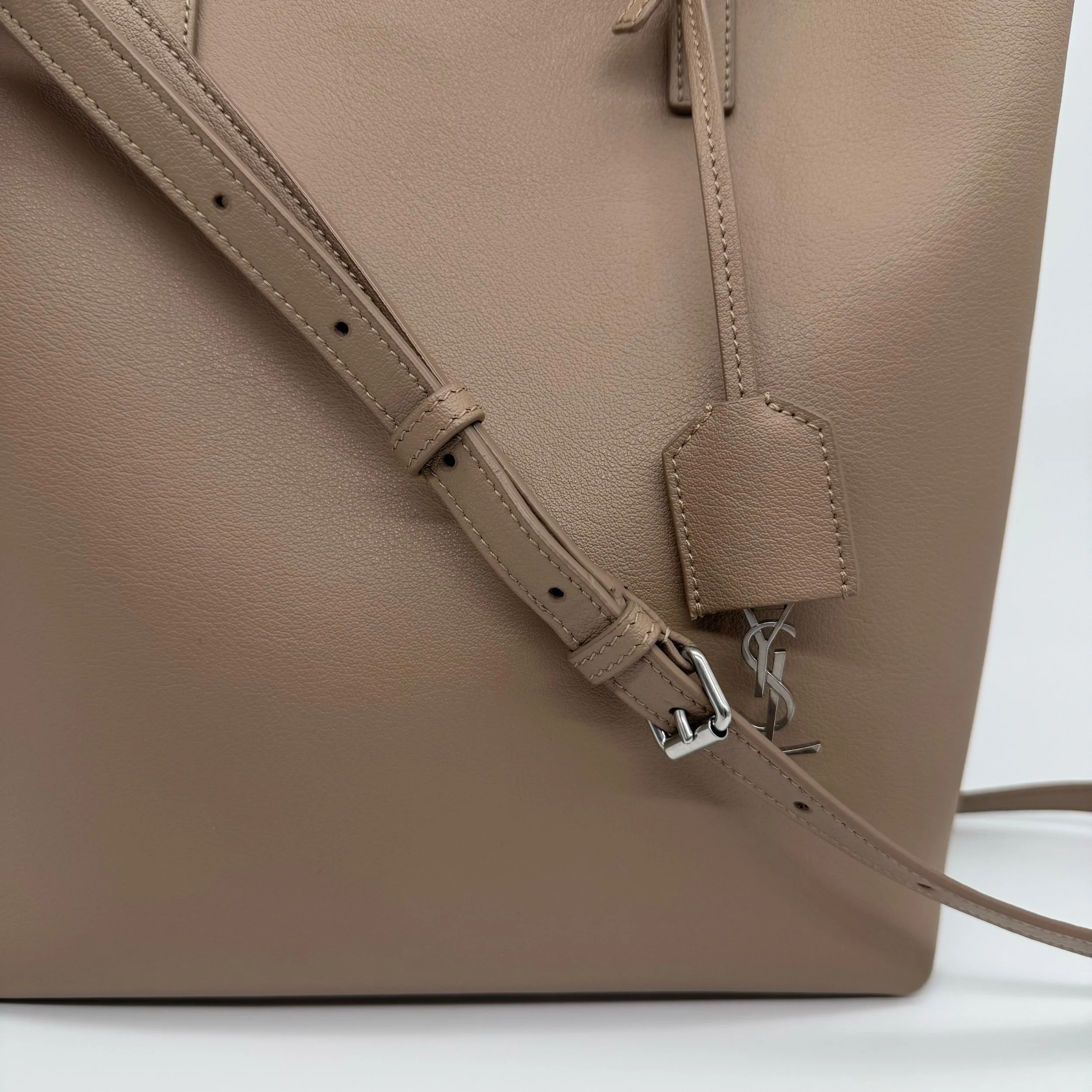 Item Description/Model: Saint Laurent YSL Toy Leather North South Shopping Tote Beige Leather with Silver Hardware