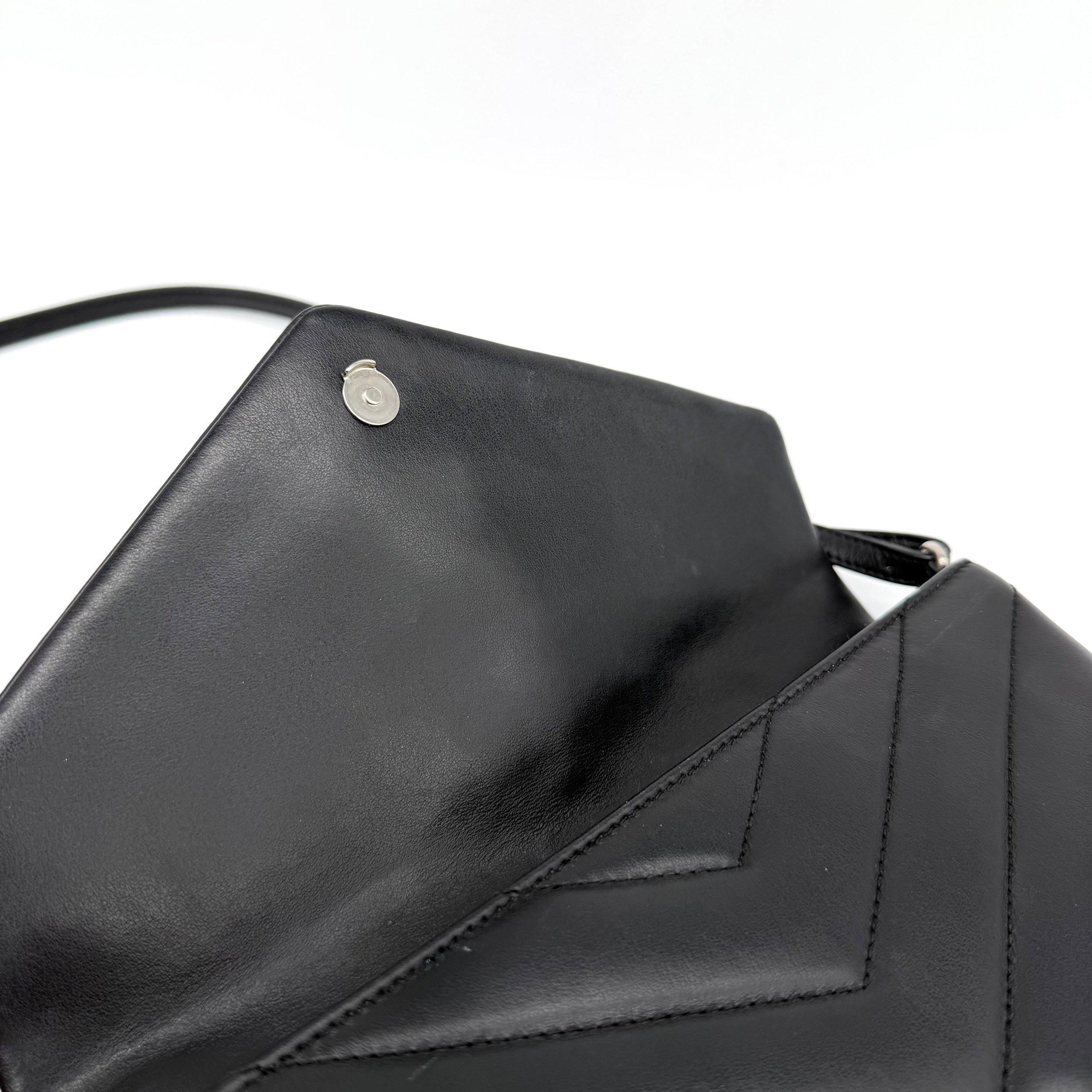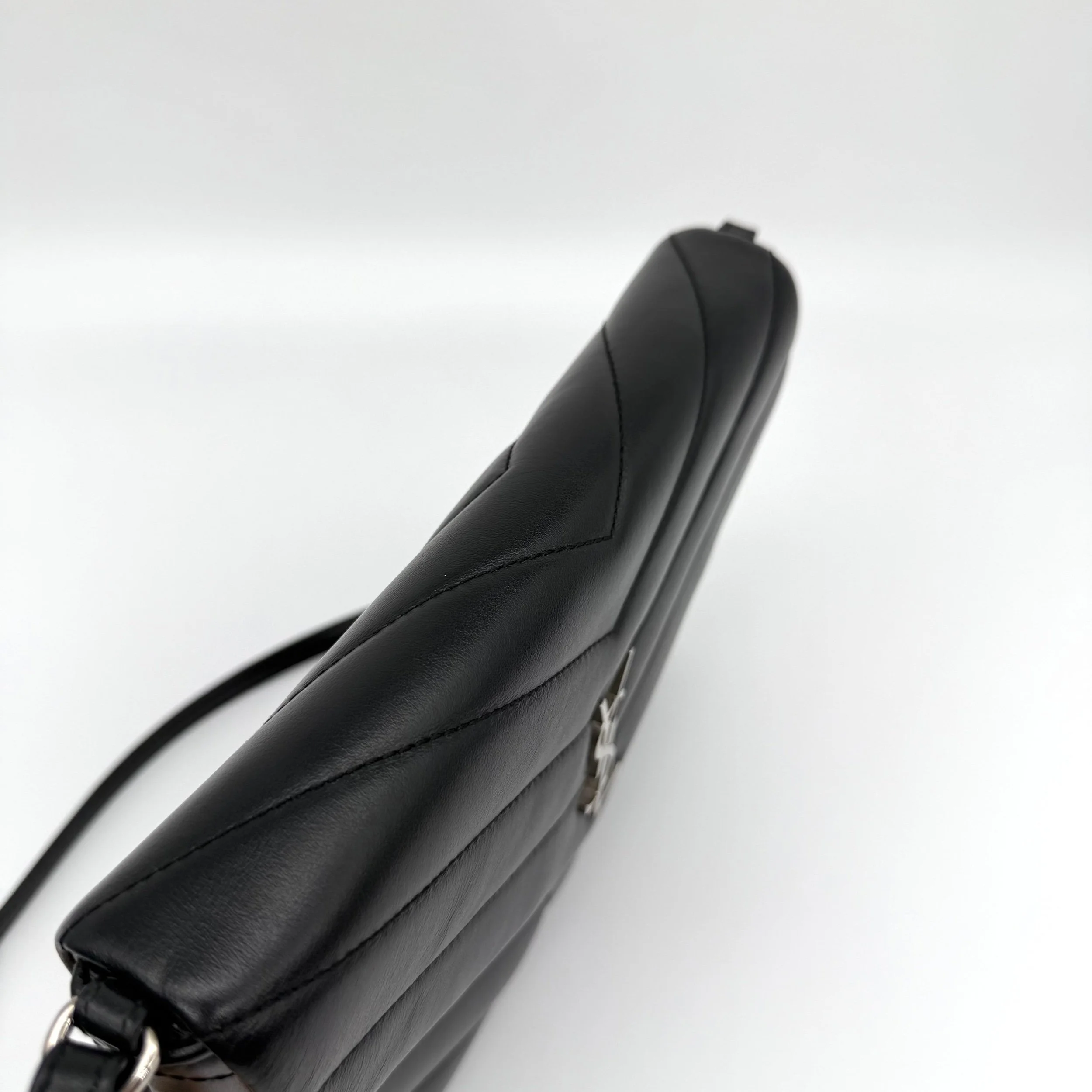 Saint Laurent YSL Toy Loulou Crossbody Flap Bag in Black Quilted Leather and Silver Hardware