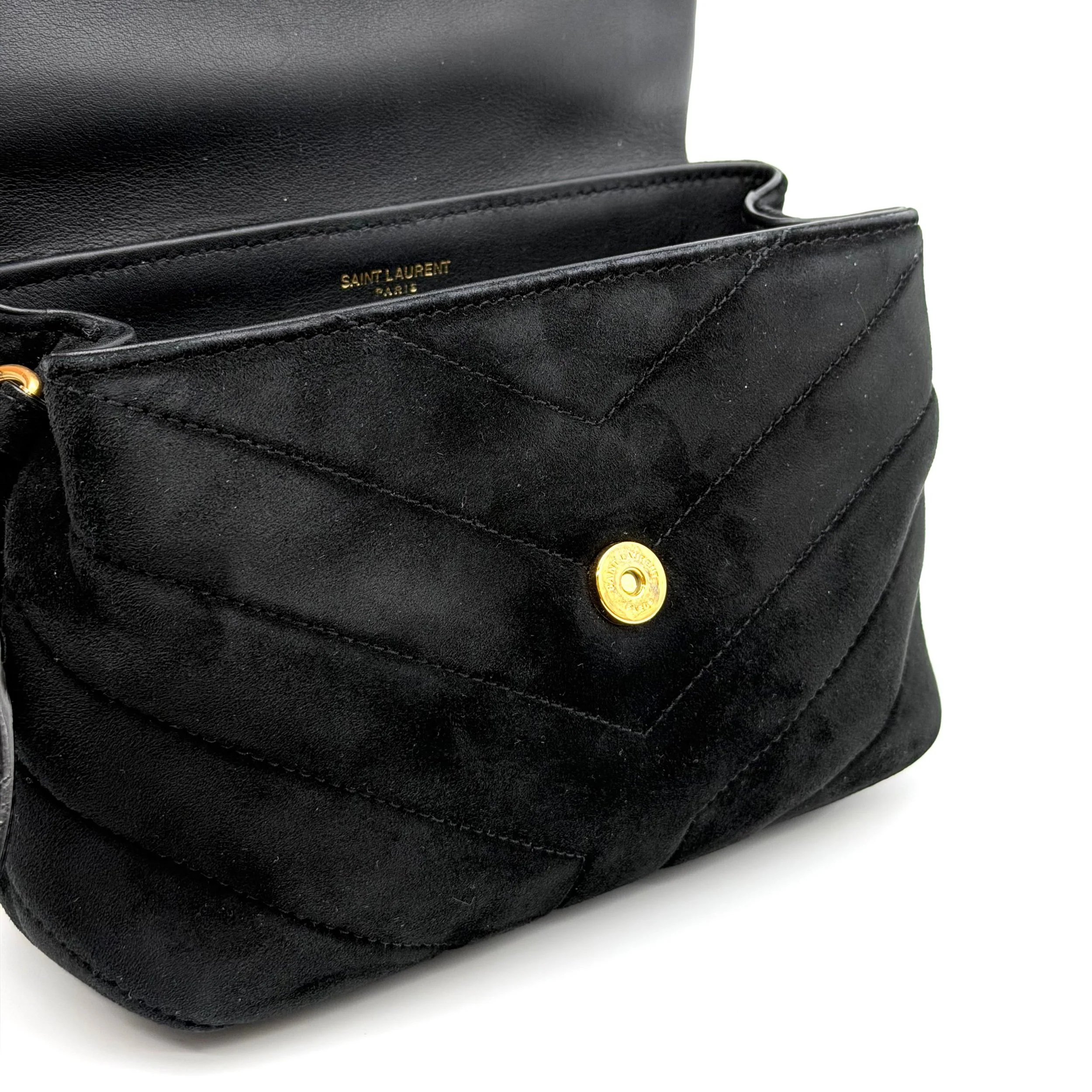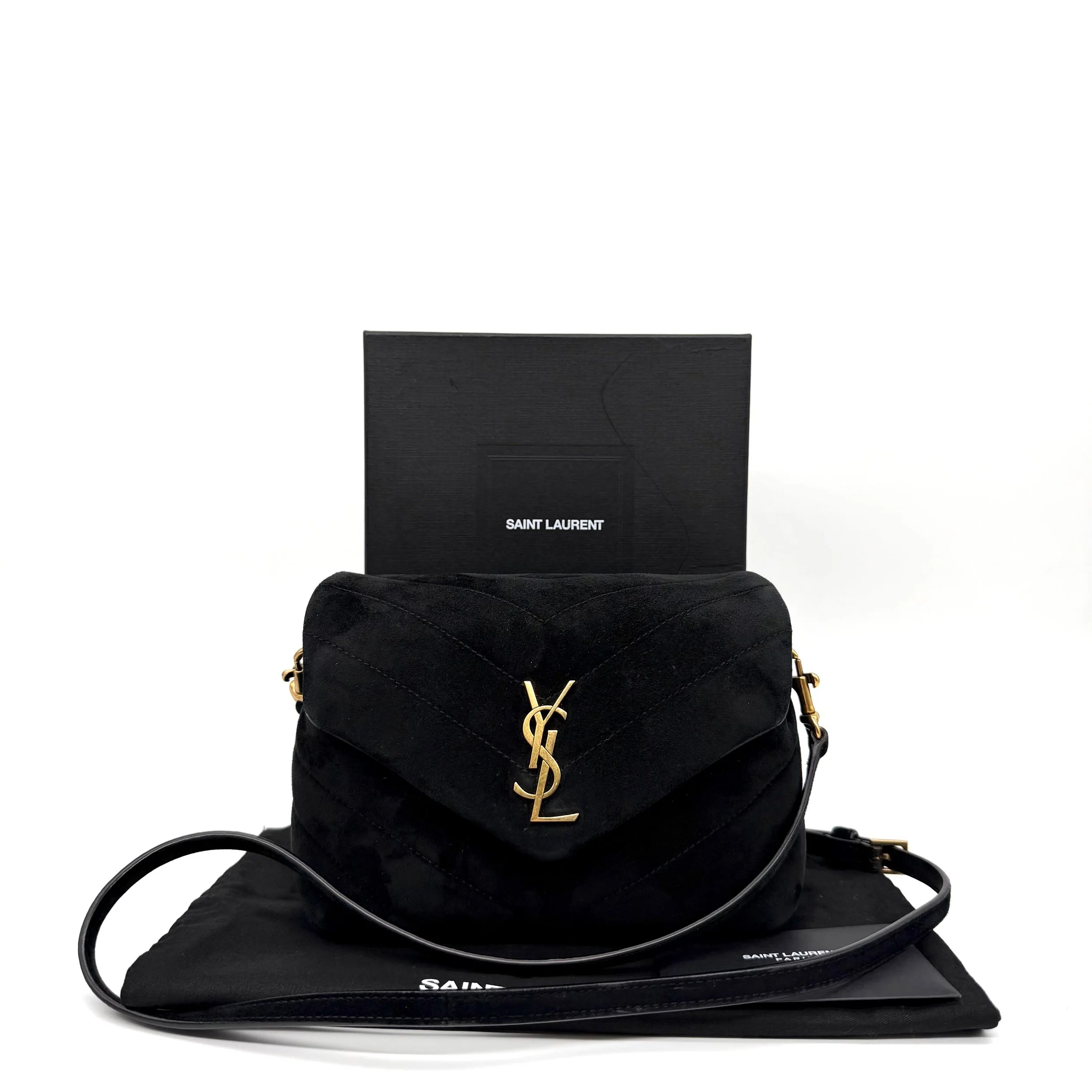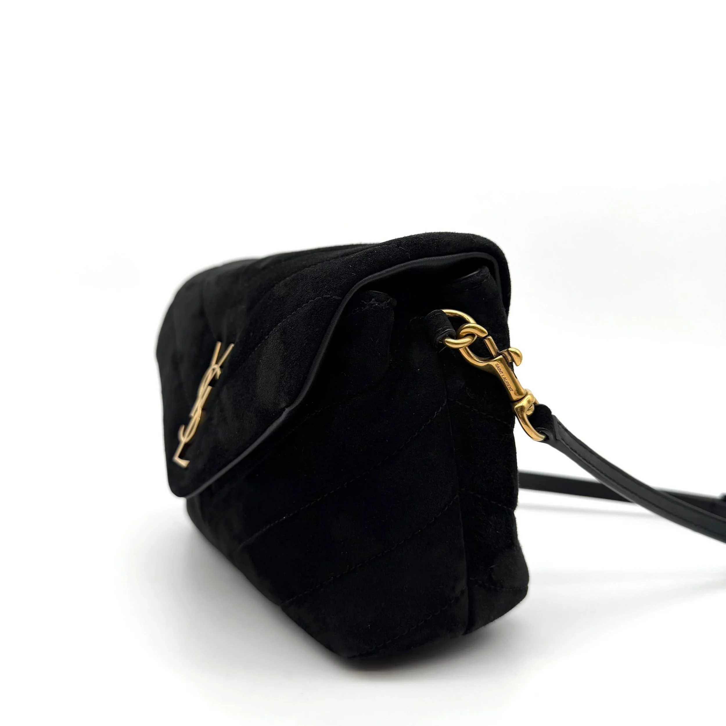 Item Description/Model: Saint Laurent YSL Toy Lou Lou Bag in Black Quilted Suede and Gold Hardware