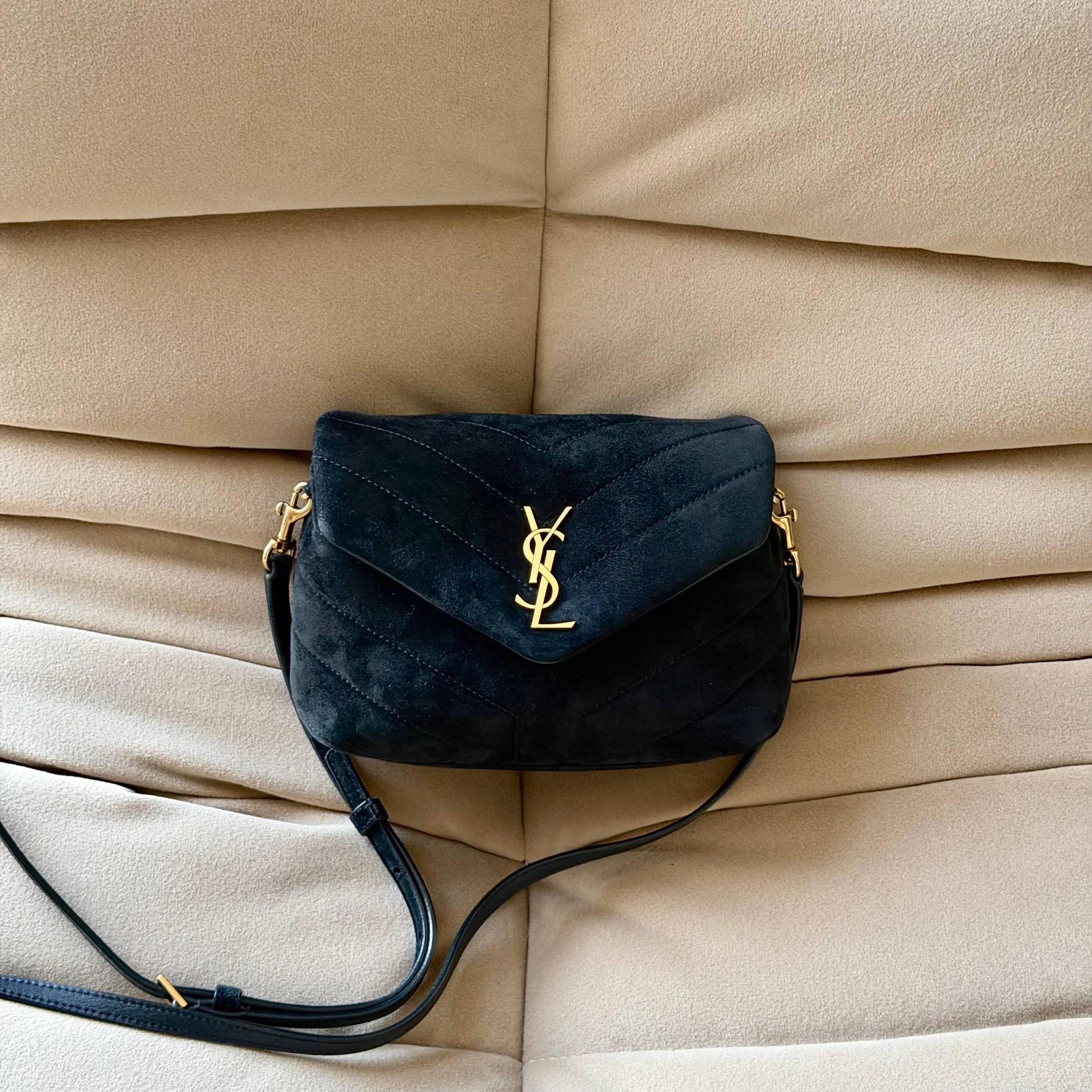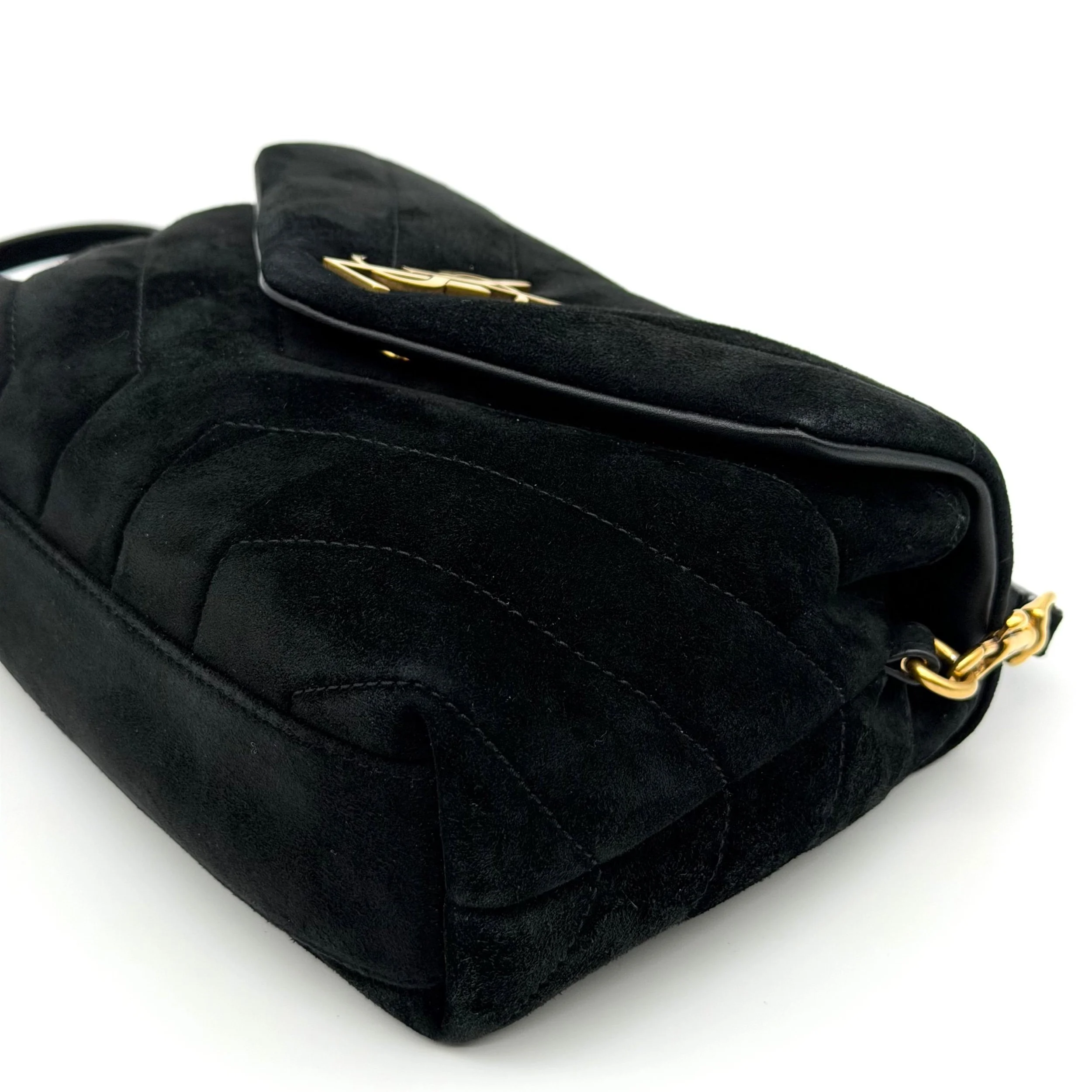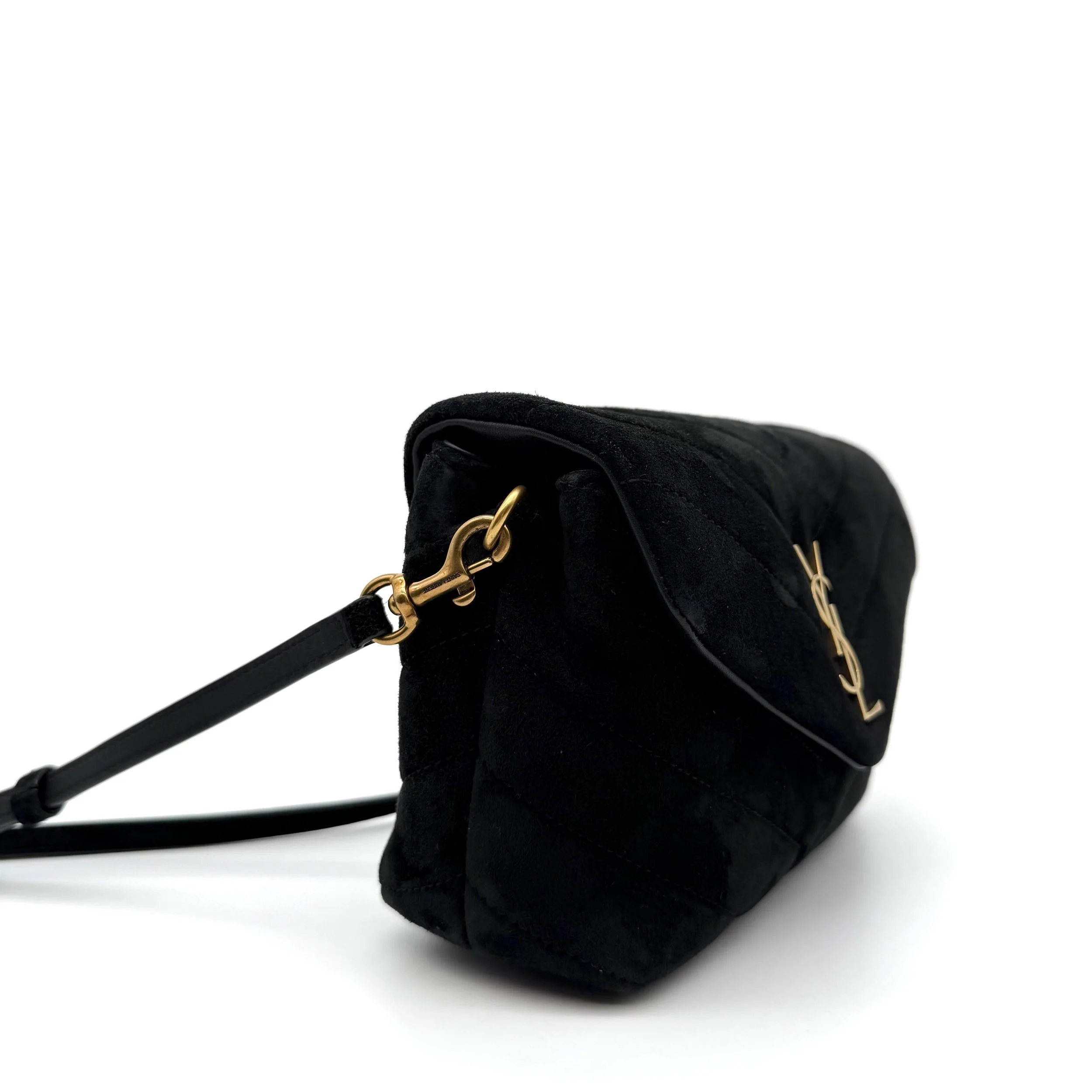 Item Description/Model: Saint Laurent YSL Toy Lou Lou Bag in Black Quilted Suede and Gold Hardware