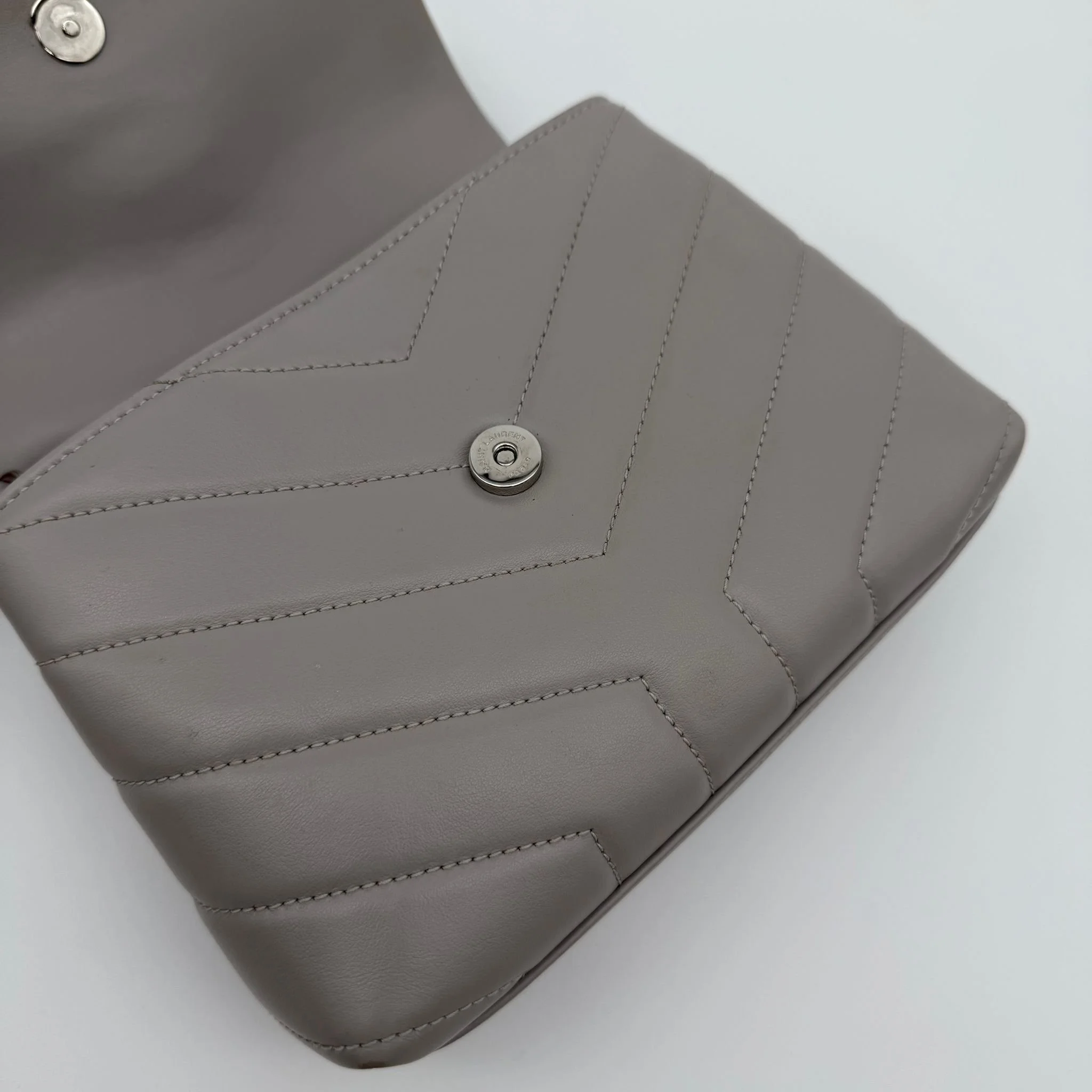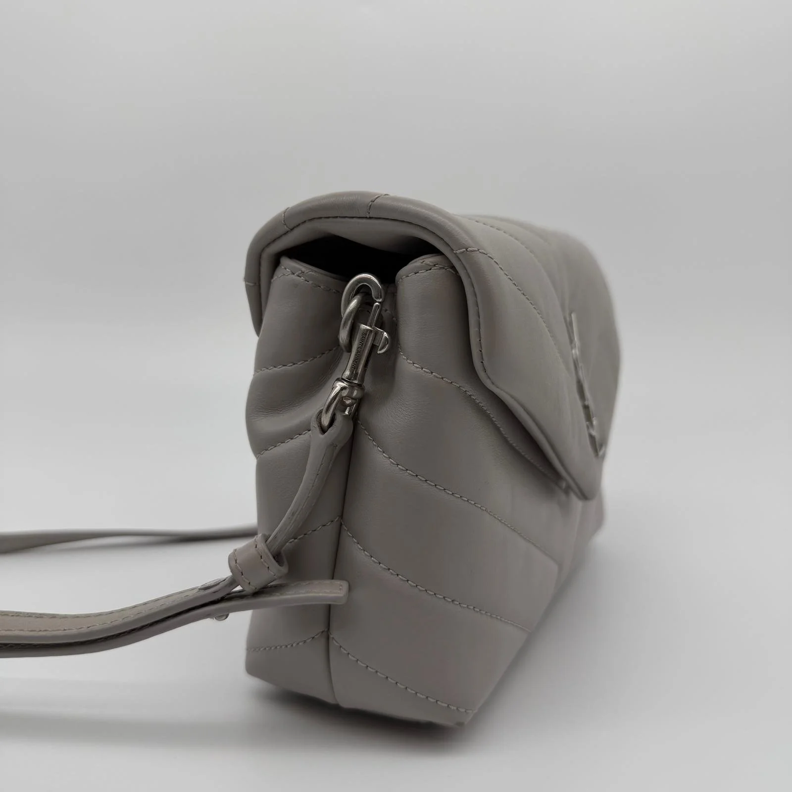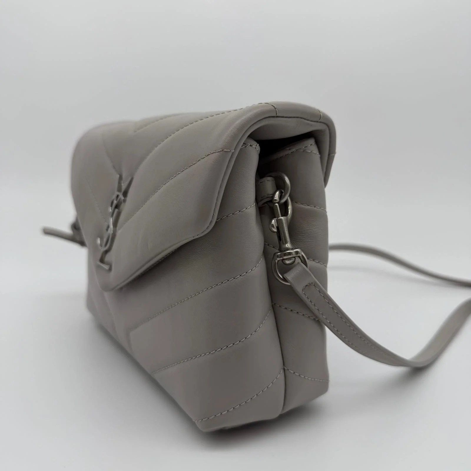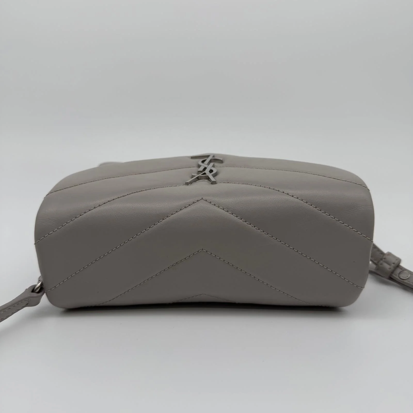 Saint Laurent YSL Toy Loulou Bag in Grey Quilted Leather and Silver Hardware