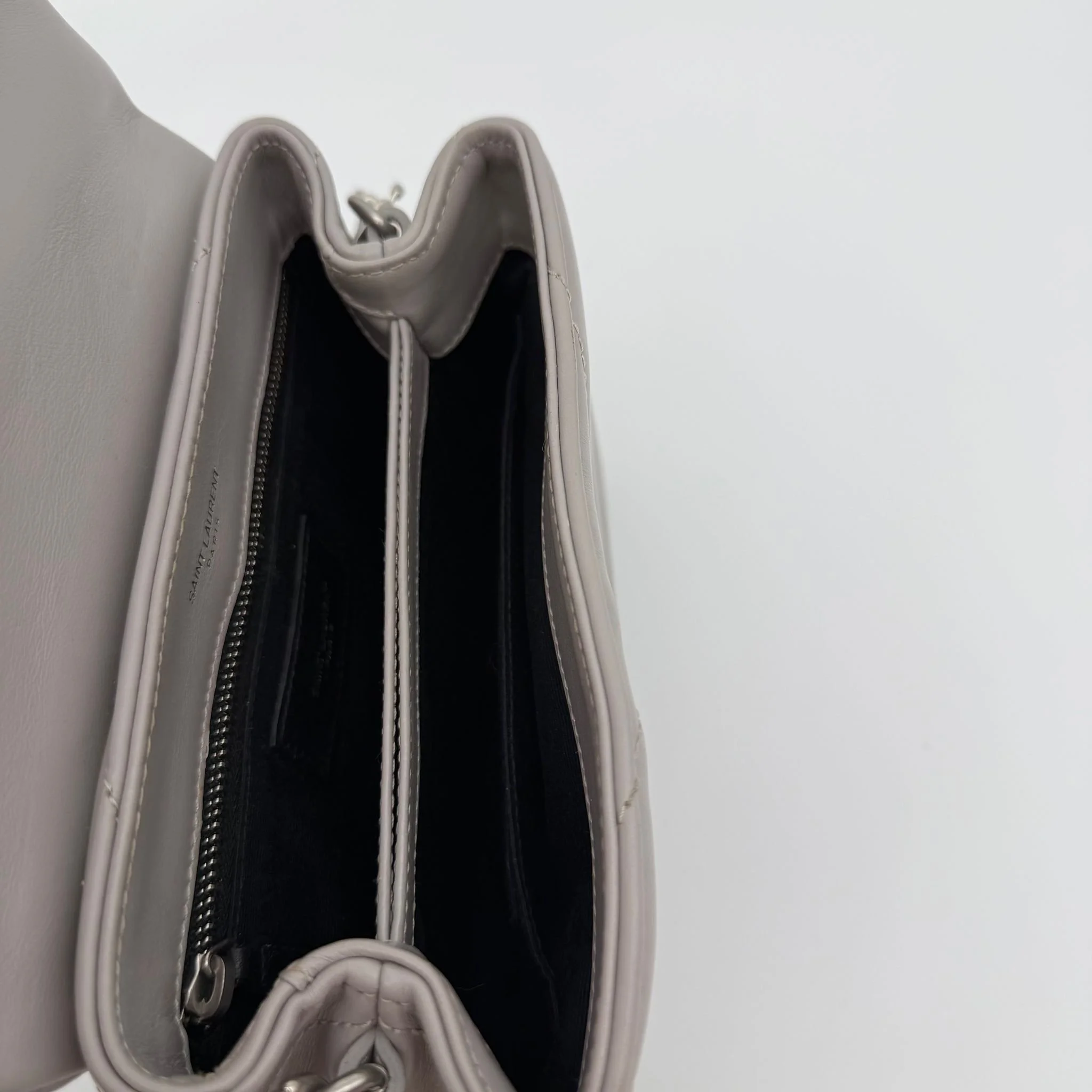 Item Description/Model: Saint Laurent YSL Toy Lou Lou Bag in Grey Quilted Leather and Silver Hardware